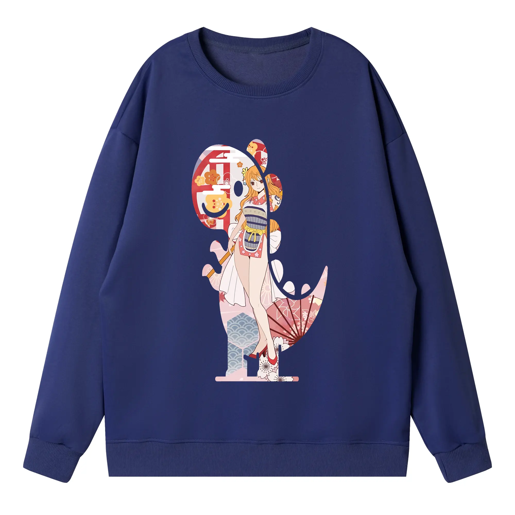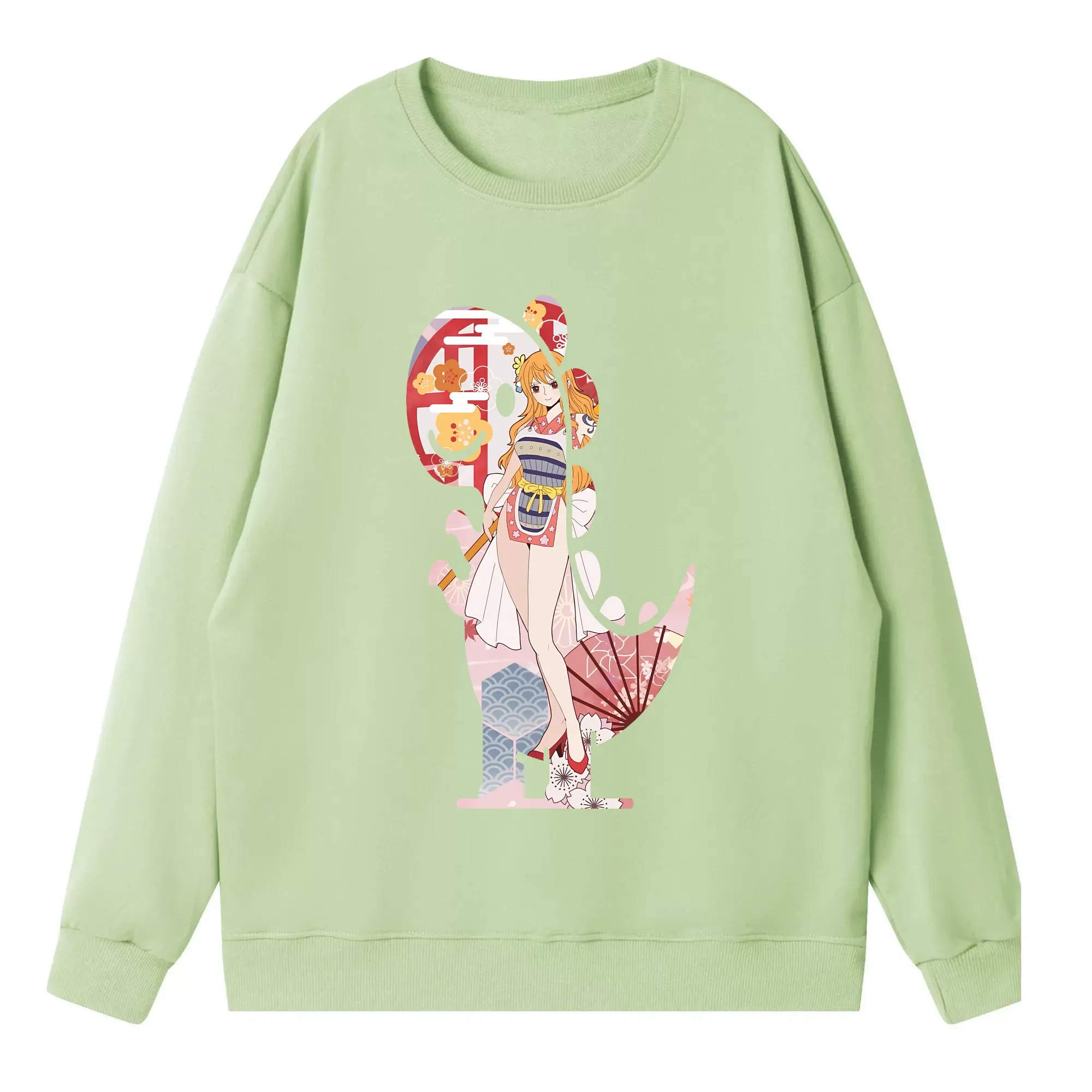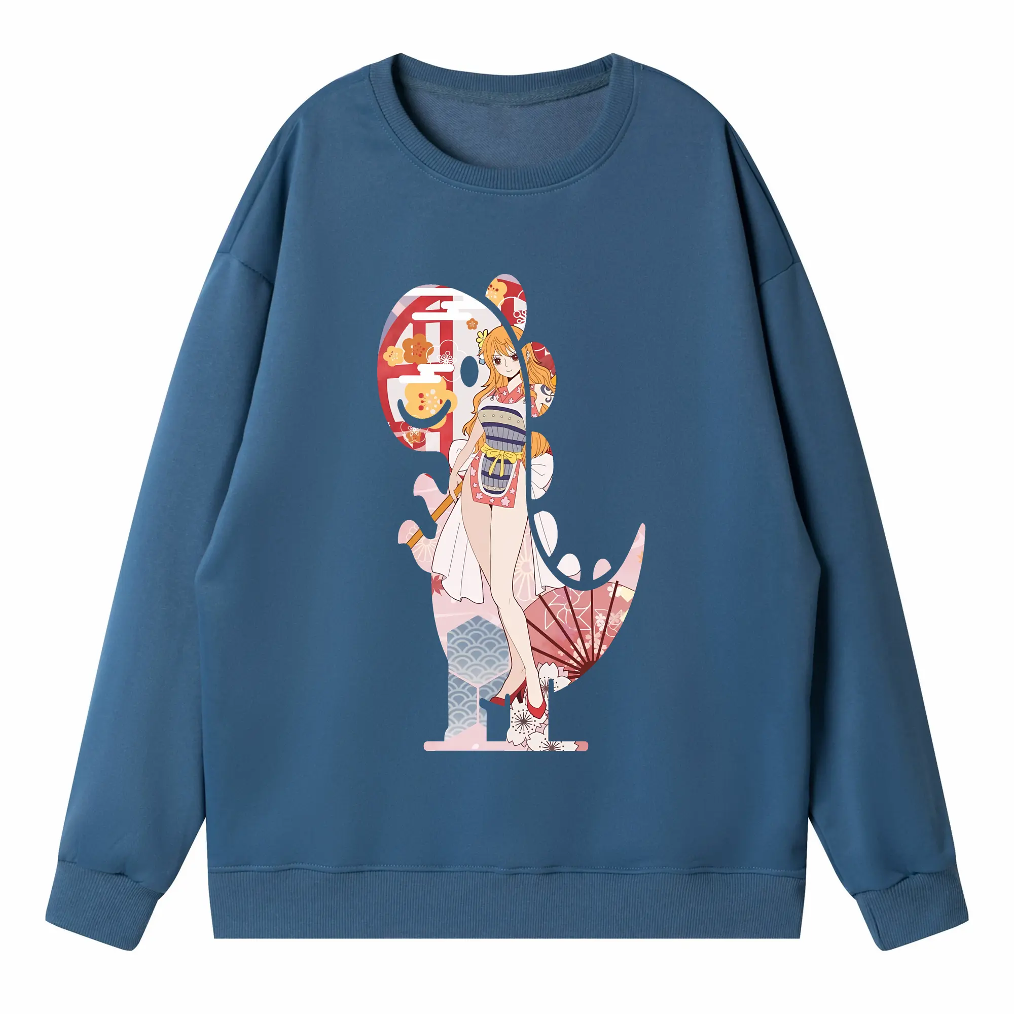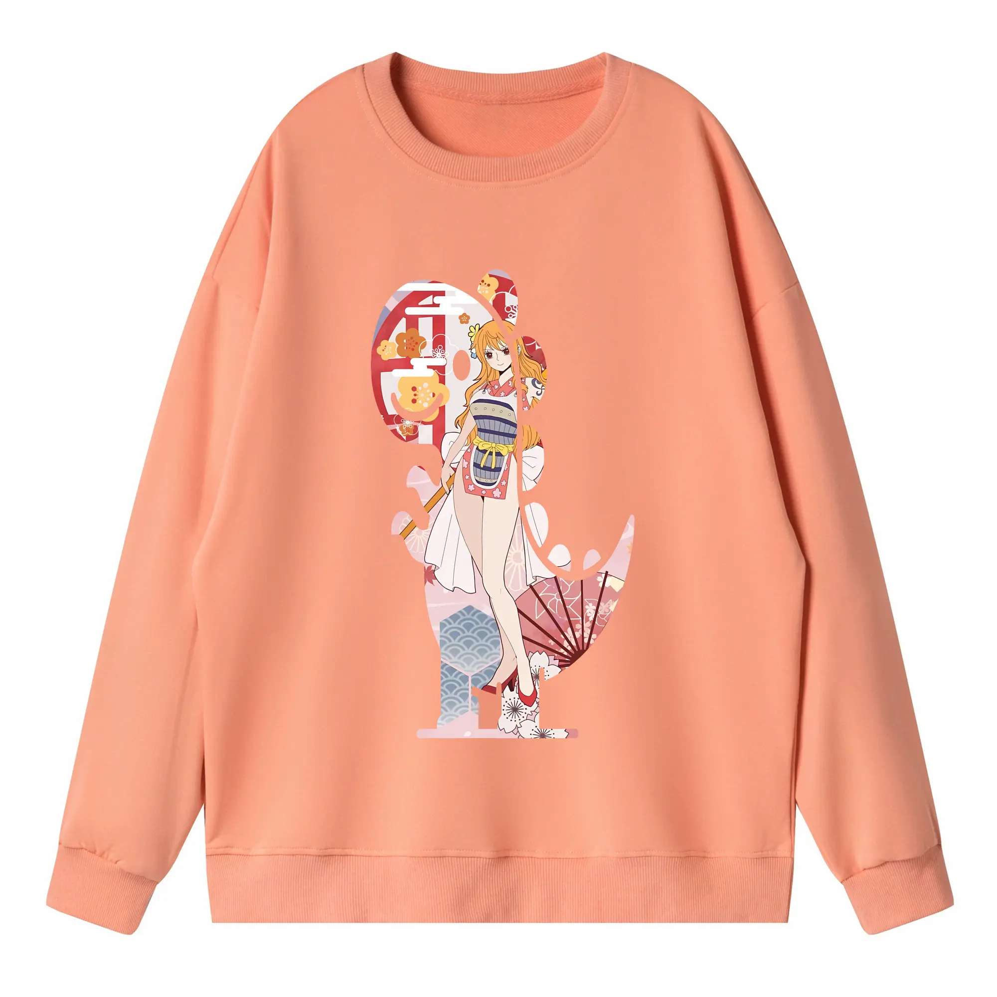 ワンピース グッズ ナミ - 高品質 クルーネック スウェット ・ コットン59% ポリエステル41% ・ ユニセックス 長袖 トレーナー ・ カジュアル デイリー スポーツ 散歩用