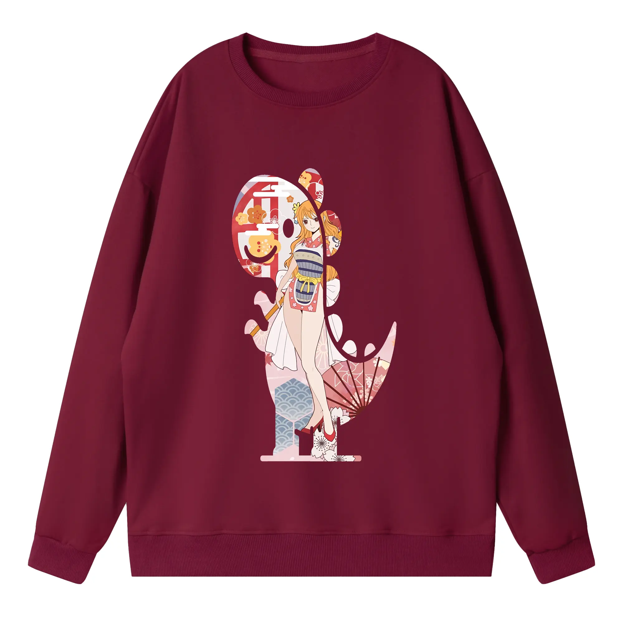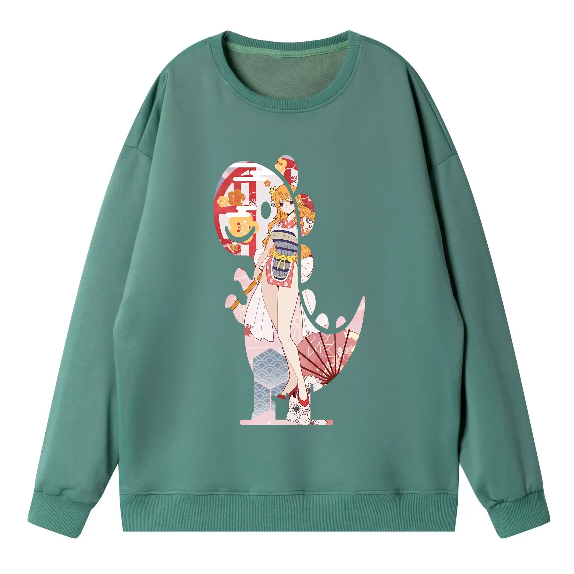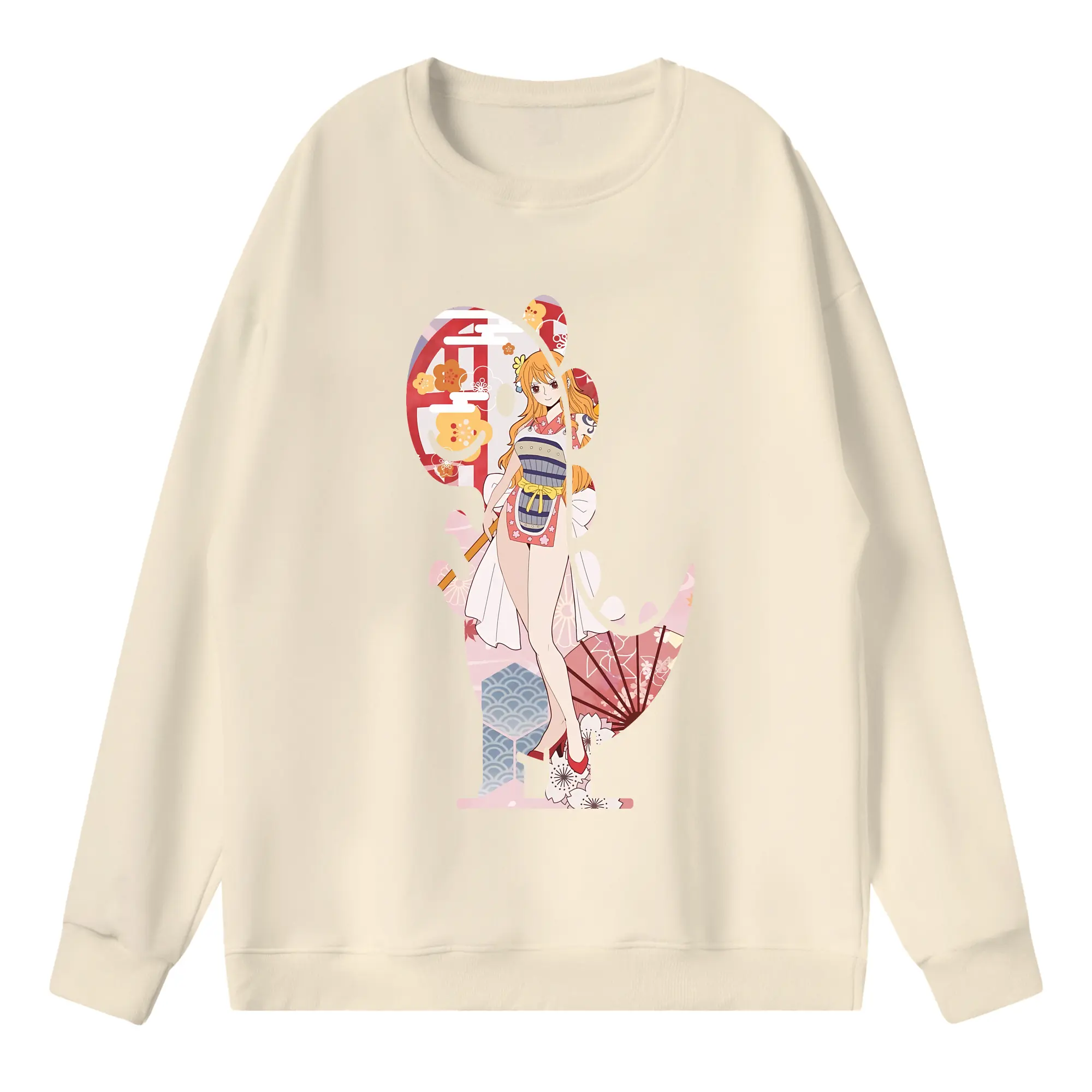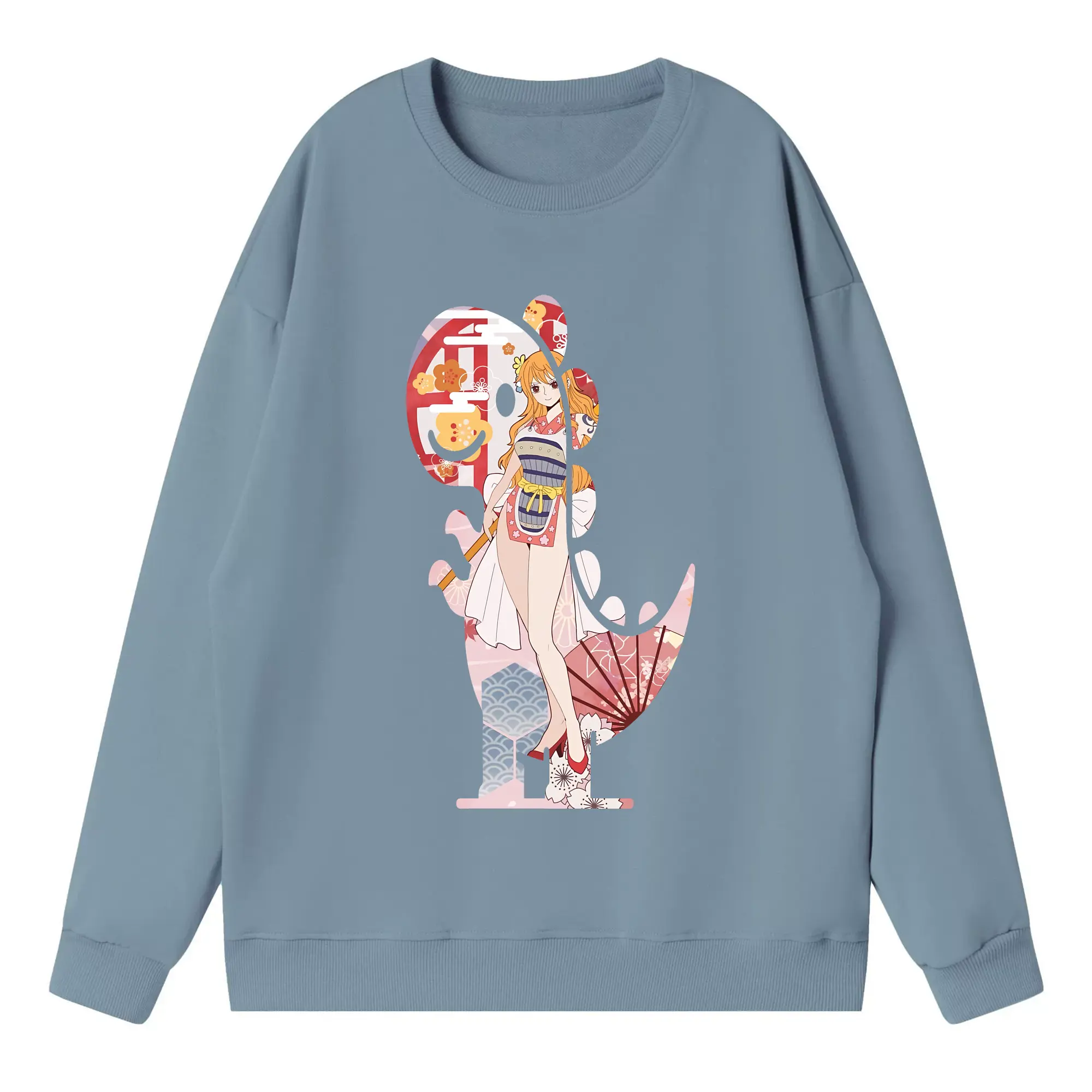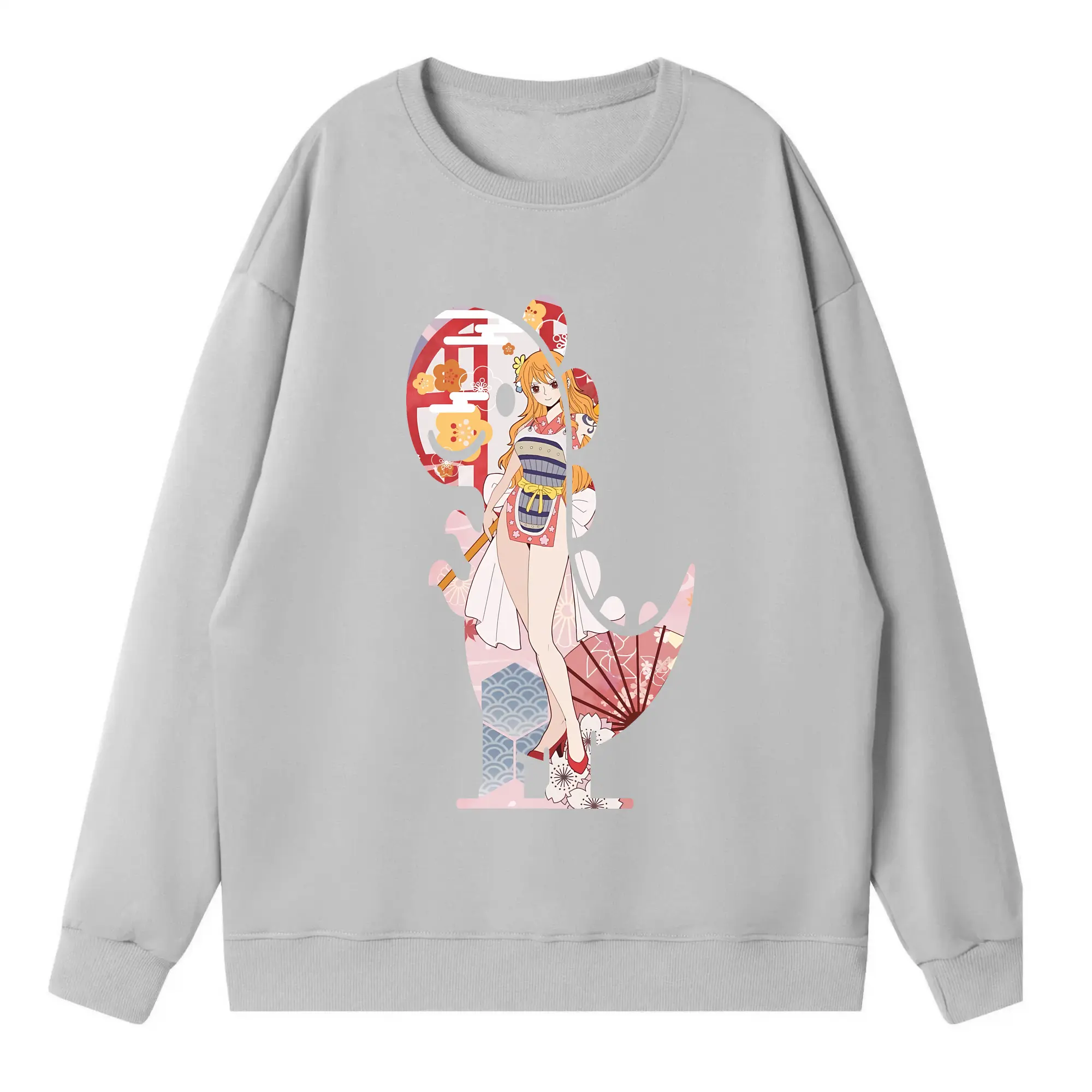 ワンピース グッズ ナミ - 高品質 クルーネック スウェット ・ コットン59% ポリエステル41% ・ ユニセックス 長袖 トレーナー ・ カジュアル デイリー スポーツ 散歩用
