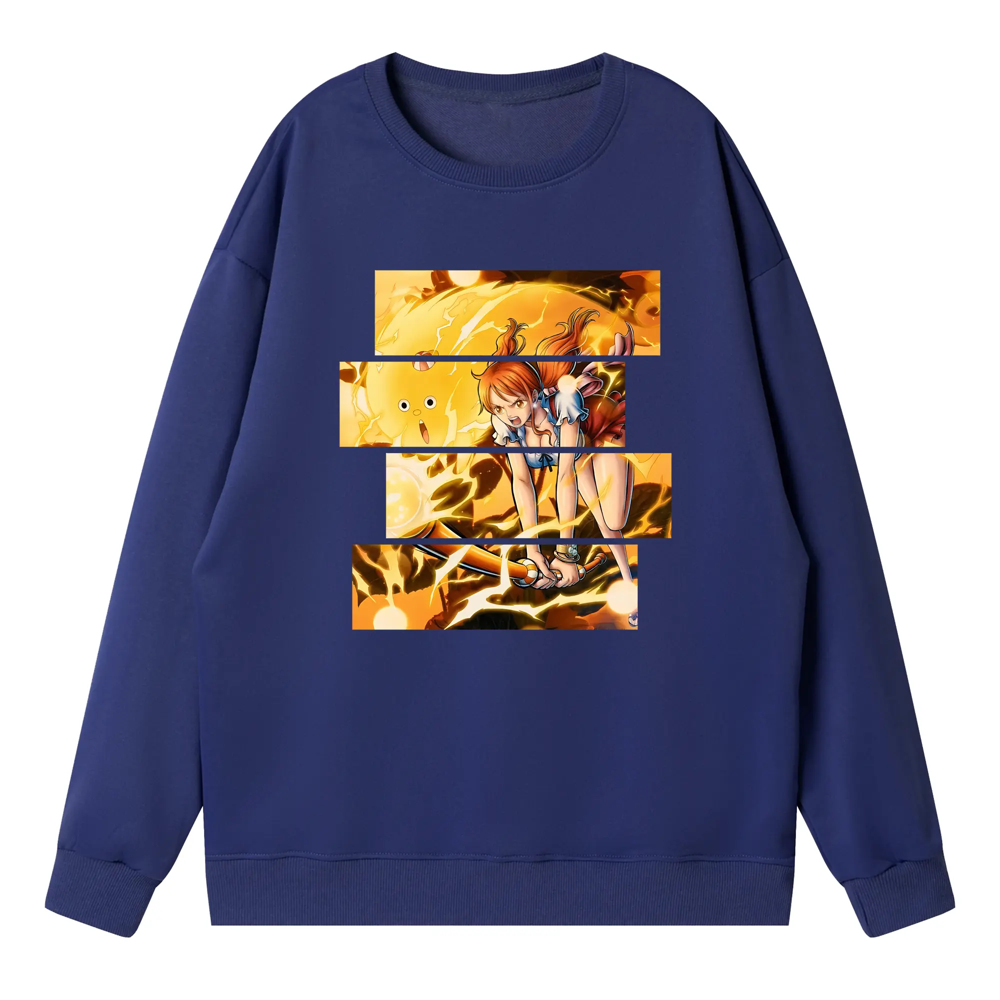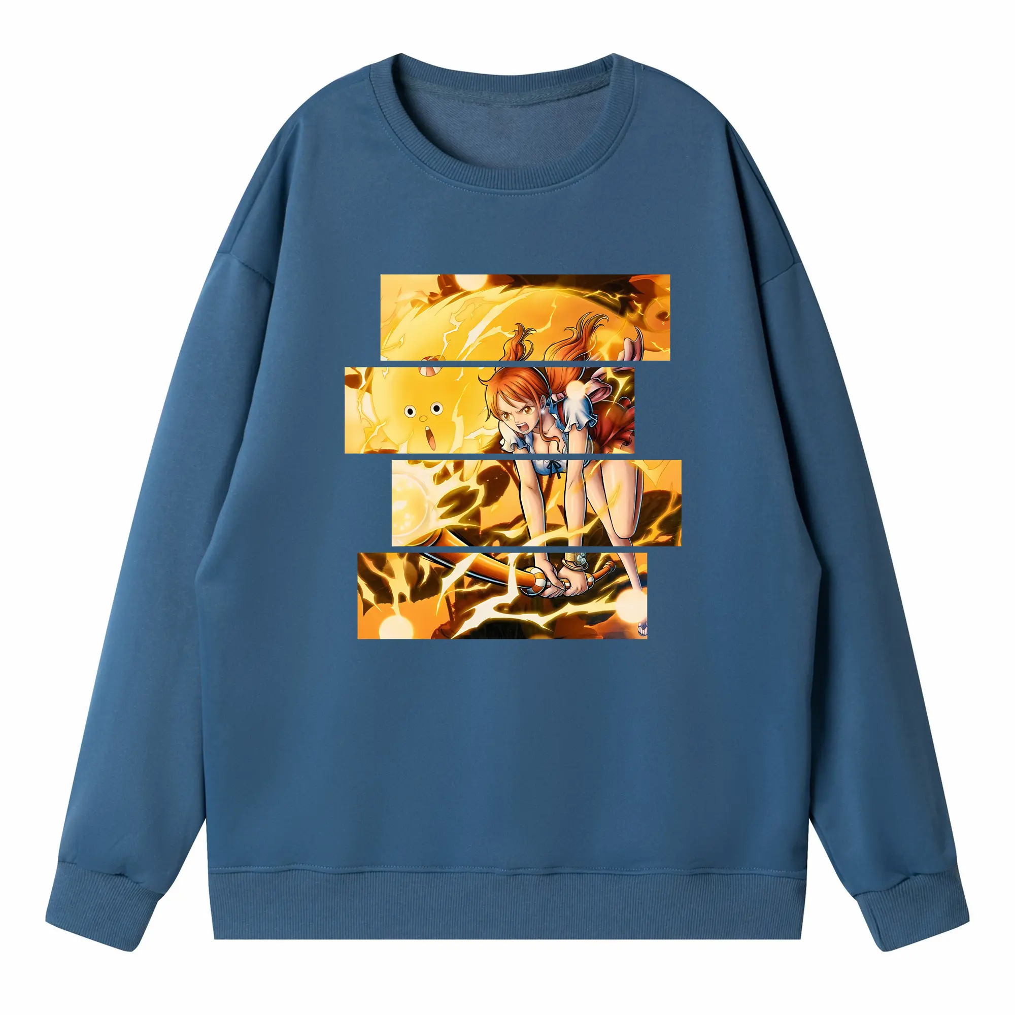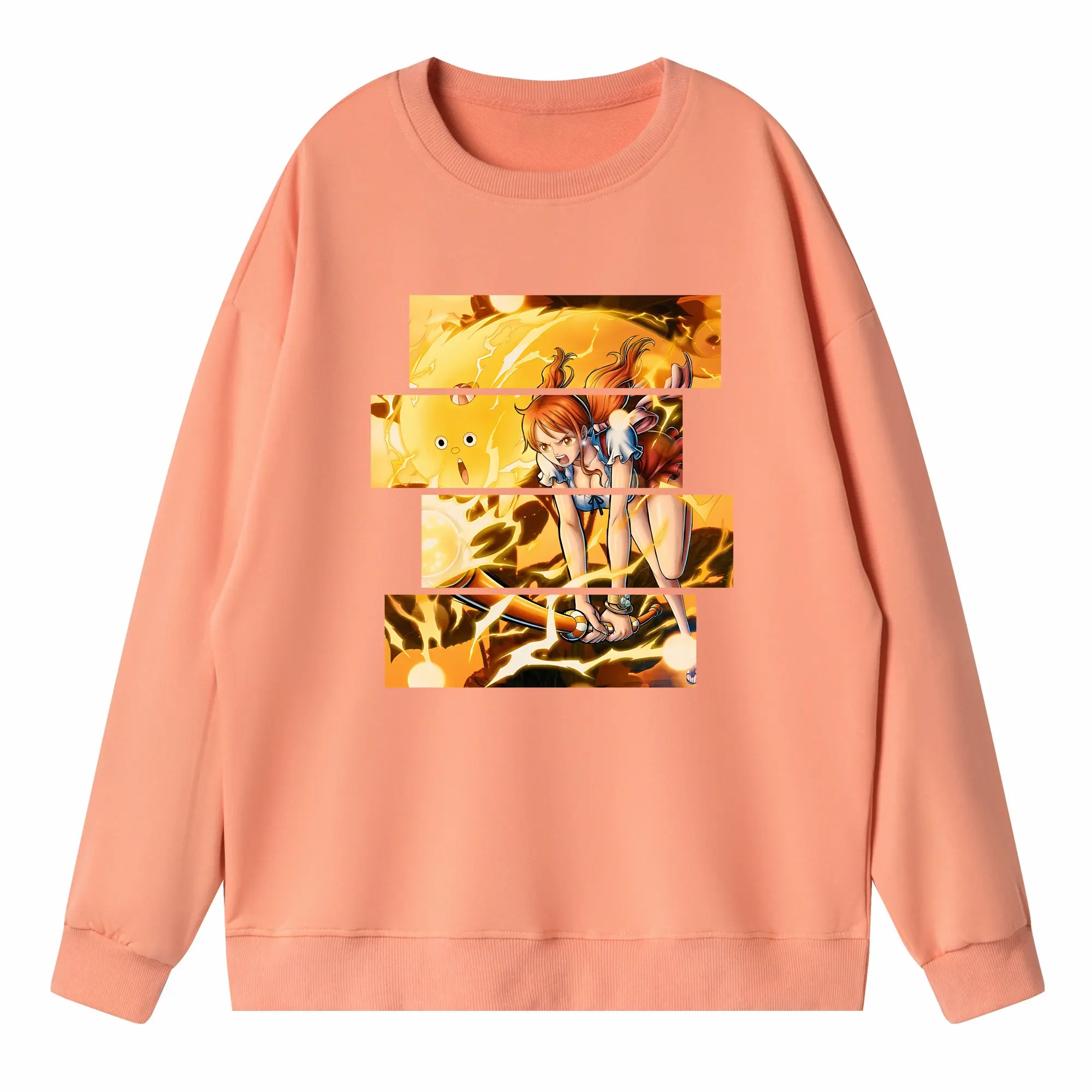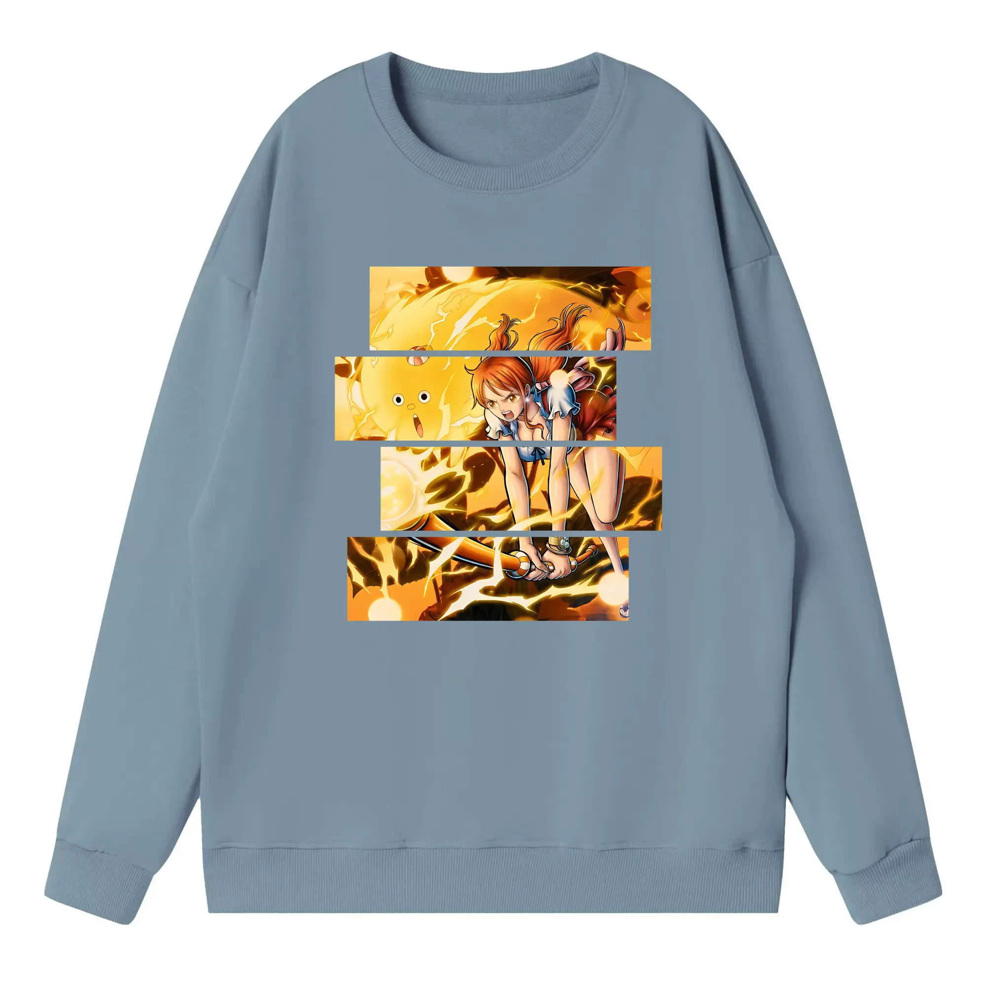 ワンピース グッズ ナミ - 高品質 クルーネック スウェット ・ コットン59% ポリエステル41% ・ ユニセックス 長袖 トレーナー ・ カジュアル デイリー スポーツ 散歩用