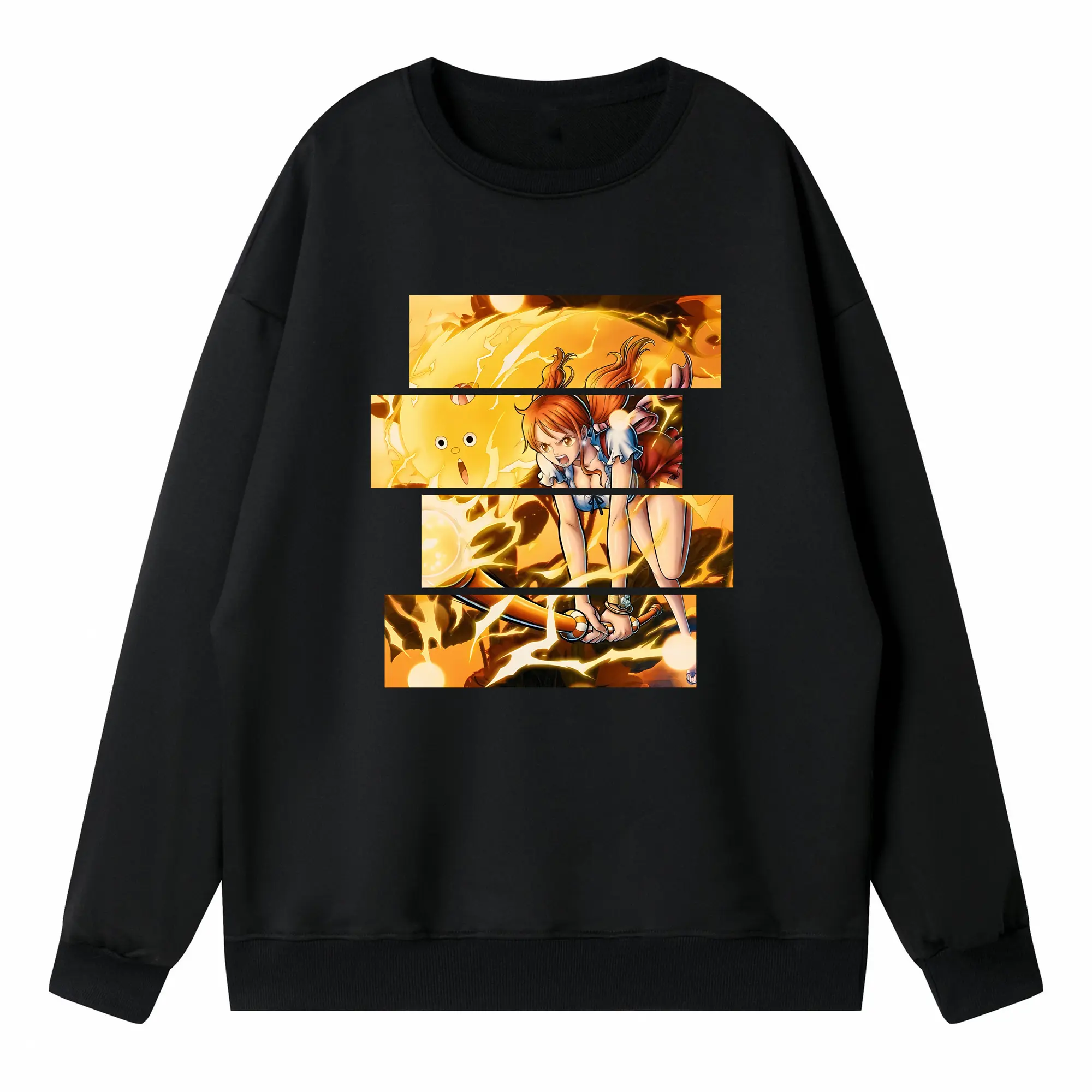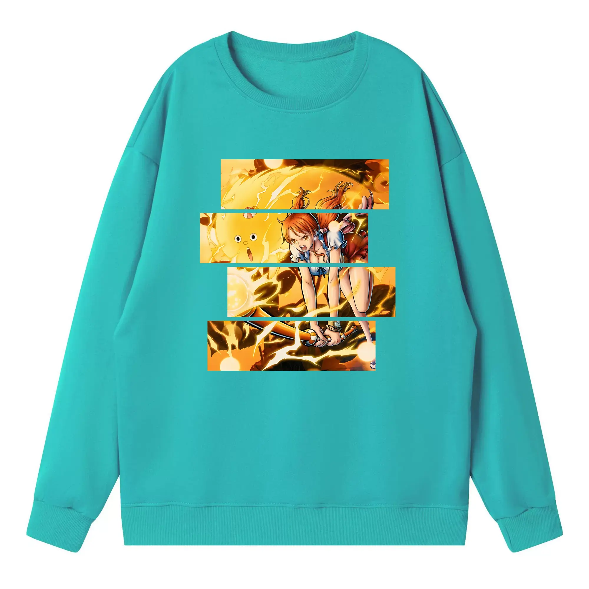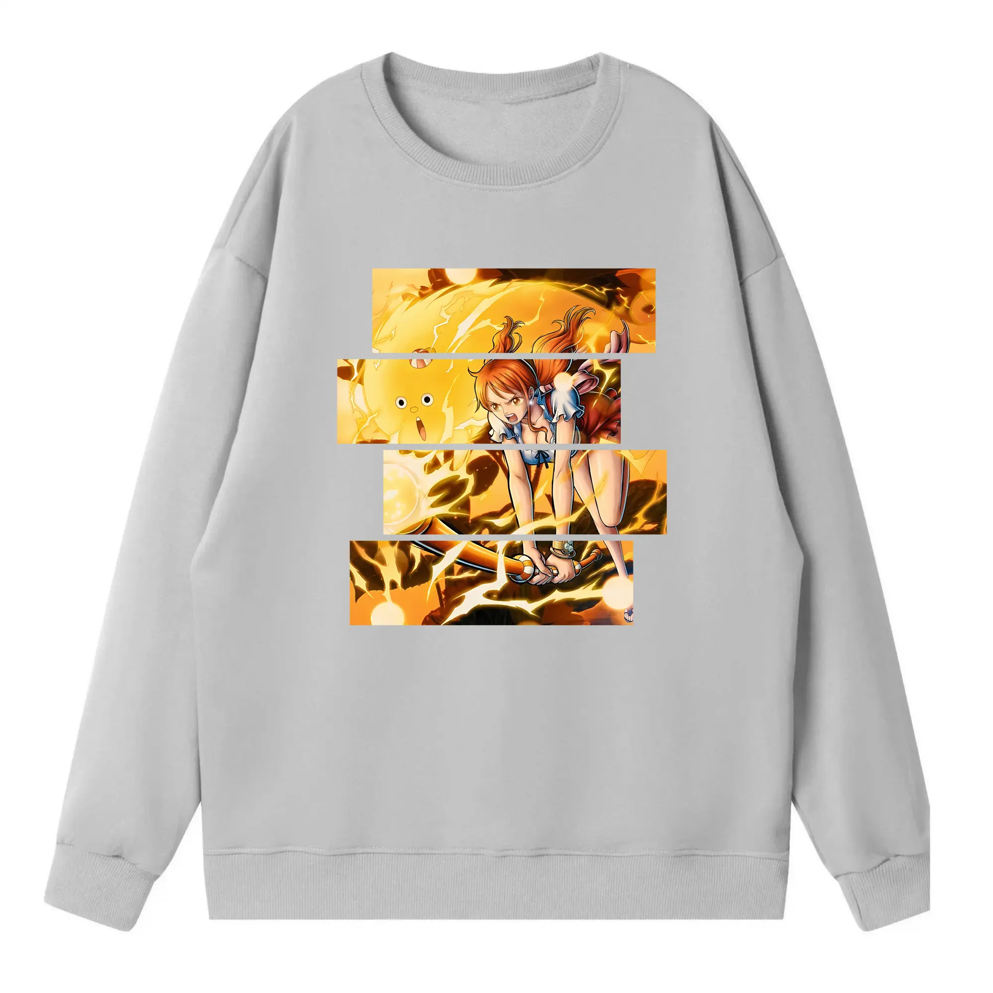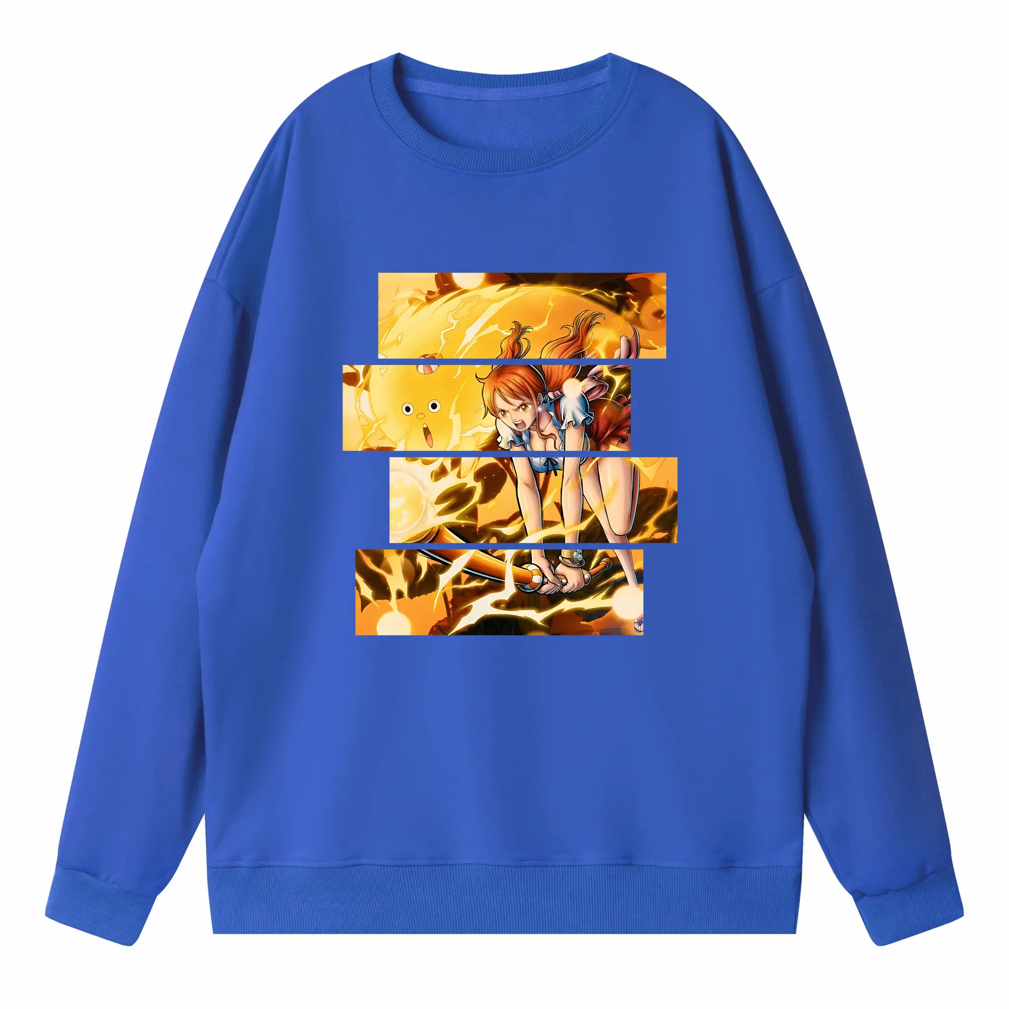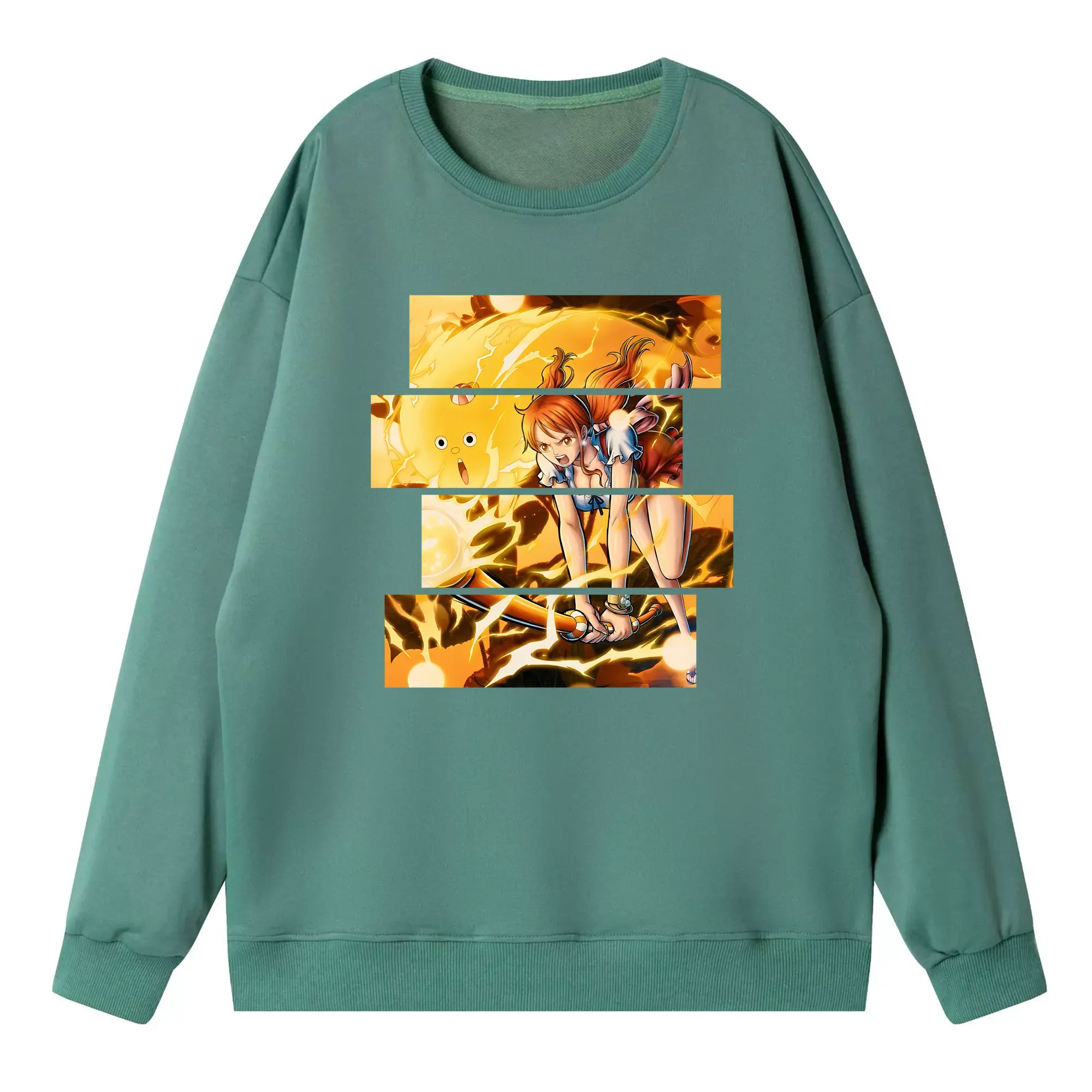 ワンピース グッズ ナミ - 高品質 クルーネック スウェット ・ コットン59% ポリエステル41% ・ ユニセックス 長袖 トレーナー ・ カジュアル デイリー スポーツ 散歩用