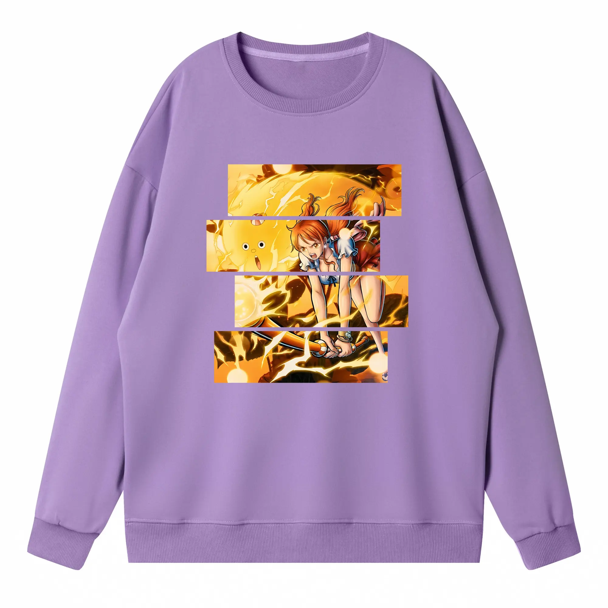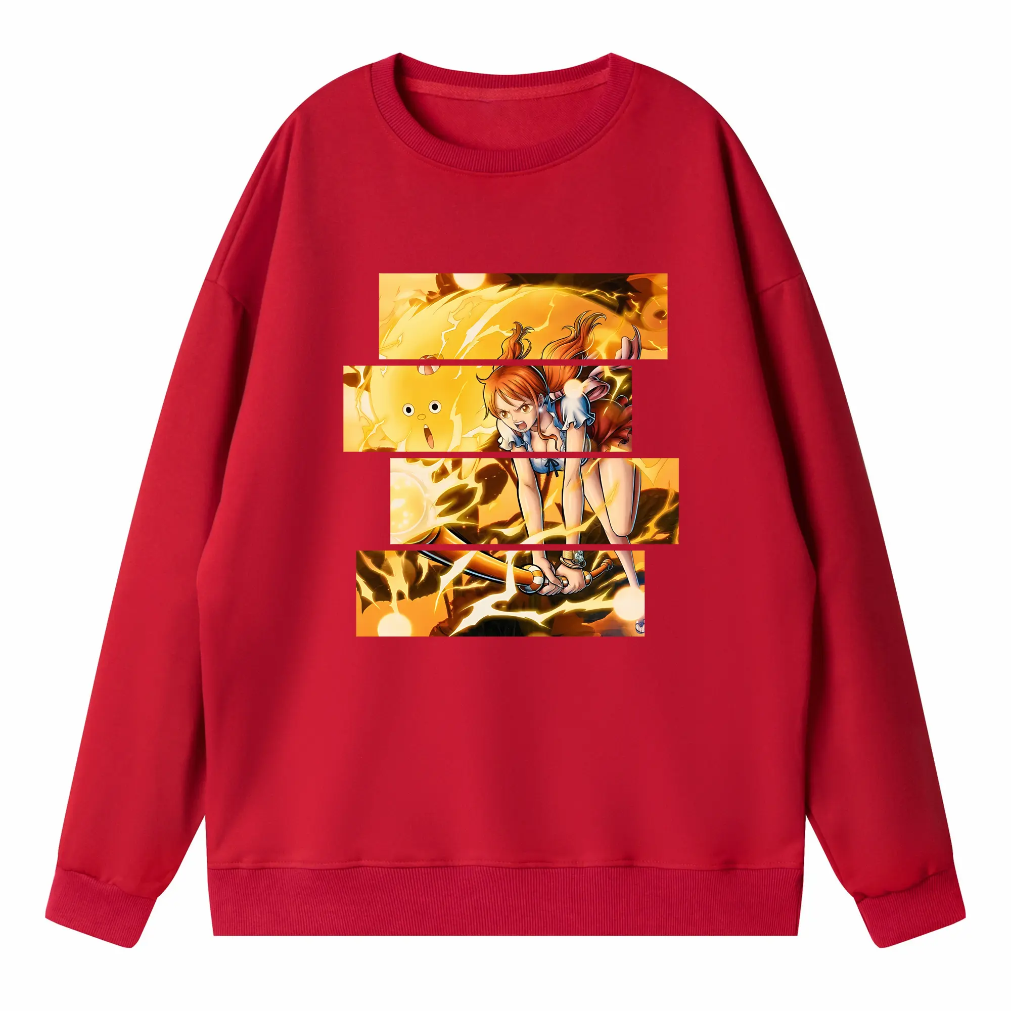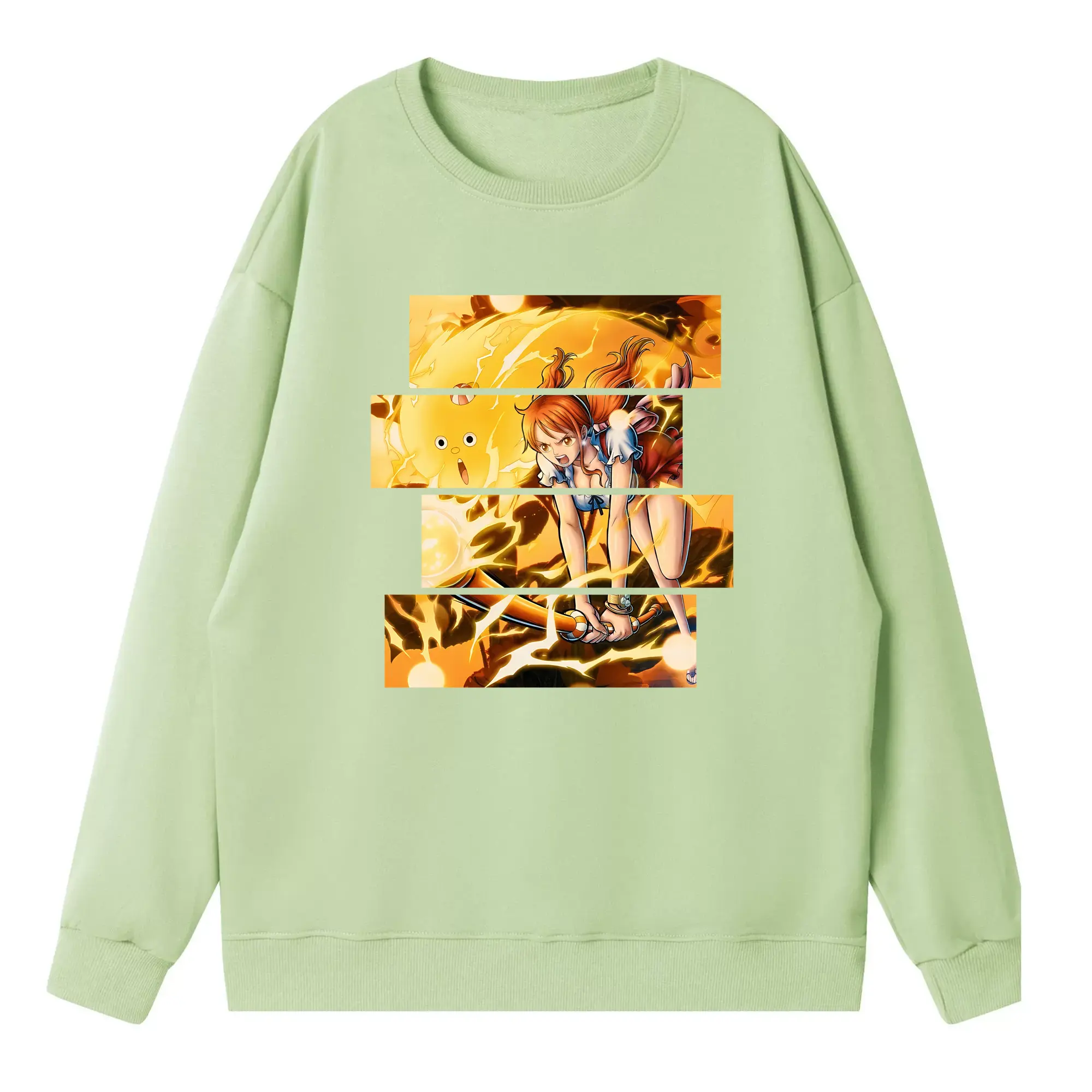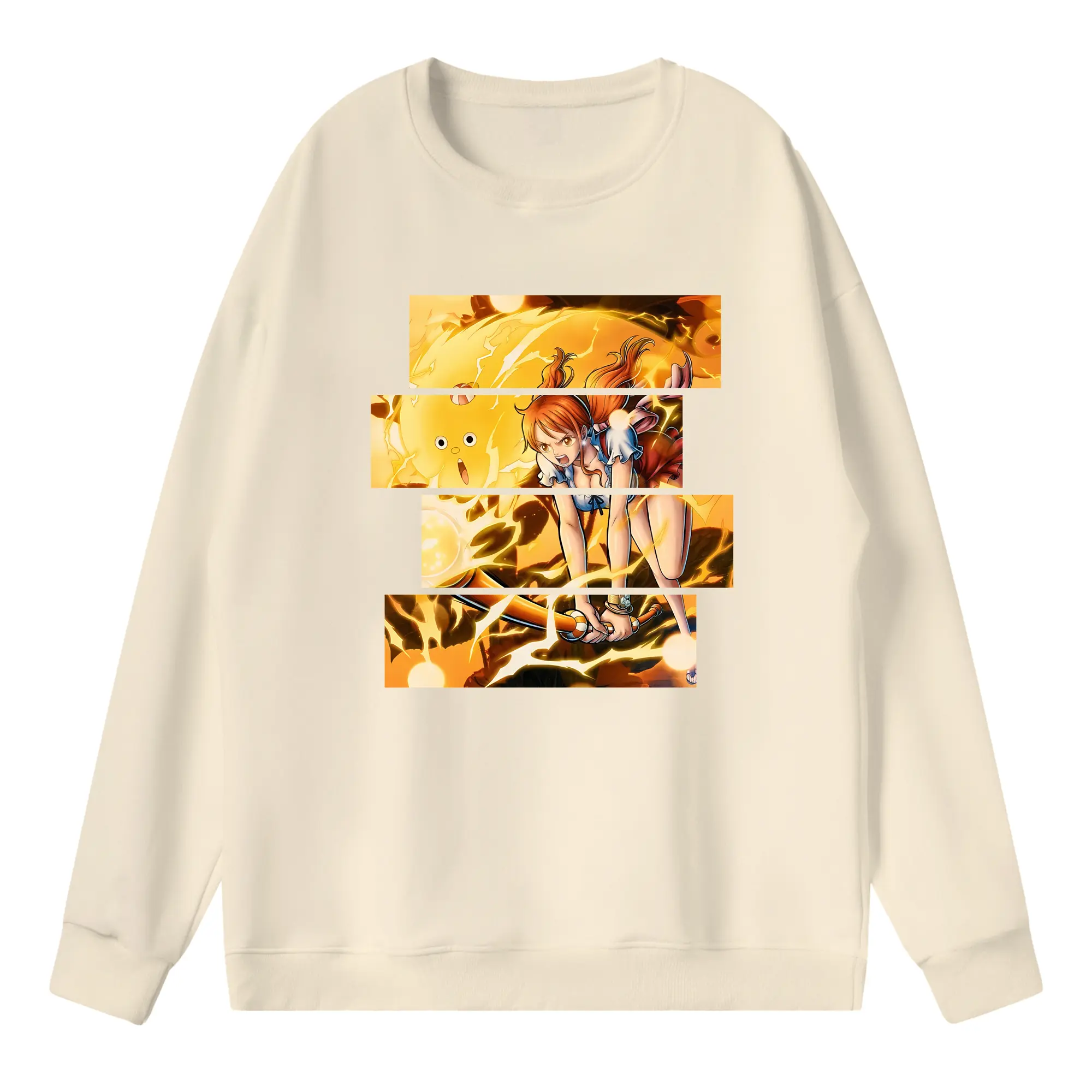 ワンピース グッズ ナミ - 高品質 クルーネック スウェット ・ コットン59% ポリエステル41% ・ ユニセックス 長袖 トレーナー ・ カジュアル デイリー スポーツ 散歩用