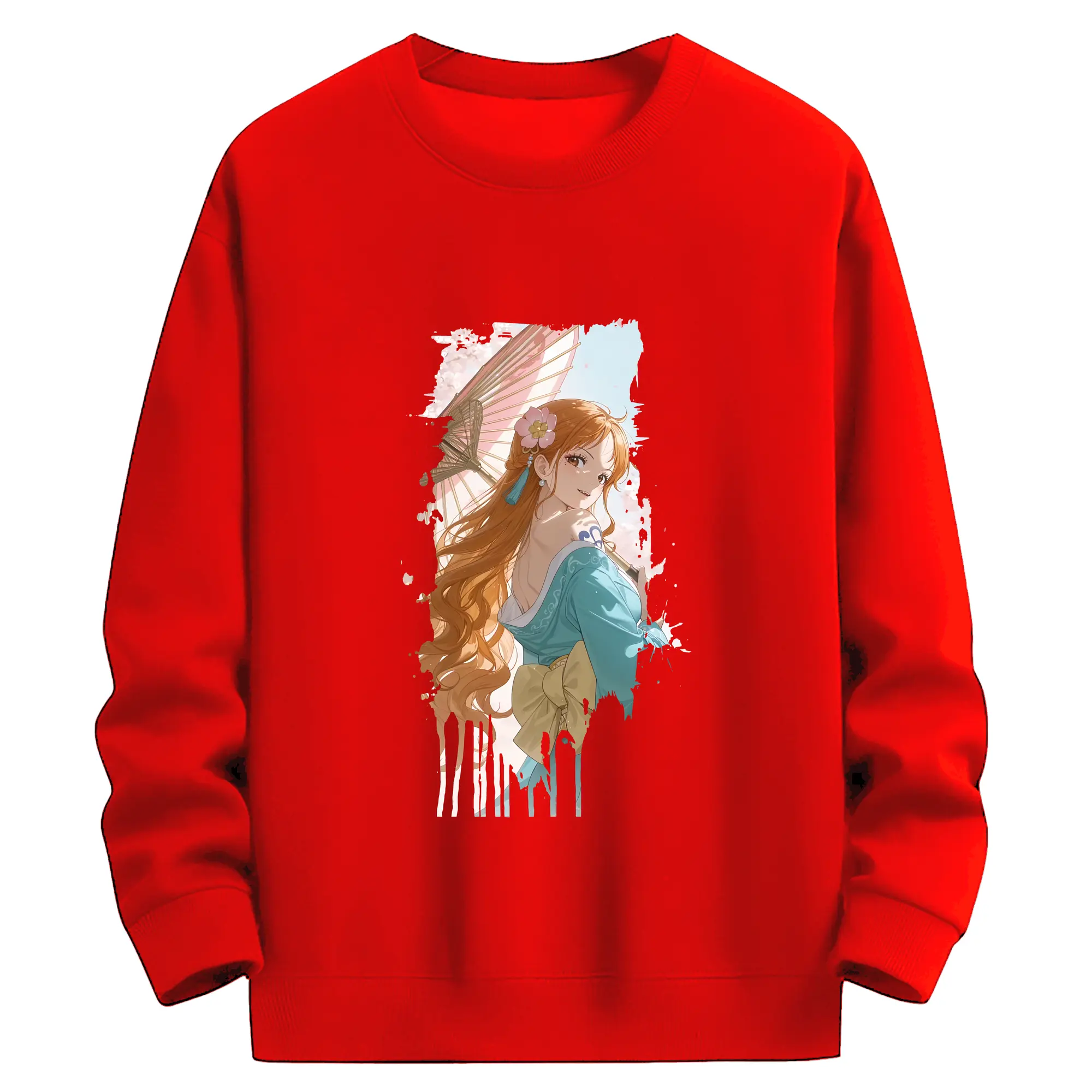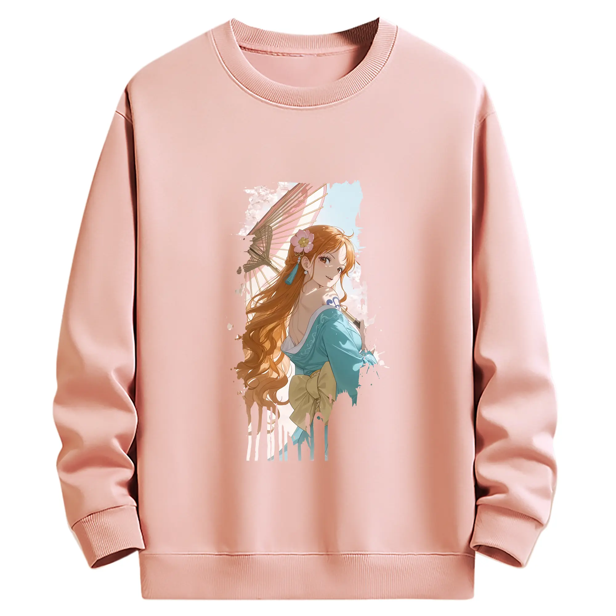 ワンピース グッズ ナミ - 薄手 クルーネック スウェット 裏毛260g · ポリエステル 春秋向け カジュアル 男女兼用 · トレーナー デイリー スポーツ 散歩に最適