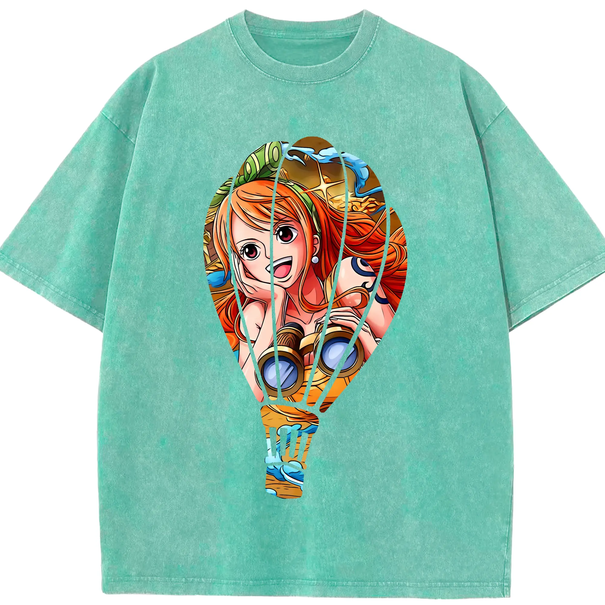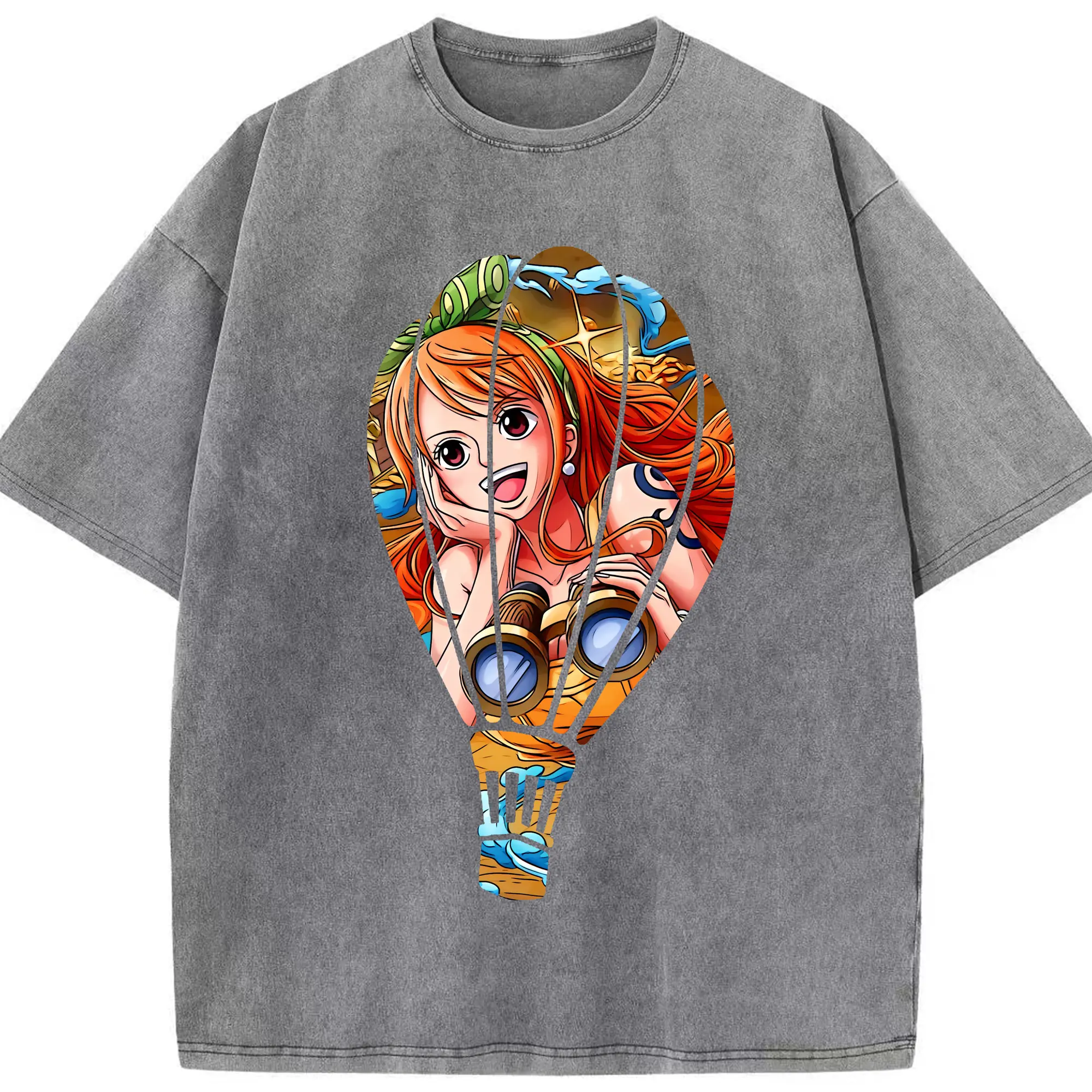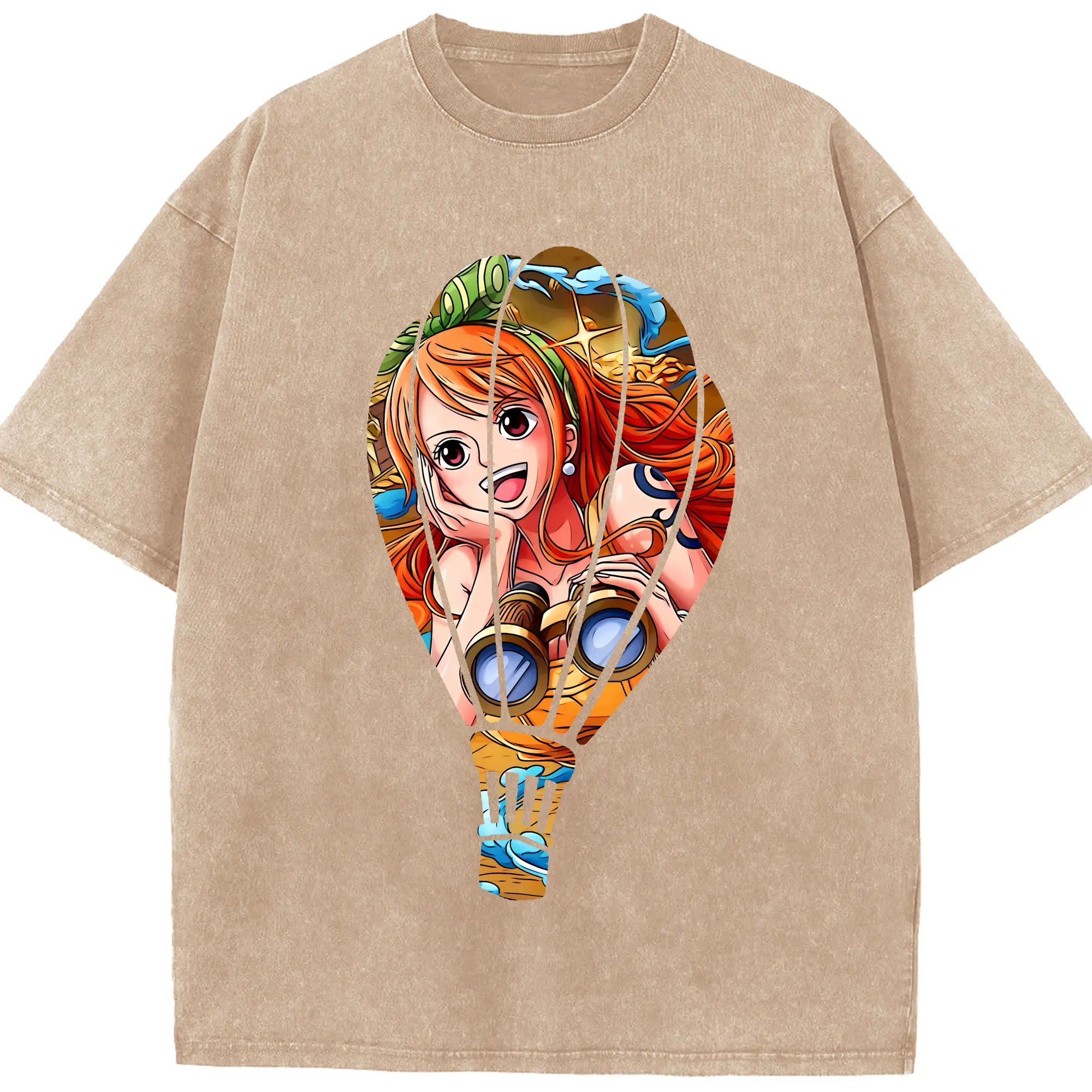 ワンピース グッズ ナミ - 綿100% ヴィンテージ風 半袖Tシャツ ・ 背面プリント ・ 柔らか肌触り ・ 通気性 快適 ・ スポーツ カジュアル 外出用