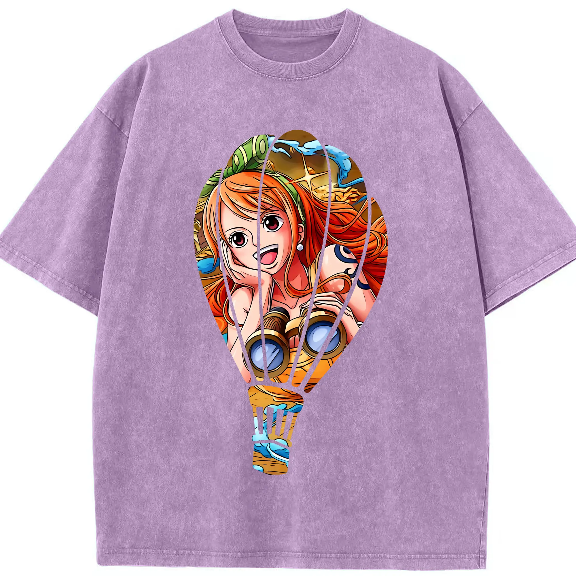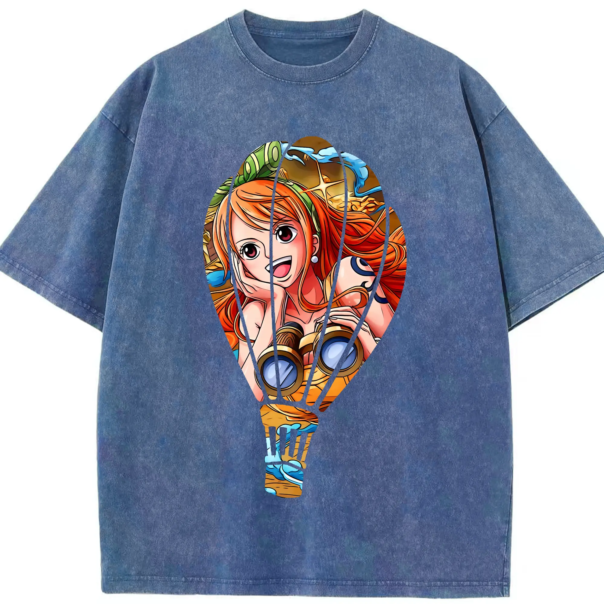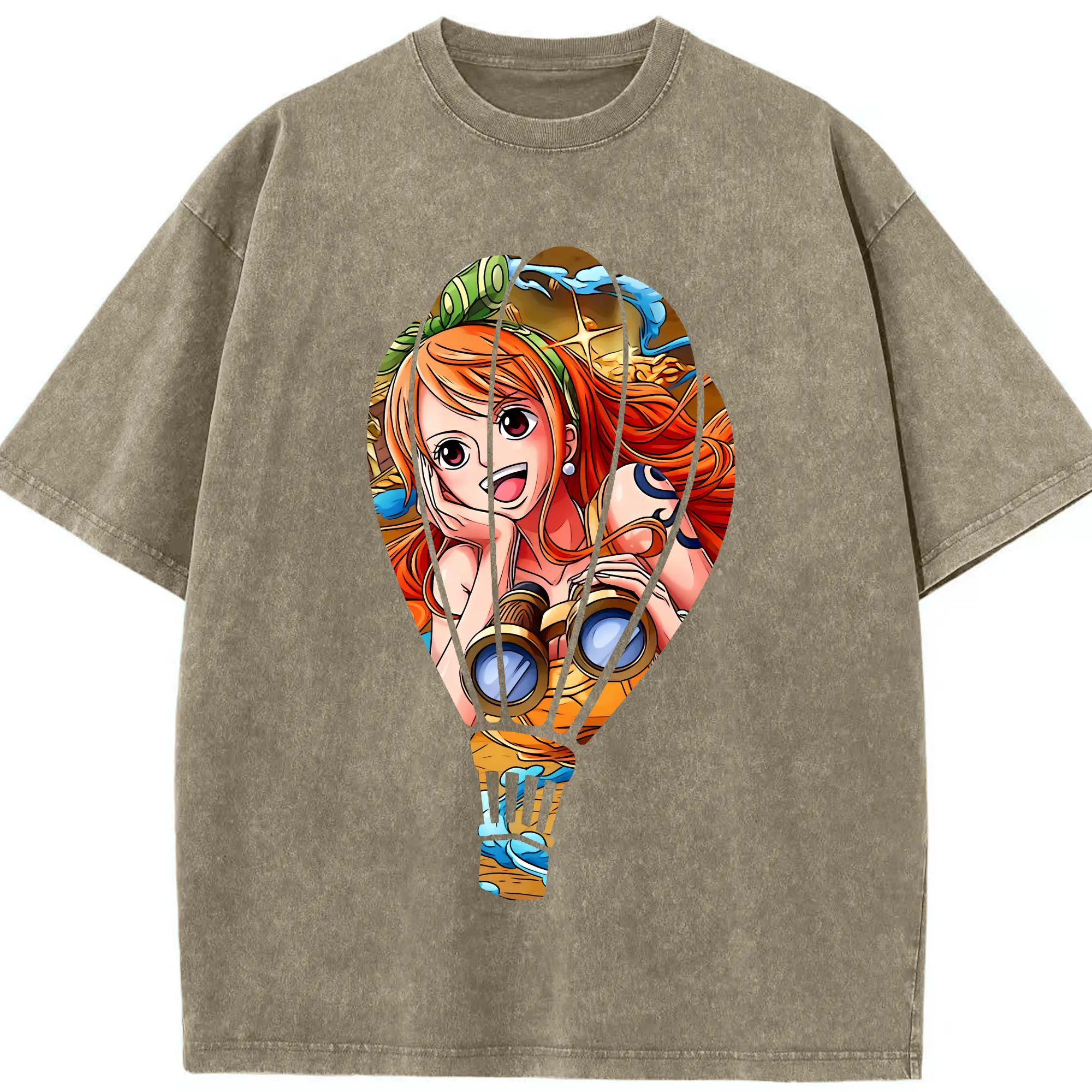 ワンピース グッズ ナミ - 綿100% ヴィンテージ風 半袖Tシャツ ・ 背面プリント ・ 柔らか肌触り ・ 通気性 快適 ・ スポーツ カジュアル 外出用