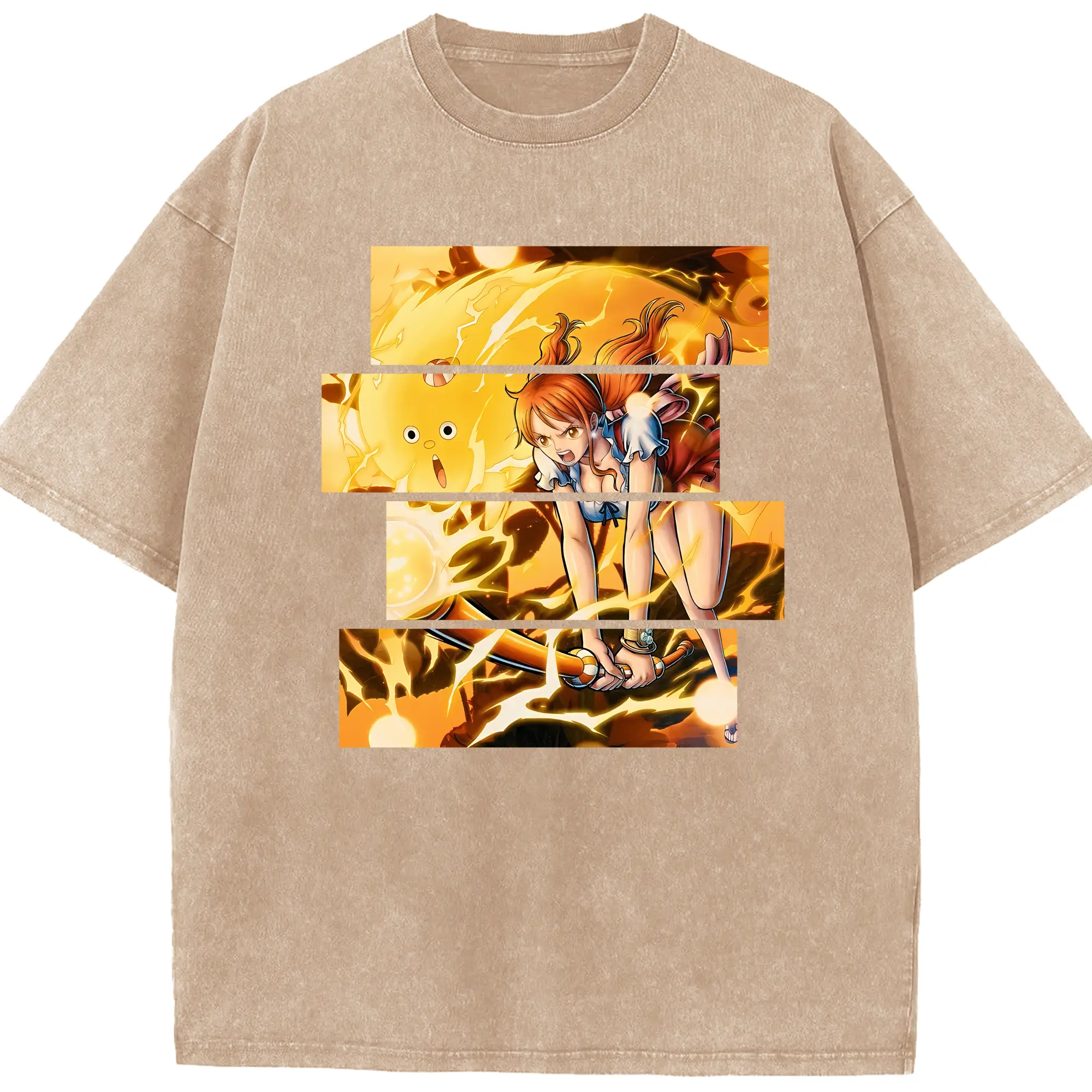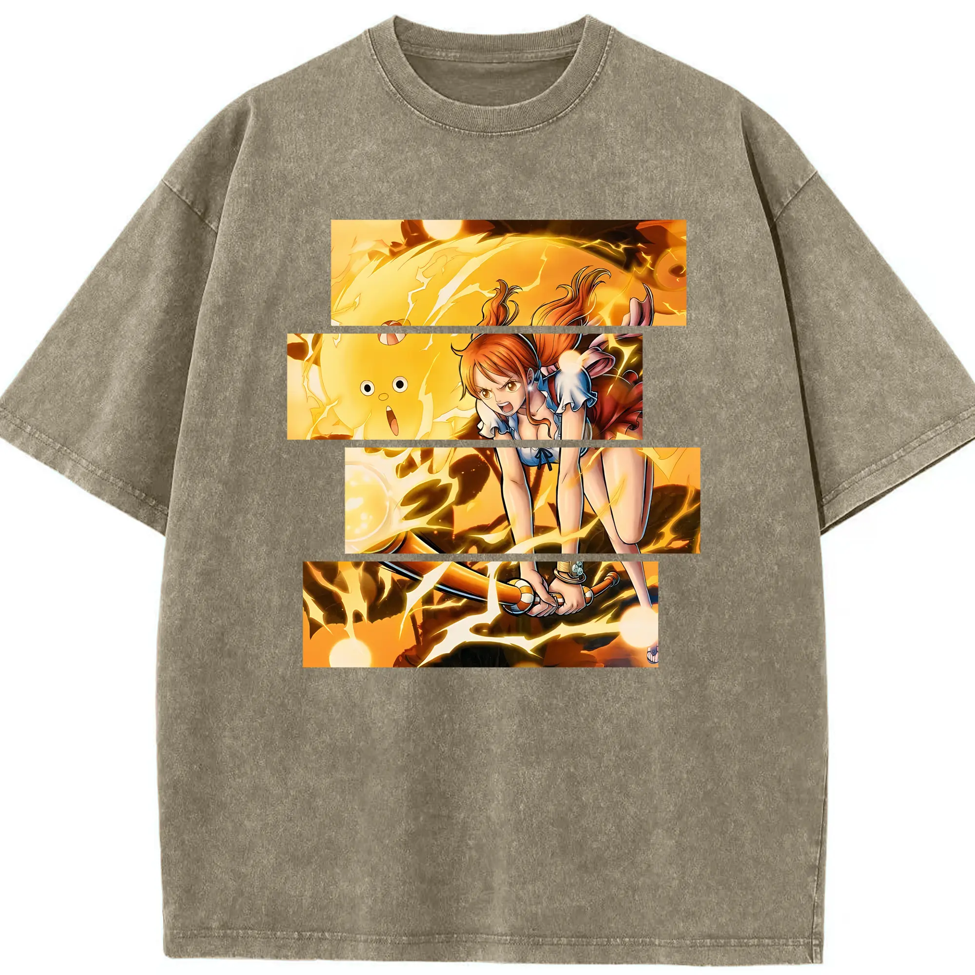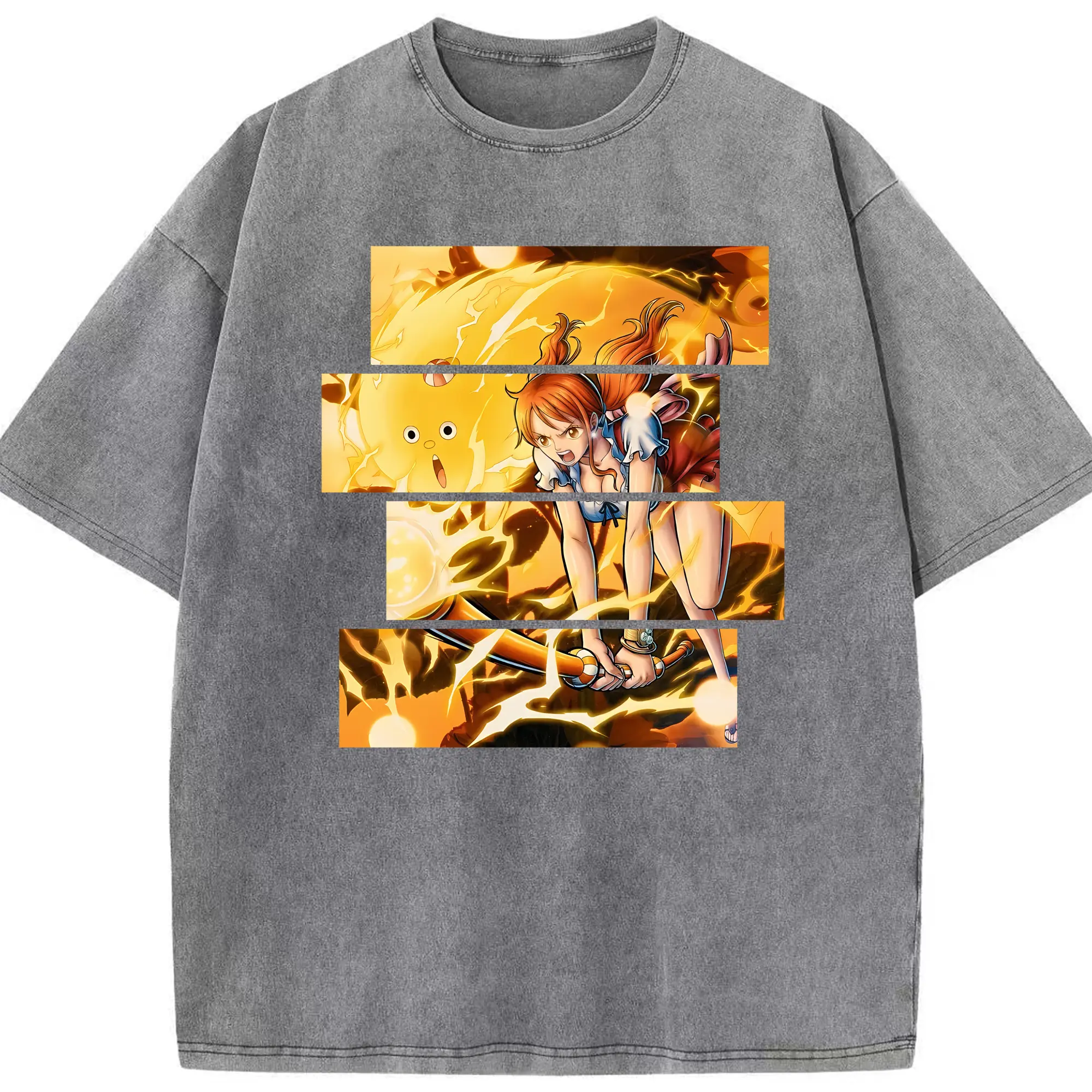 ワンピース グッズ ナミ - 綿100% ヴィンテージ風 半袖Tシャツ ・ 背面プリント ・ 柔らか肌触り ・ 通気性 快適 ・ スポーツ カジュアル 外出用