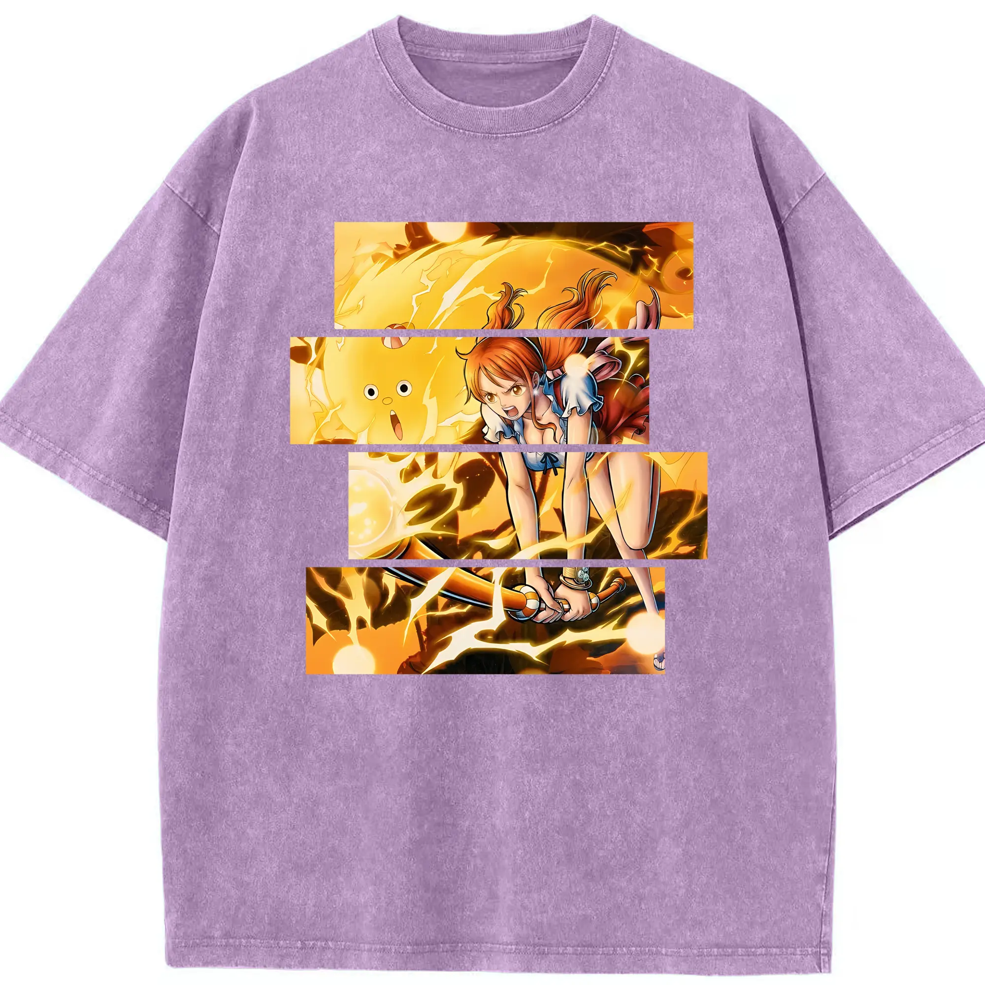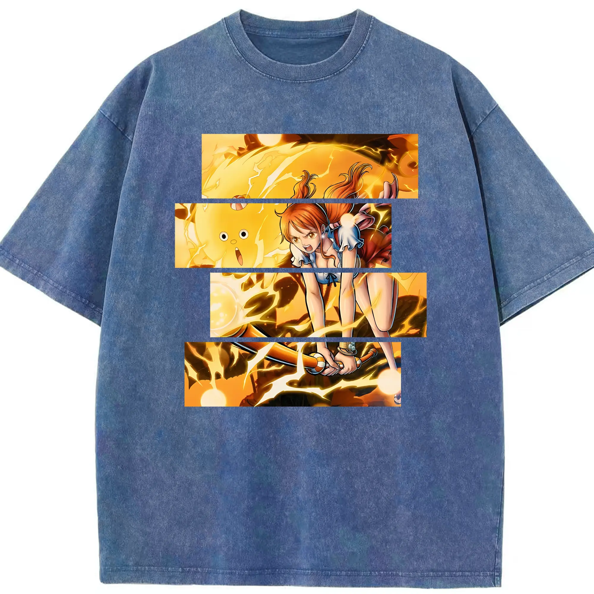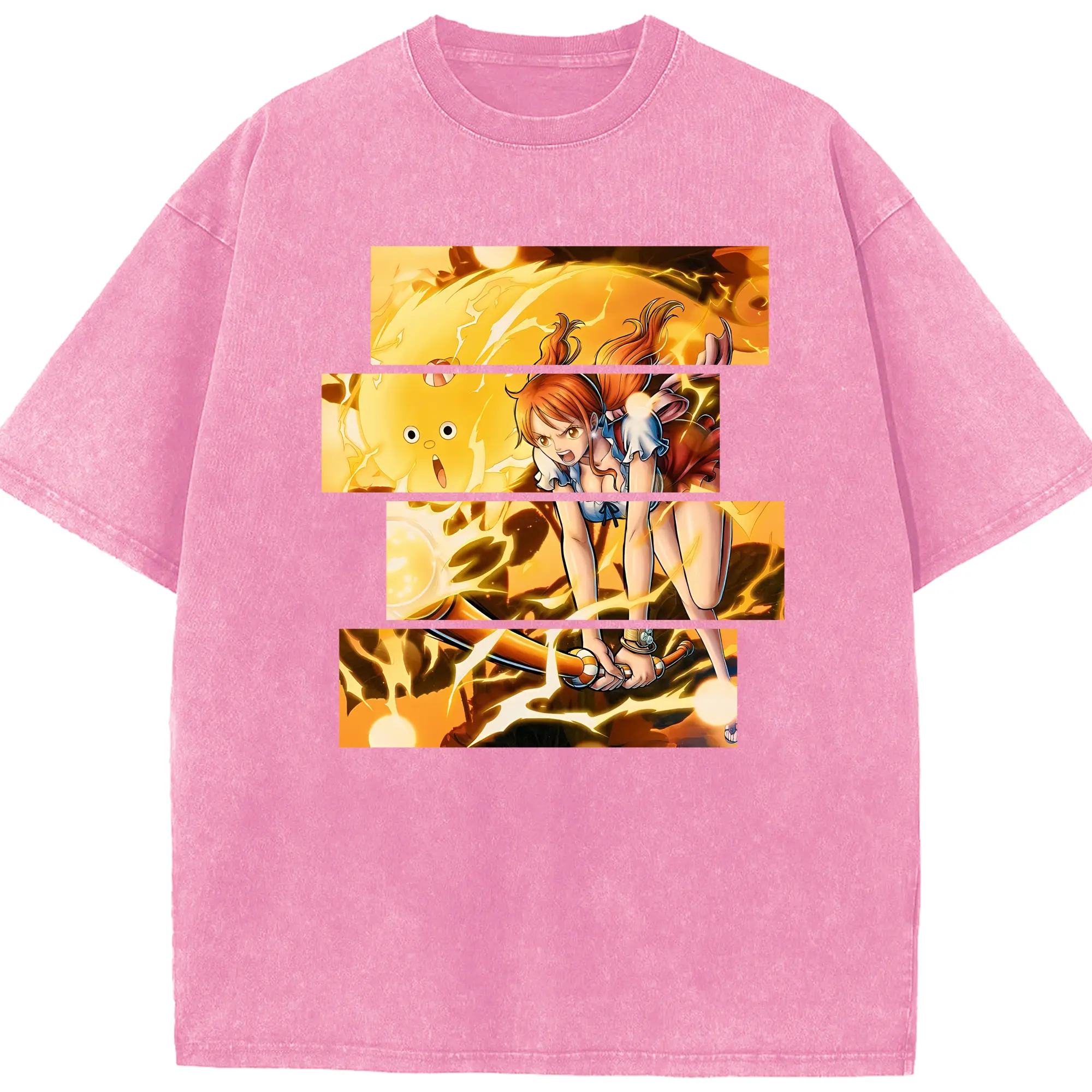ワンピース グッズ ナミ - 綿100% ヴィンテージ風 半袖Tシャツ ・ 背面プリント ・ 柔らか肌触り ・ 通気性 快適 ・ スポーツ カジュアル 外出用