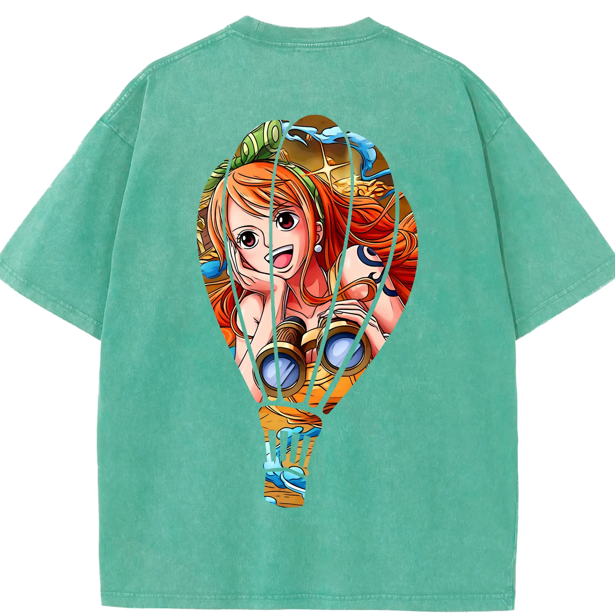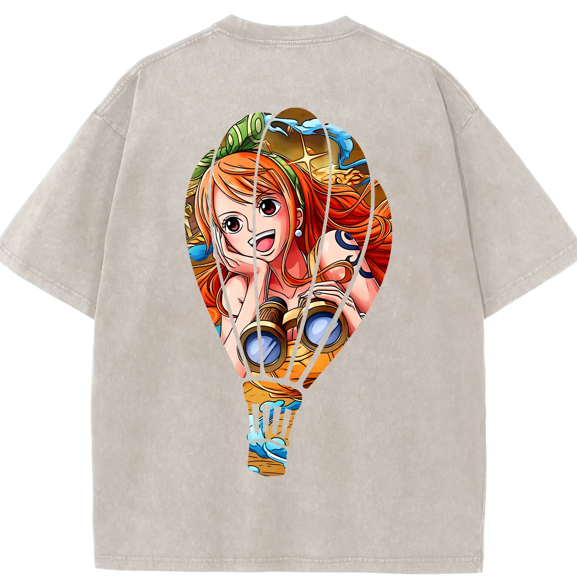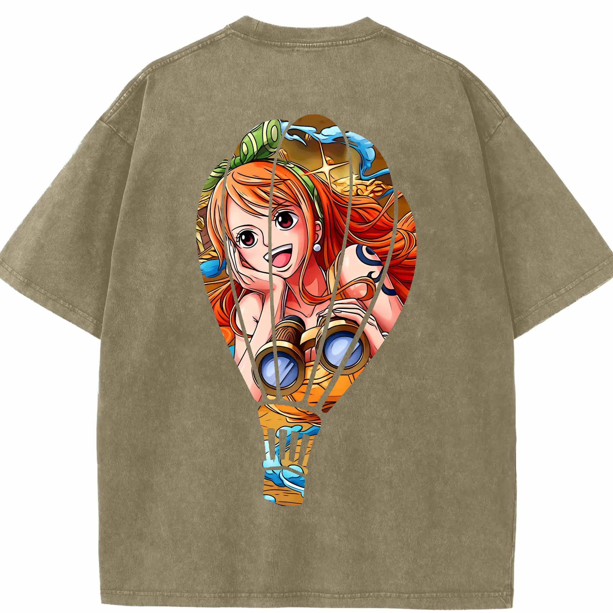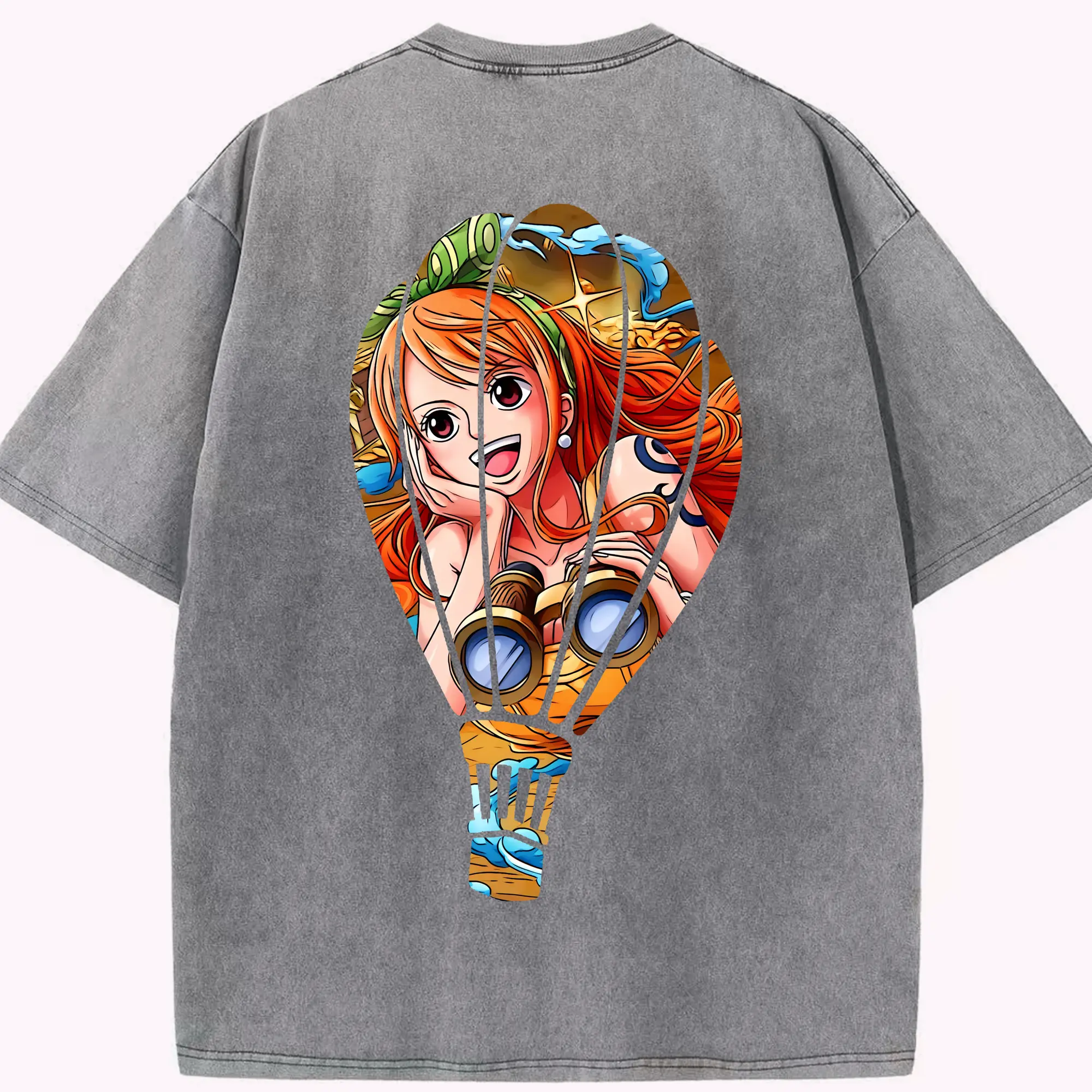 ワンピース グッズ ナミ - 綿100% ヴィンテージ風 半袖Tシャツ ・ フロントプリント ・ 柔らか肌触り ・ 通気性 快適 ・ スポーツ カジュアル 外出用