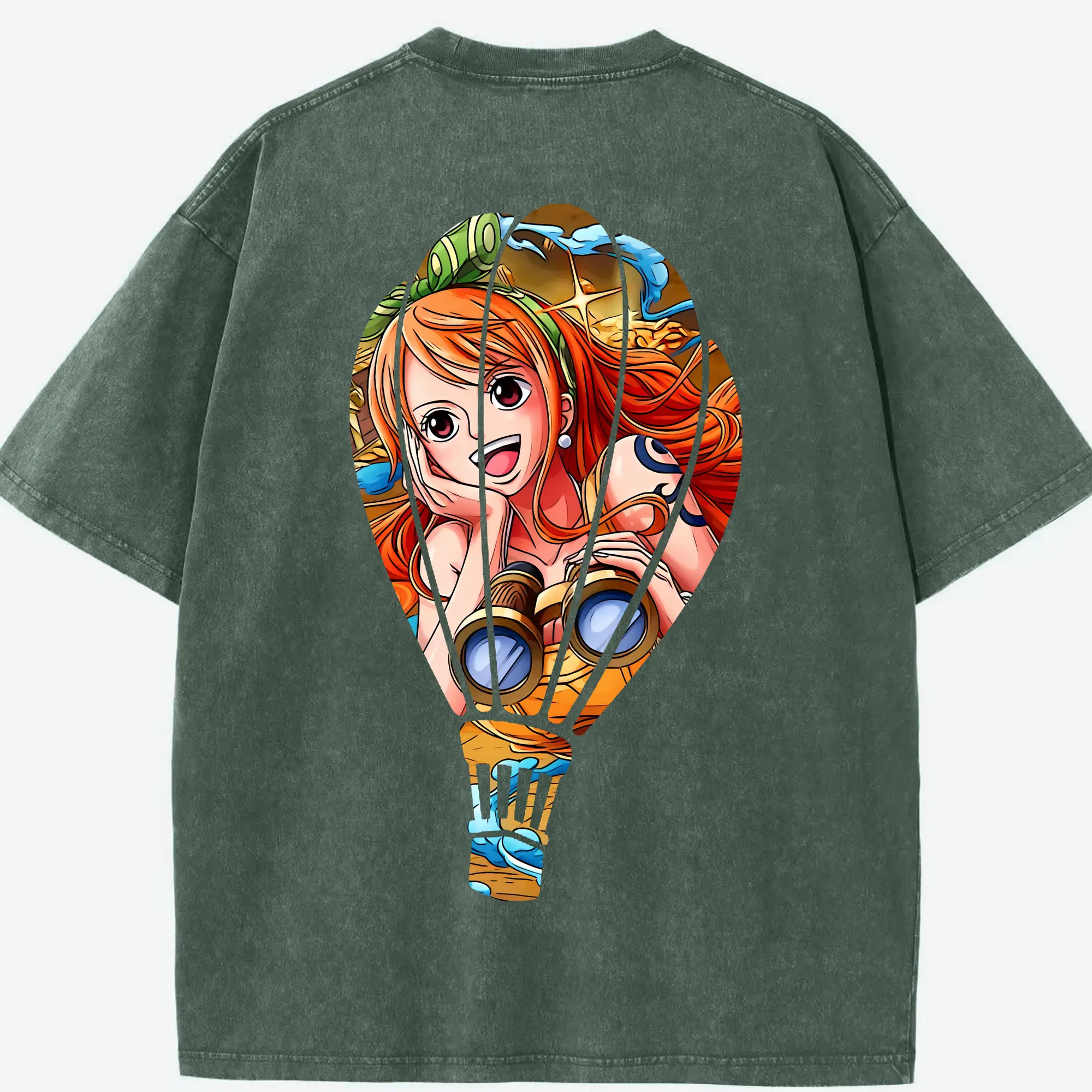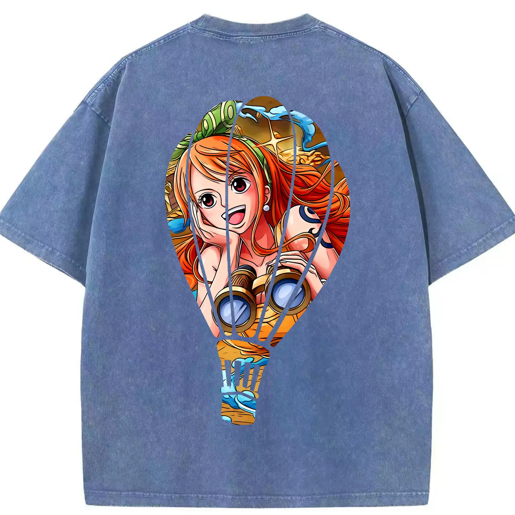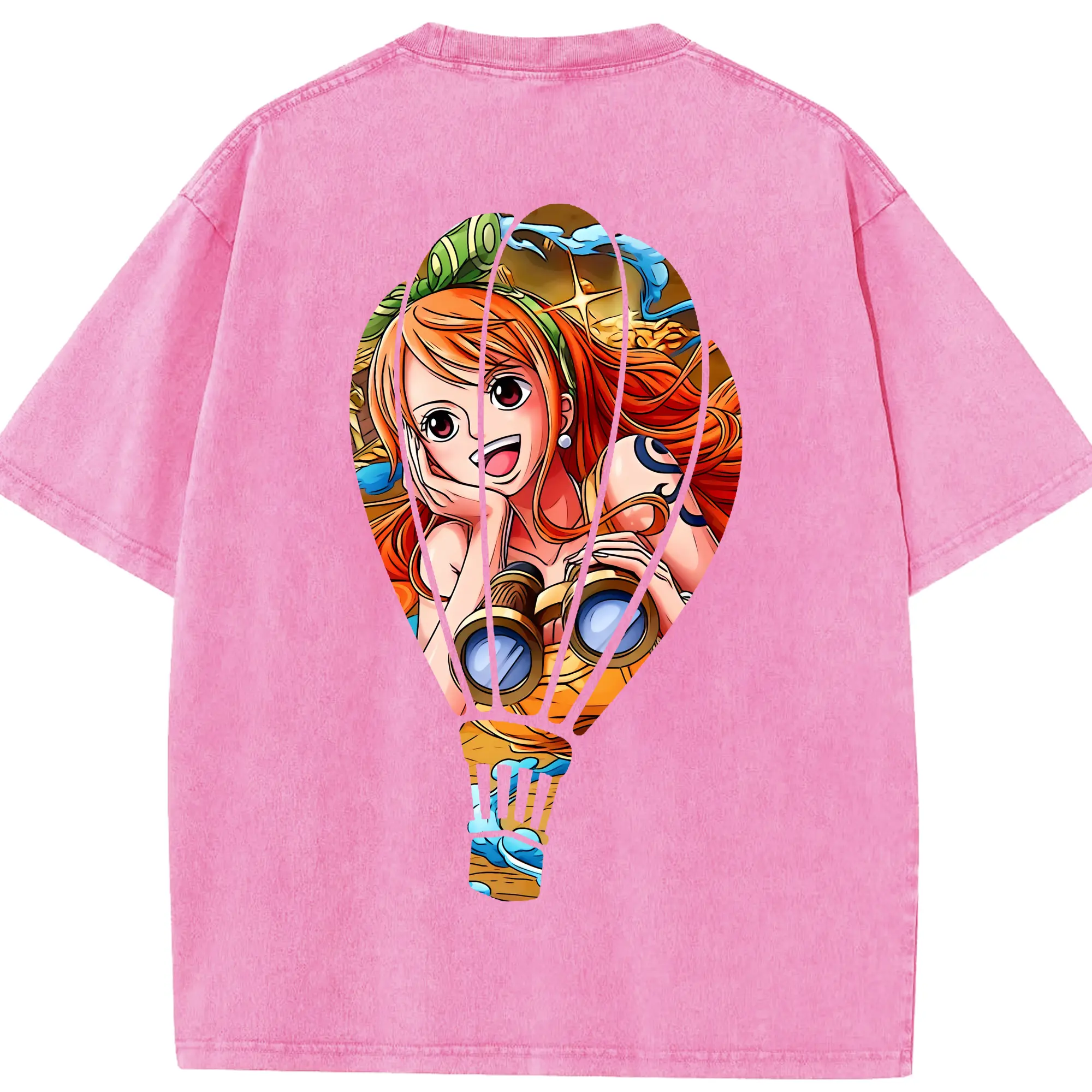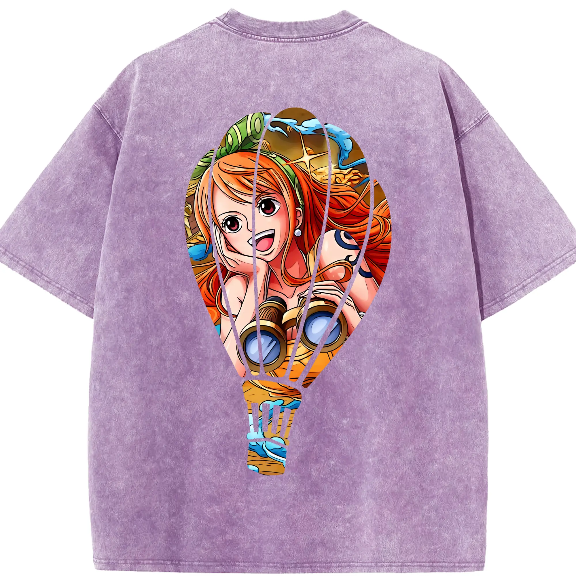 ワンピース グッズ ナミ - 綿100% ヴィンテージ風 半袖Tシャツ ・ フロントプリント ・ 柔らか肌触り ・ 通気性 快適 ・ スポーツ カジュアル 外出用