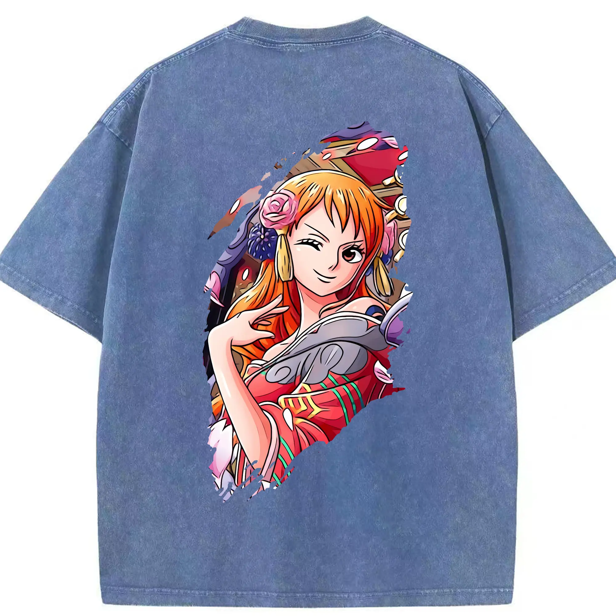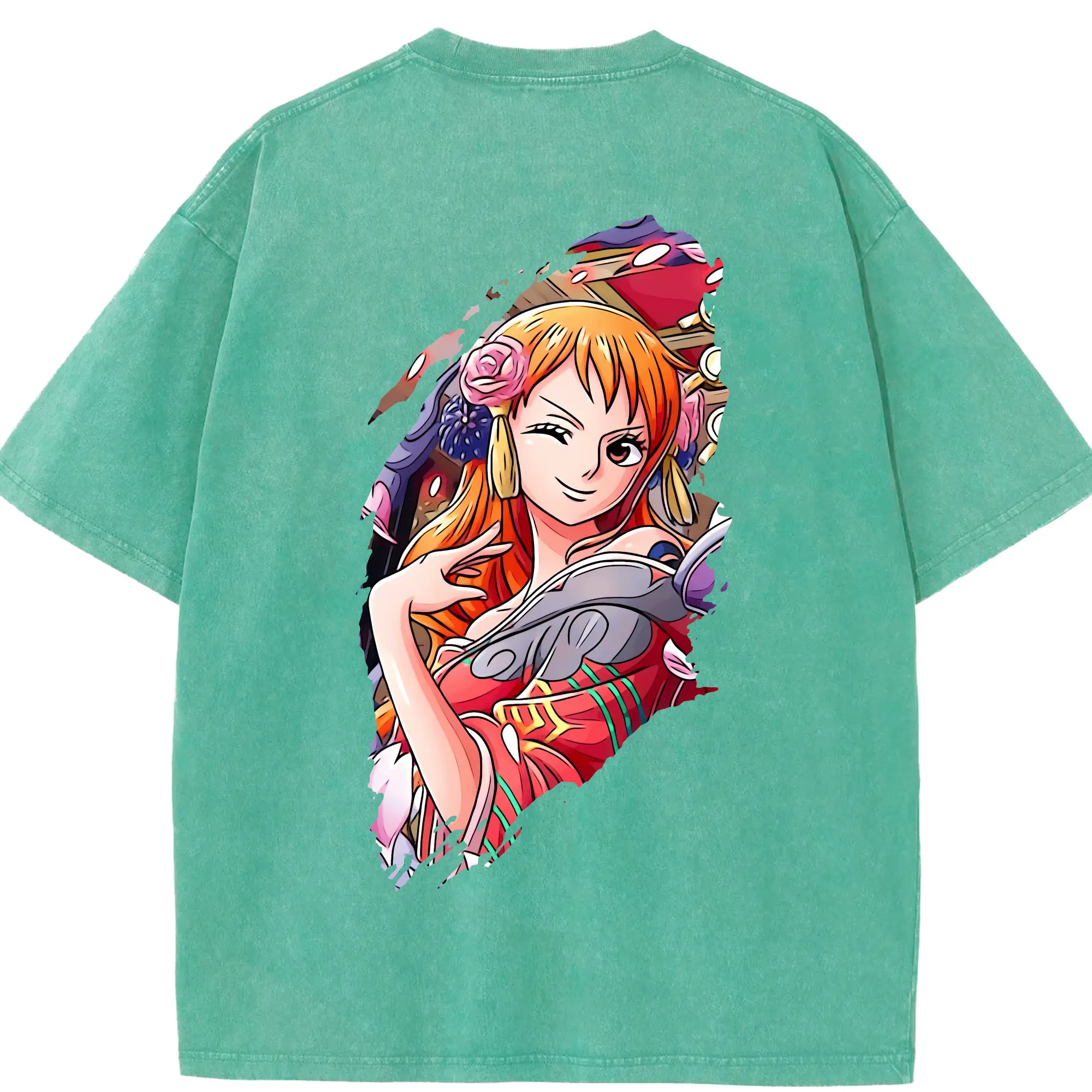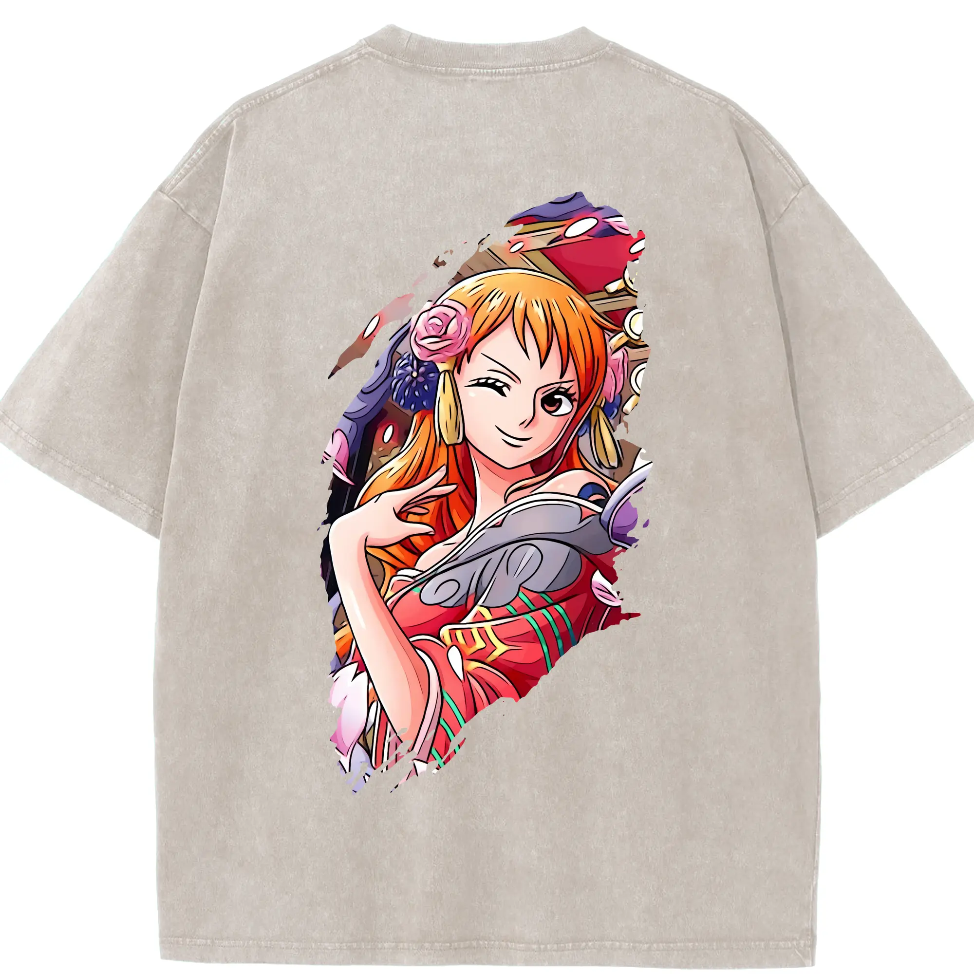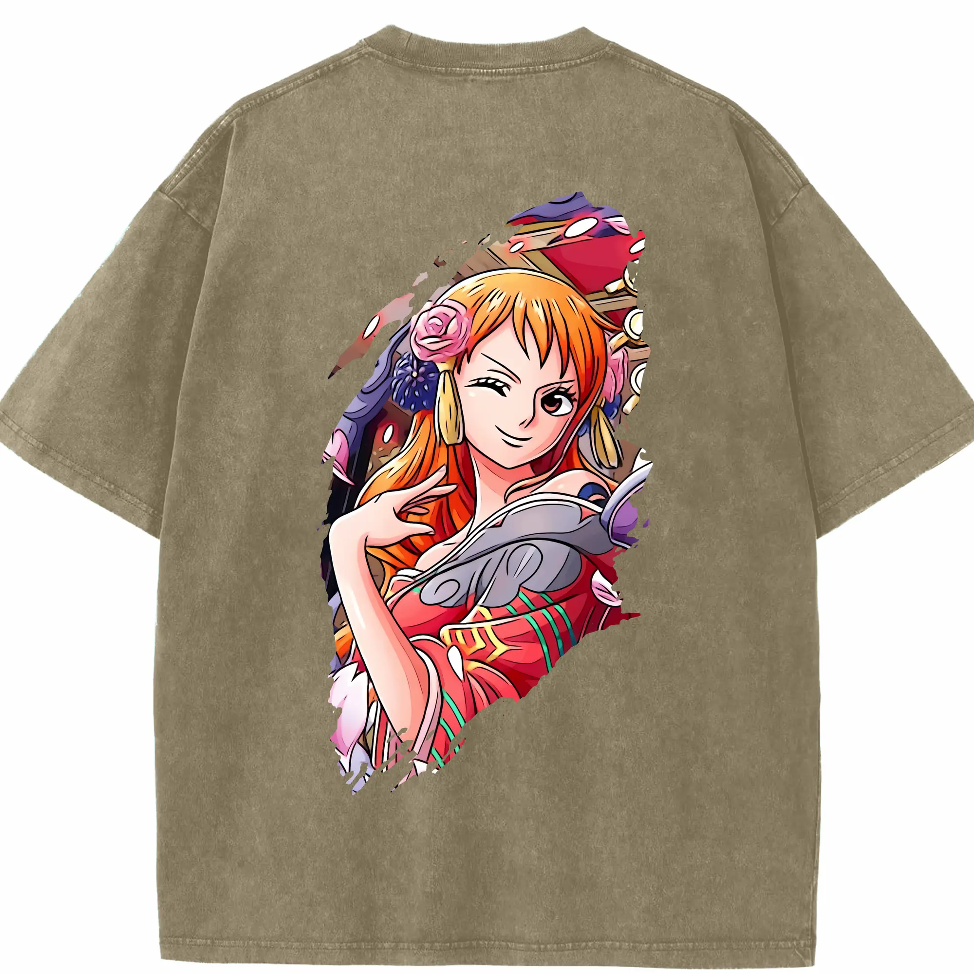 ワンピース グッズ ナミ - 綿100% ヴィンテージ風 半袖Tシャツ ・ フロントプリント ・ 柔らか肌触り ・ 通気性 快適 ・ スポーツ カジュアル 外出用