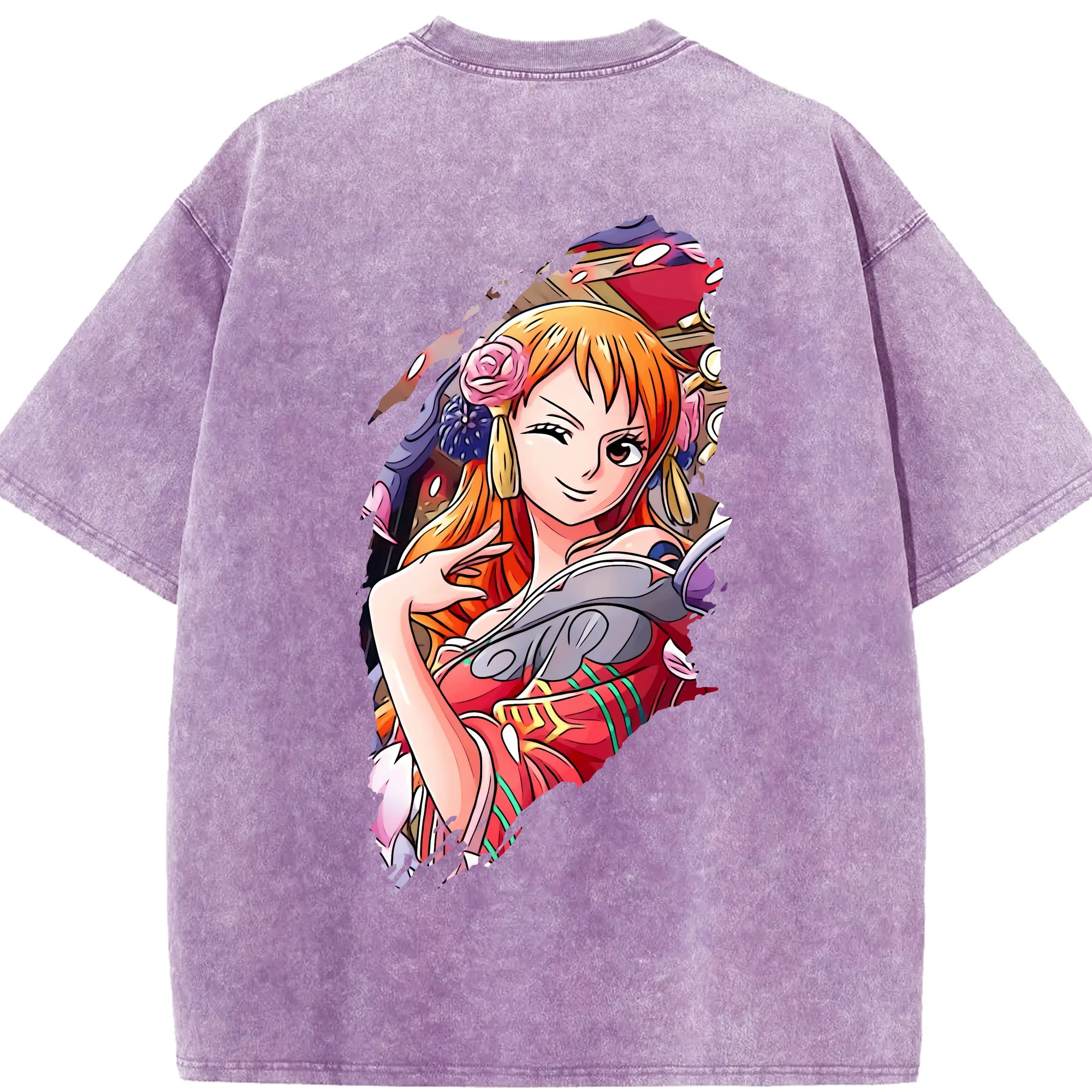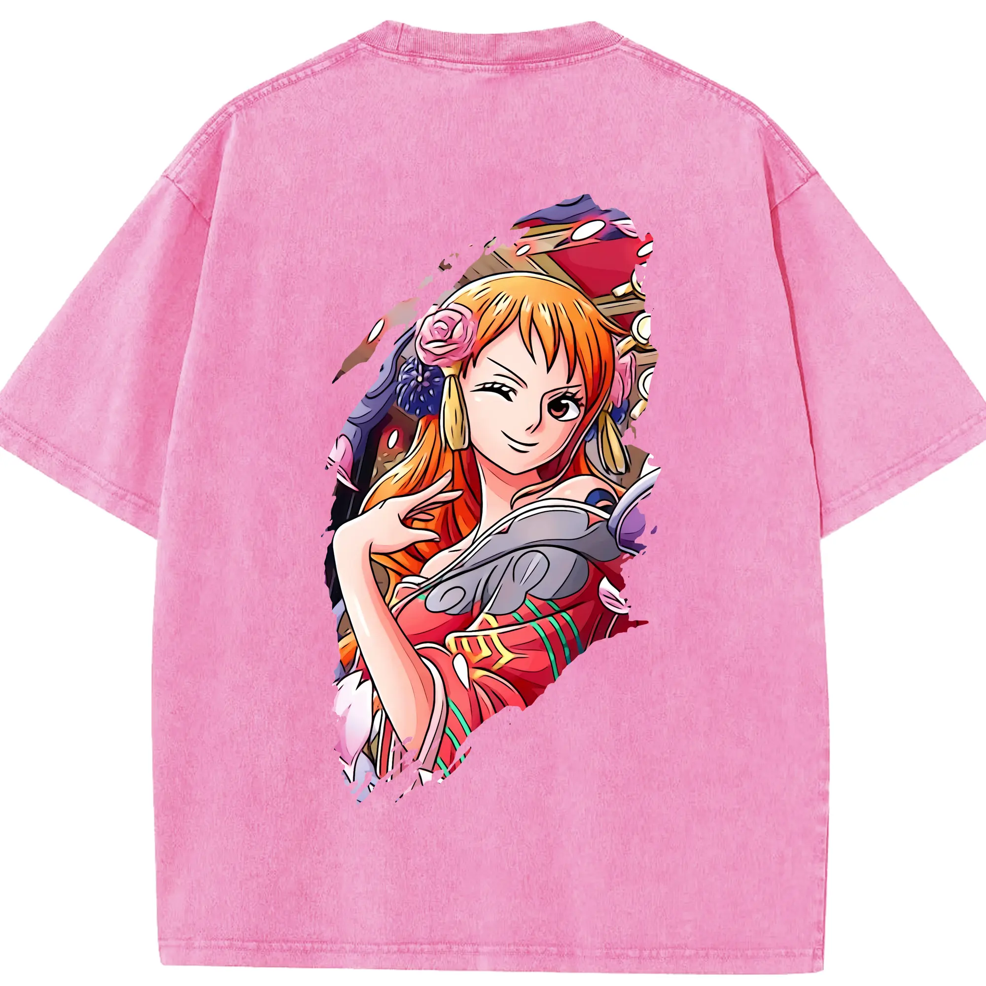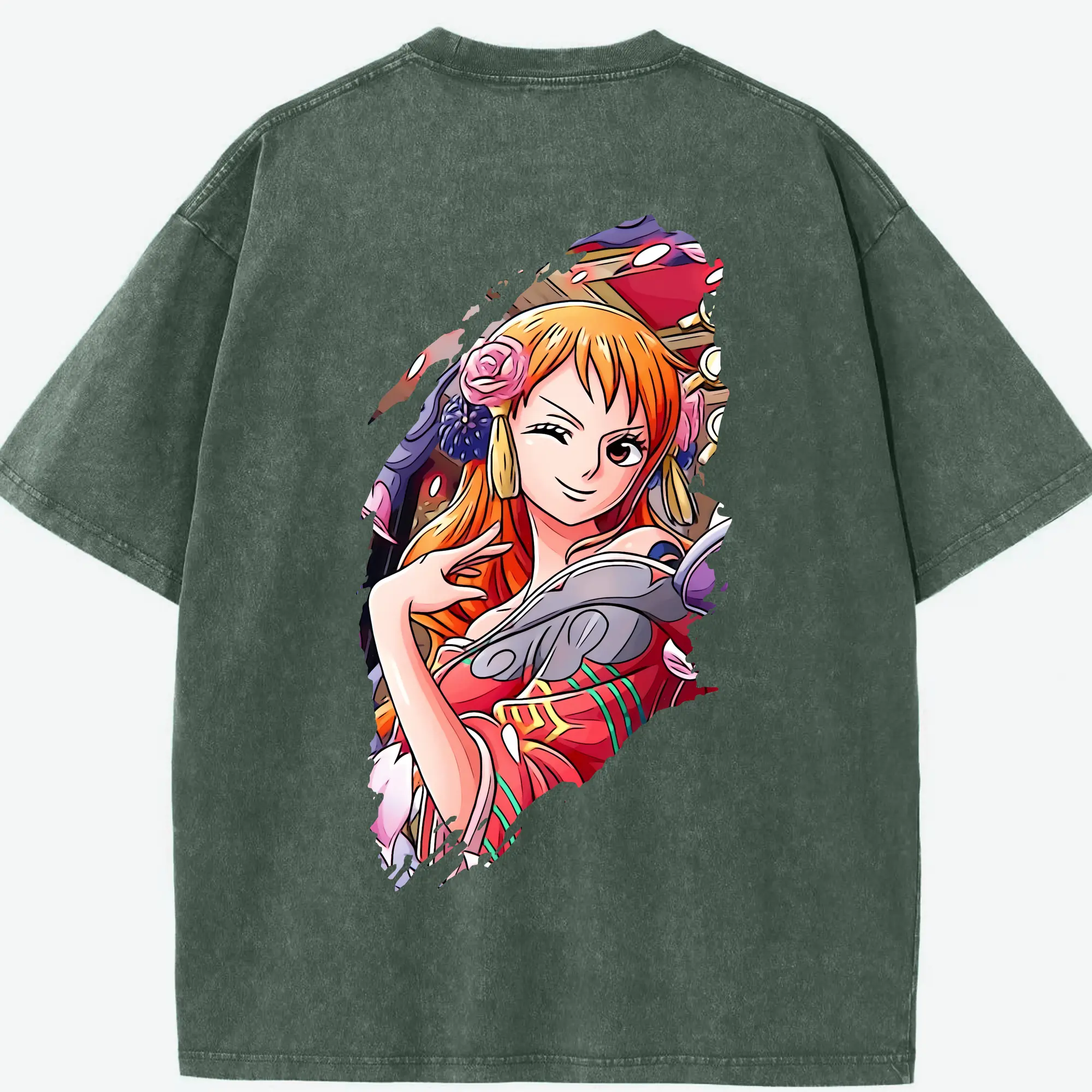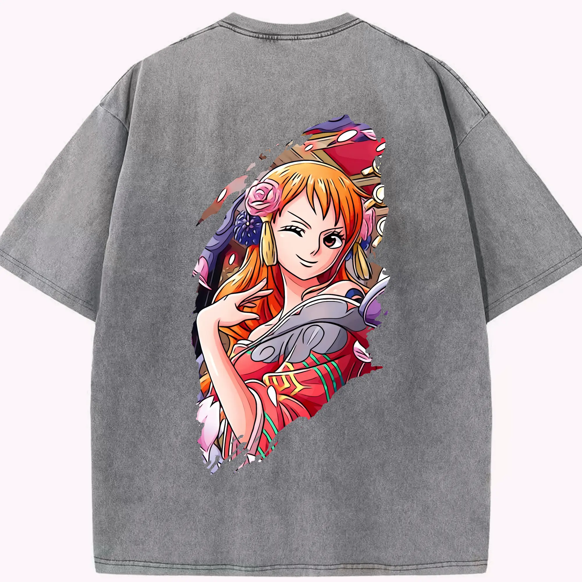 ワンピース グッズ ナミ - 綿100% ヴィンテージ風 半袖Tシャツ ・ フロントプリント ・ 柔らか肌触り ・ 通気性 快適 ・ スポーツ カジュアル 外出用