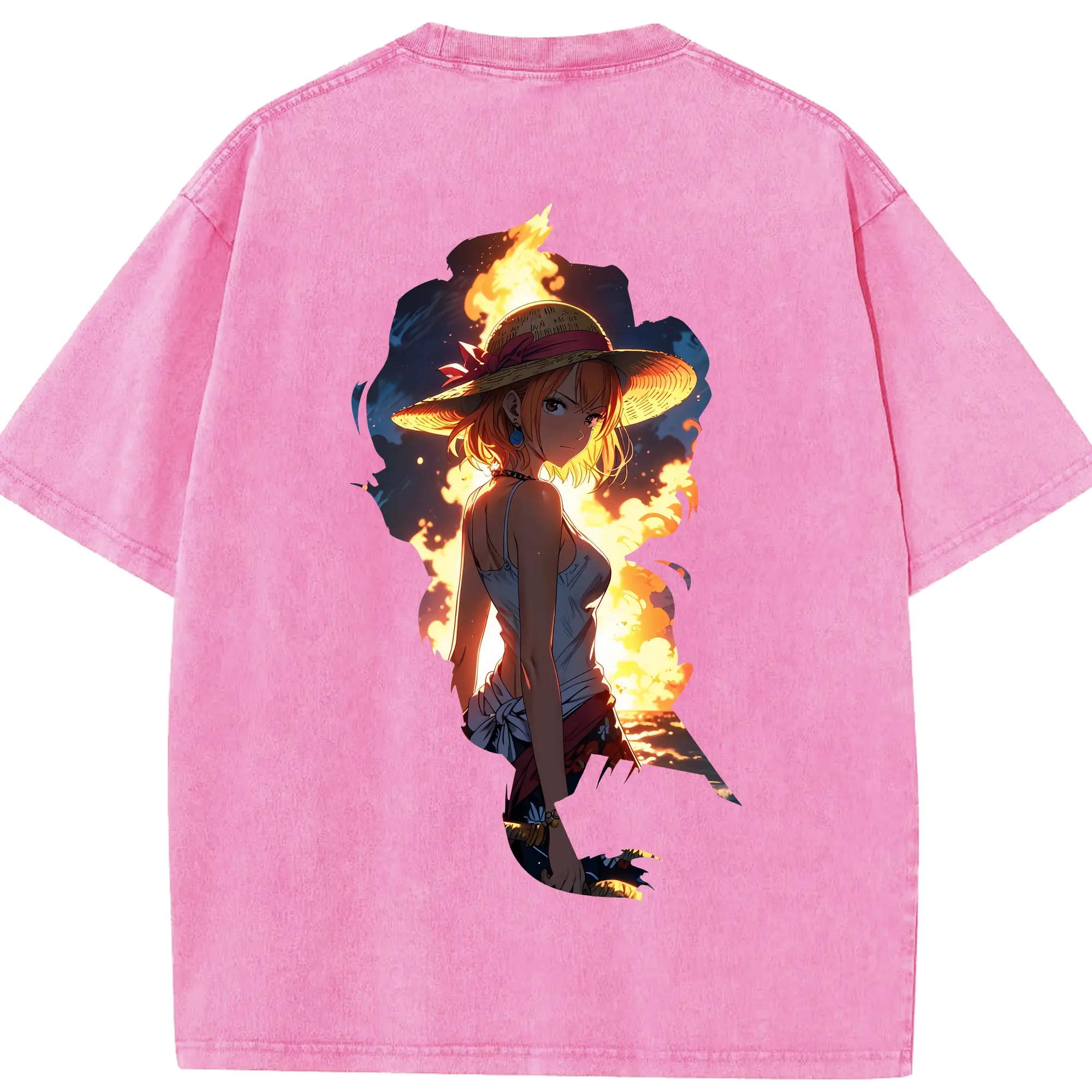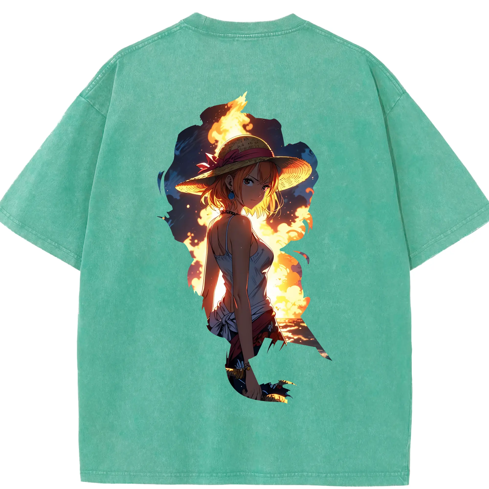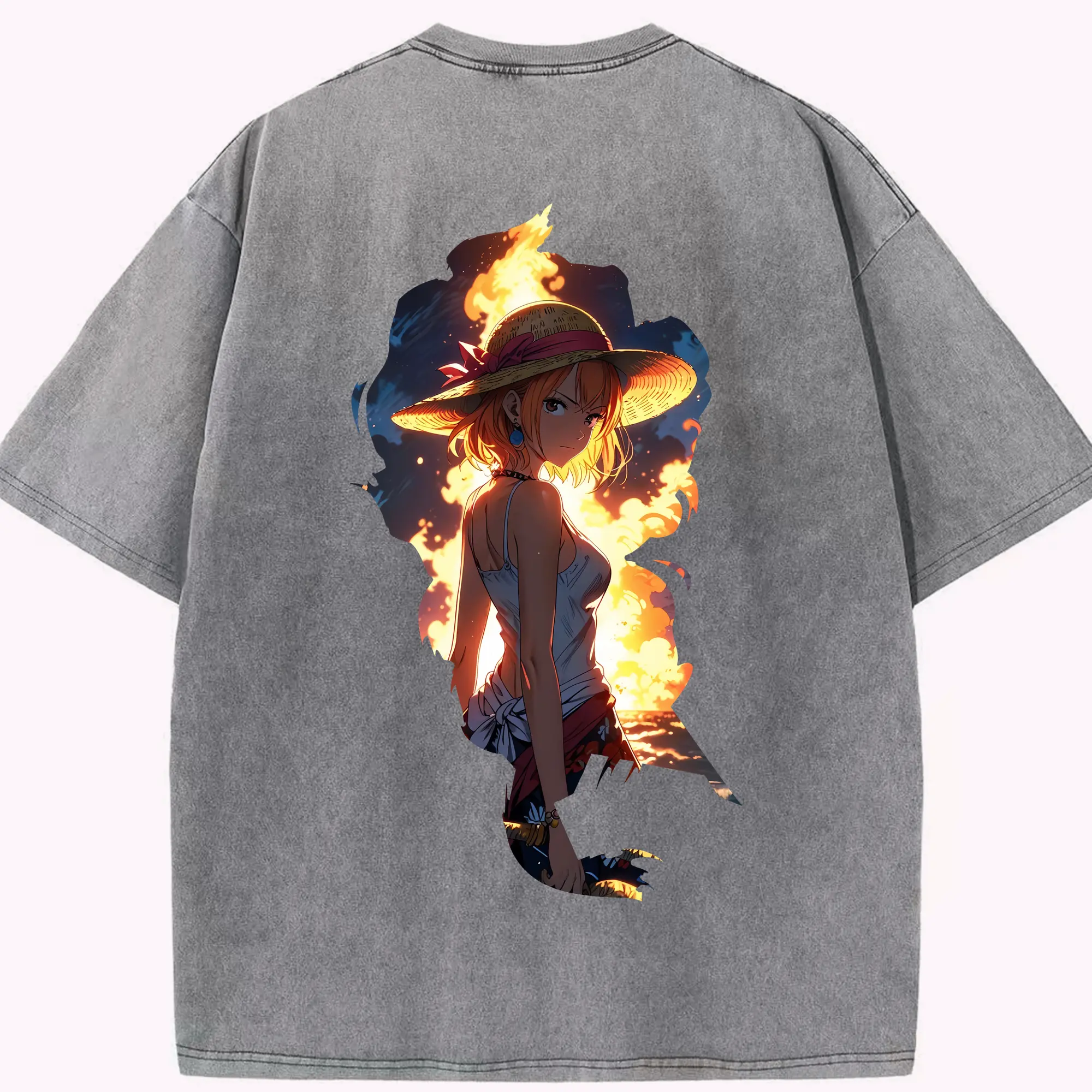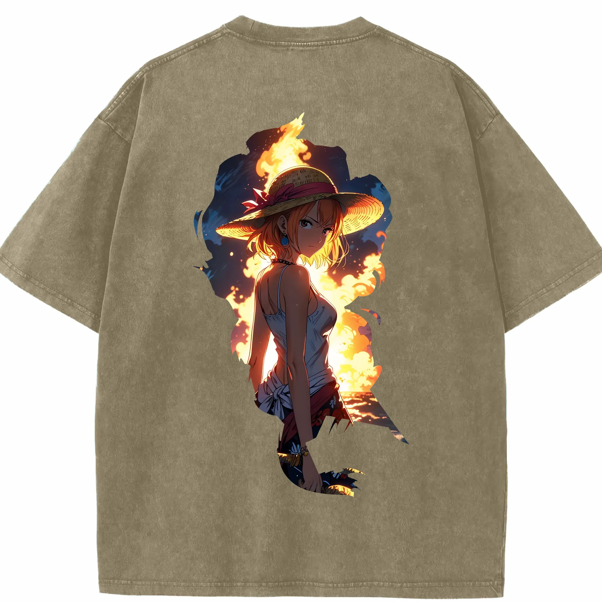 ワンピース グッズ ナミ - 綿100% ヴィンテージ風 半袖Tシャツ ・ フロントプリント ・ 柔らか肌触り ・ 通気性 快適 ・ スポーツ カジュアル 外出用