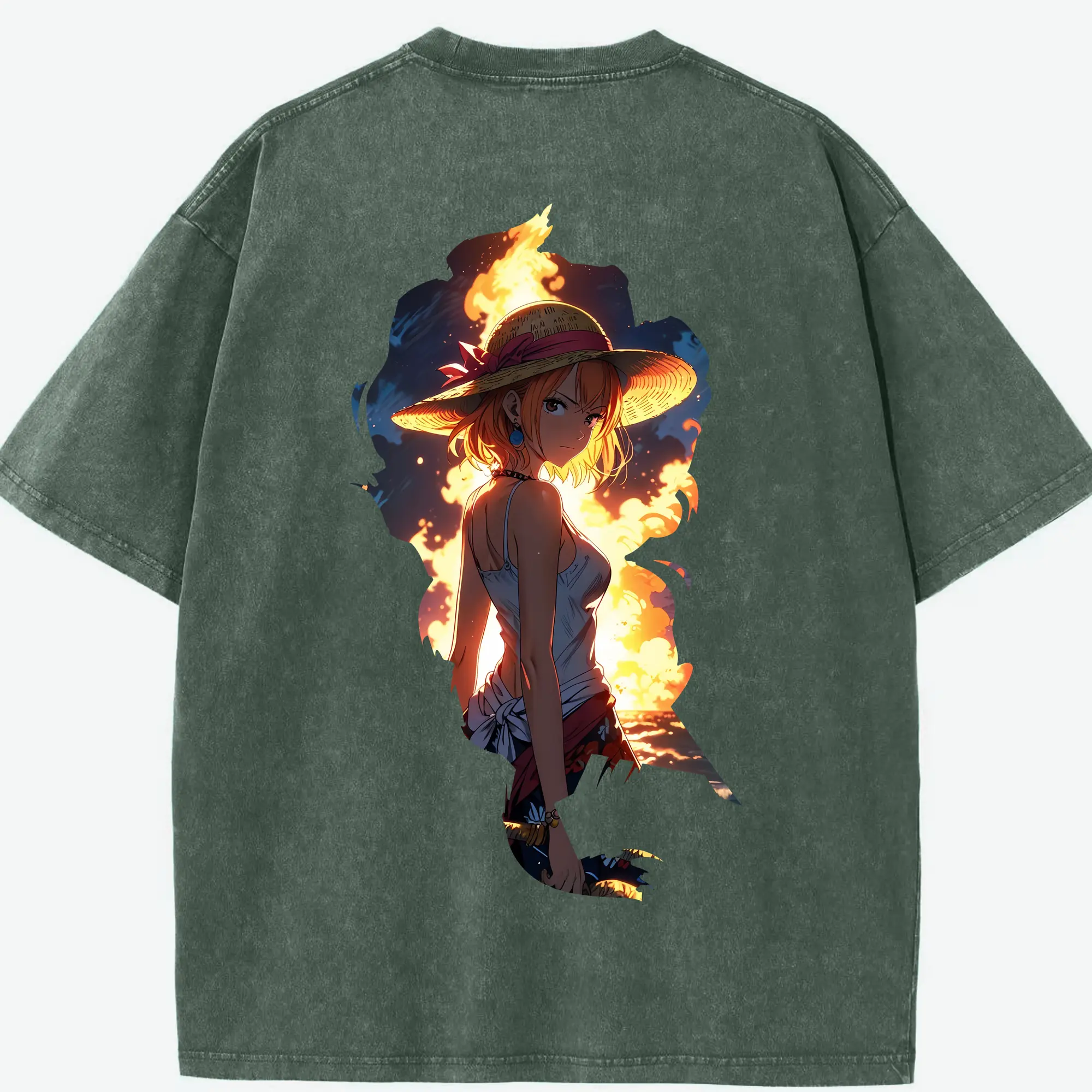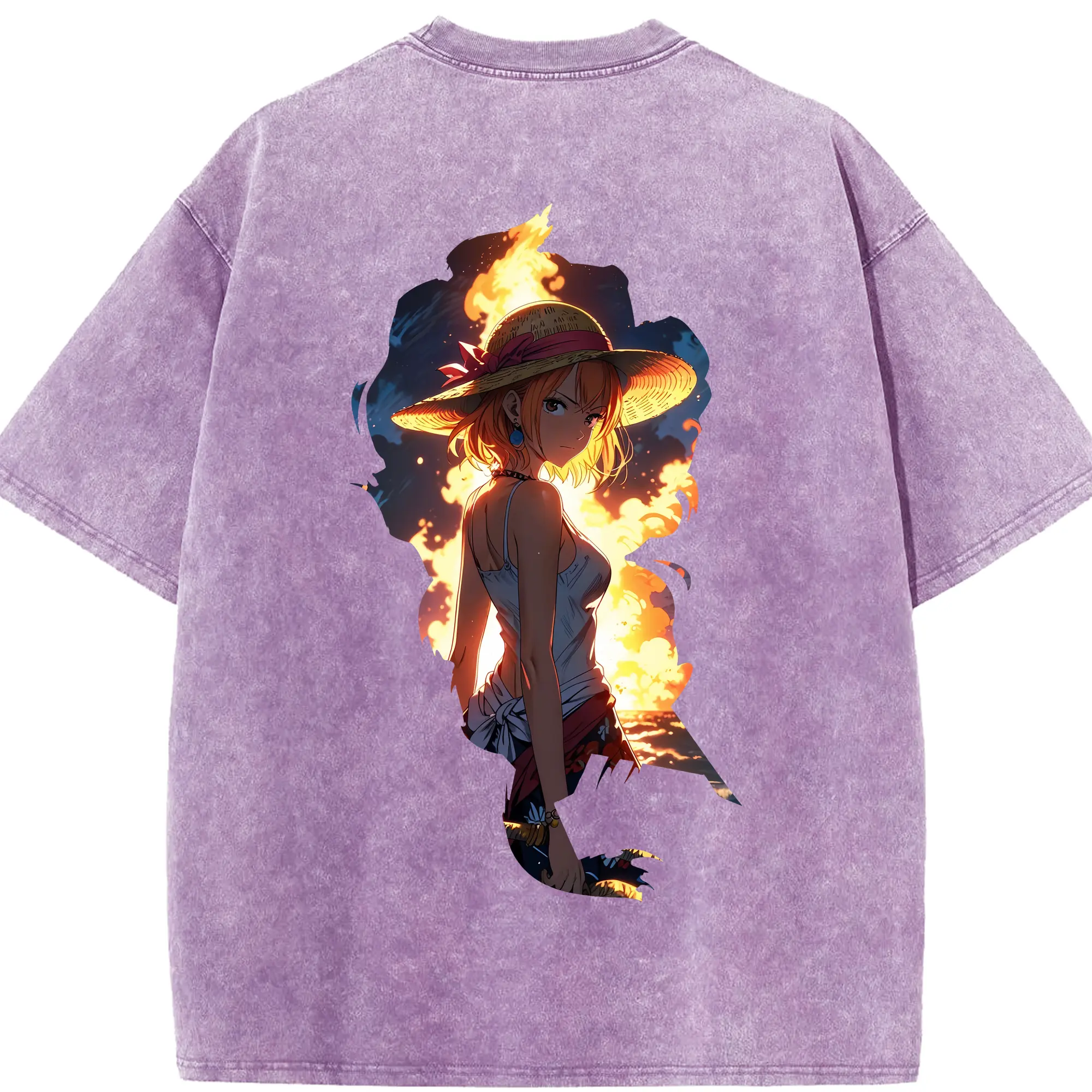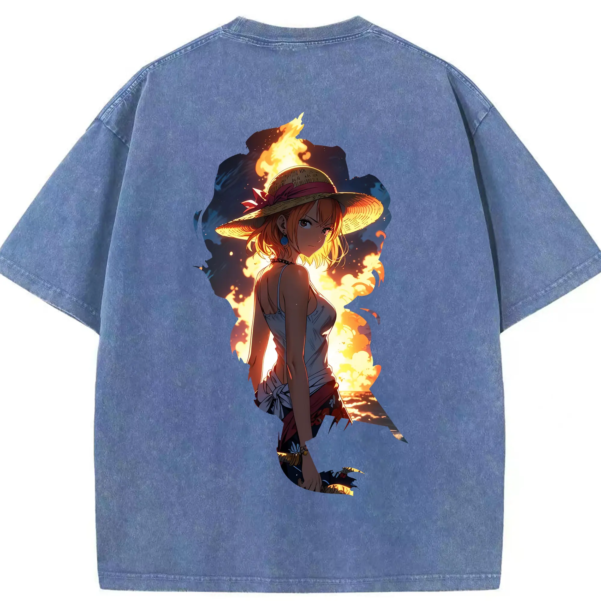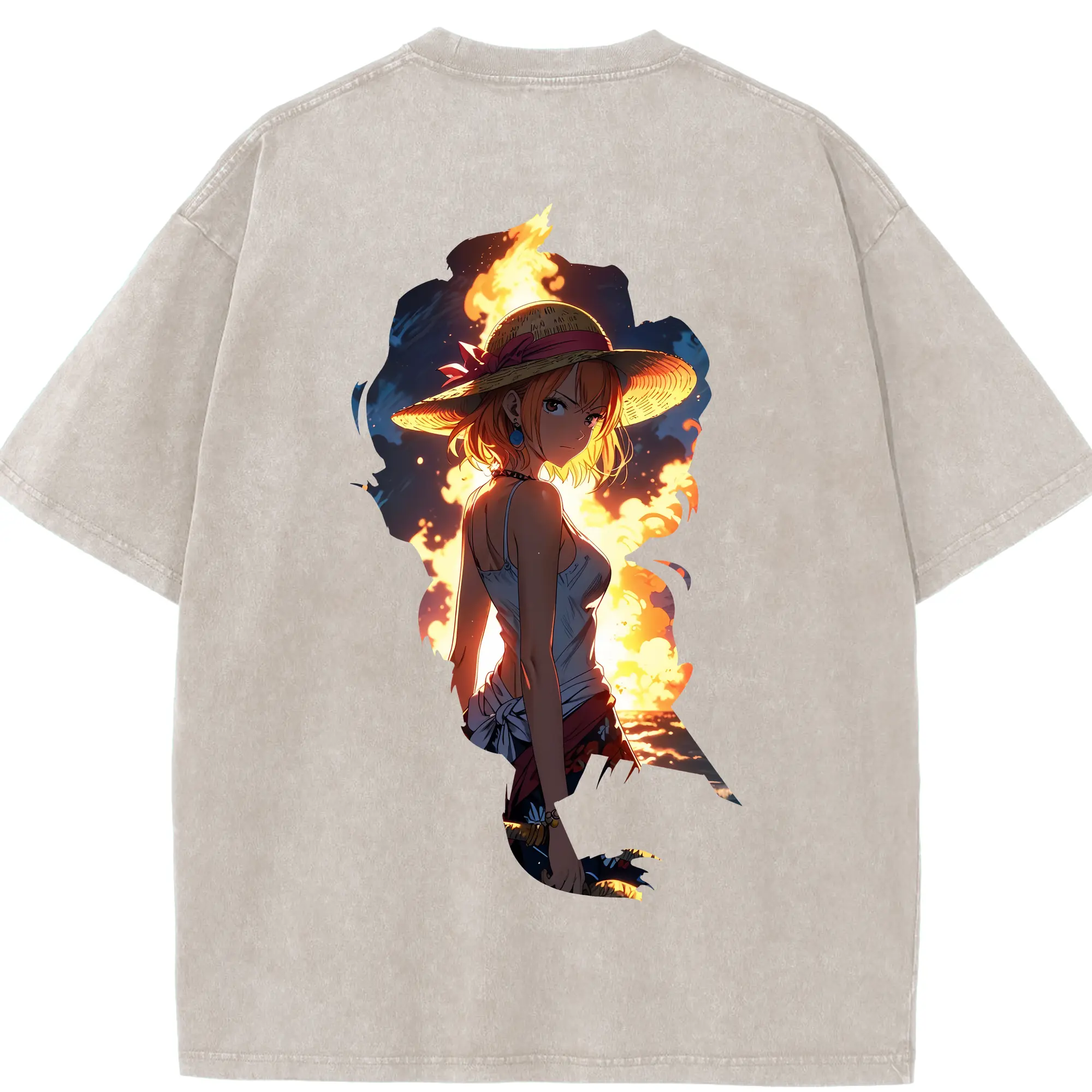 ワンピース グッズ ナミ - 綿100% ヴィンテージ風 半袖Tシャツ ・ フロントプリント ・ 柔らか肌触り ・ 通気性 快適 ・ スポーツ カジュアル 外出用