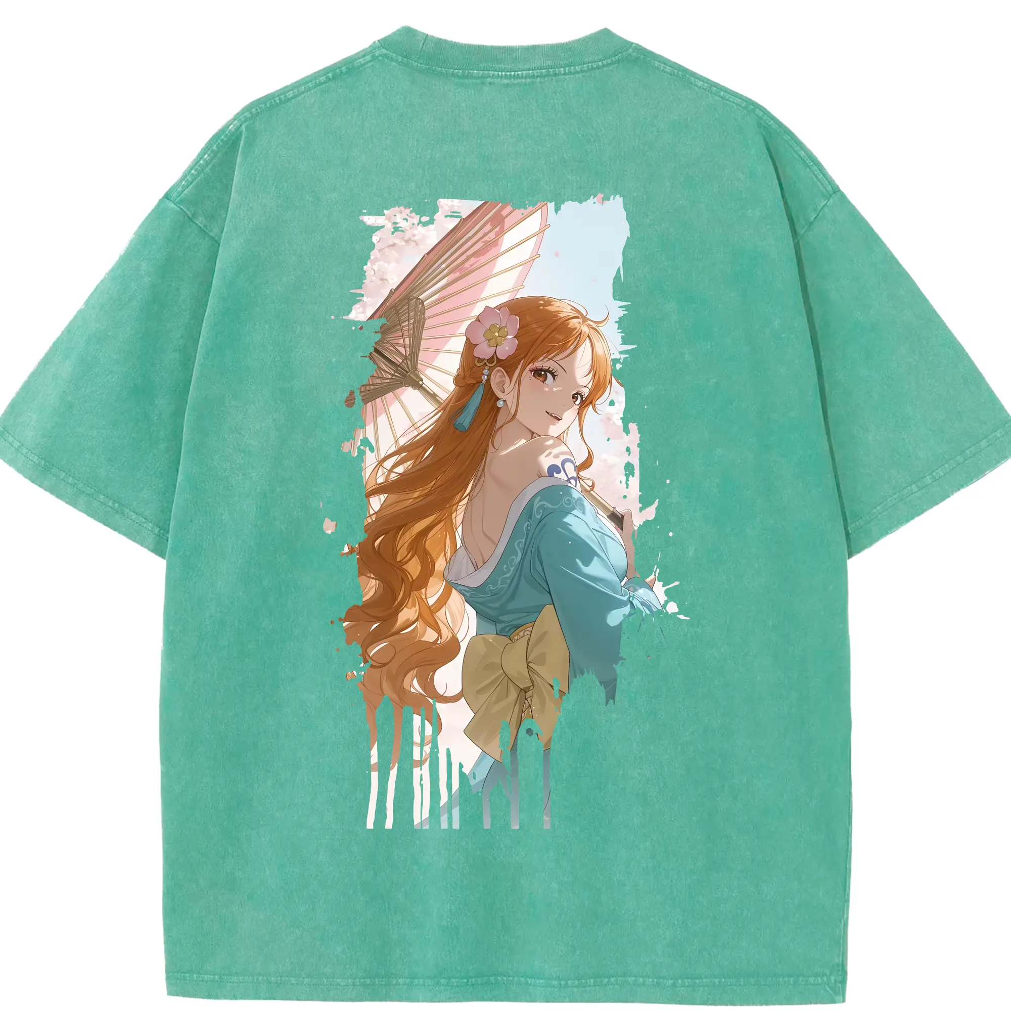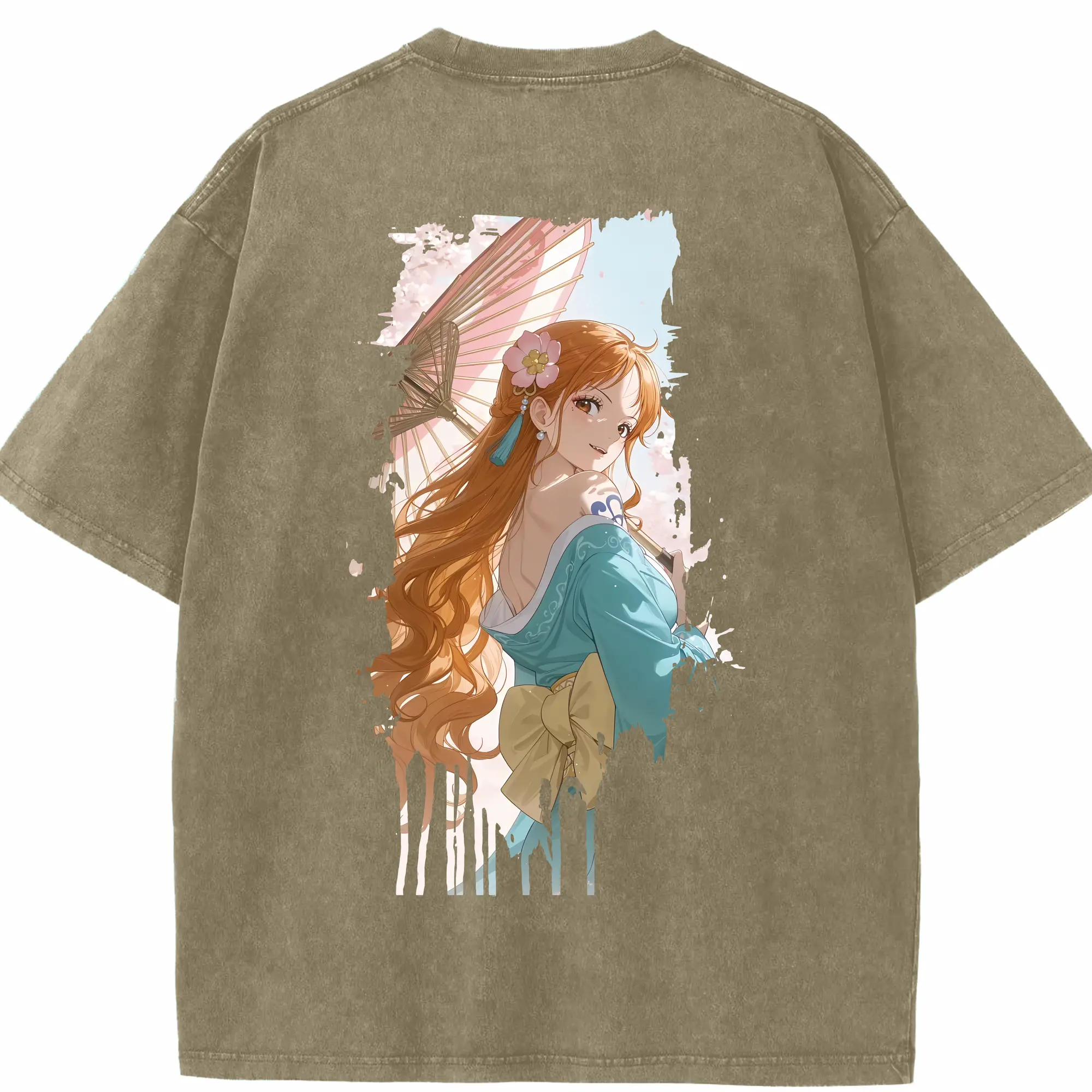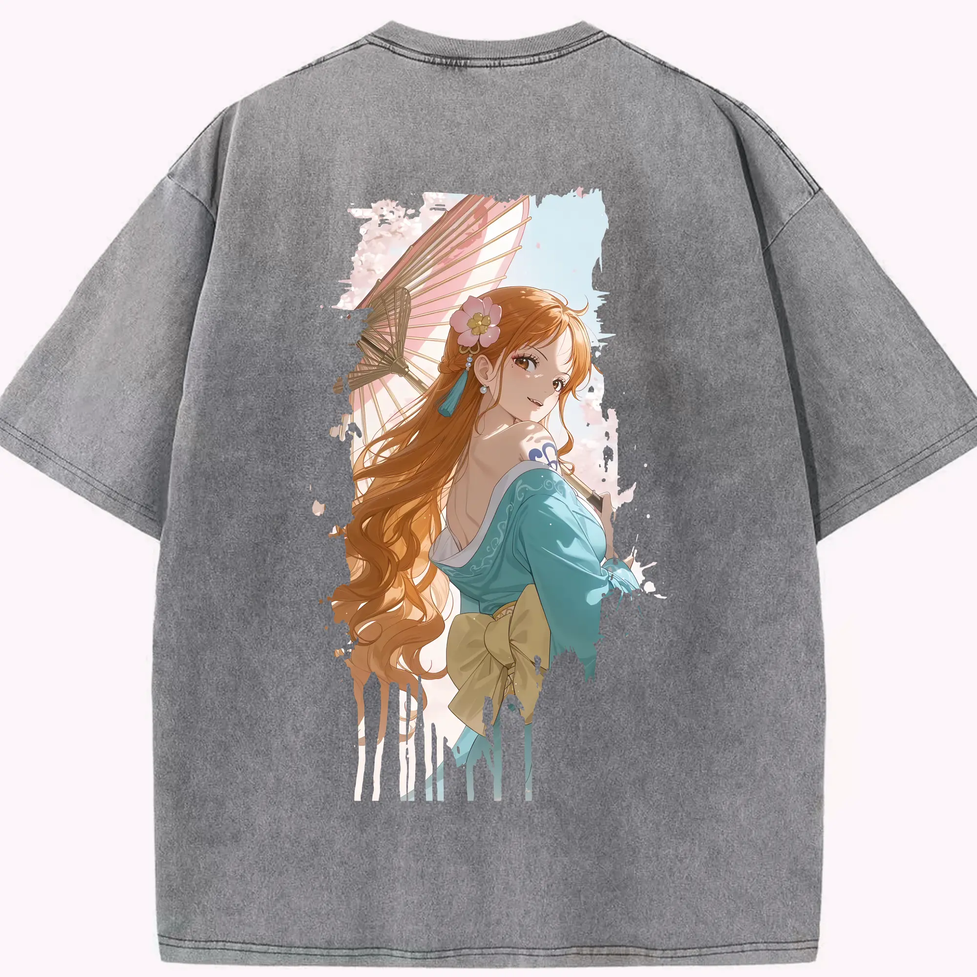 ワンピース グッズ ナミ - 綿100% ヴィンテージ風 半袖Tシャツ ・ フロントプリント ・ 柔らか肌触り ・ 通気性 快適 ・ スポーツ カジュアル 外出用