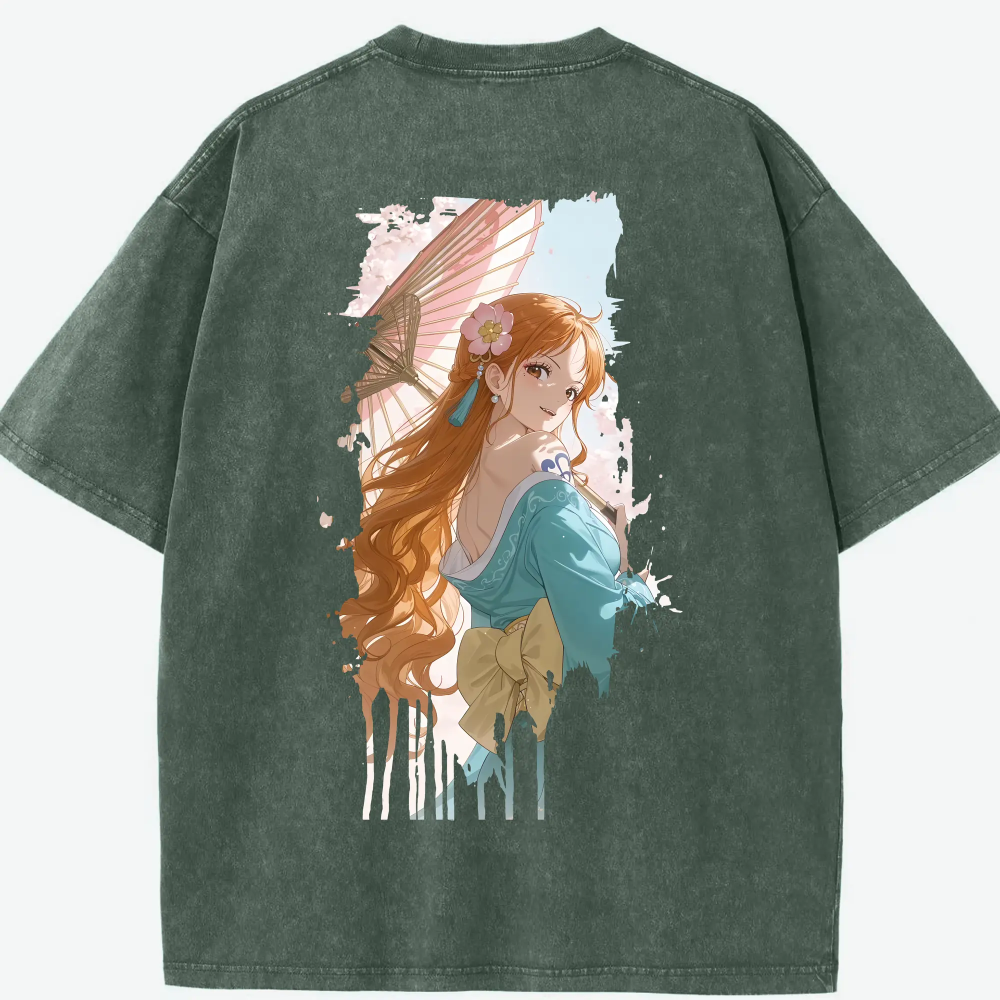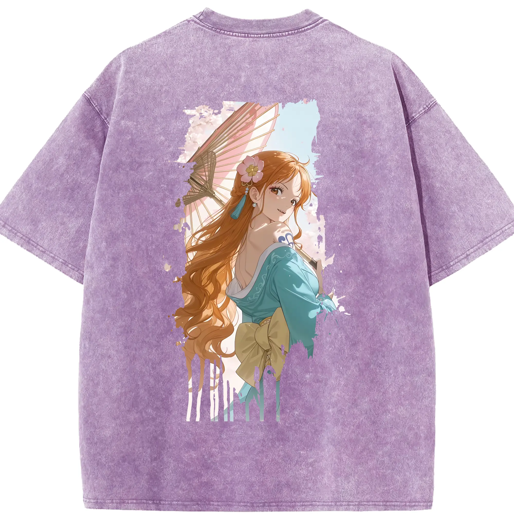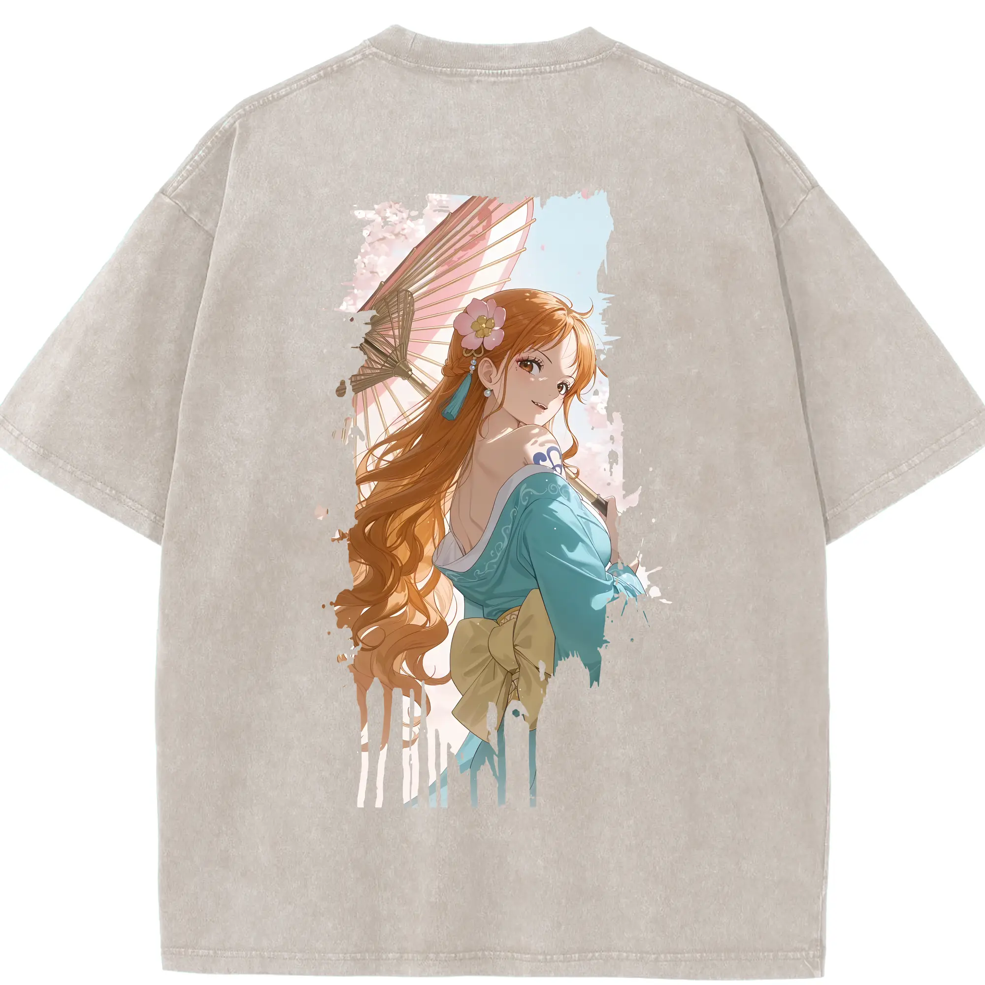 ワンピース グッズ ナミ - 綿100% ヴィンテージ風 半袖Tシャツ ・ フロントプリント ・ 柔らか肌触り ・ 通気性 快適 ・ スポーツ カジュアル 外出用