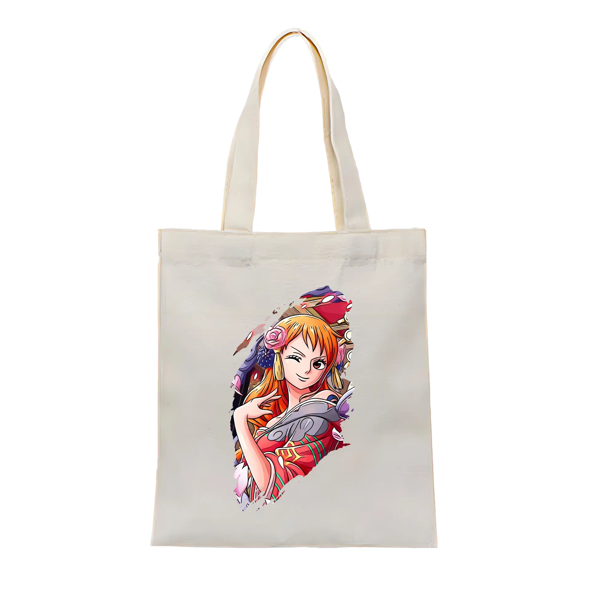 ワンピース グッズ ナミ - 縦型キャンバス手提げバッグ(トートバッグ) ・ キャンバス素材 ・ ショッピング用 ・ 軽量 丈夫 お手入れ簡単