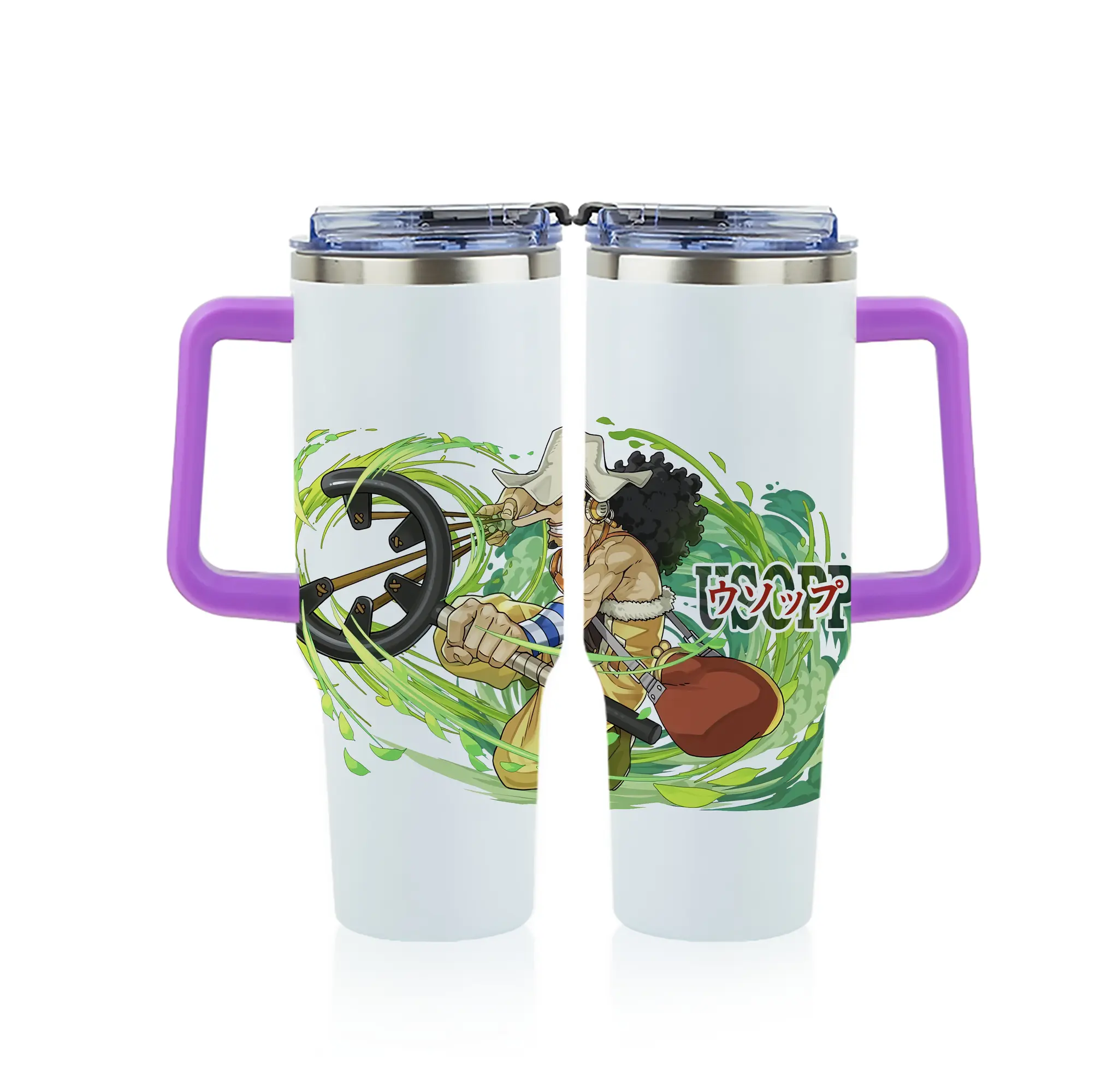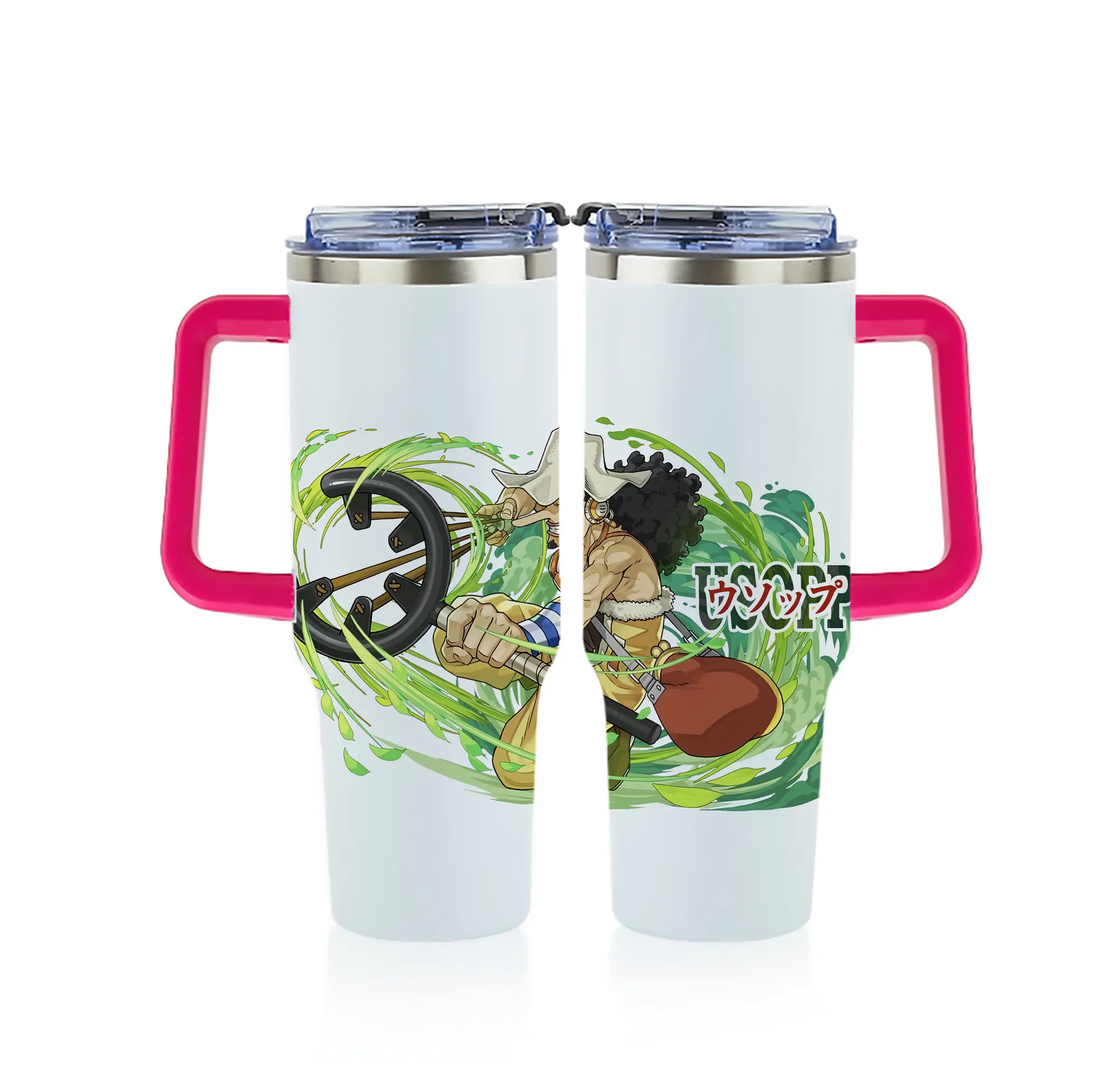 ワンピース グッズ ウソップ - 1200mL フルプリント車用タンブラー ・ 304ステンレス 内側 ・ 201ステンレス 外側 ・ 保温 保冷 ・ 通勤 ドライブ アウトドア用