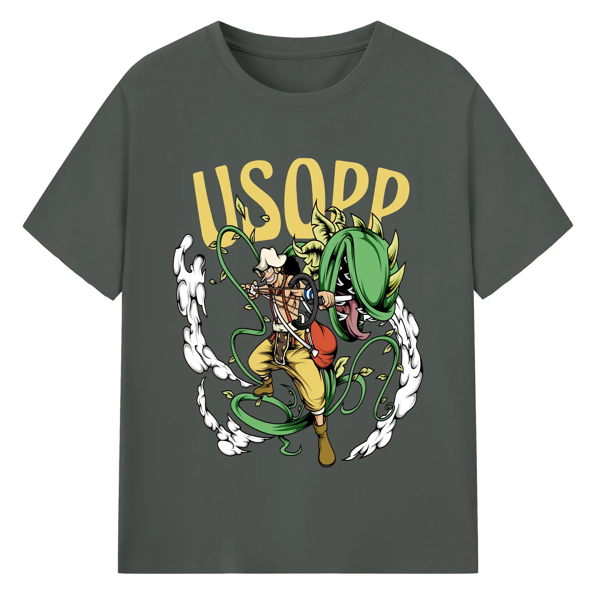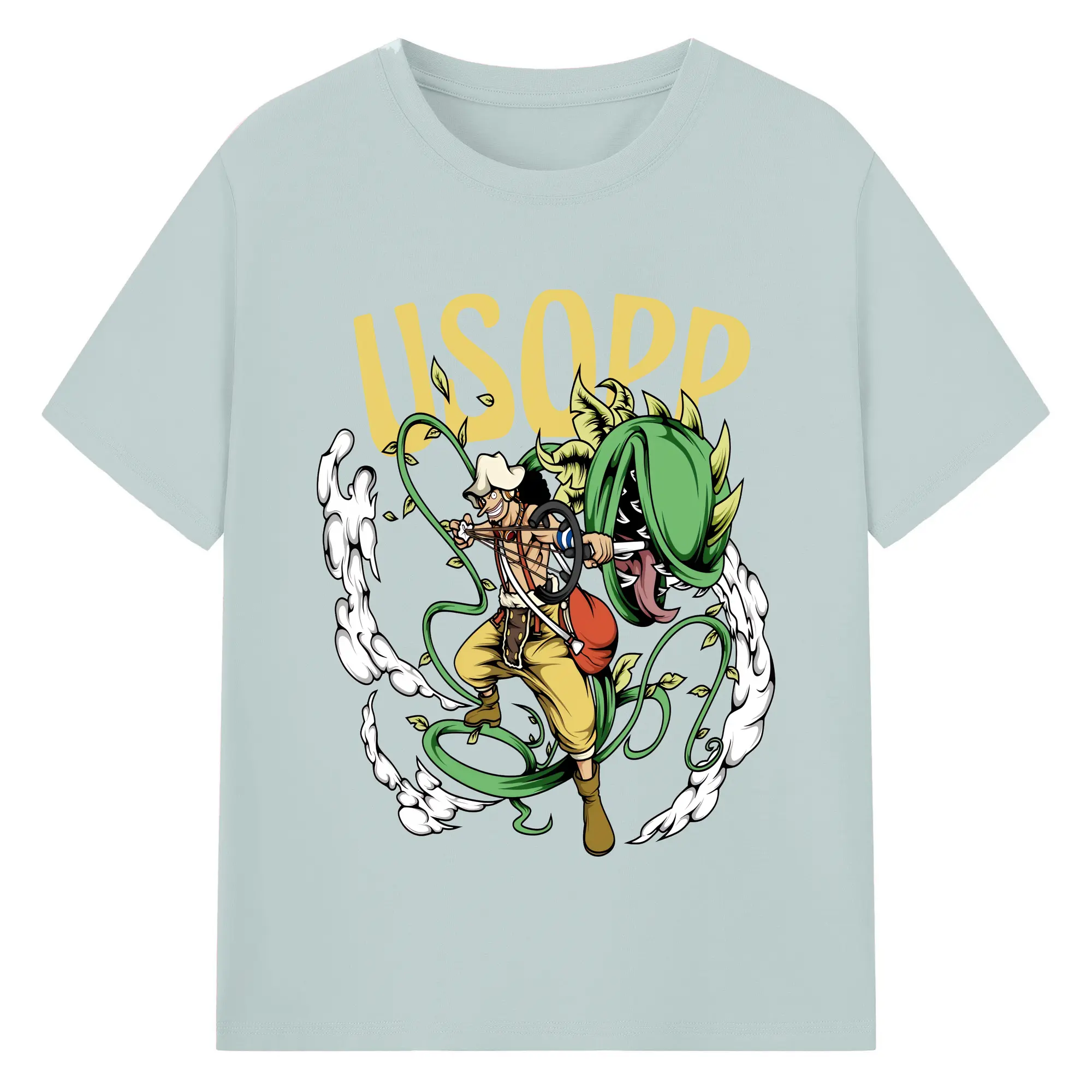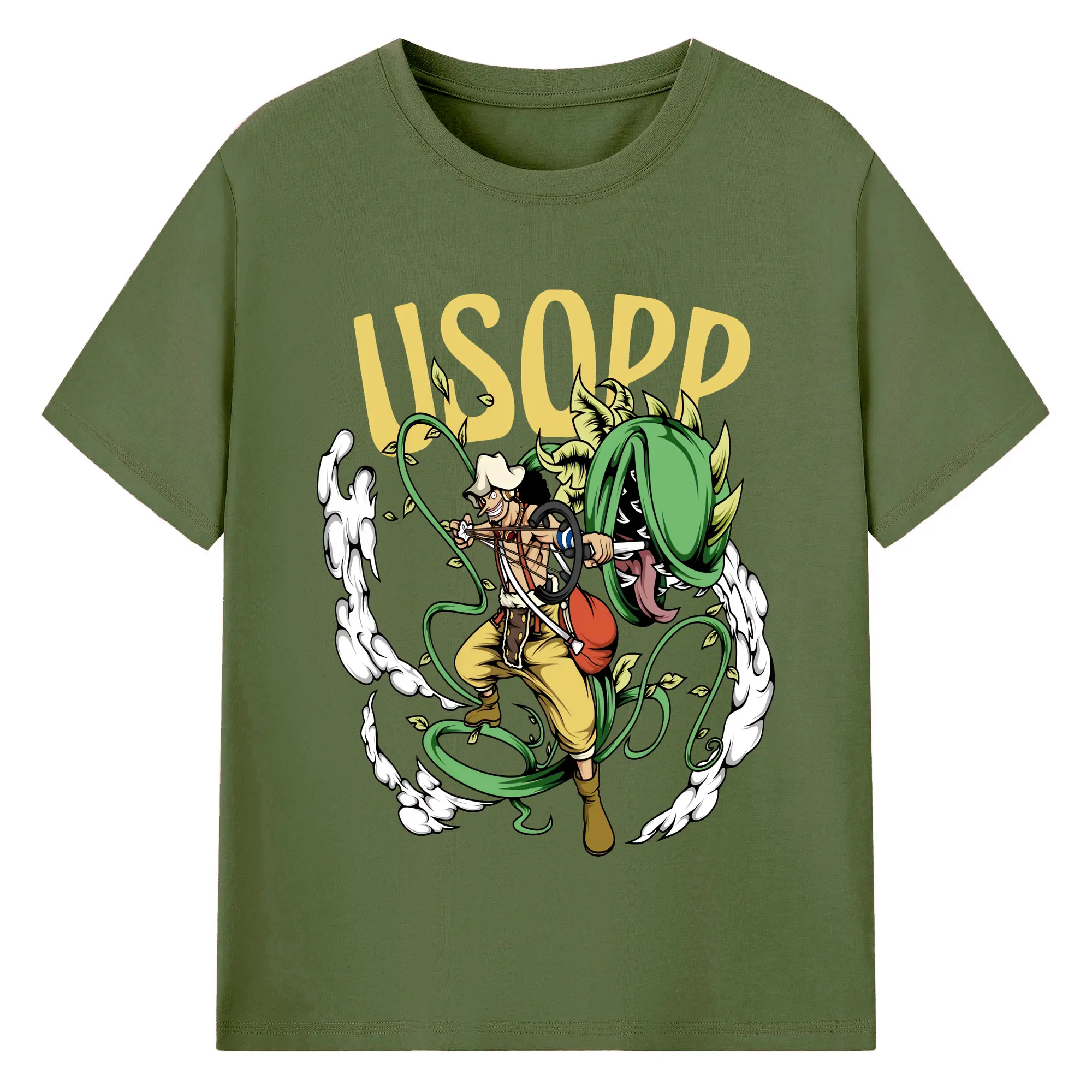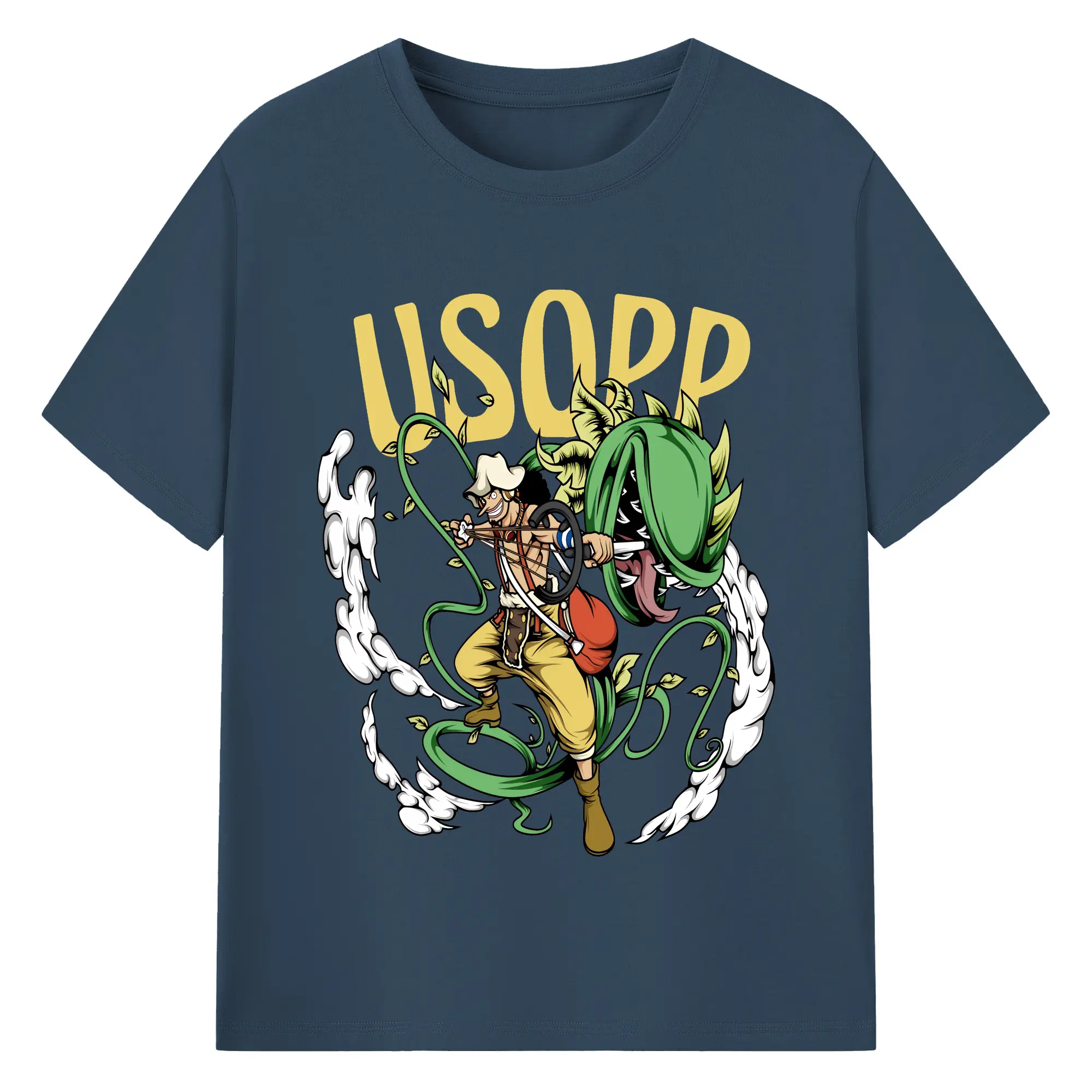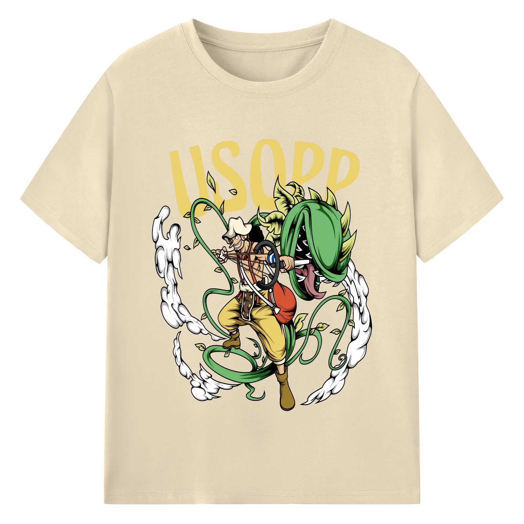 ワンピース グッズ ウソップ - 綿100% ヴィンテージ風 半袖Tシャツ ・ フロントプリント ・ 柔らか肌触り ・ 通気性 快適 ・ スポーツ カジュアル 外出用