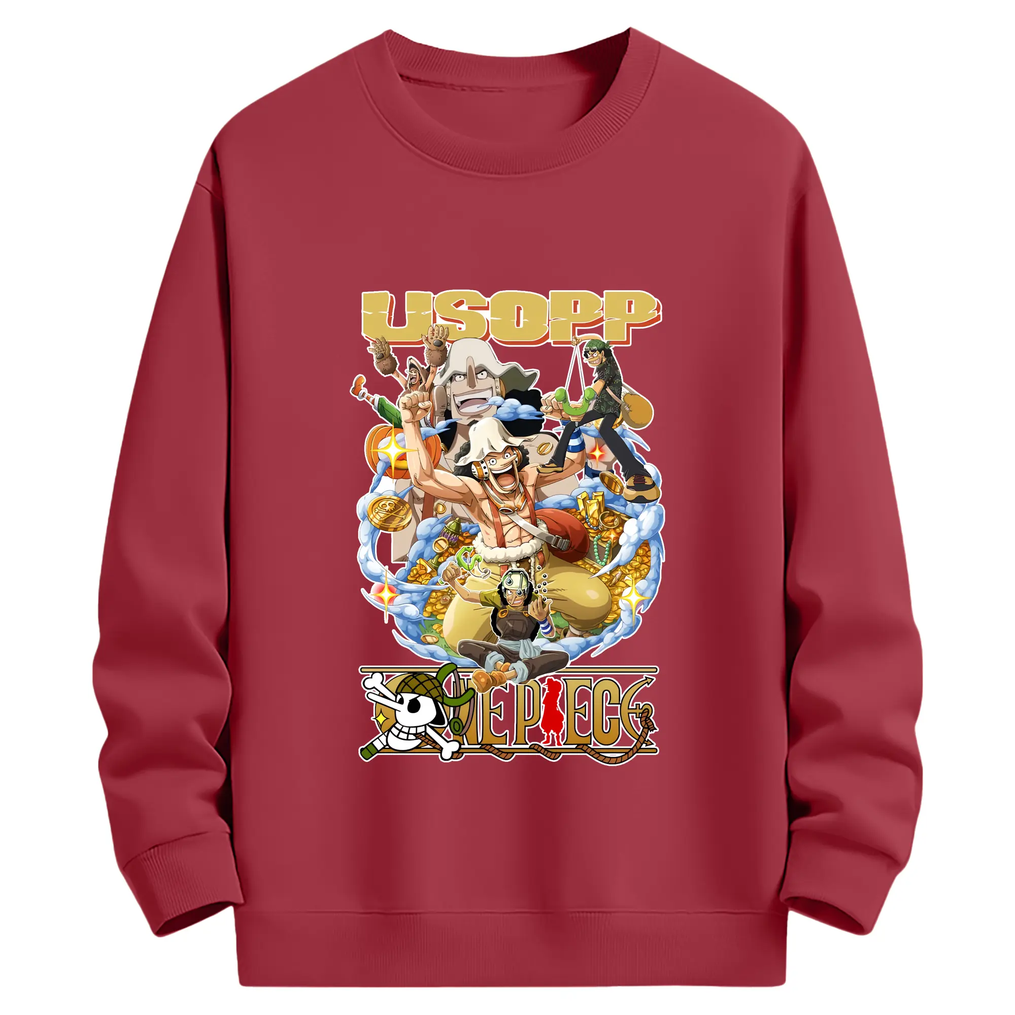 ワンピース グッズ ウソップ - 薄手 クルーネック スウェット 裏毛260g · ポリエステル 春秋向け カジュアル 男女兼用 · トレーナー デイリー スポーツ 散歩に最適