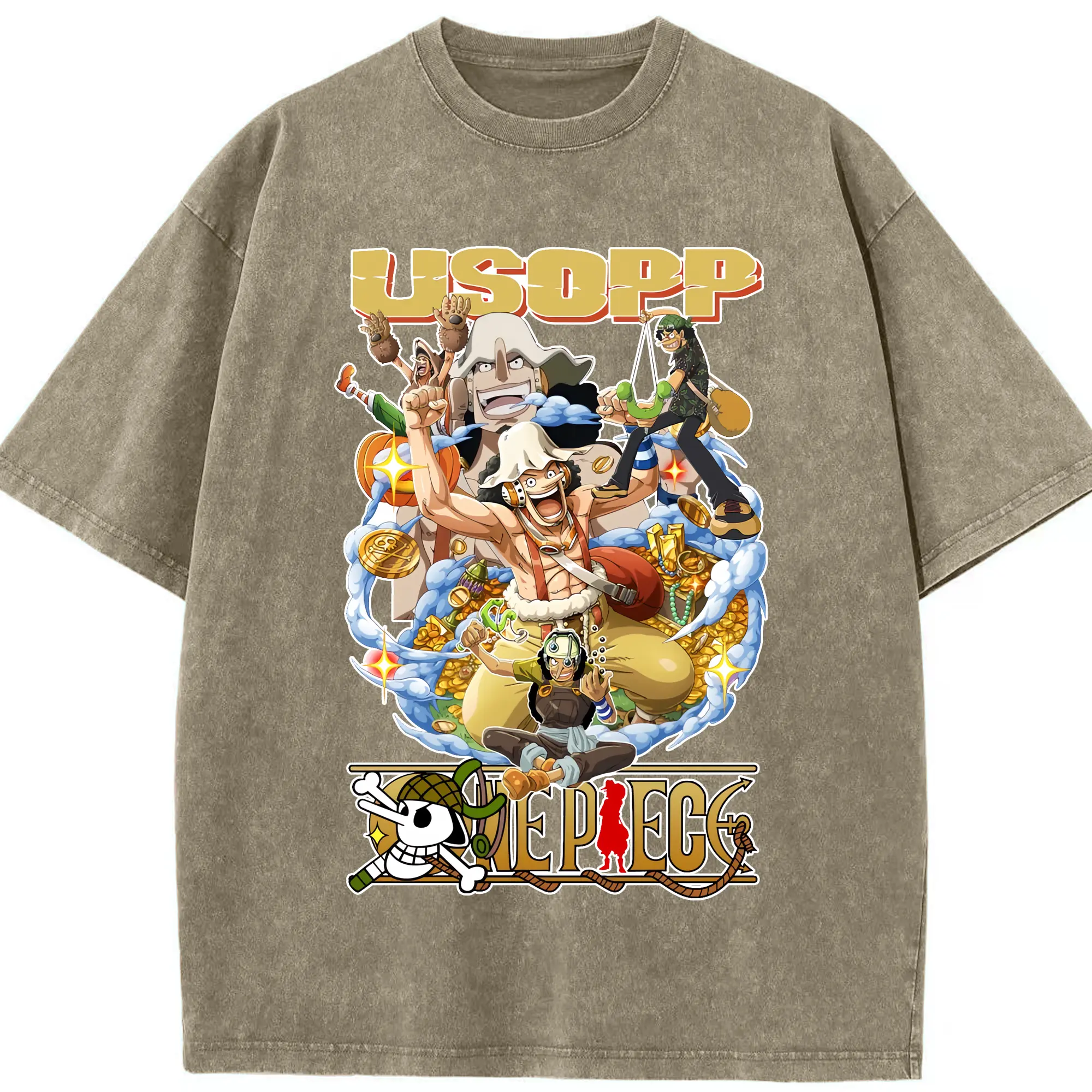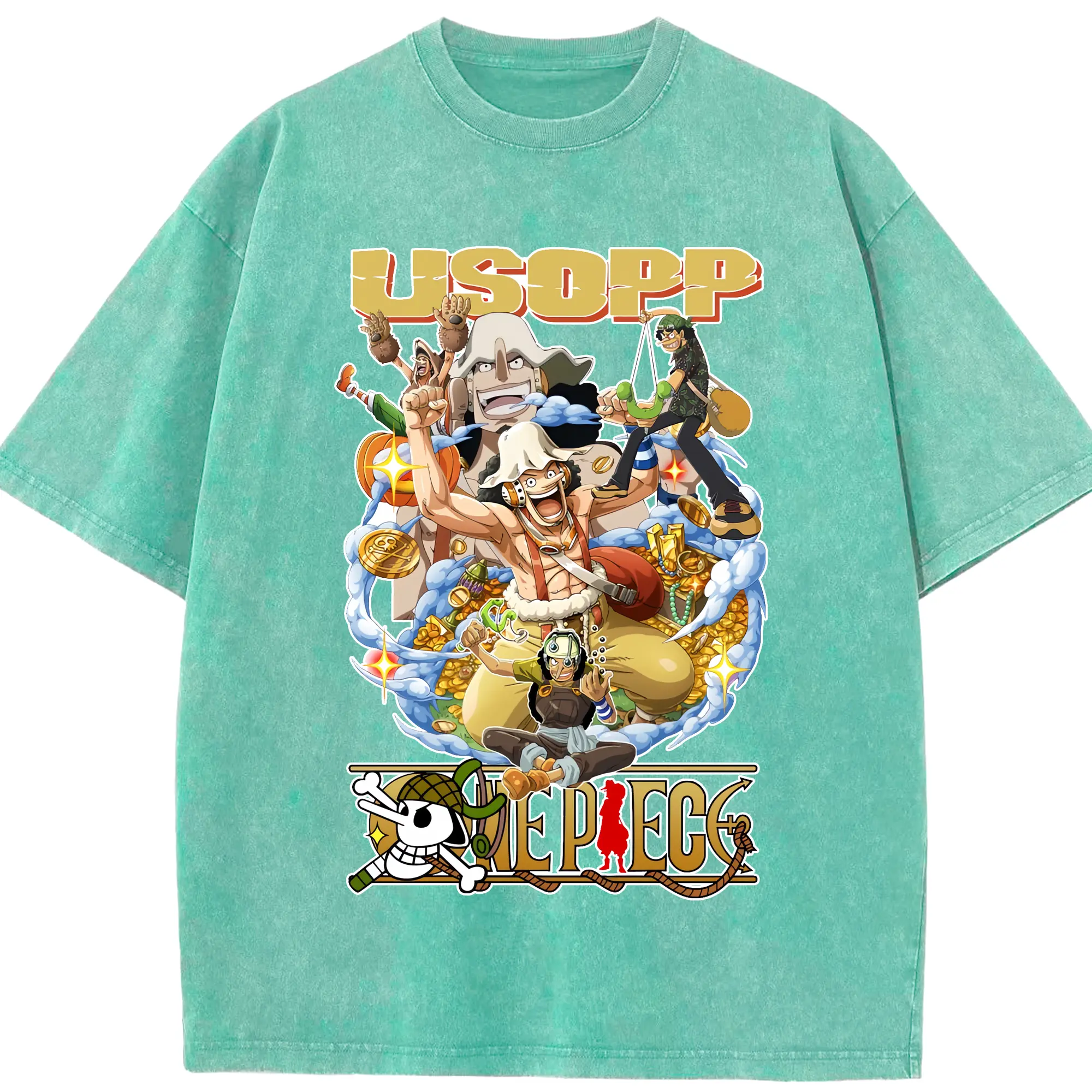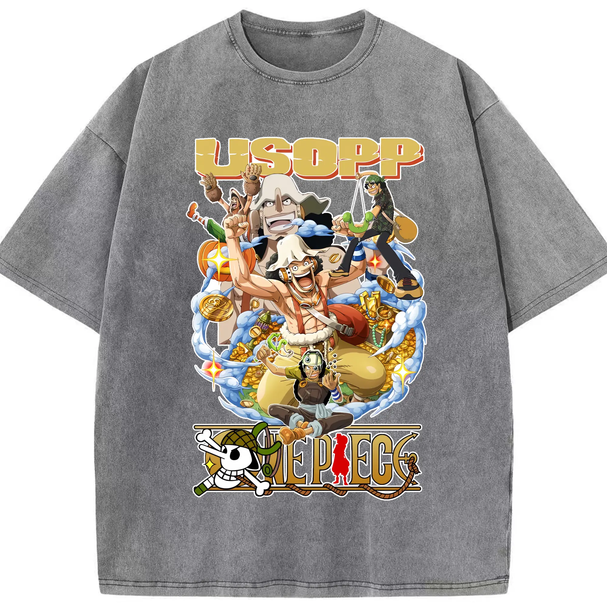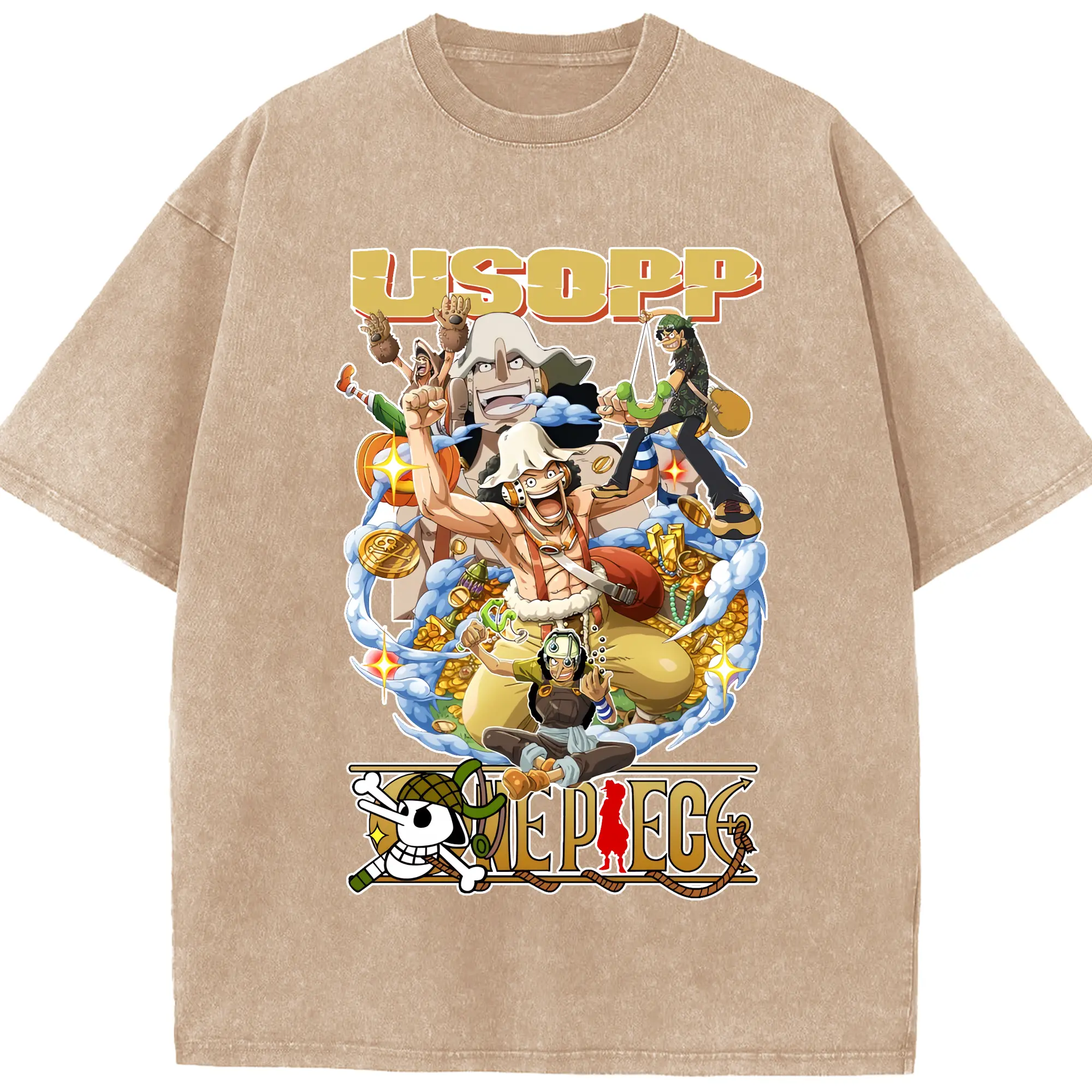 ワンピース グッズ ウソップ - 綿100% ヴィンテージ風 半袖Tシャツ ・ 背面プリント ・ 柔らか肌触り ・ 通気性 快適 ・ スポーツ カジュアル 外出用