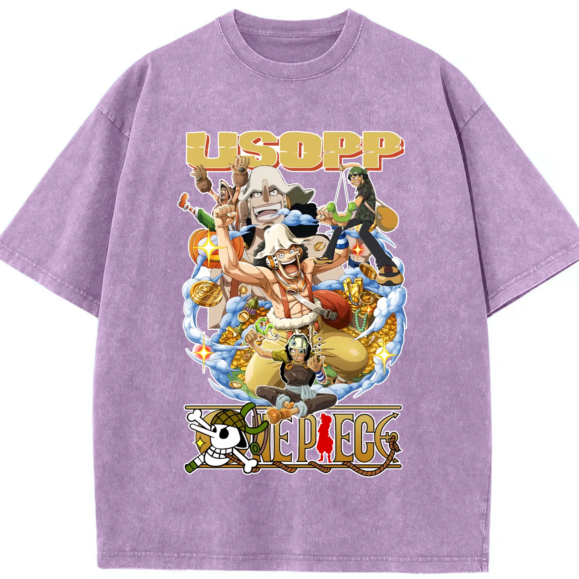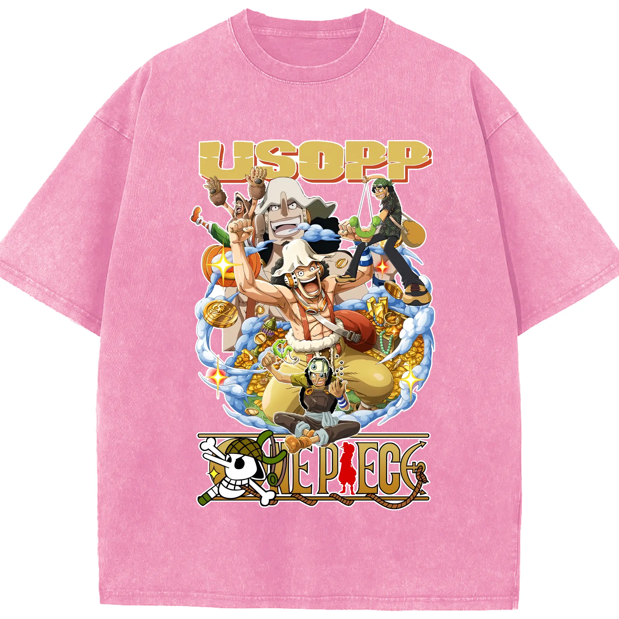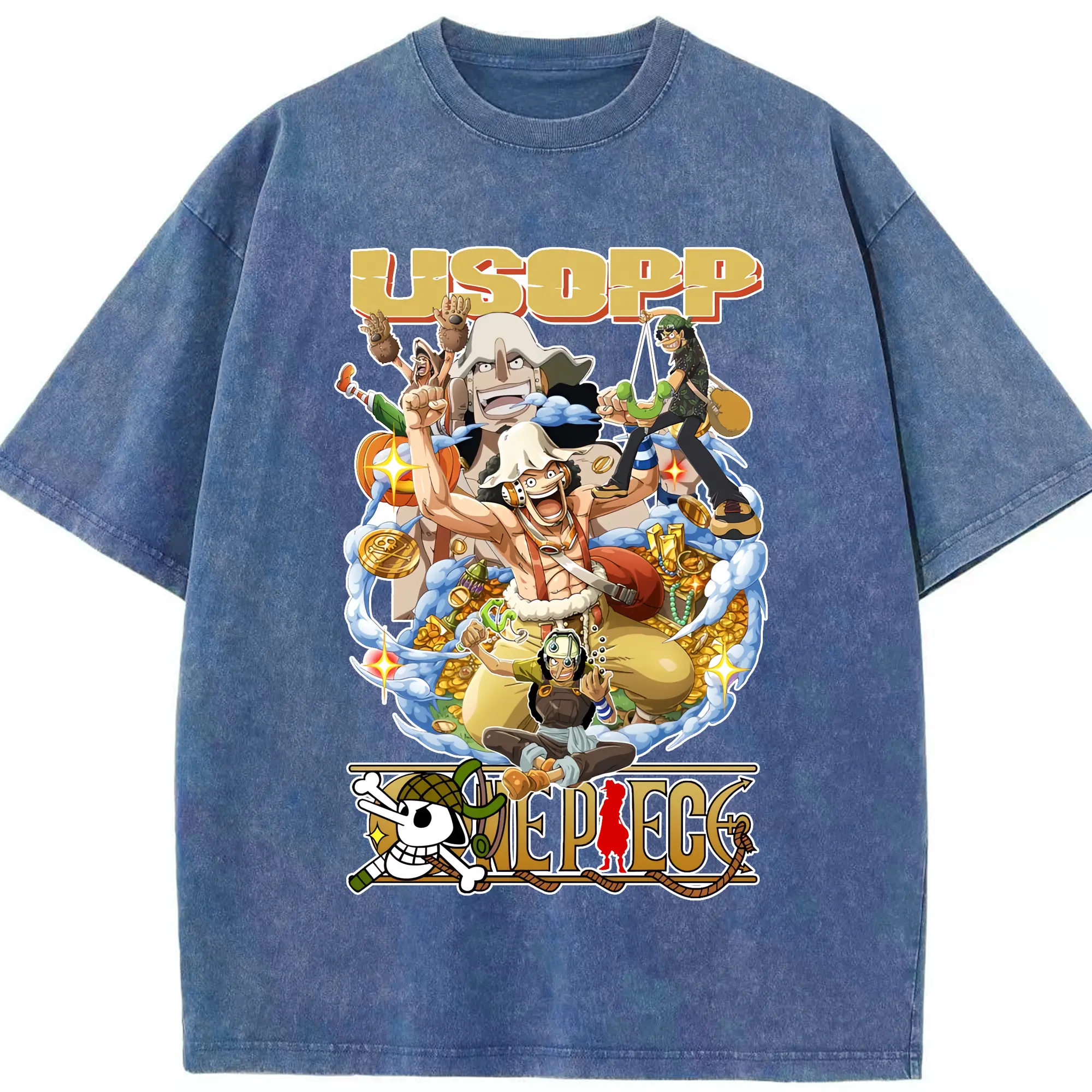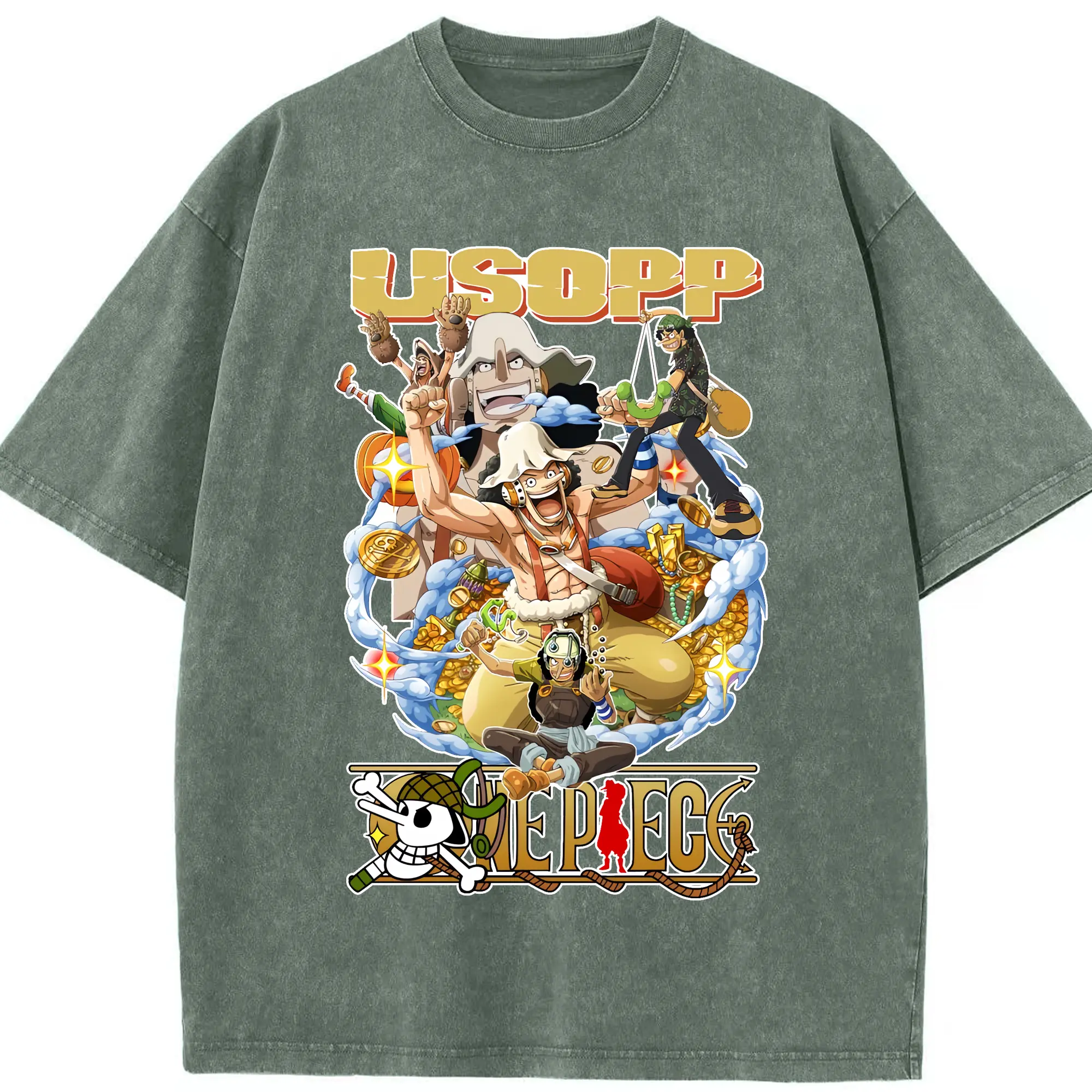 ワンピース グッズ ウソップ - 綿100% ヴィンテージ風 半袖Tシャツ ・ 背面プリント ・ 柔らか肌触り ・ 通気性 快適 ・ スポーツ カジュアル 外出用