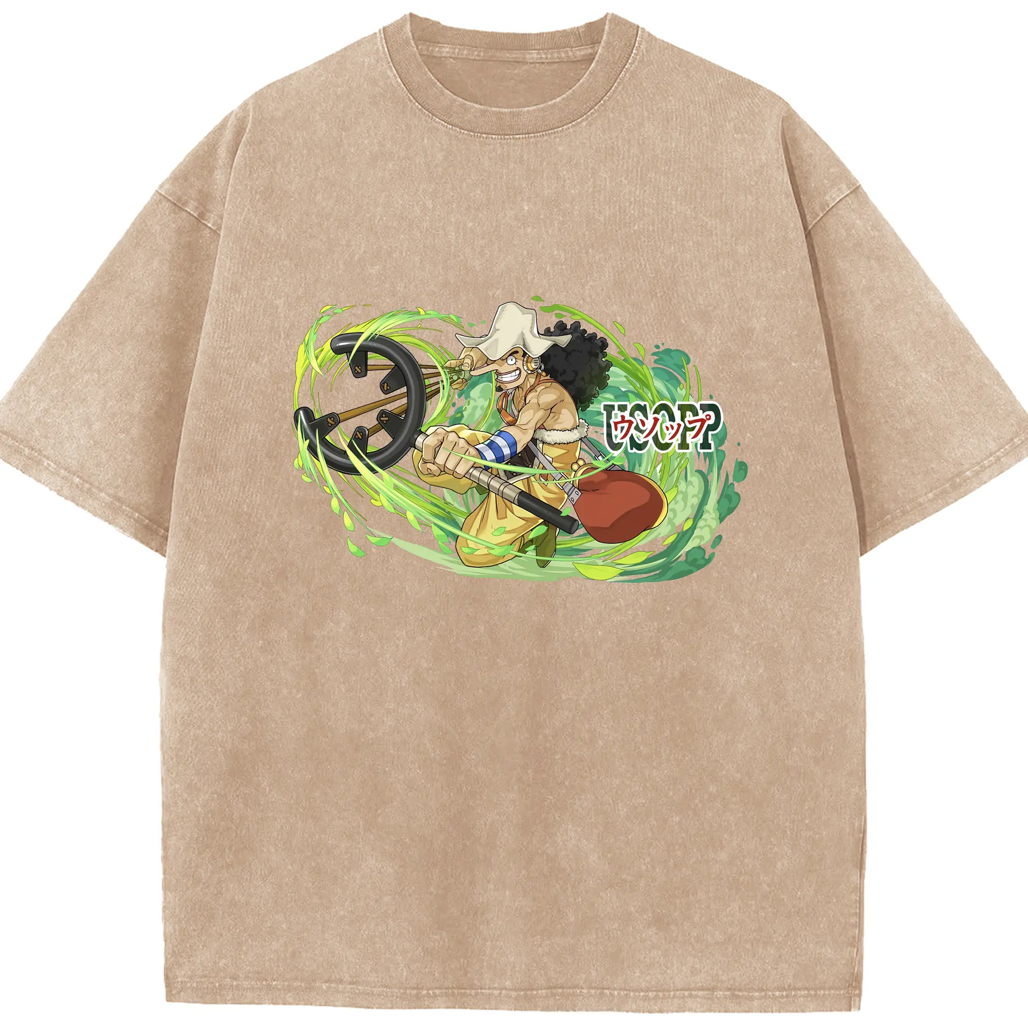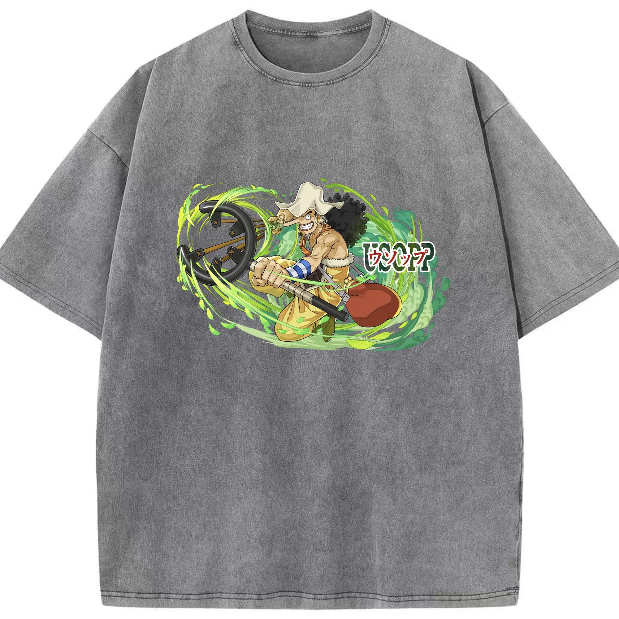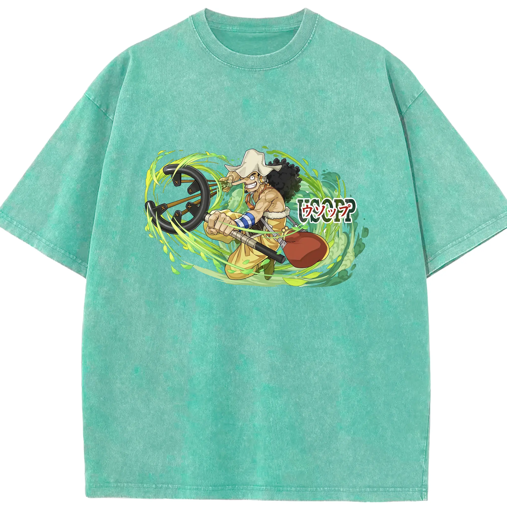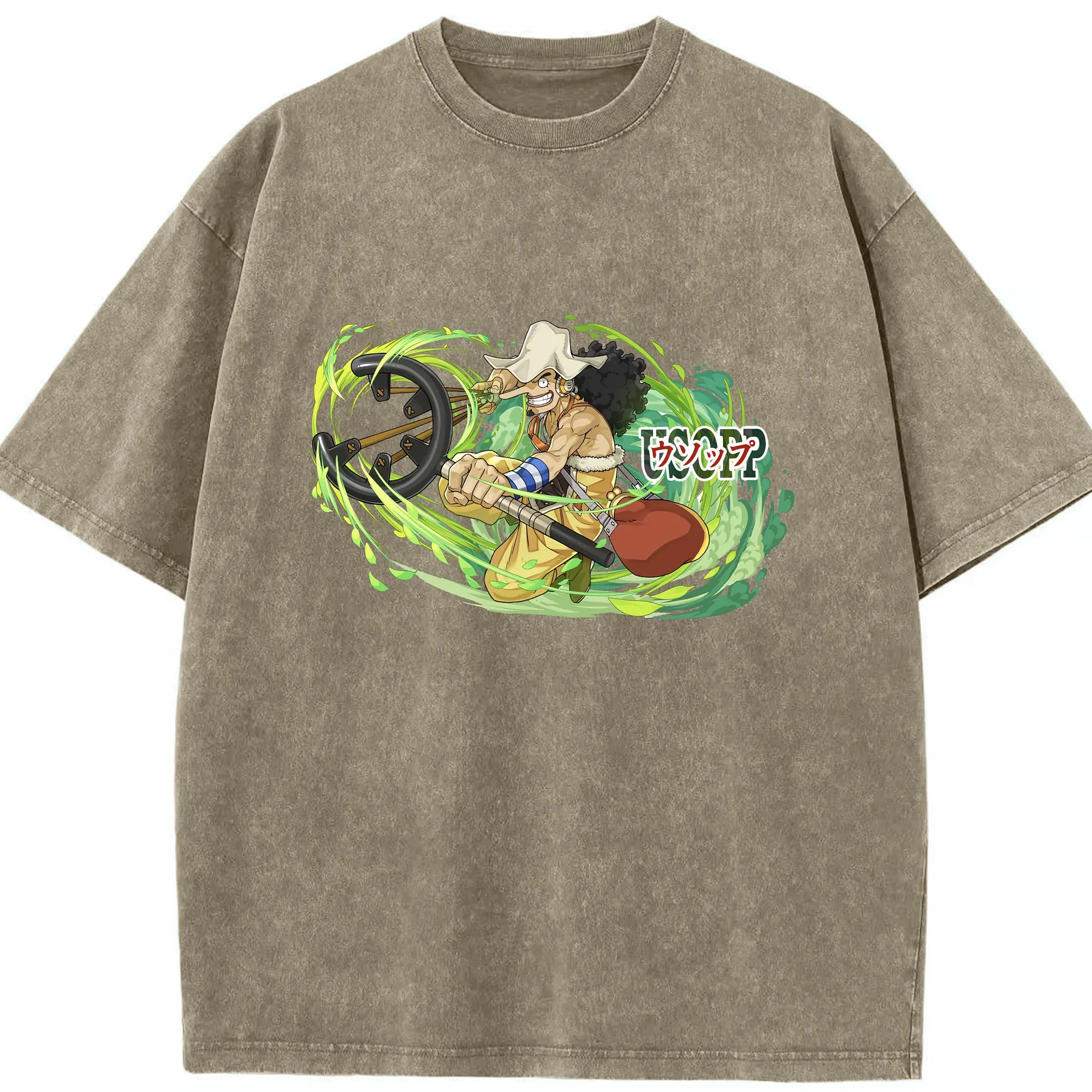ワンピース グッズ ウソップ - 綿100% ヴィンテージ風 半袖Tシャツ ・ 背面プリント ・ 柔らか肌触り ・ 通気性 快適 ・ スポーツ カジュアル 外出用
