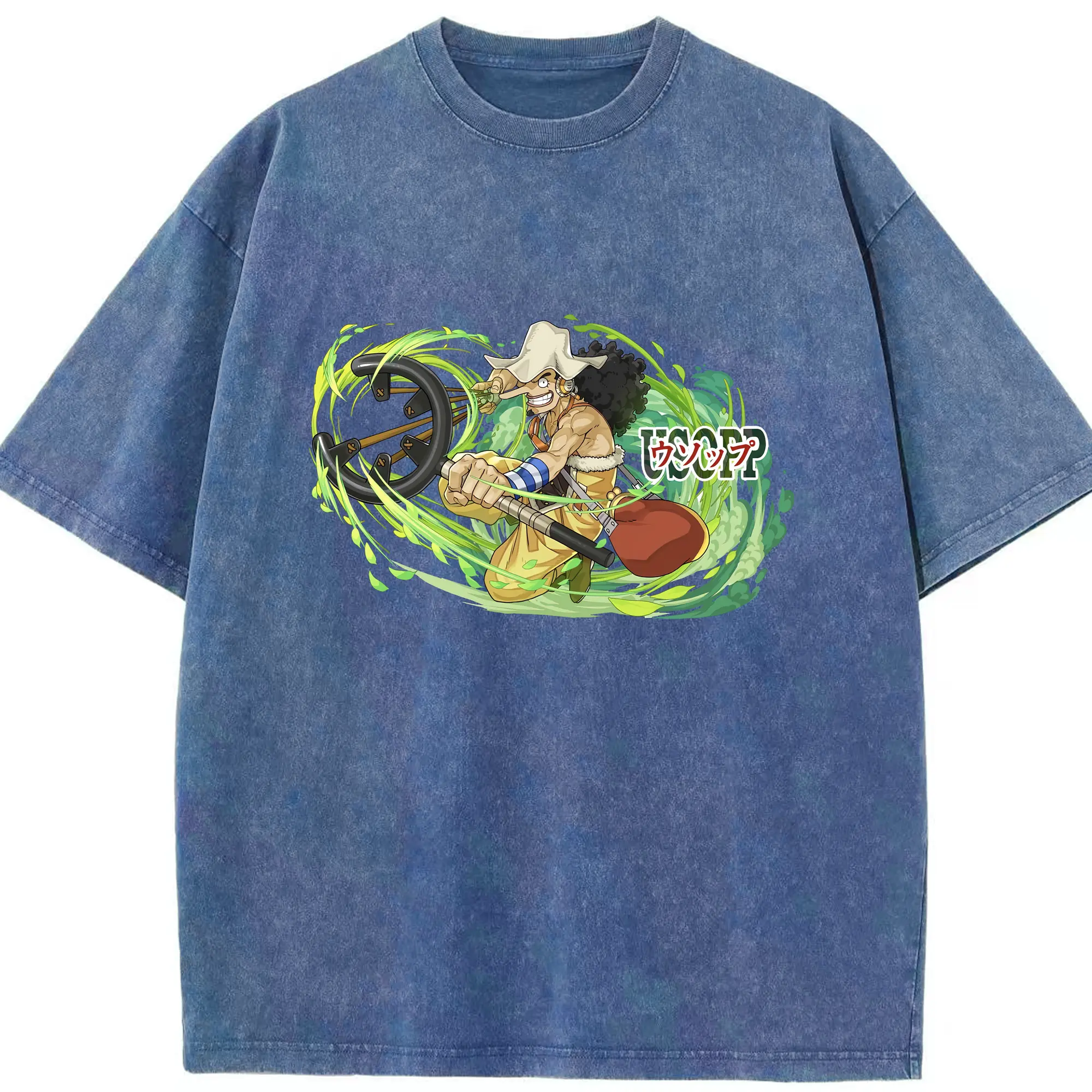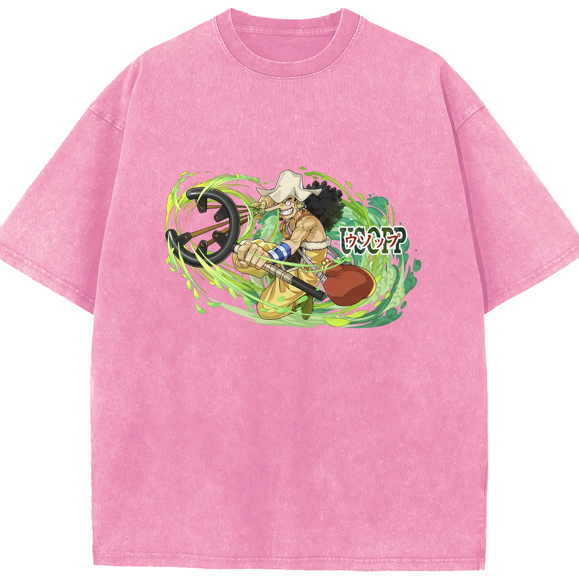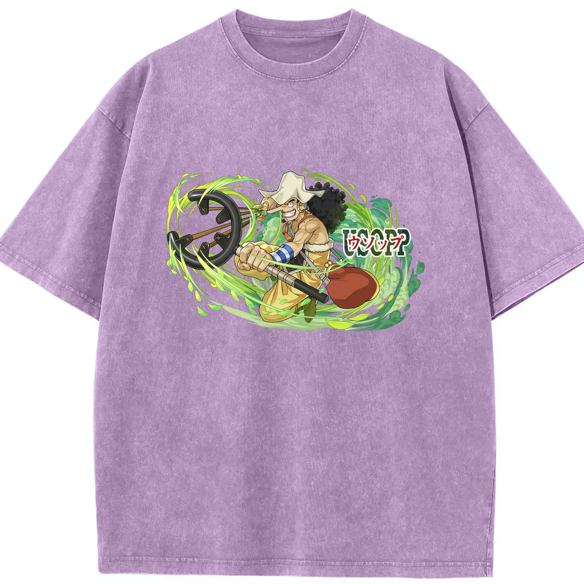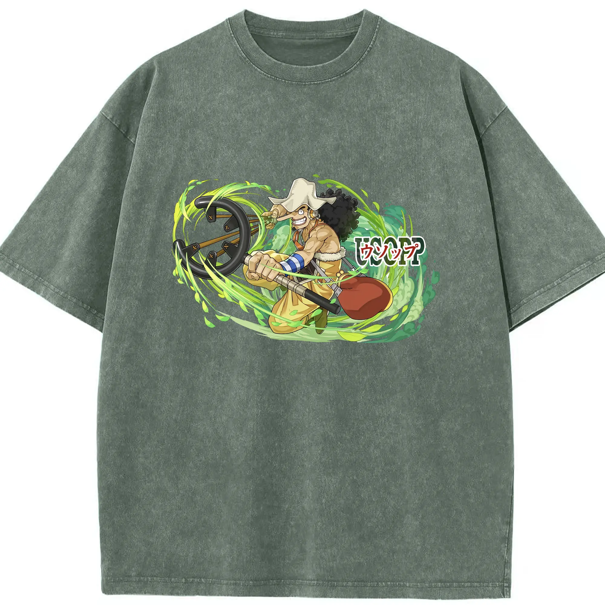 ワンピース グッズ ウソップ - 綿100% ヴィンテージ風 半袖Tシャツ ・ 背面プリント ・ 柔らか肌触り ・ 通気性 快適 ・ スポーツ カジュアル 外出用