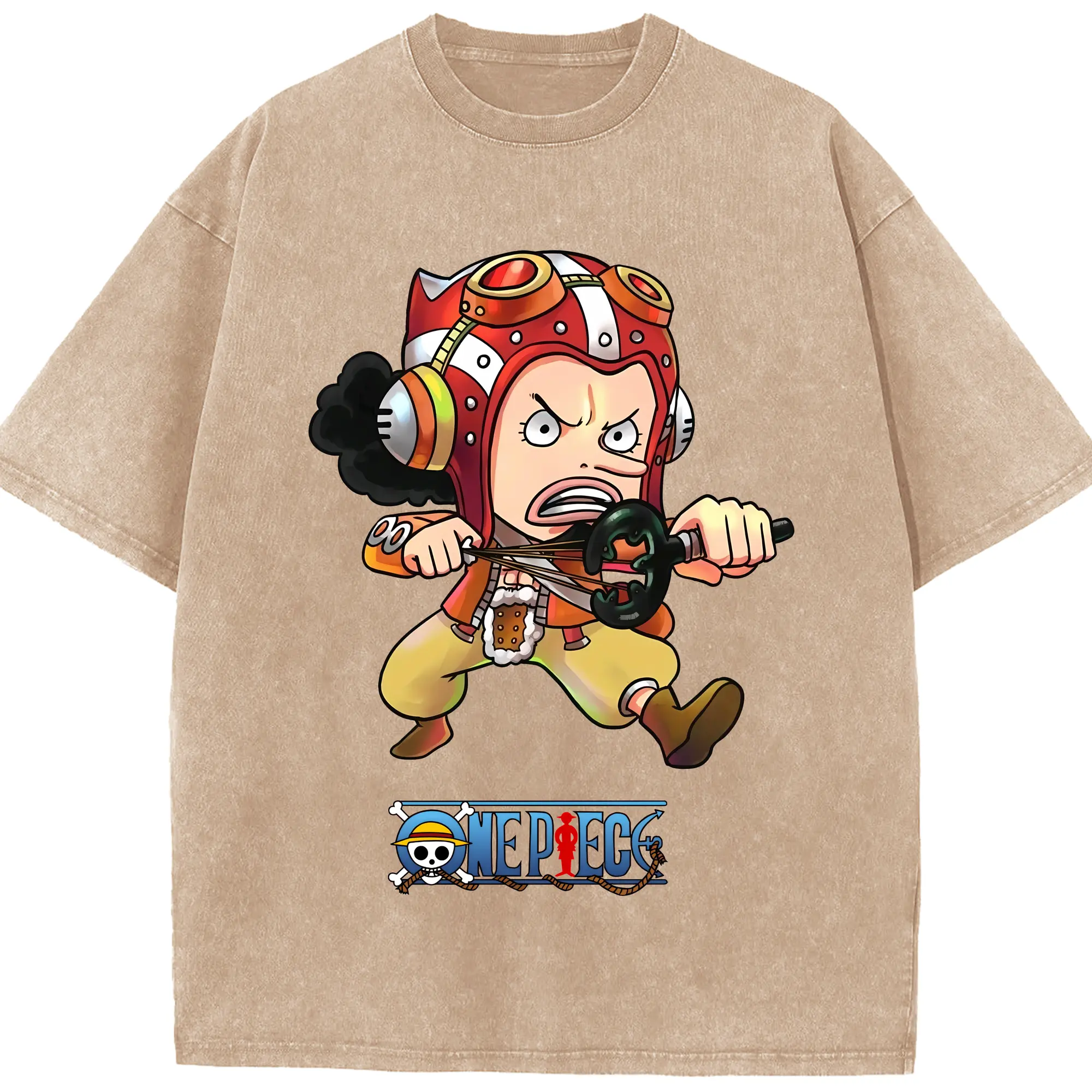 ワンピース グッズ ウソップ - 綿100% ヴィンテージ風 半袖Tシャツ ・ 背面プリント ・ 柔らか肌触り ・ 通気性 快適 ・ スポーツ カジュアル 外出用
