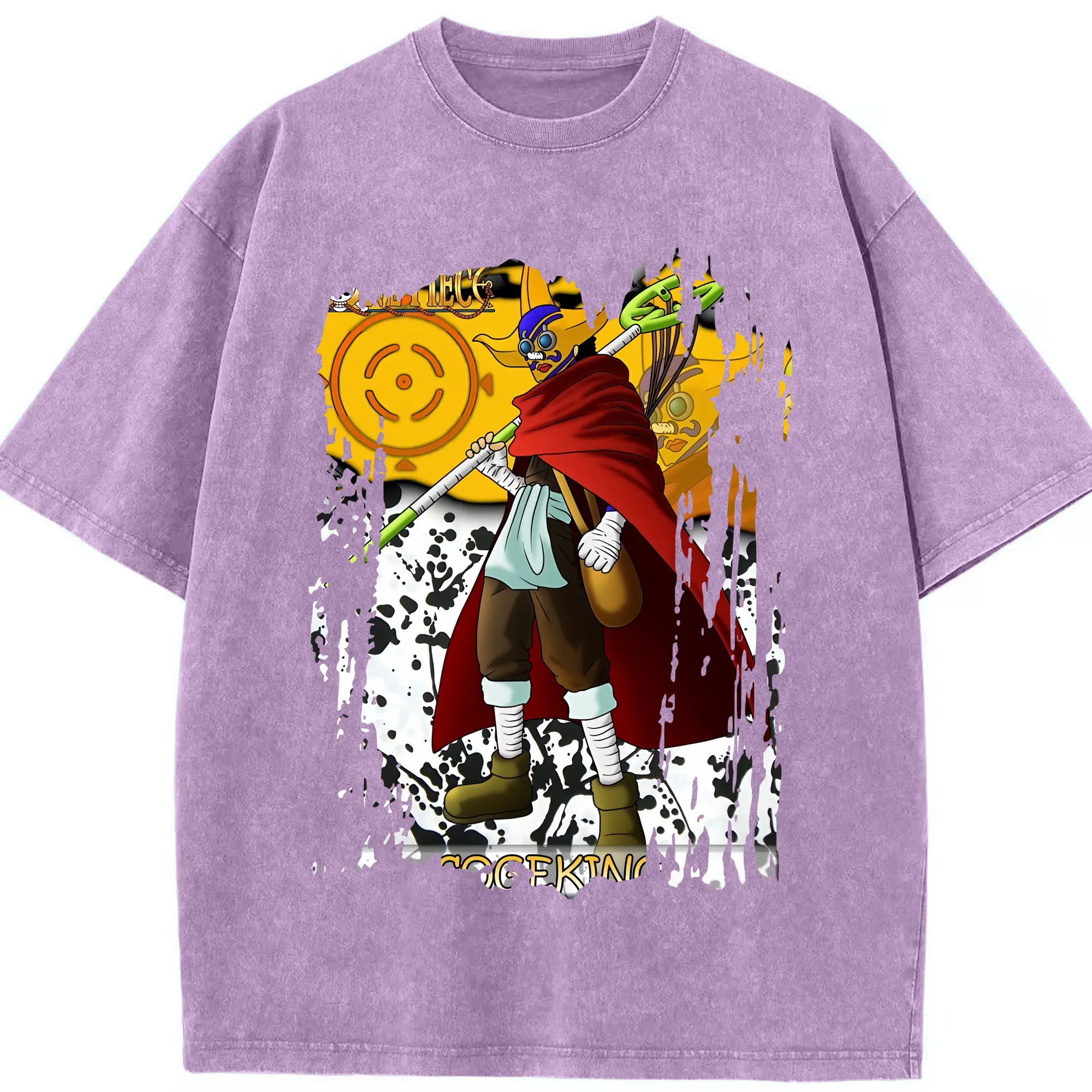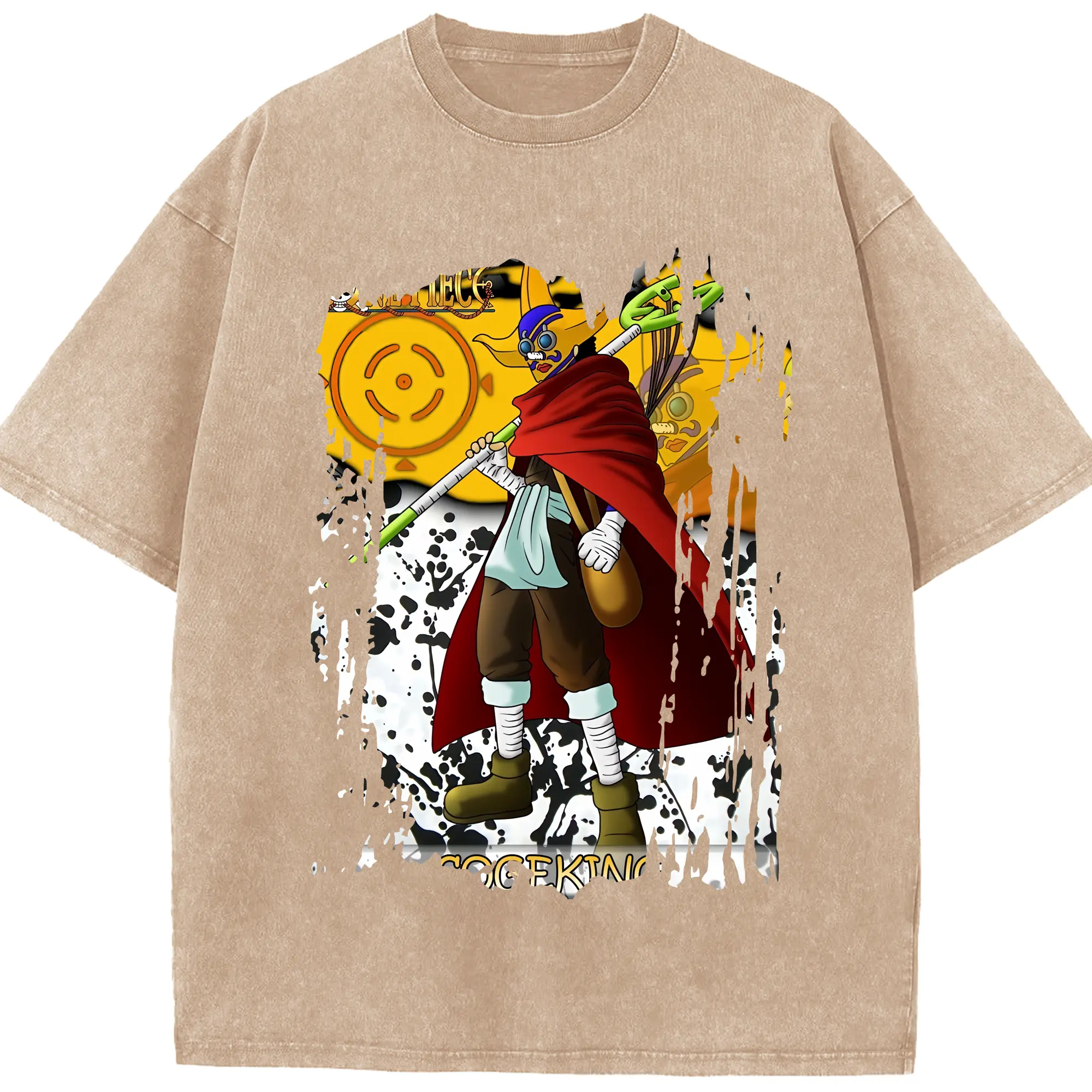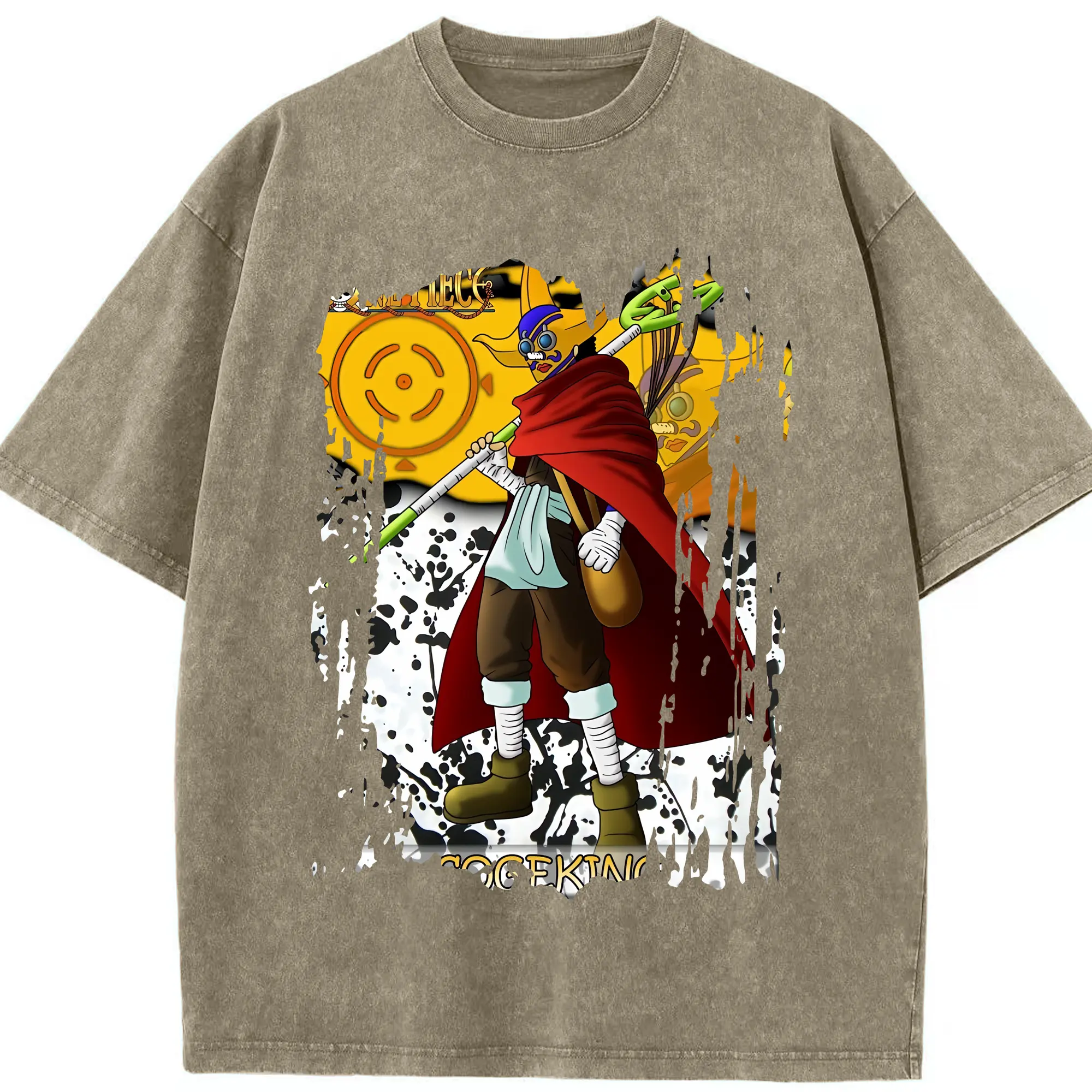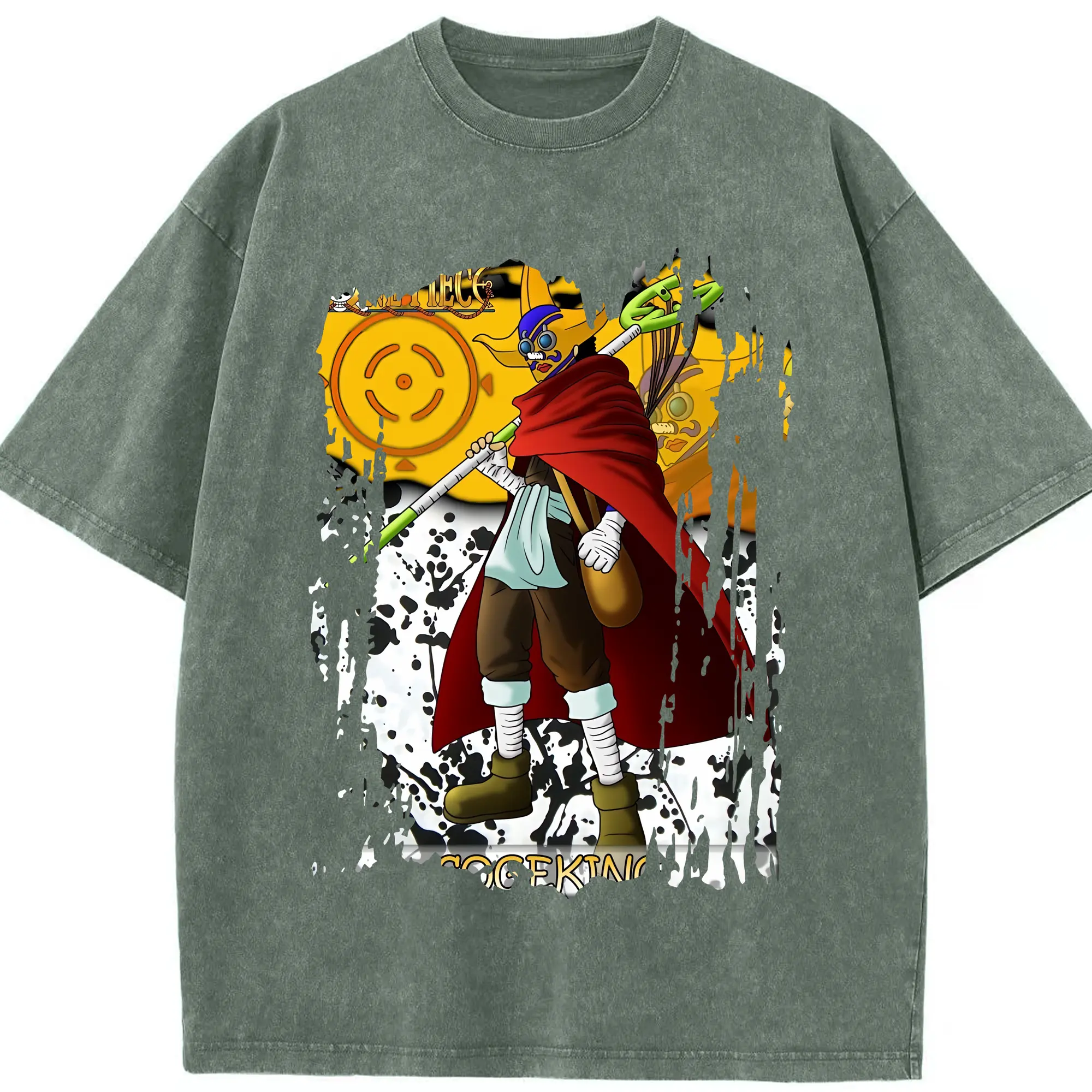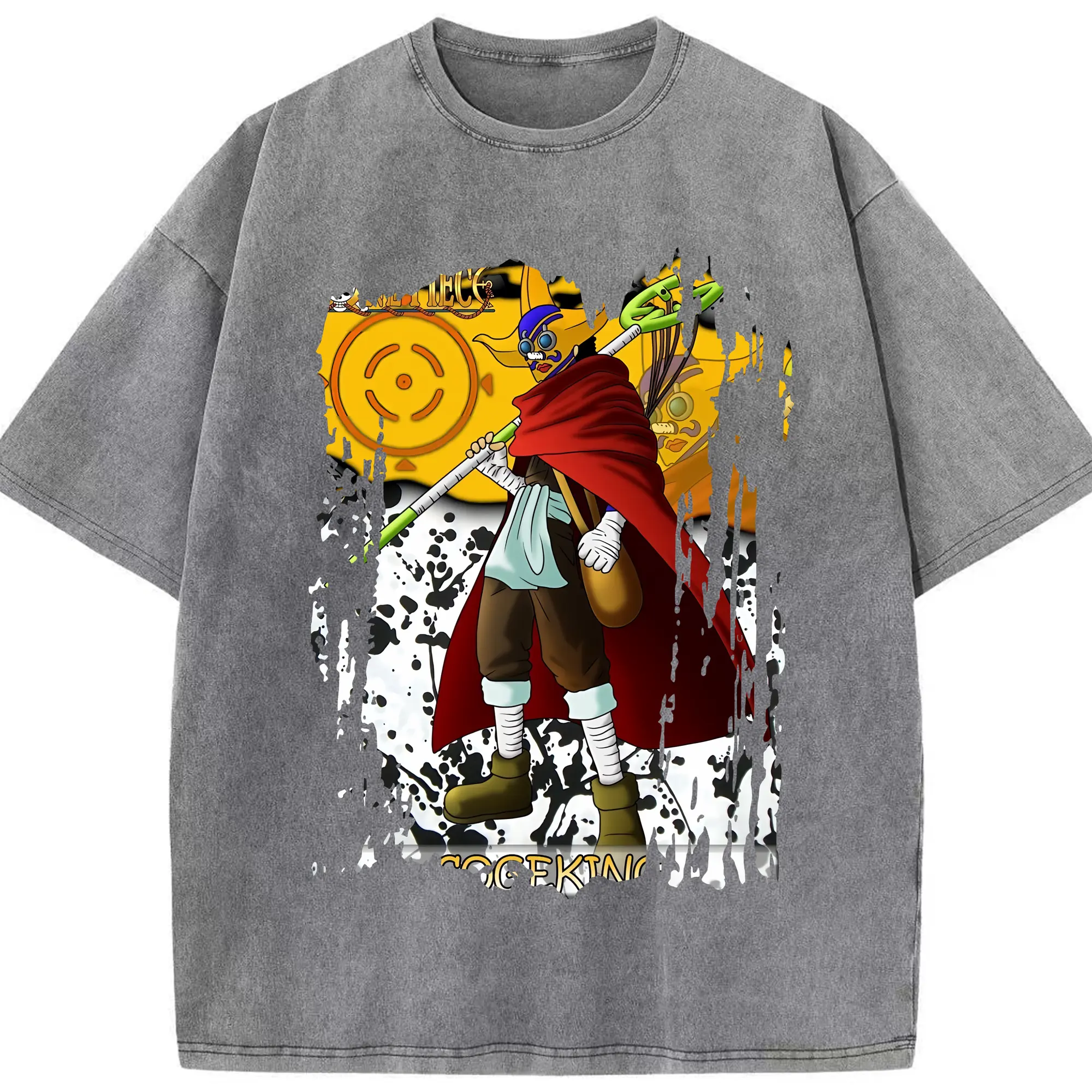 ワンピース グッズ ウソップ - 綿100% ヴィンテージ風 半袖Tシャツ ・ 背面プリント ・ 柔らか肌触り ・ 通気性 快適 ・ スポーツ カジュアル 外出用