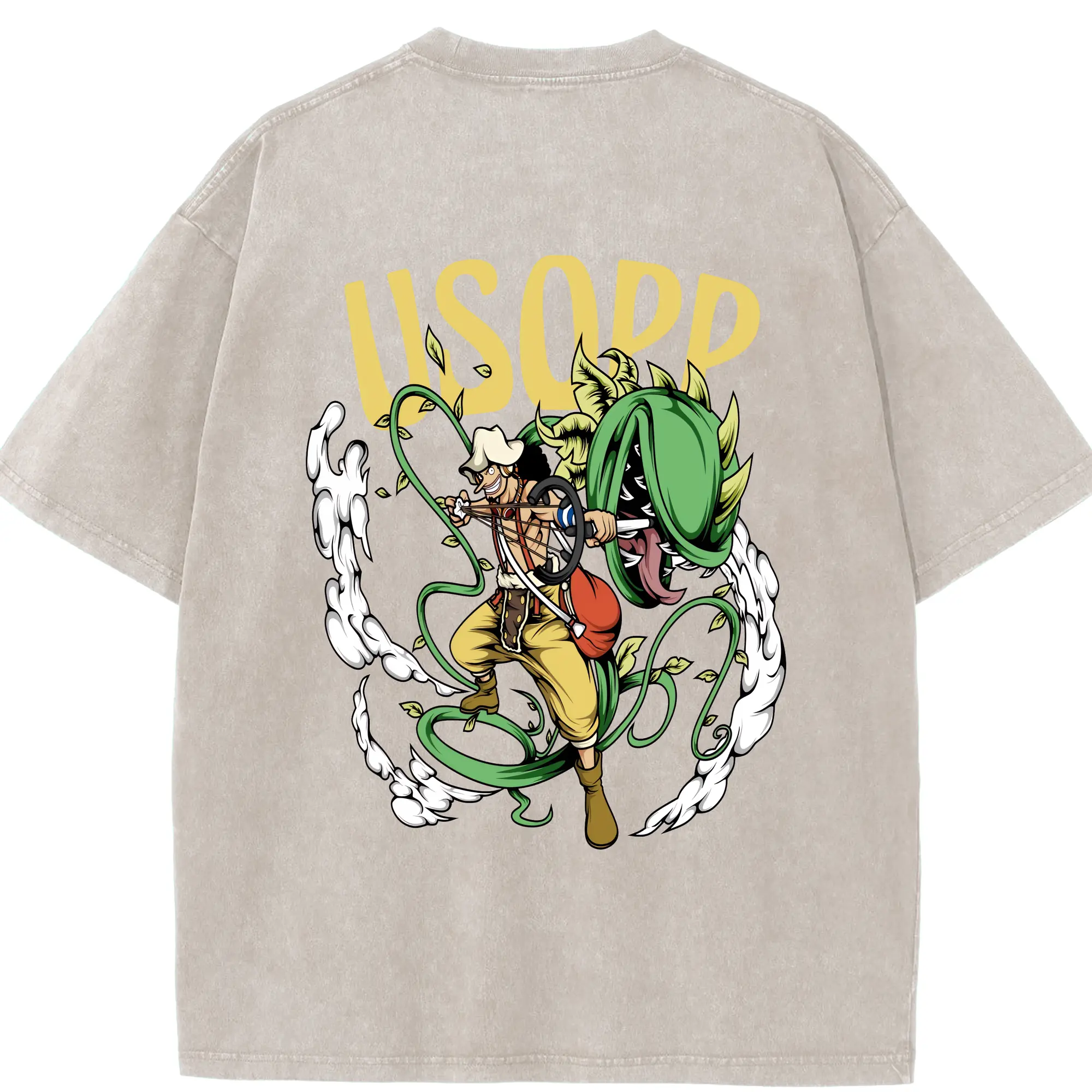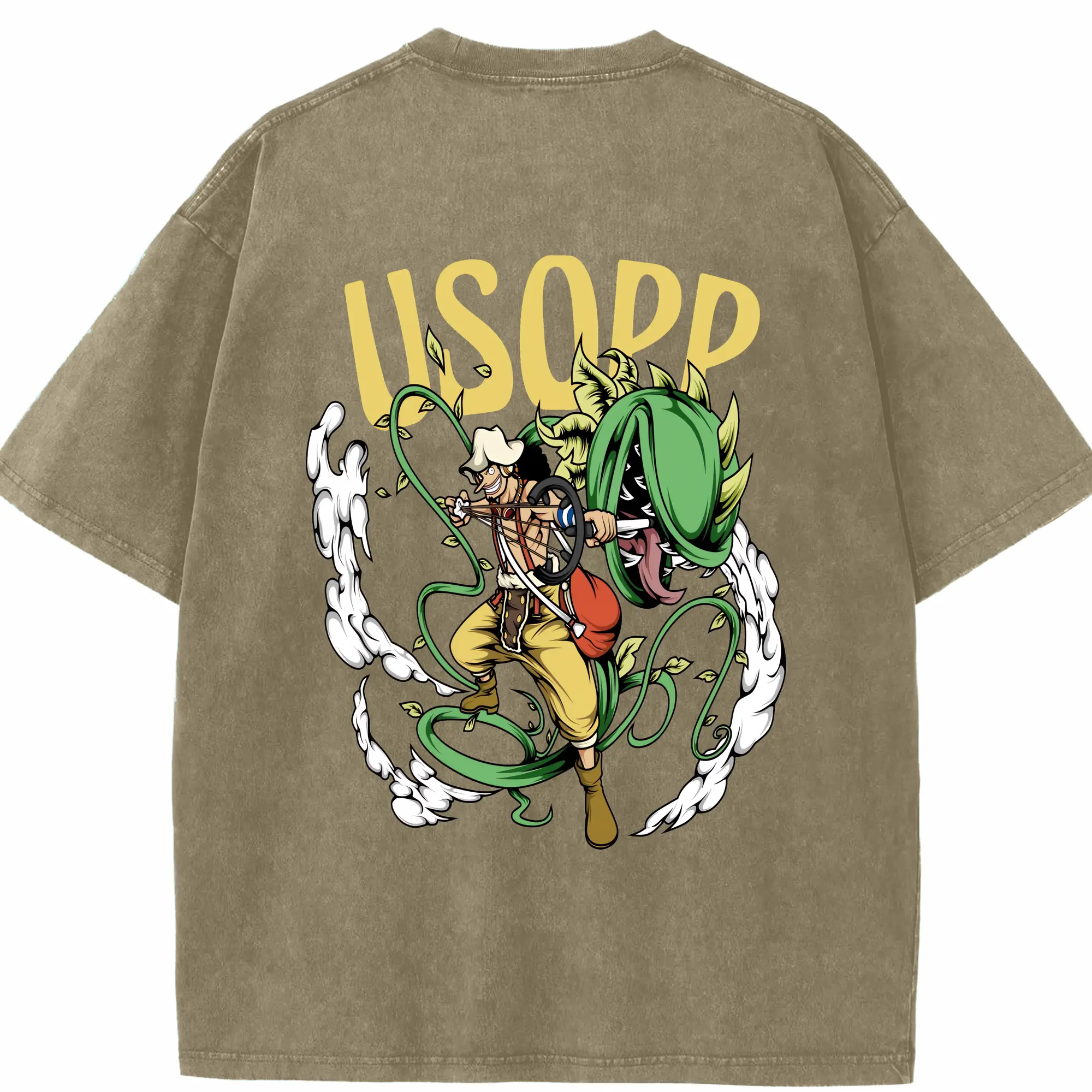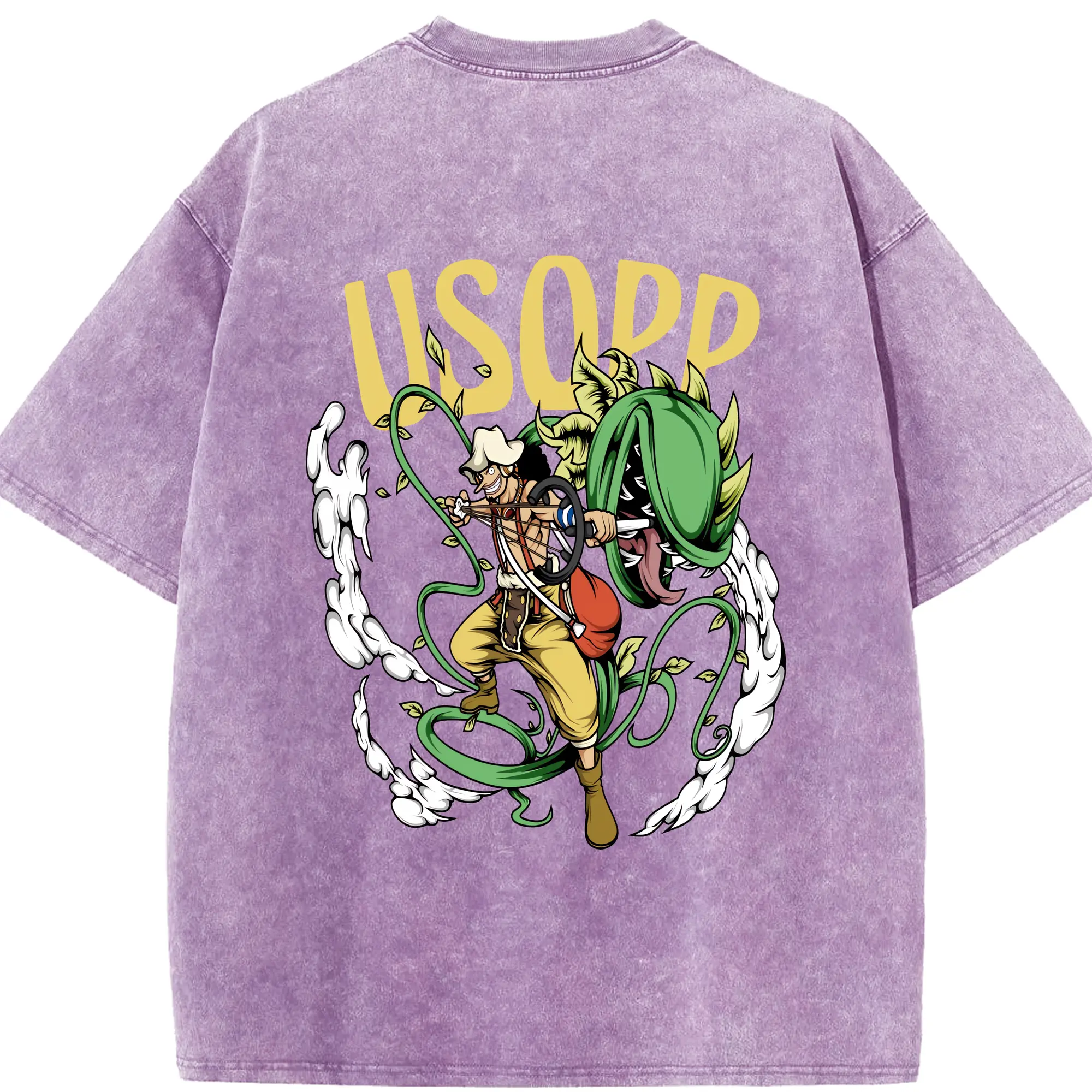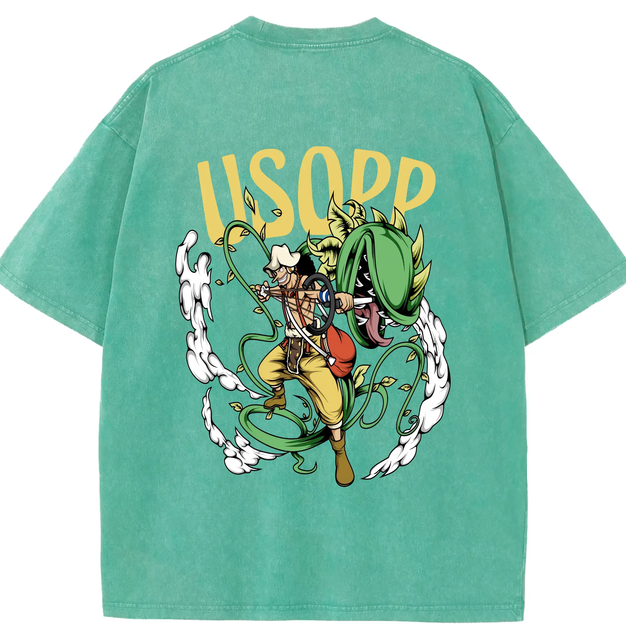 ワンピース グッズ ウソップ - 綿100% ヴィンテージ風 半袖Tシャツ ・ フロントプリント ・ 柔らか肌触り ・ 通気性 快適 ・ スポーツ カジュアル 外出用