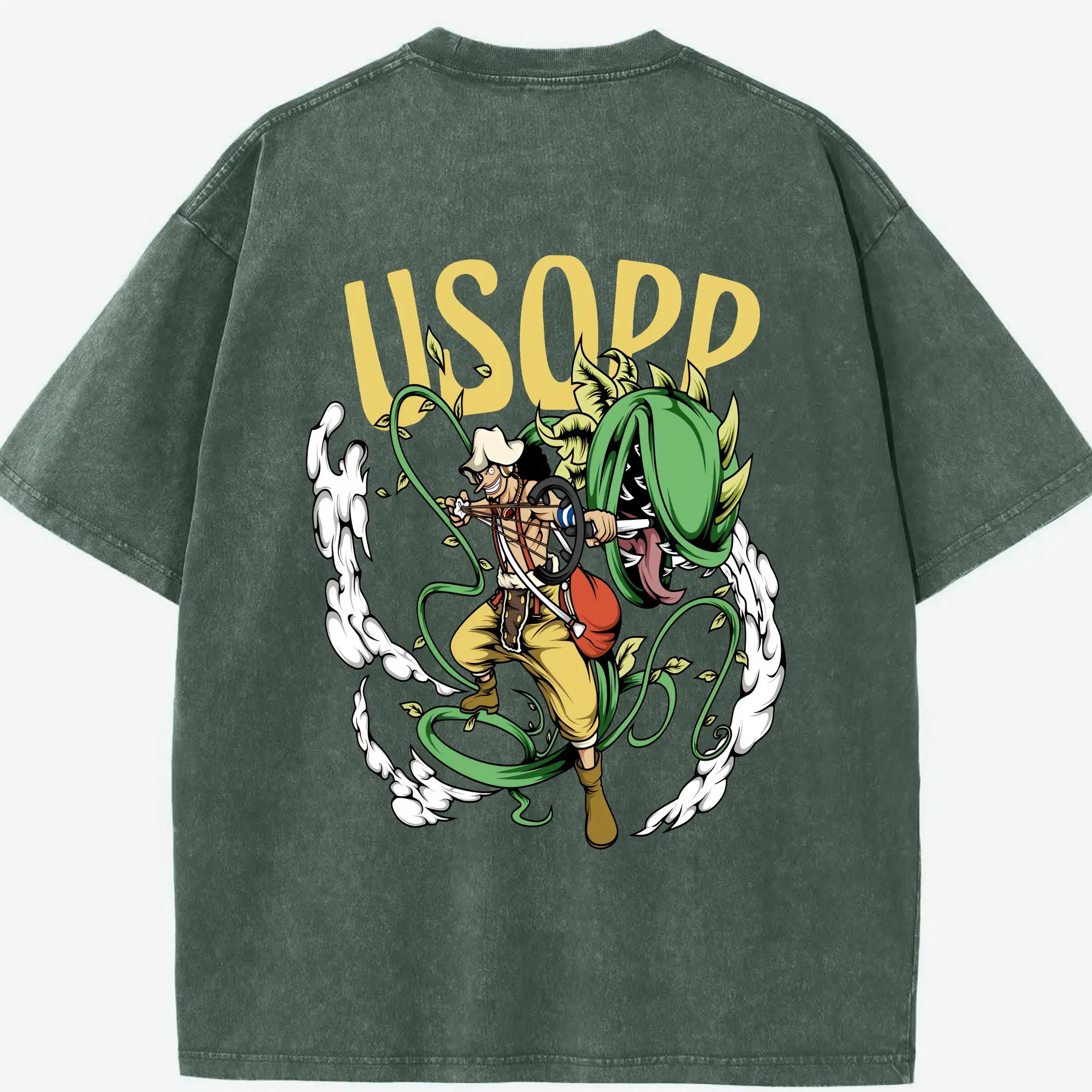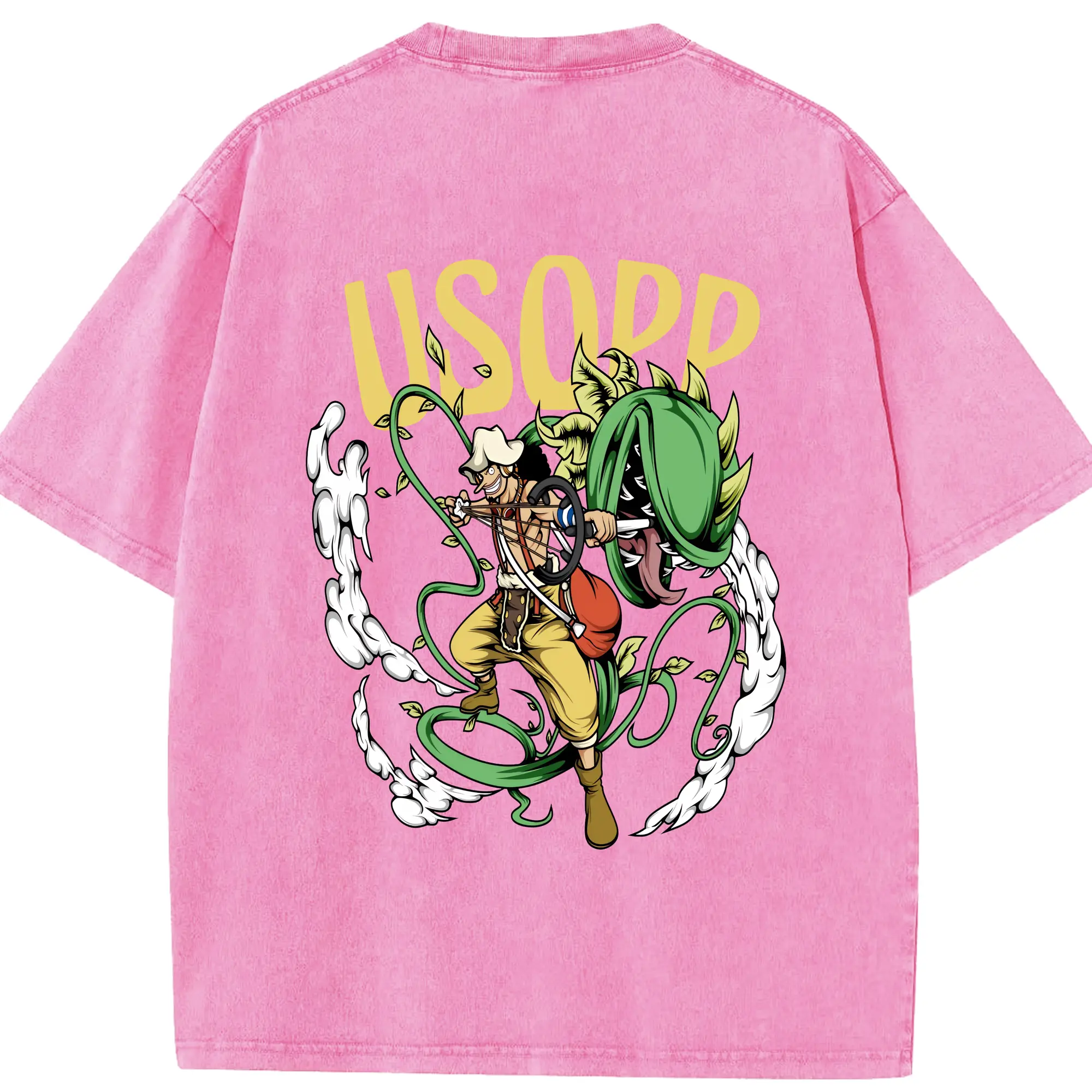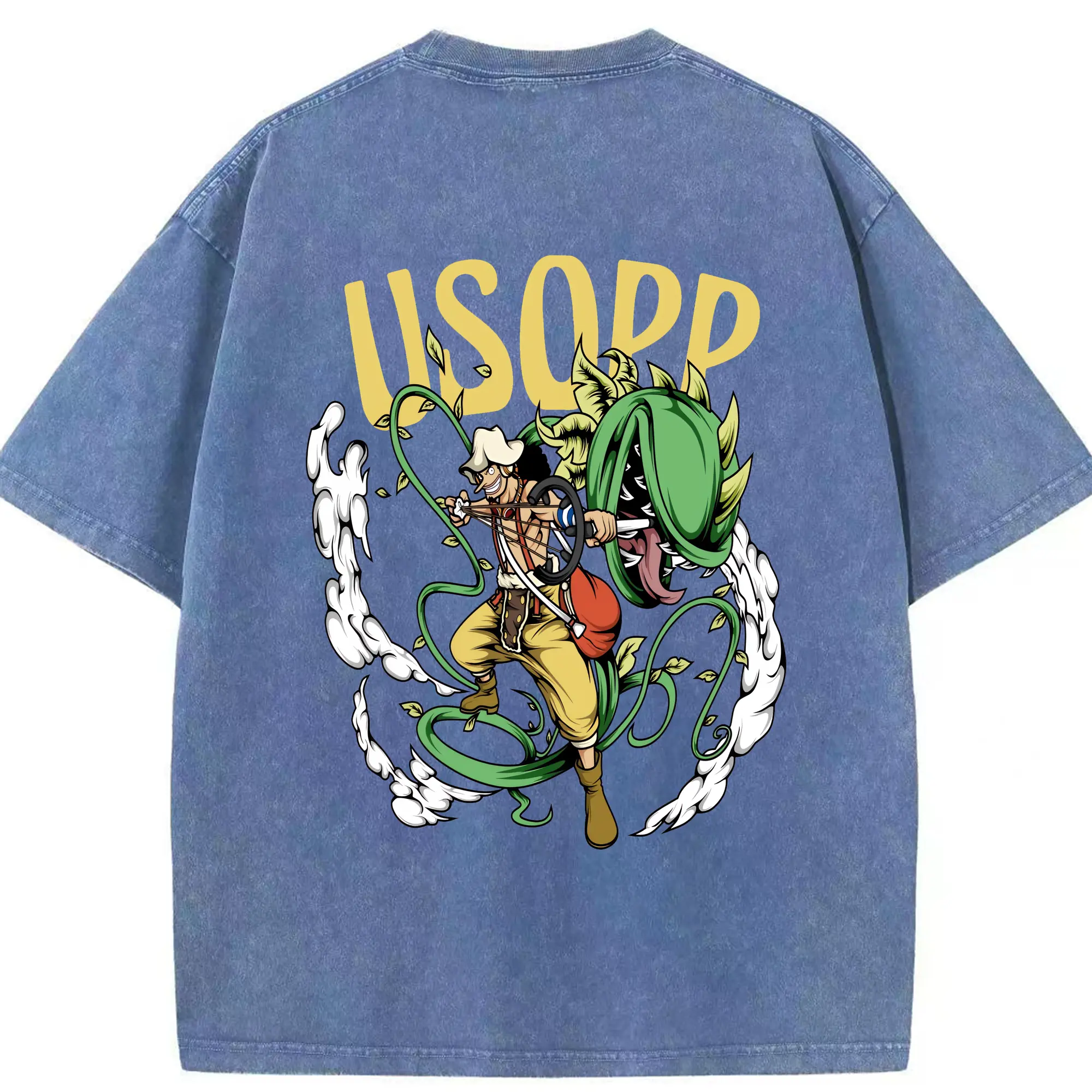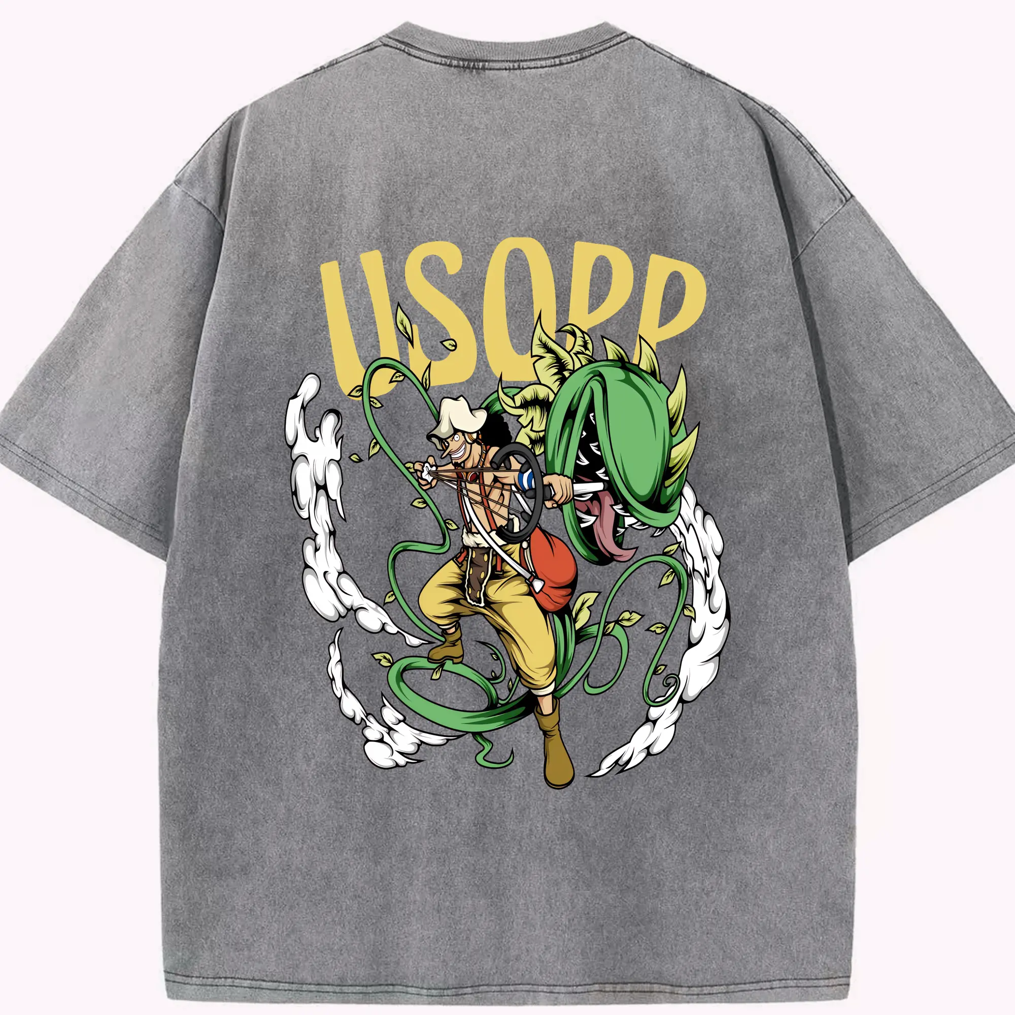 ワンピース グッズ ウソップ - 綿100% ヴィンテージ風 半袖Tシャツ ・ フロントプリント ・ 柔らか肌触り ・ 通気性 快適 ・ スポーツ カジュアル 外出用
