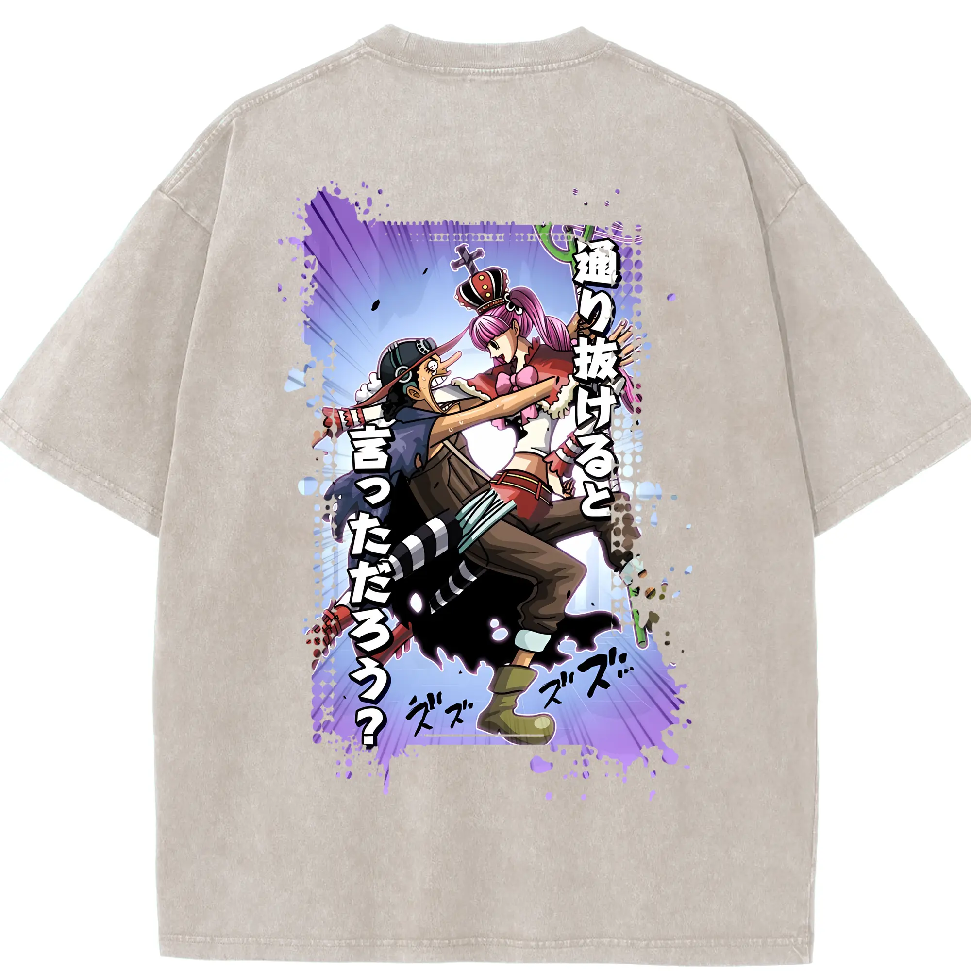 ワンピース グッズ ウソップ - 綿100% ヴィンテージ風 半袖Tシャツ ・ フロントプリント ・ 柔らか肌触り ・ 通気性 快適 ・ スポーツ カジュアル 外出用