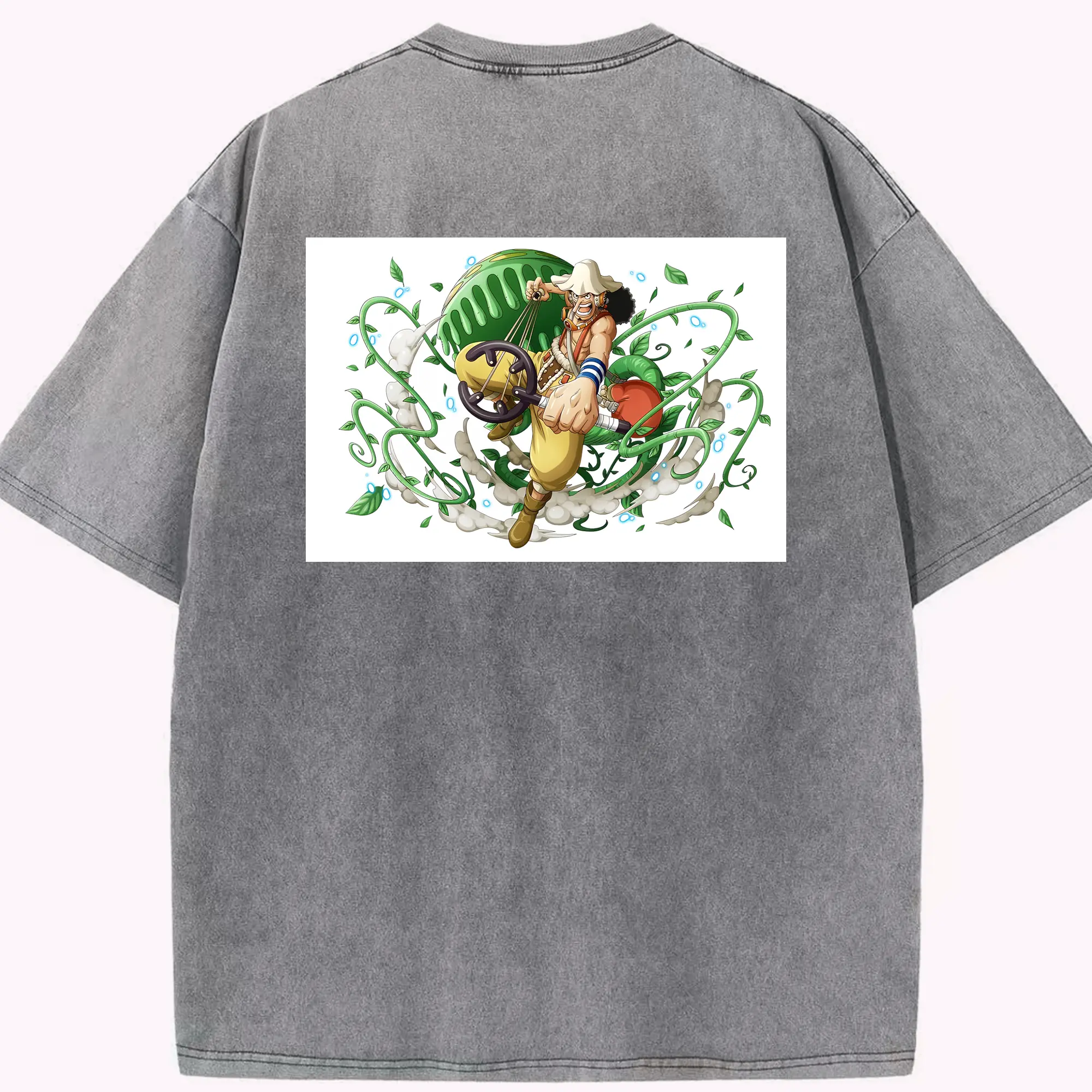 ワンピース グッズ ウソップ - 綿100% ヴィンテージ風 半袖Tシャツ ・ 背面プリント ・ 柔らか肌触り ・ 通気性 快適 ・ スポーツ カジュアル 外出用