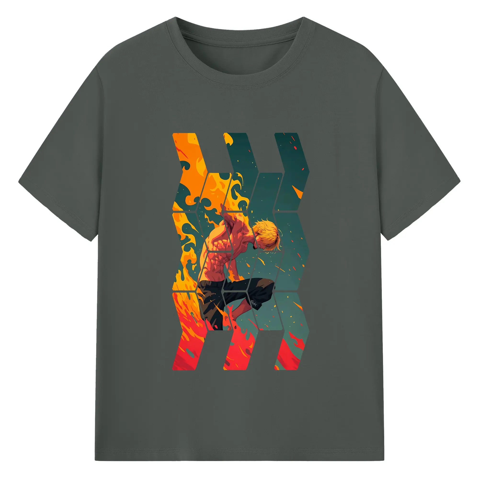 ワンピース グッズ ヴィンスモーク・サンジ - 綿100% 半袖Tシャツ ・ バックプリント ・ 快適 通気性 ・ 日常使い 散歩 スポーツ用