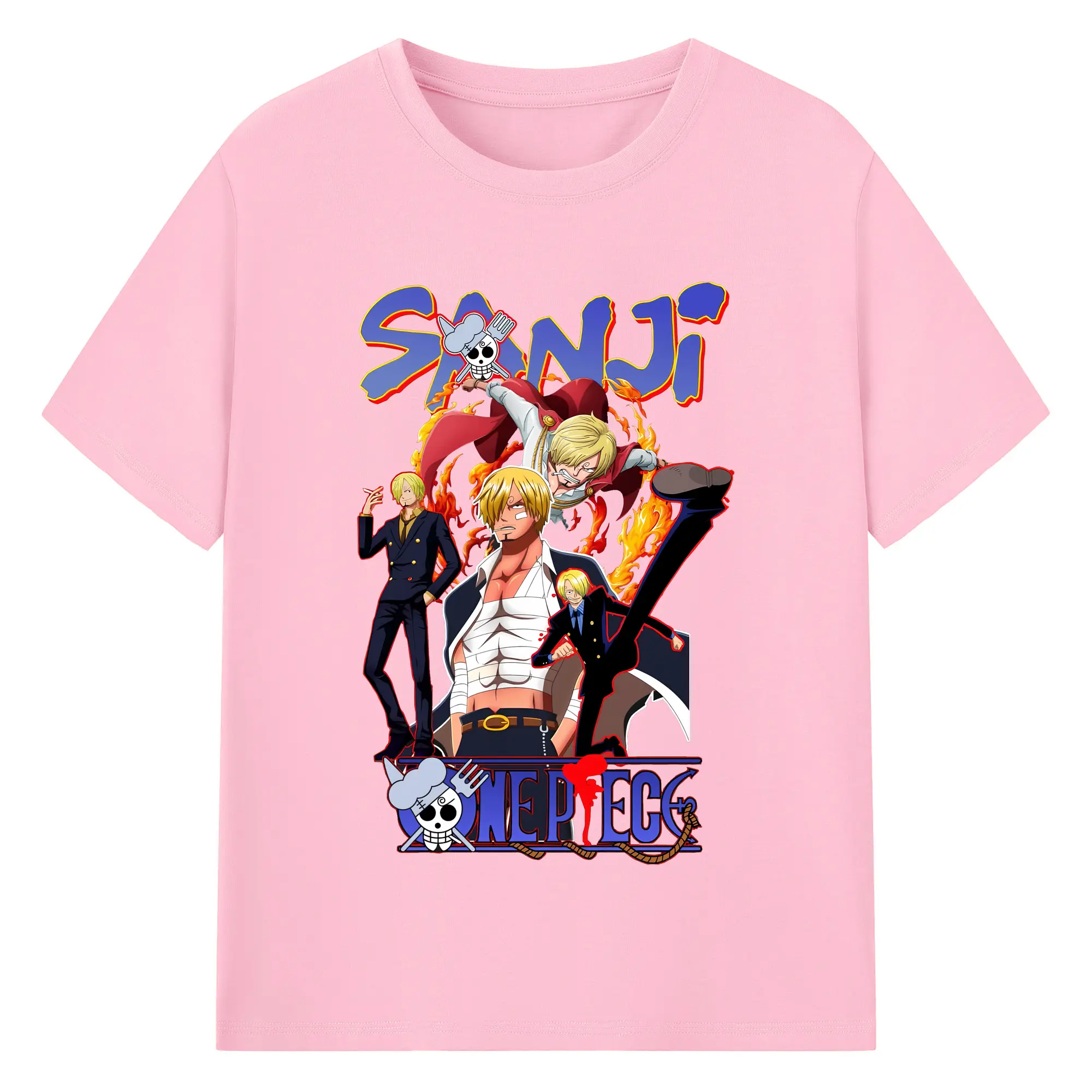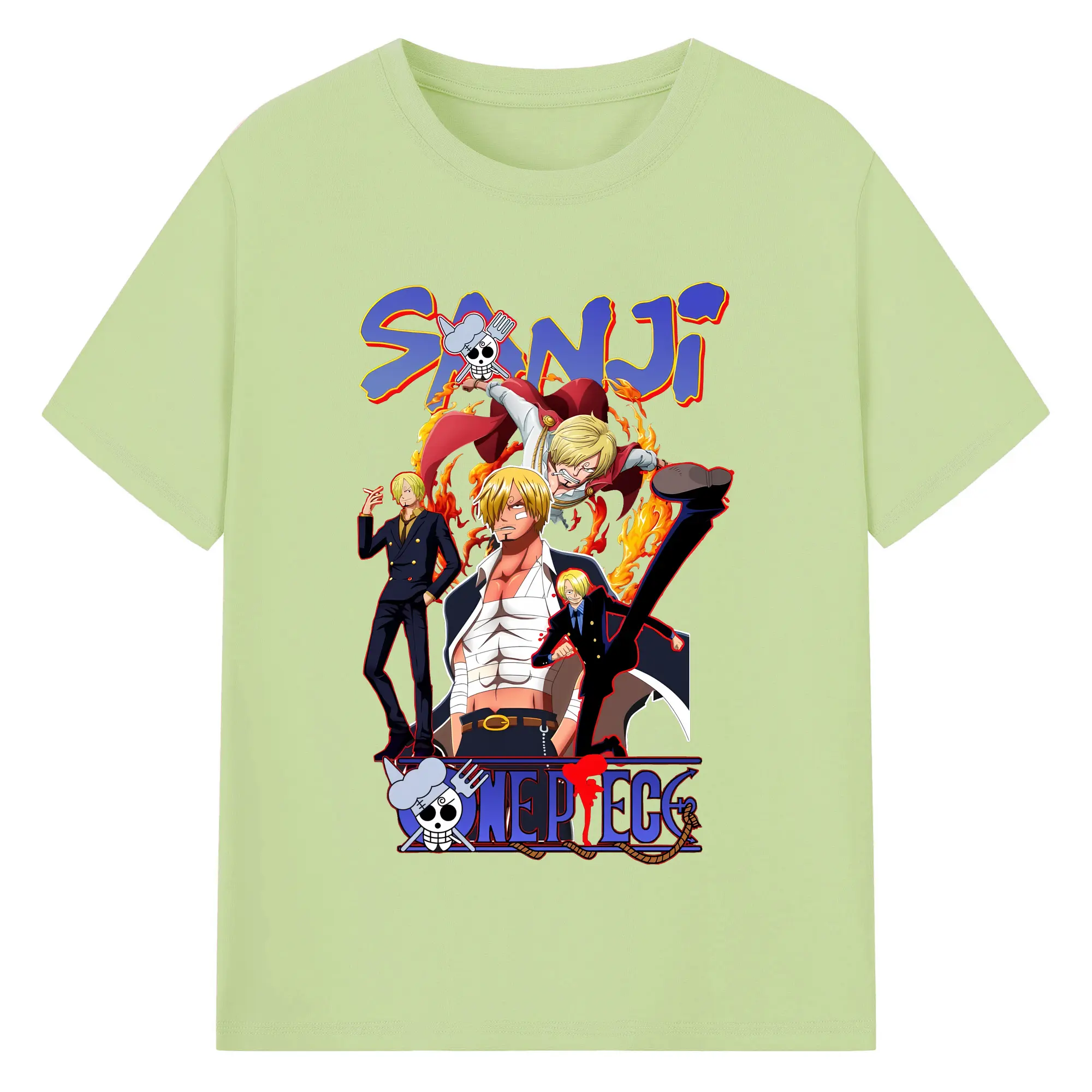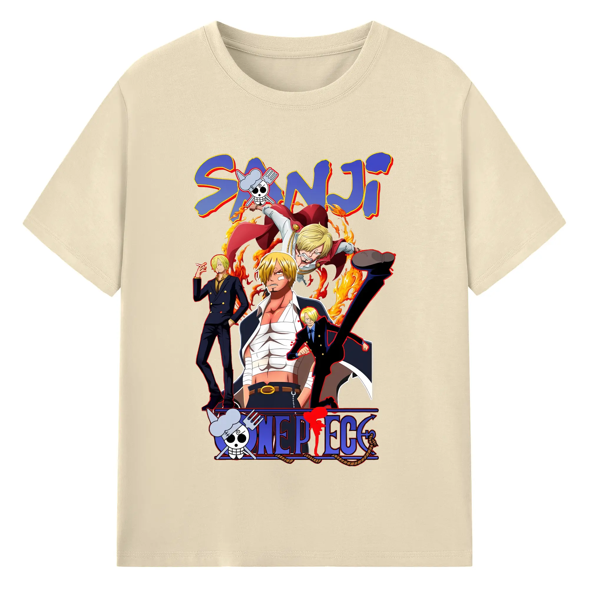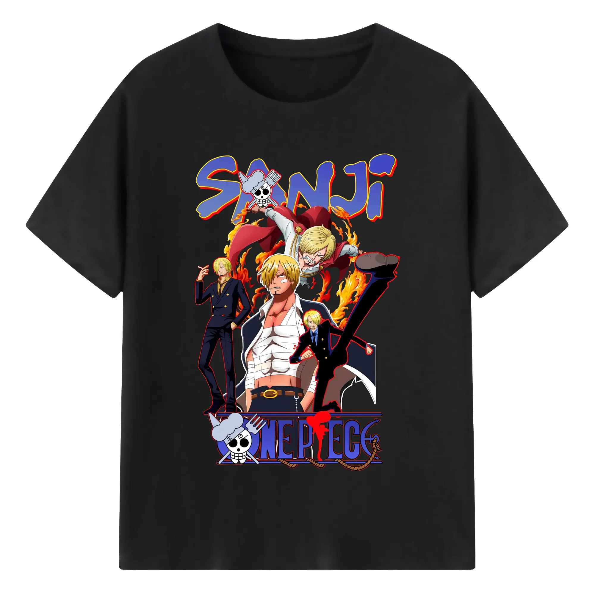 ワンピース グッズ ヴィンスモーク・サンジ - 綿100% ヴィンテージ風 半袖Tシャツ ・ フロントプリント ・ 柔らか肌触り ・ 通気性 快適 ・ スポーツ カジュアル 外出用