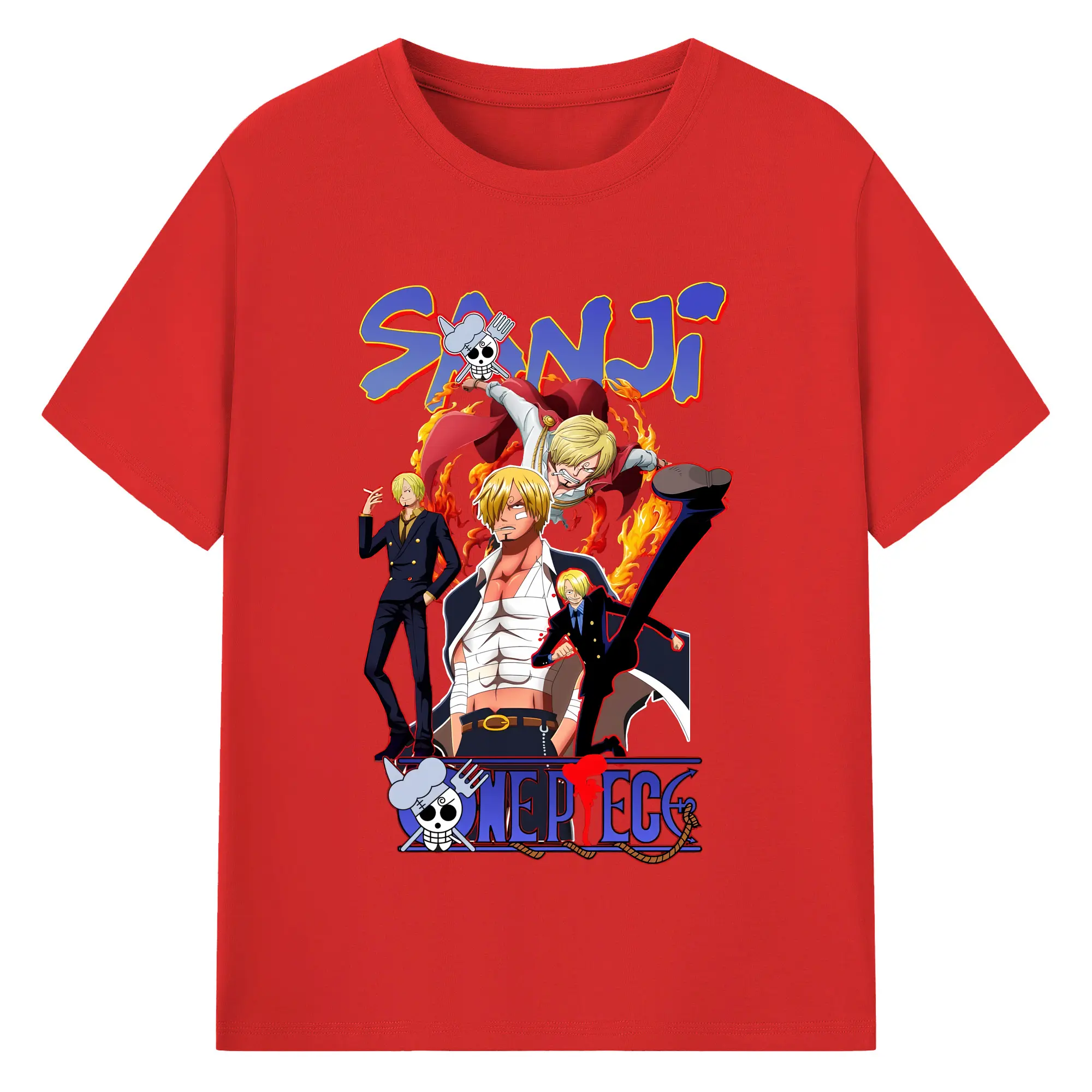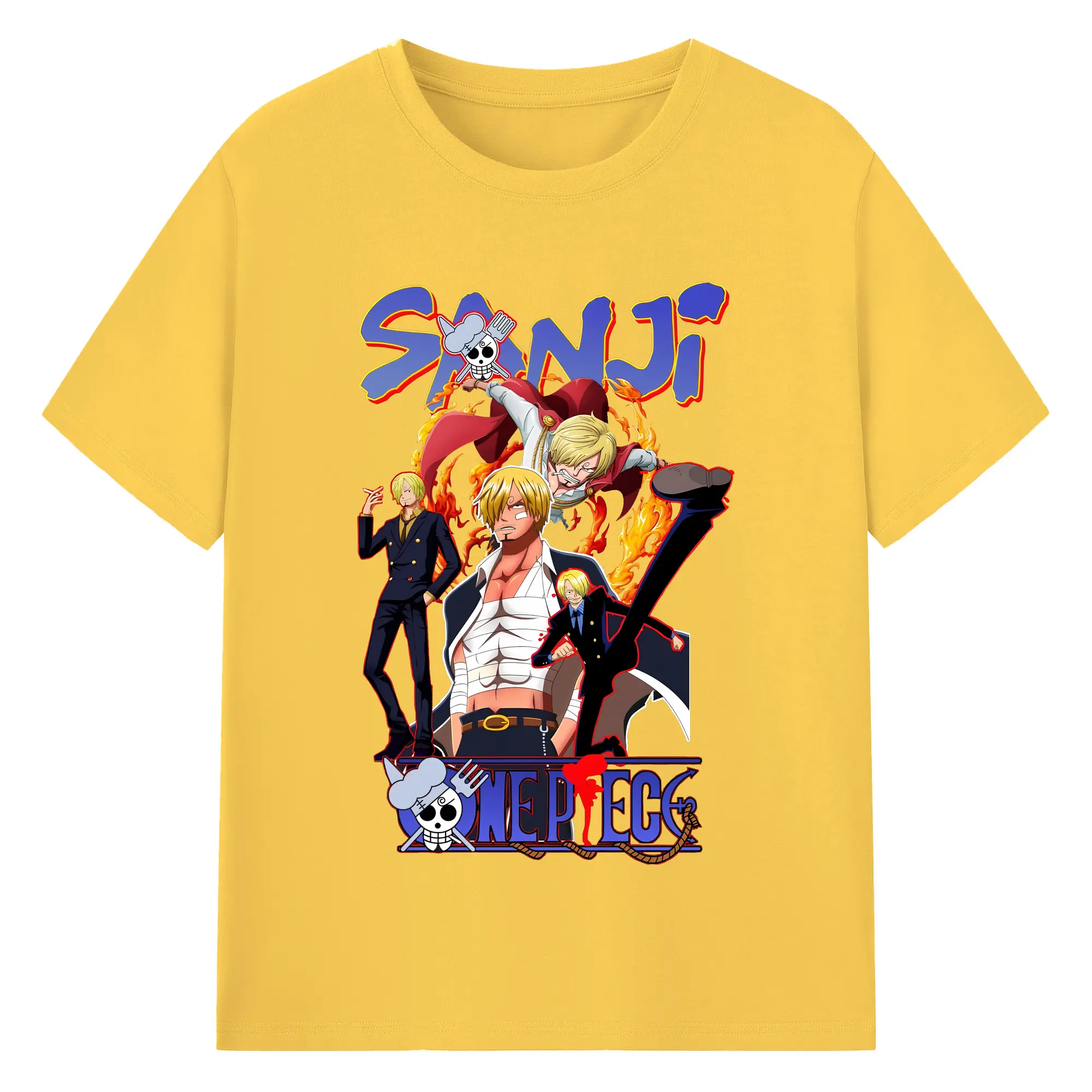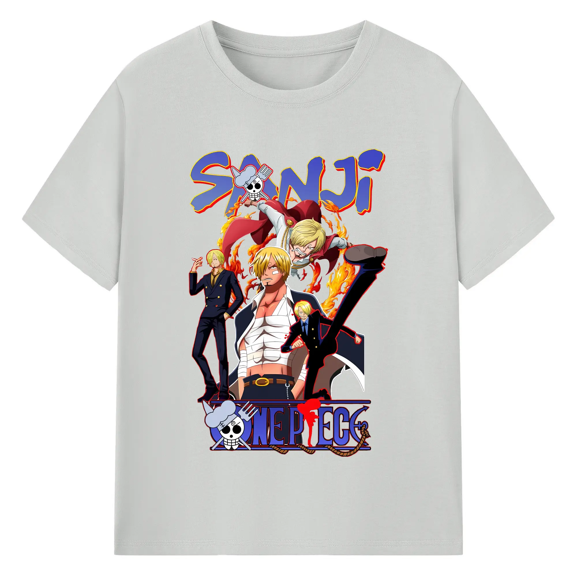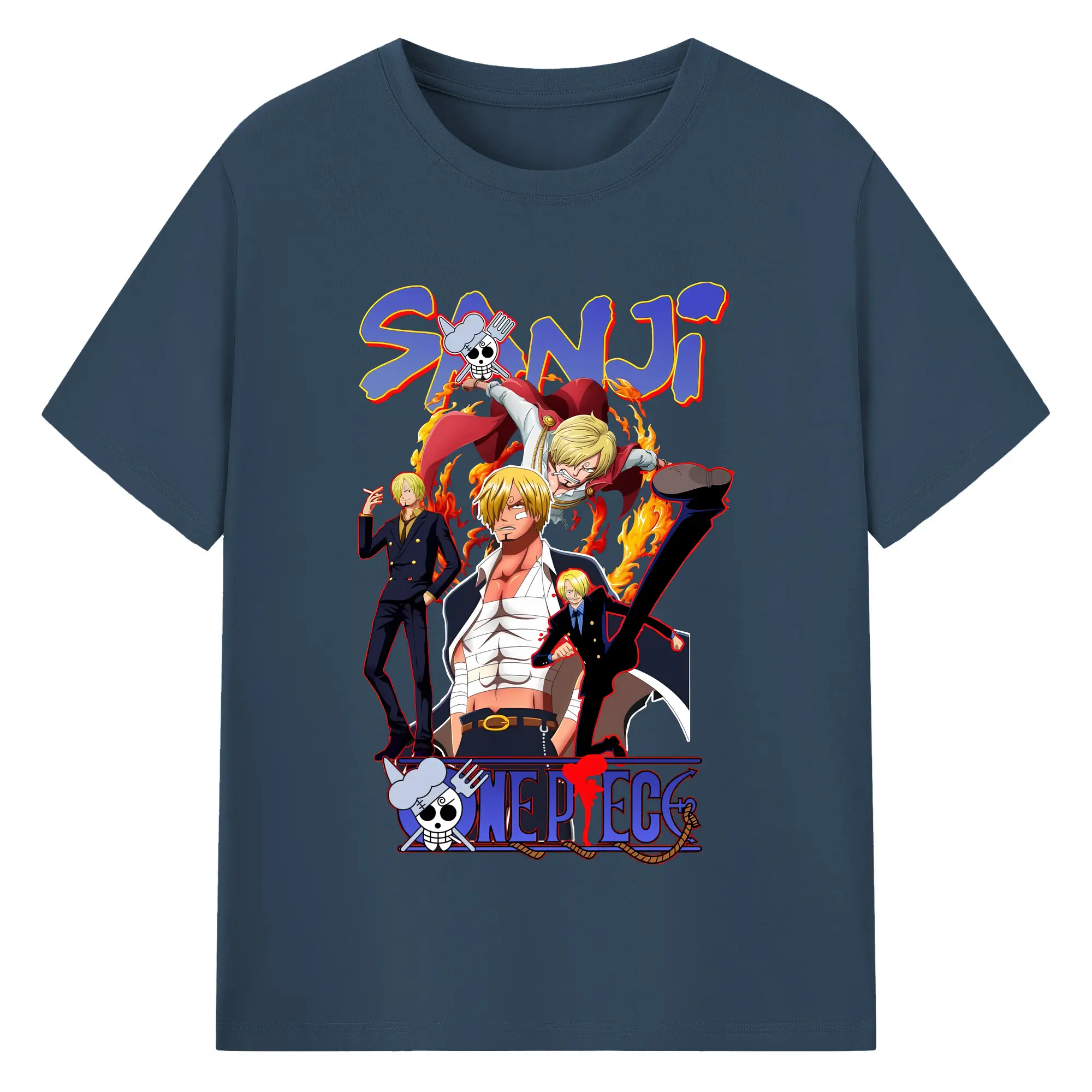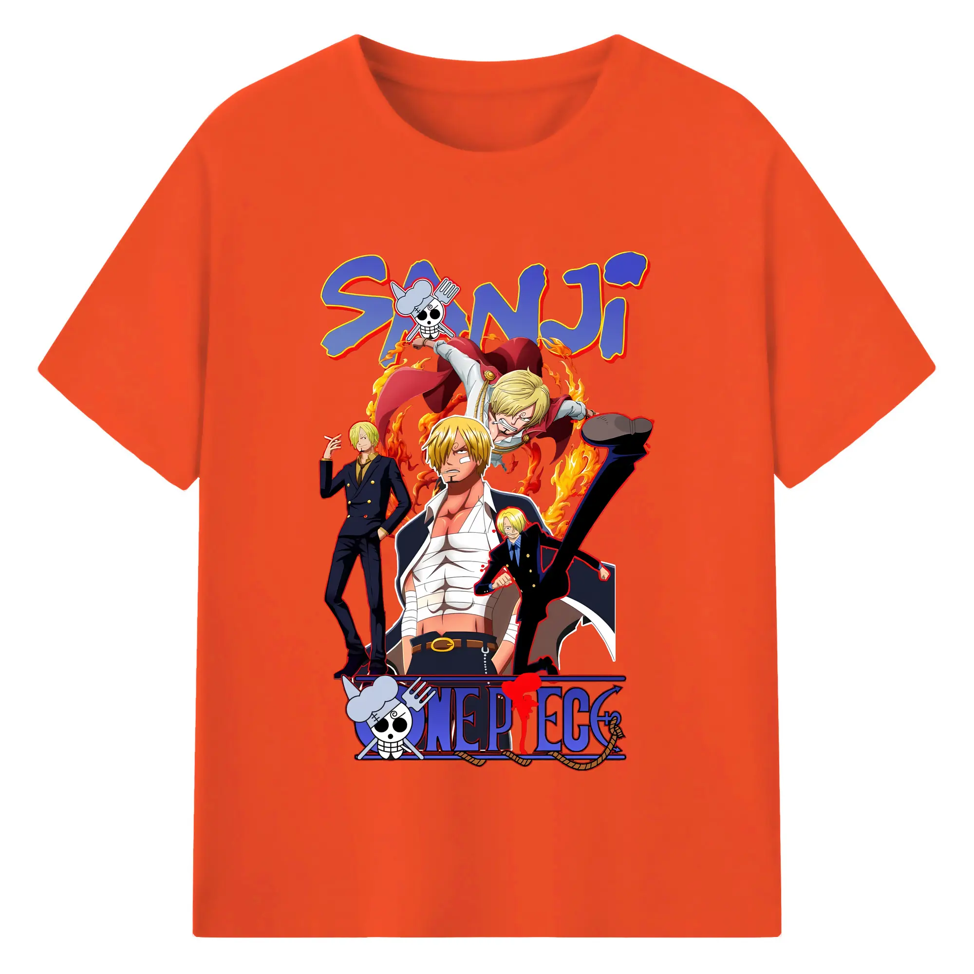 ワンピース グッズ ヴィンスモーク・サンジ - 綿100% ヴィンテージ風 半袖Tシャツ ・ フロントプリント ・ 柔らか肌触り ・ 通気性 快適 ・ スポーツ カジュアル 外出用