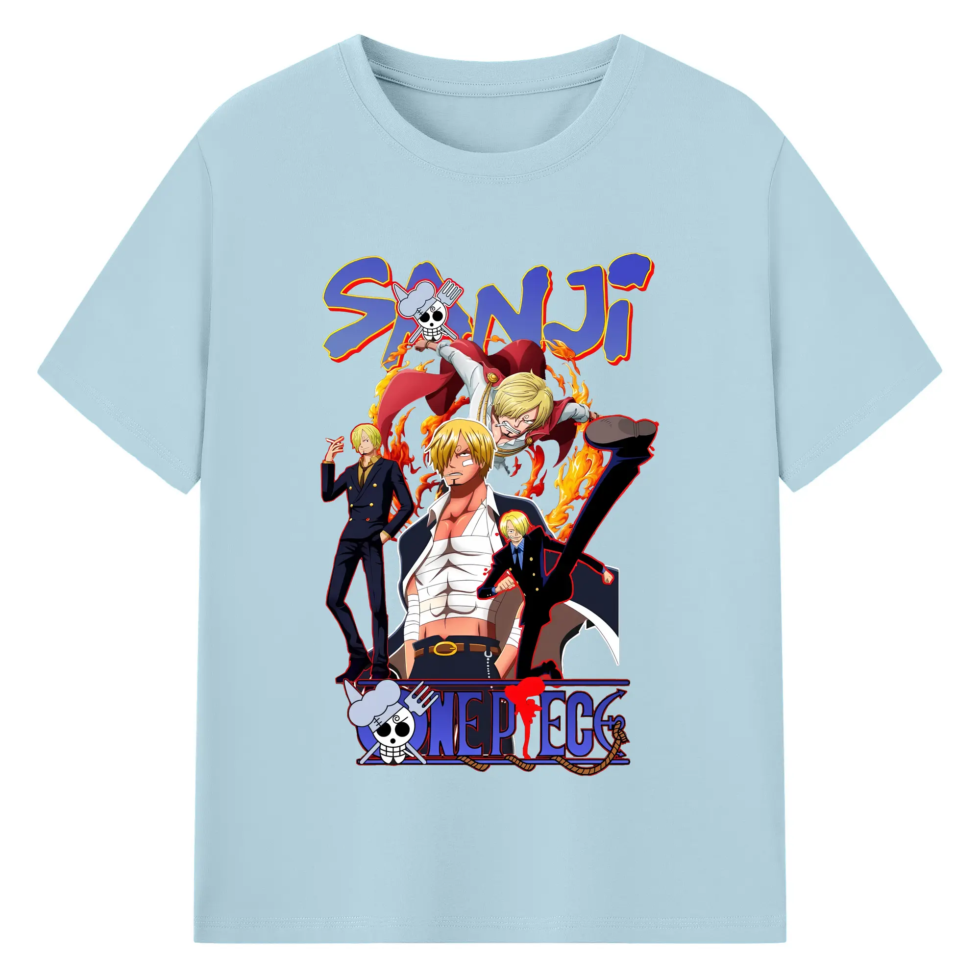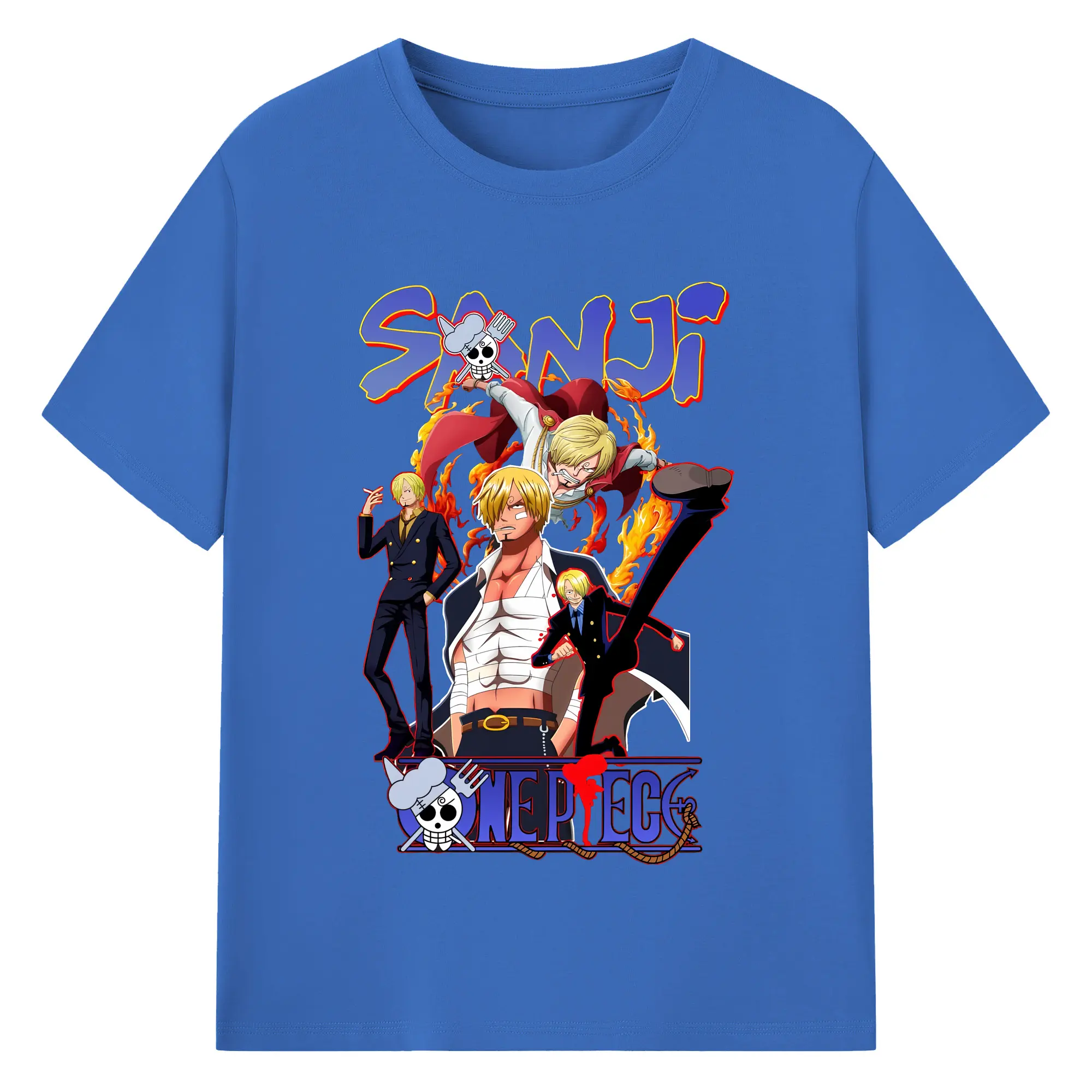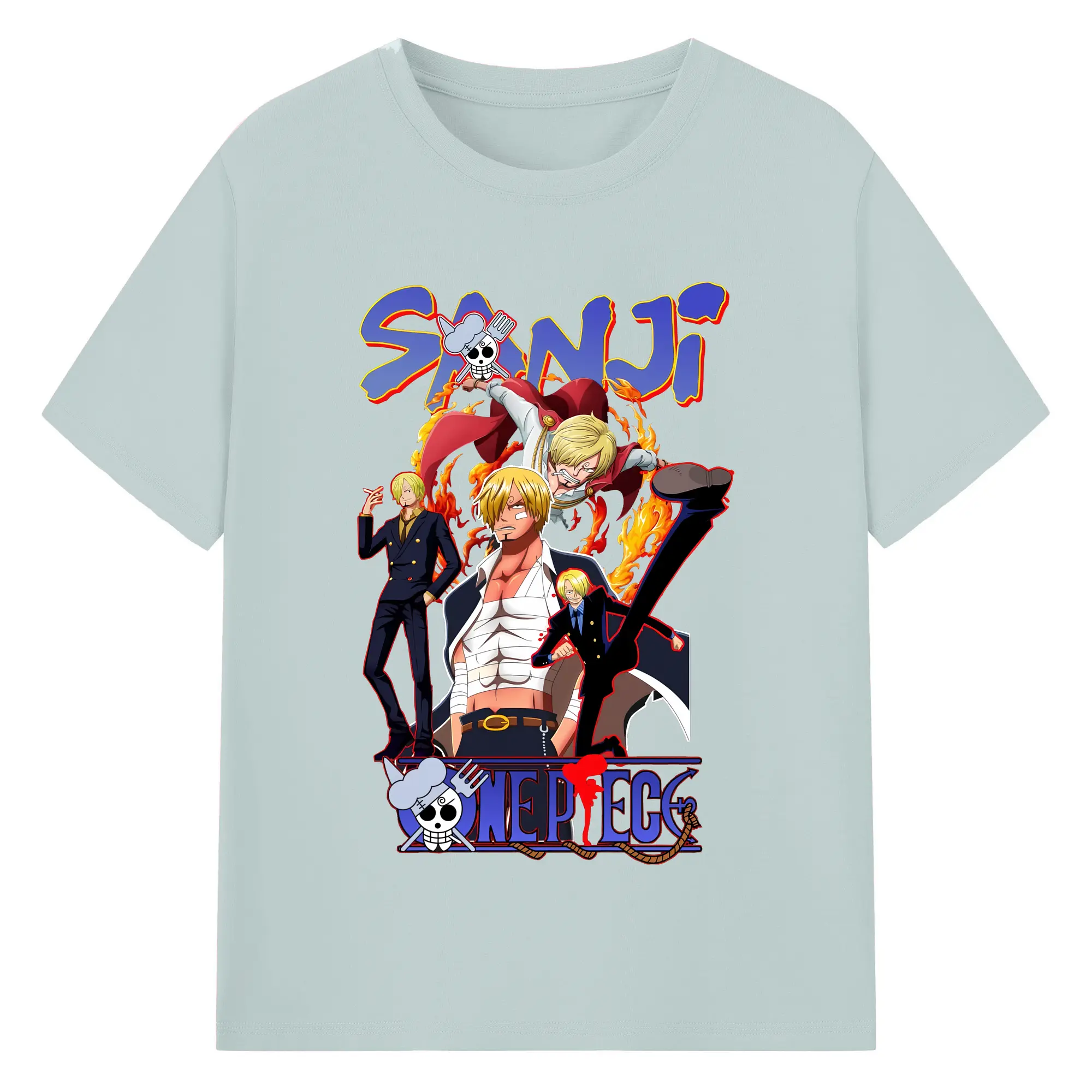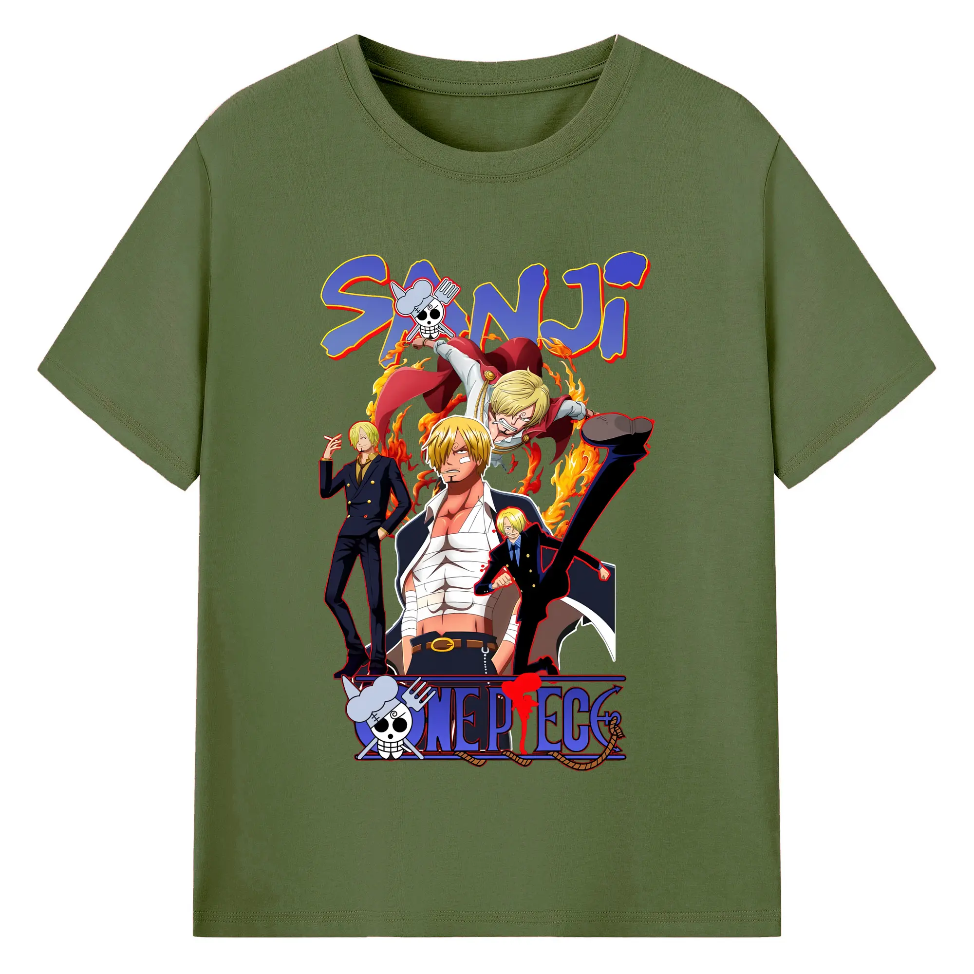 ワンピース グッズ ヴィンスモーク・サンジ - 綿100% ヴィンテージ風 半袖Tシャツ ・ フロントプリント ・ 柔らか肌触り ・ 通気性 快適 ・ スポーツ カジュアル 外出用