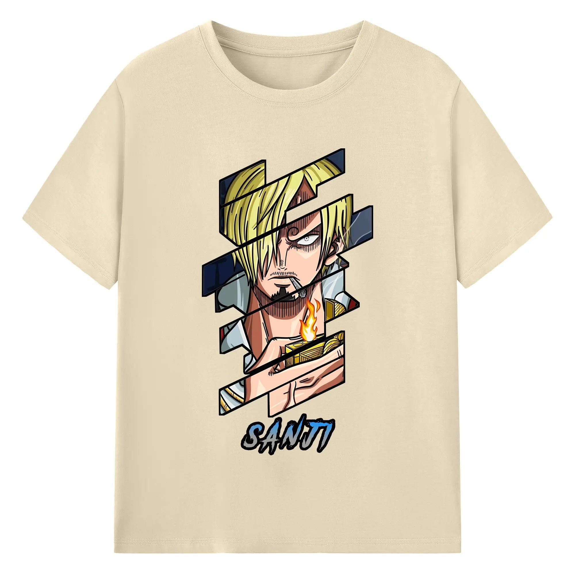 ワンピース グッズ ヴィンスモーク・サンジ - 綿100% 半袖Tシャツ ・ バックプリント ・ 快適 通気性 ・ 日常使い 散歩 スポーツ用