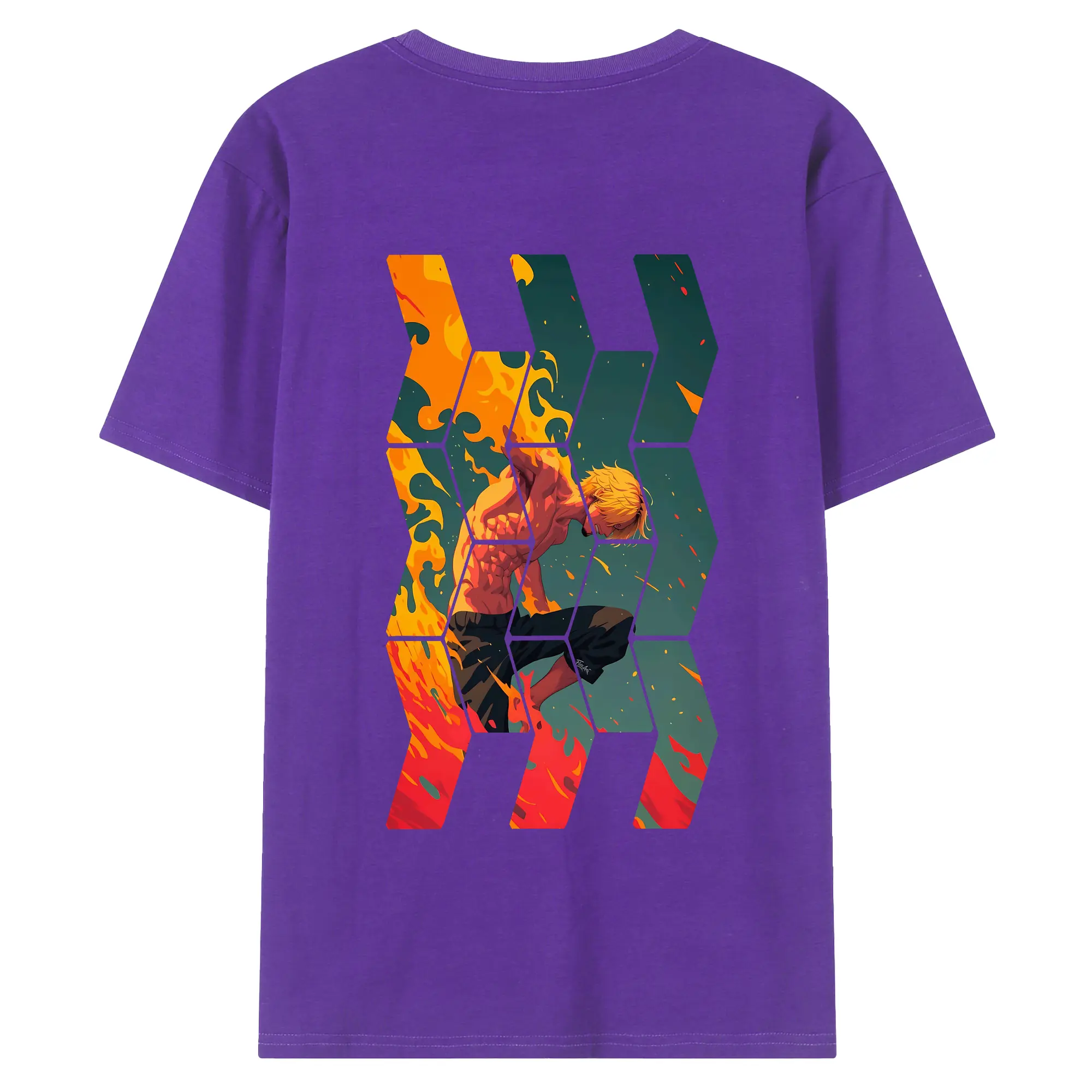 ワンピース グッズ ヴィンスモーク・サンジ - 綿100% 半袖Tシャツ ・ フロントプリント ・ 快適 通気性 ・ 日常使い 散歩 スポーツ用