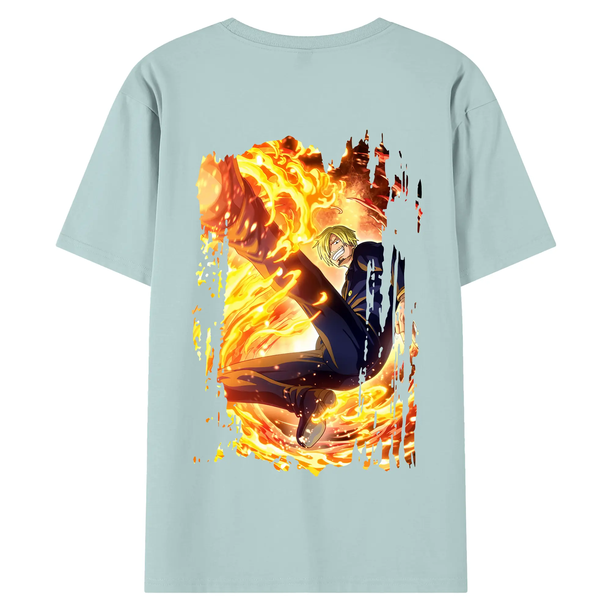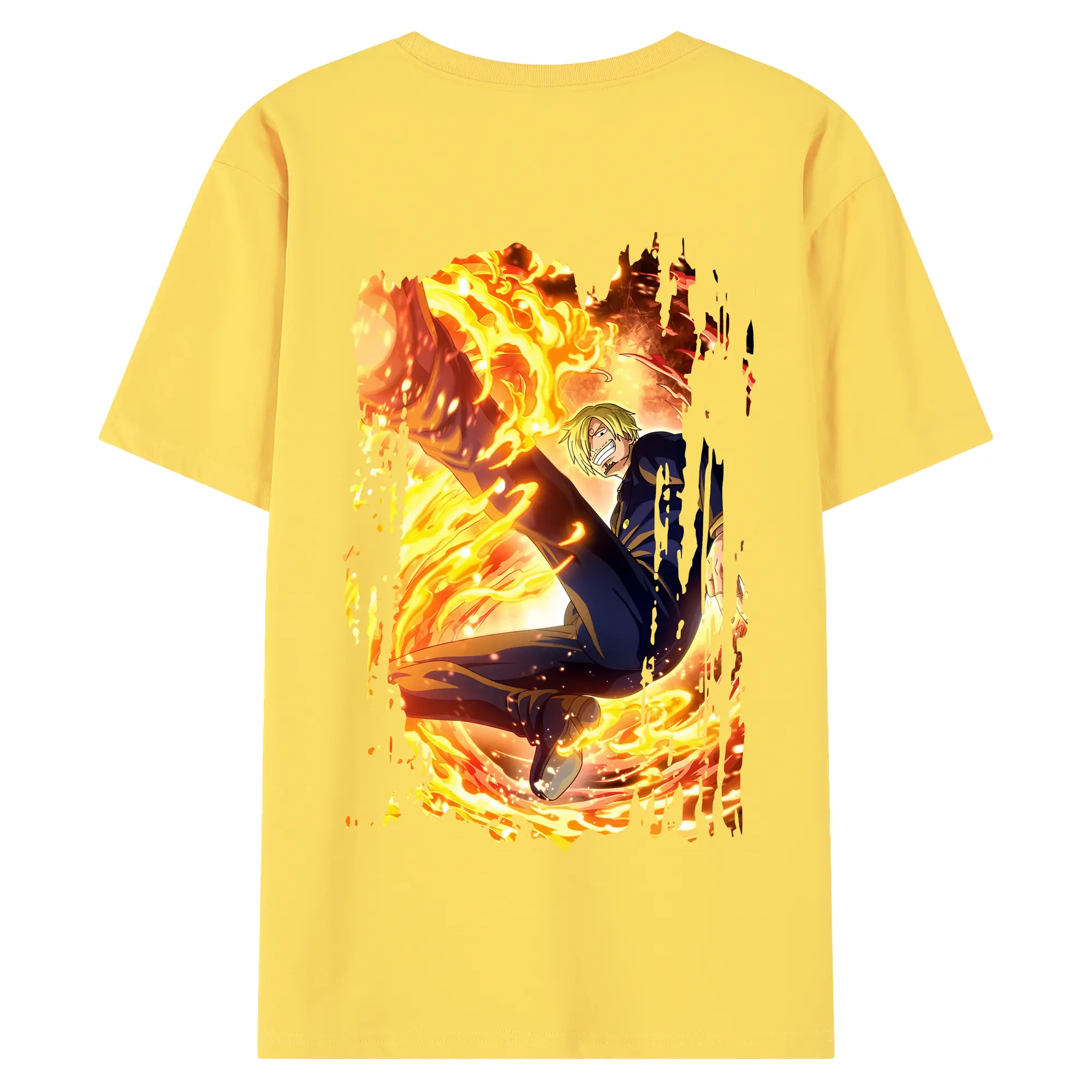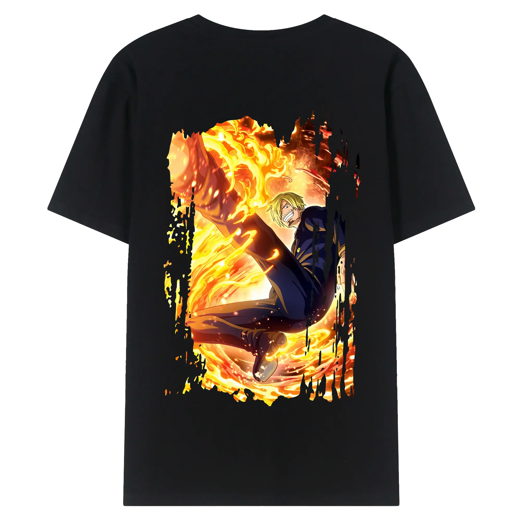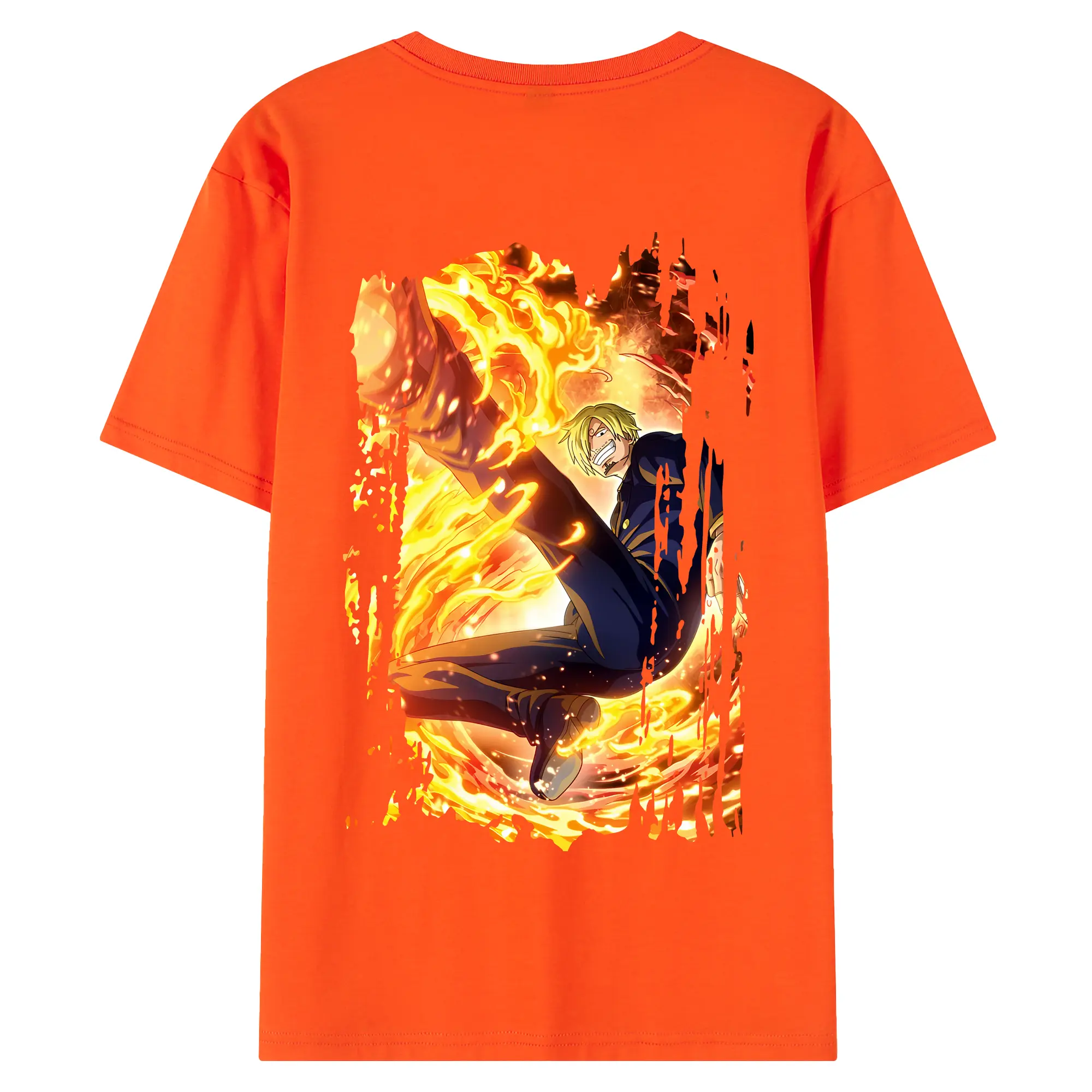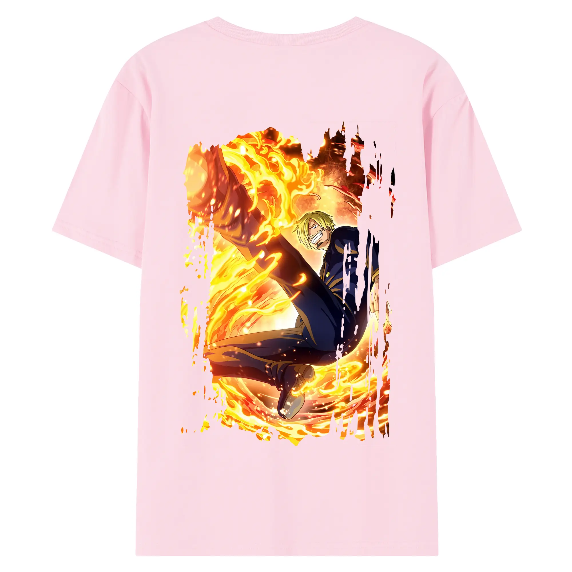 ワンピース グッズ ヴィンスモーク・サンジ - 綿100% 半袖Tシャツ ・ フロントプリント ・ 快適 通気性 ・ 日常使い 散歩 スポーツ用