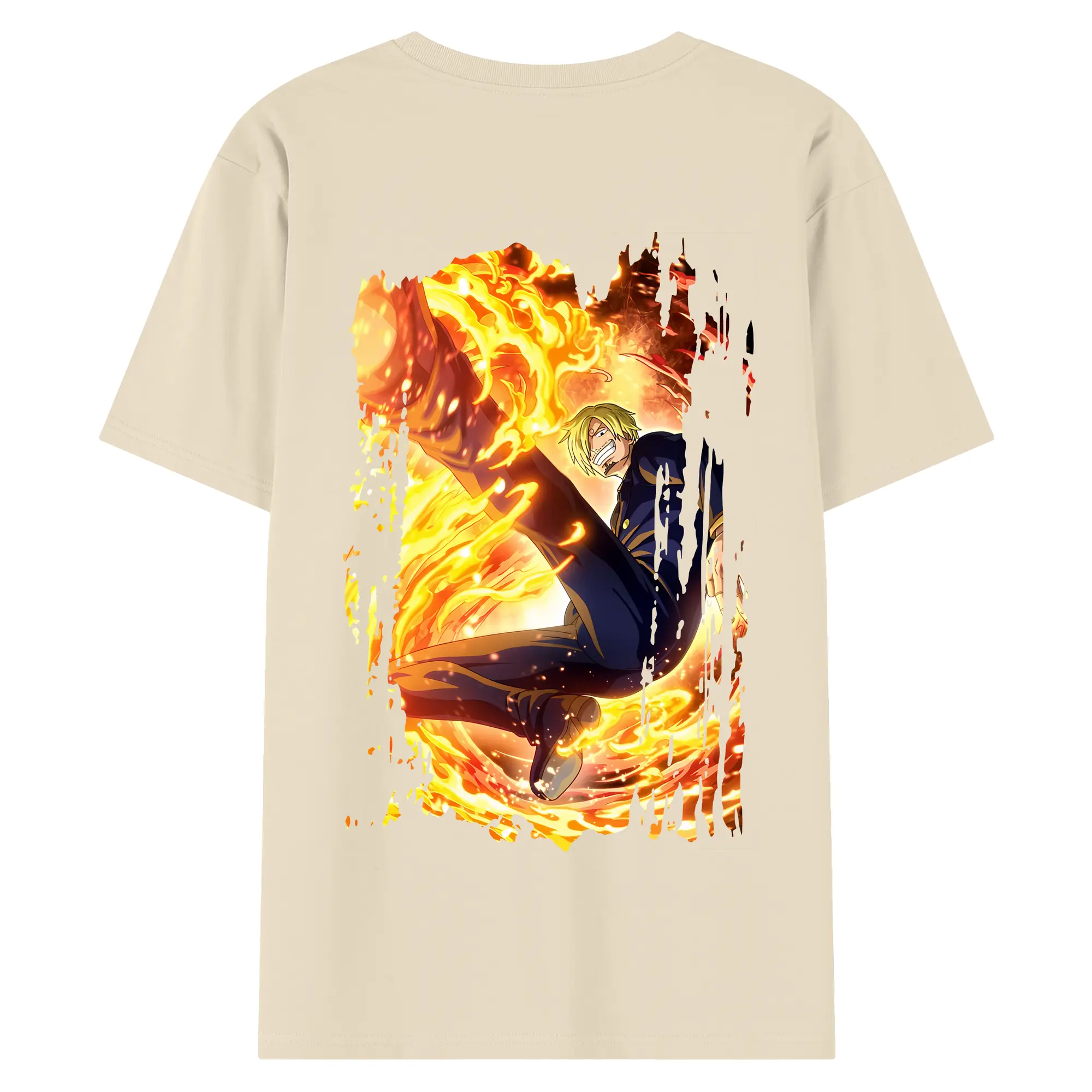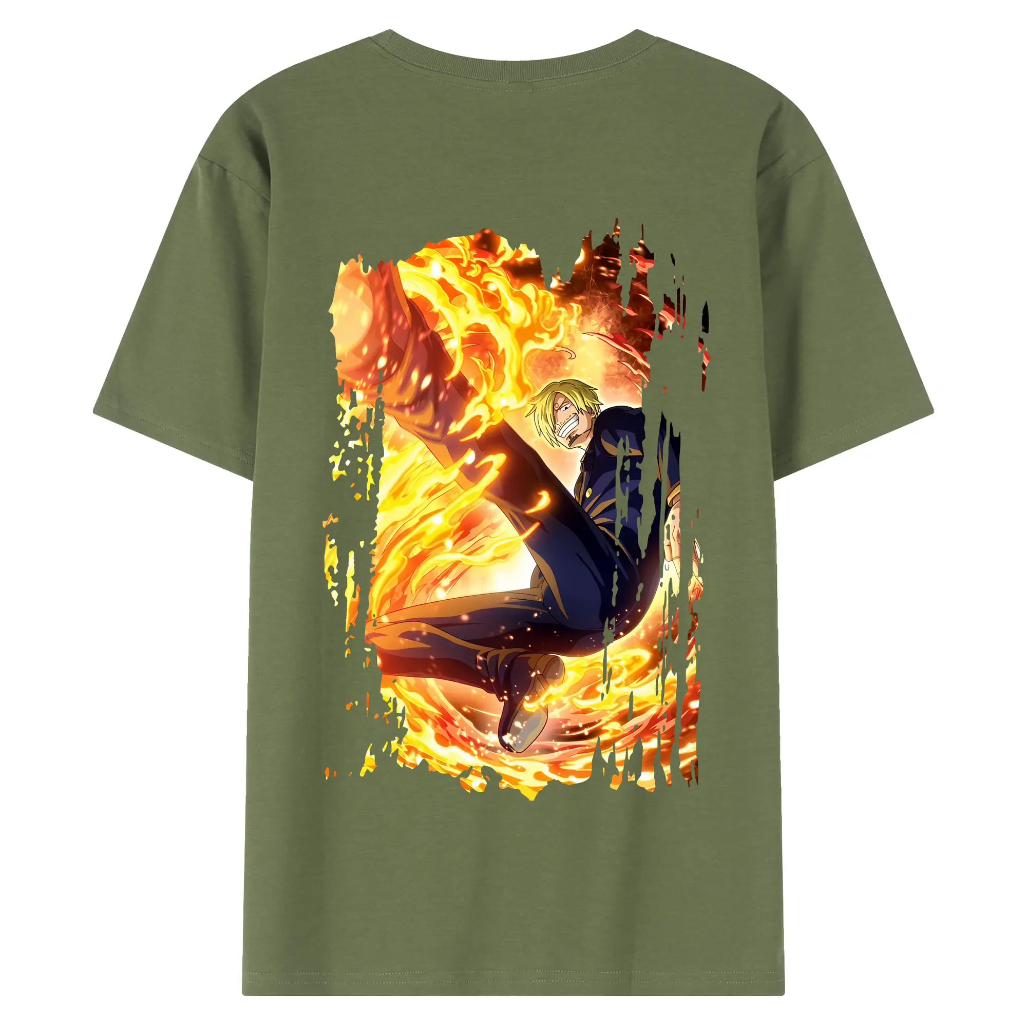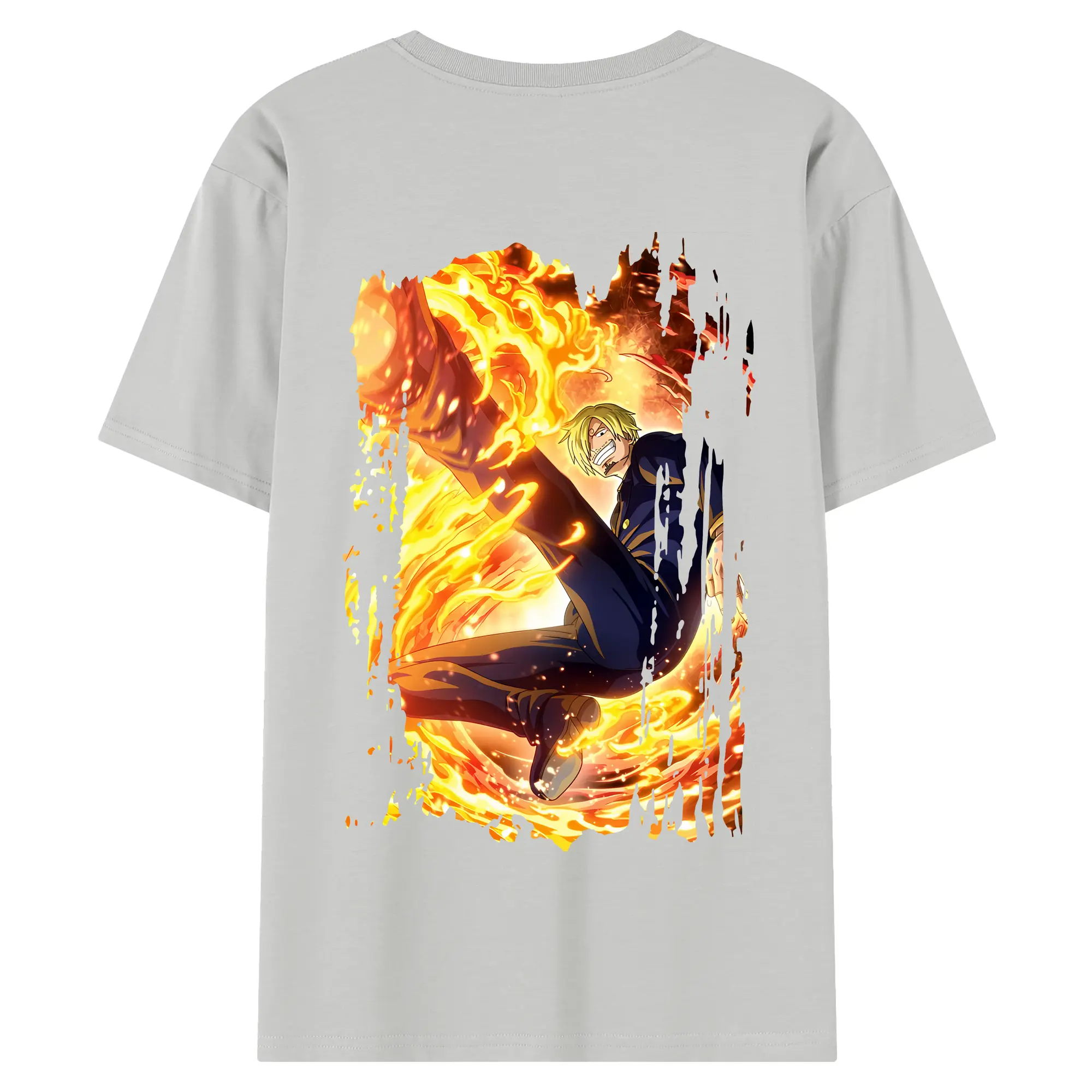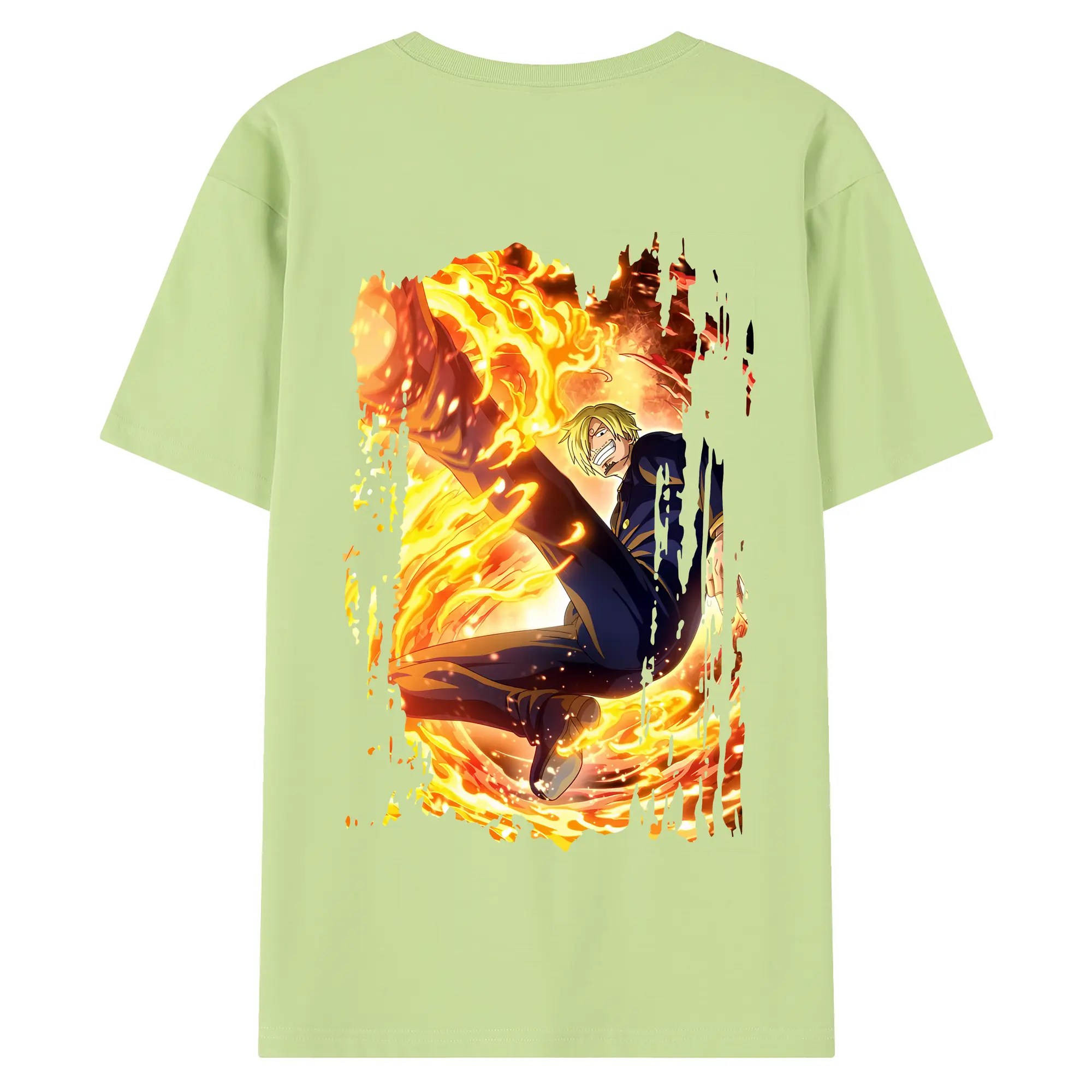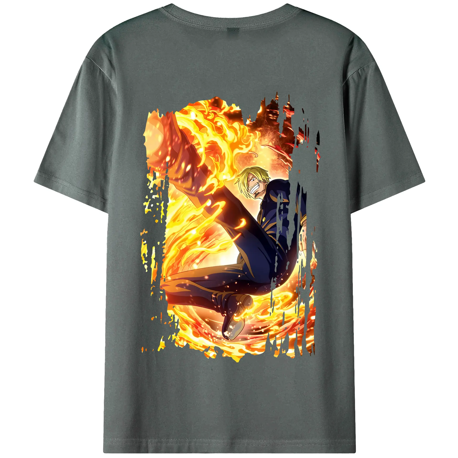 ワンピース グッズ ヴィンスモーク・サンジ - 綿100% 半袖Tシャツ ・ フロントプリント ・ 快適 通気性 ・ 日常使い 散歩 スポーツ用