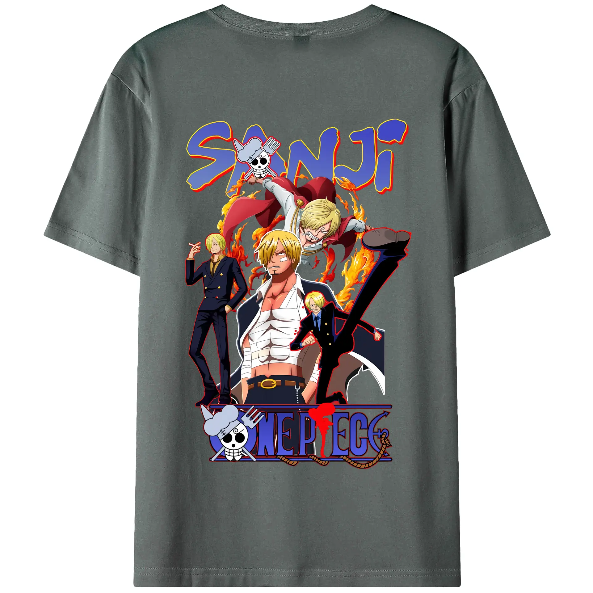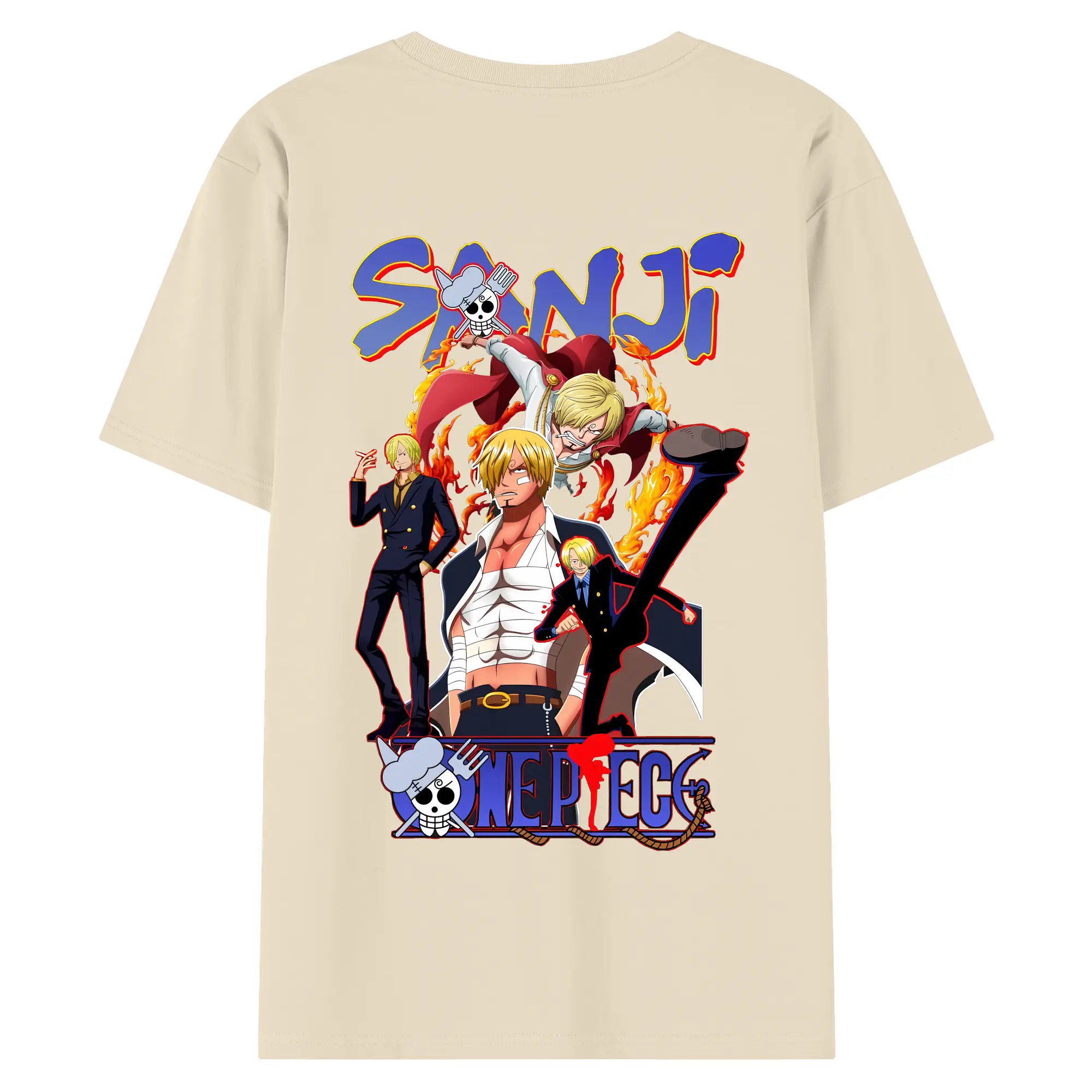 ワンピース グッズ ヴィンスモーク・サンジ - 綿100% ヴィンテージ風 半袖Tシャツ ・ 背面プリント ・ 柔らか肌触り ・ 通気性 快適 ・ スポーツ カジュアル 外出用