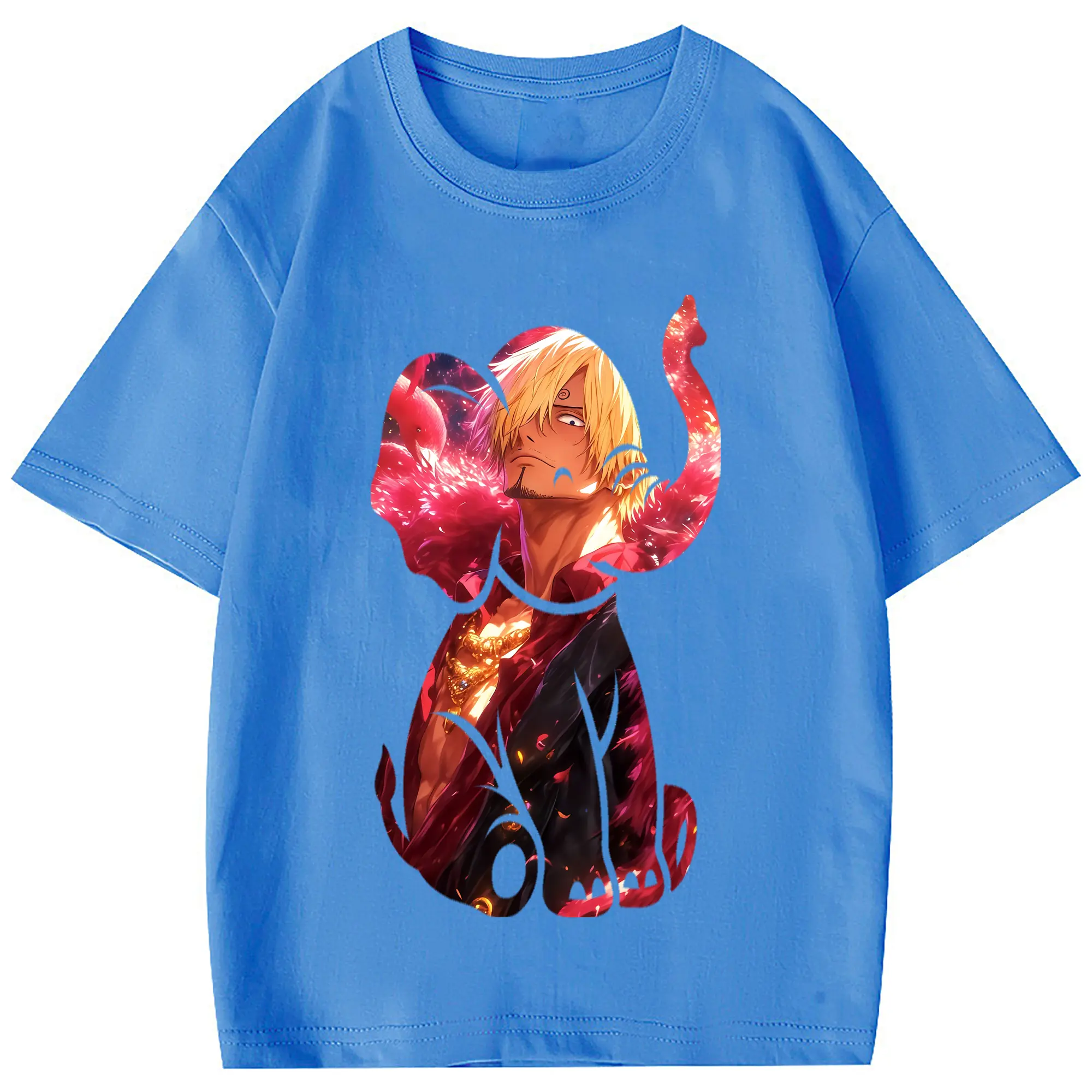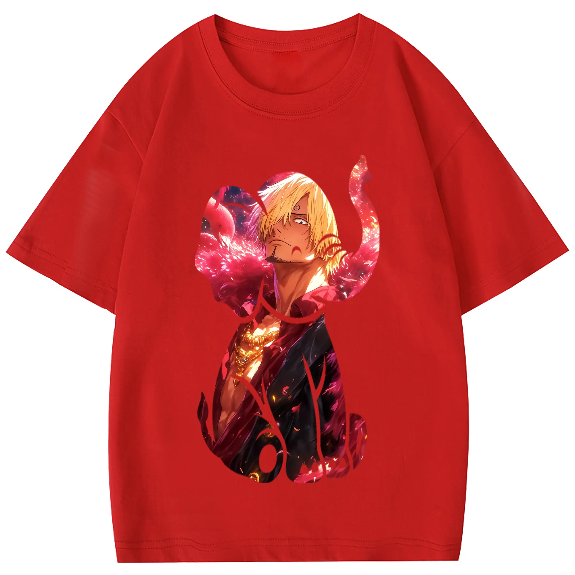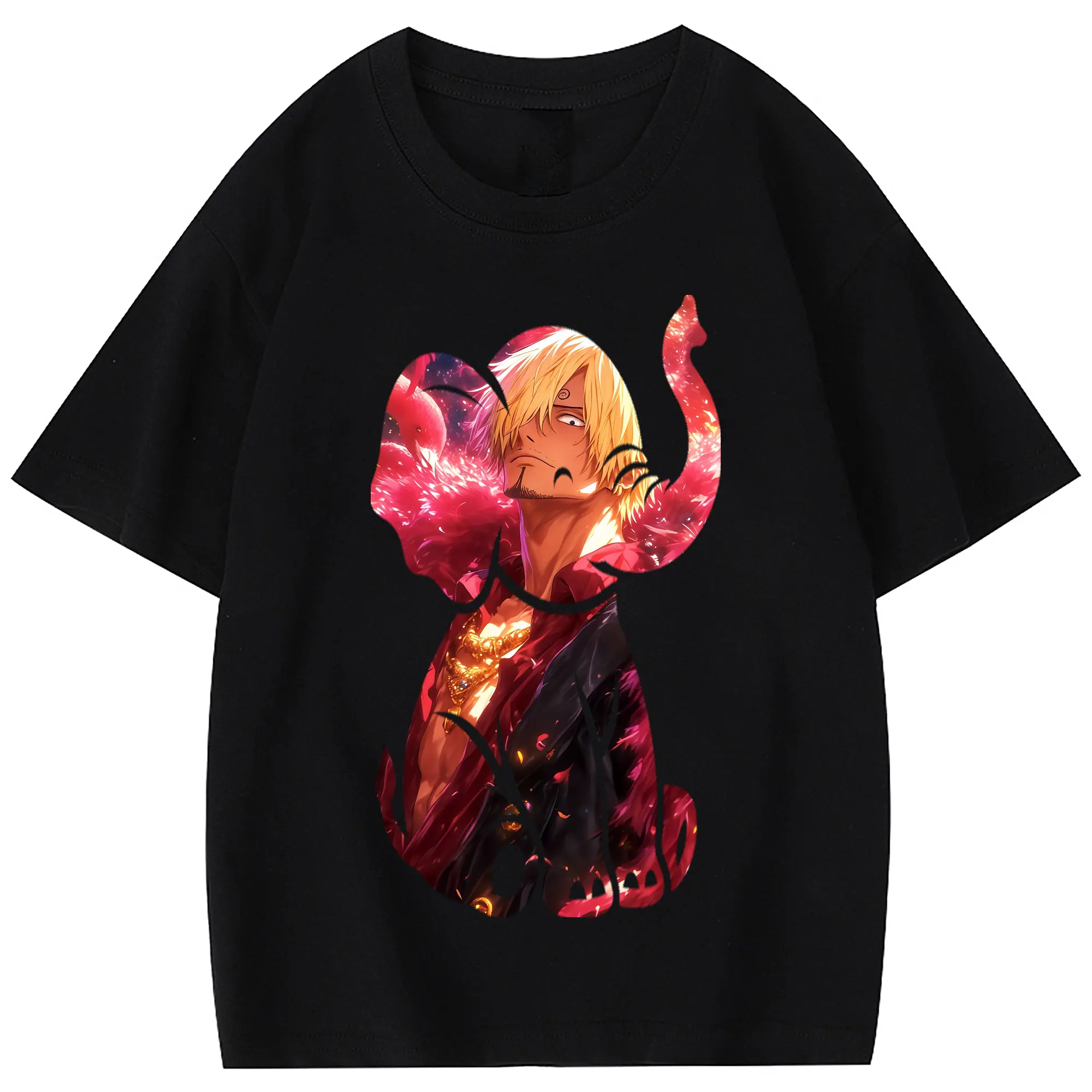 ワンピース グッズ ヴィンスモーク・サンジ - 綿100% 半袖Tシャツ ・ フロントプリント ・ 快適 通気性 ・ 日常使い 散歩 スポーツ用