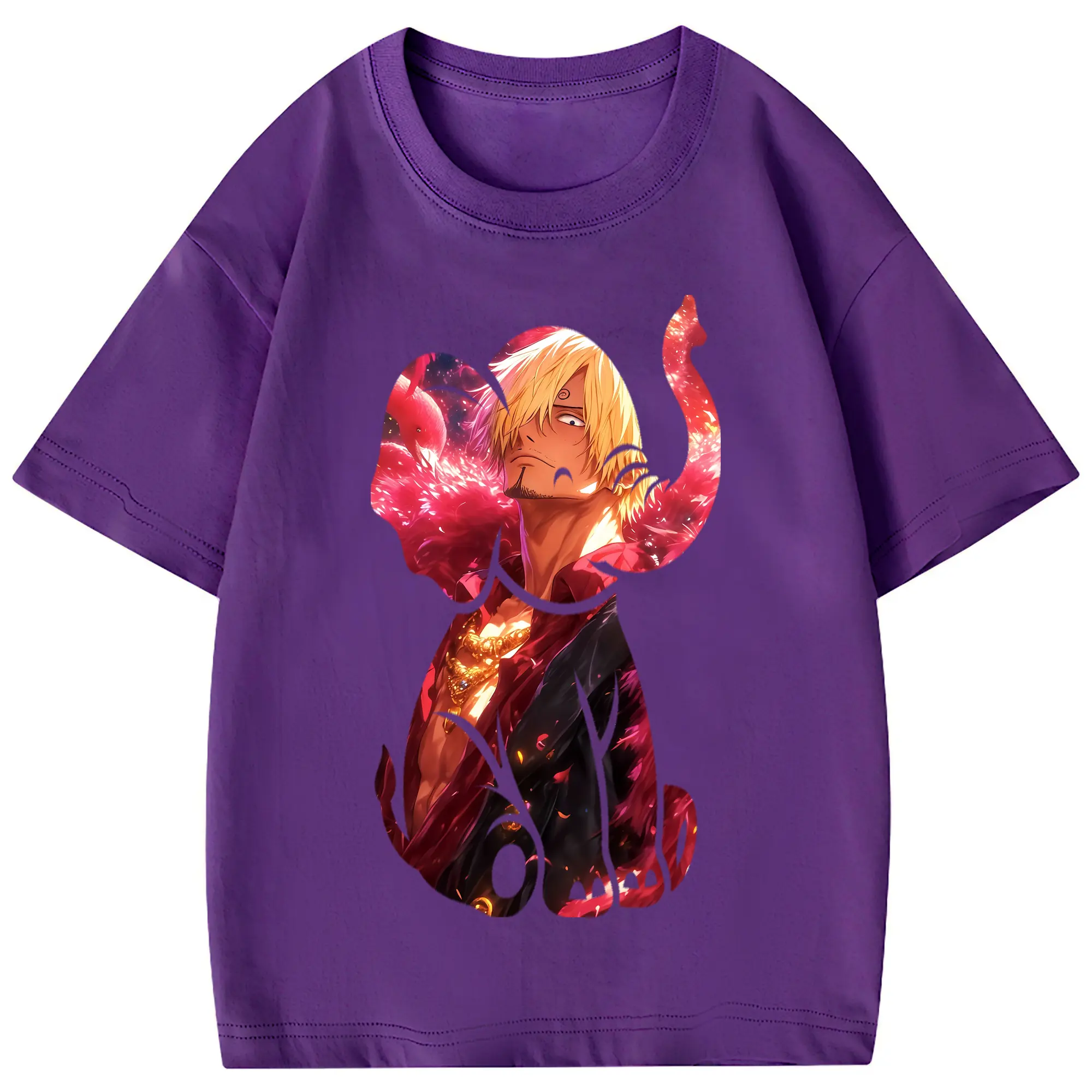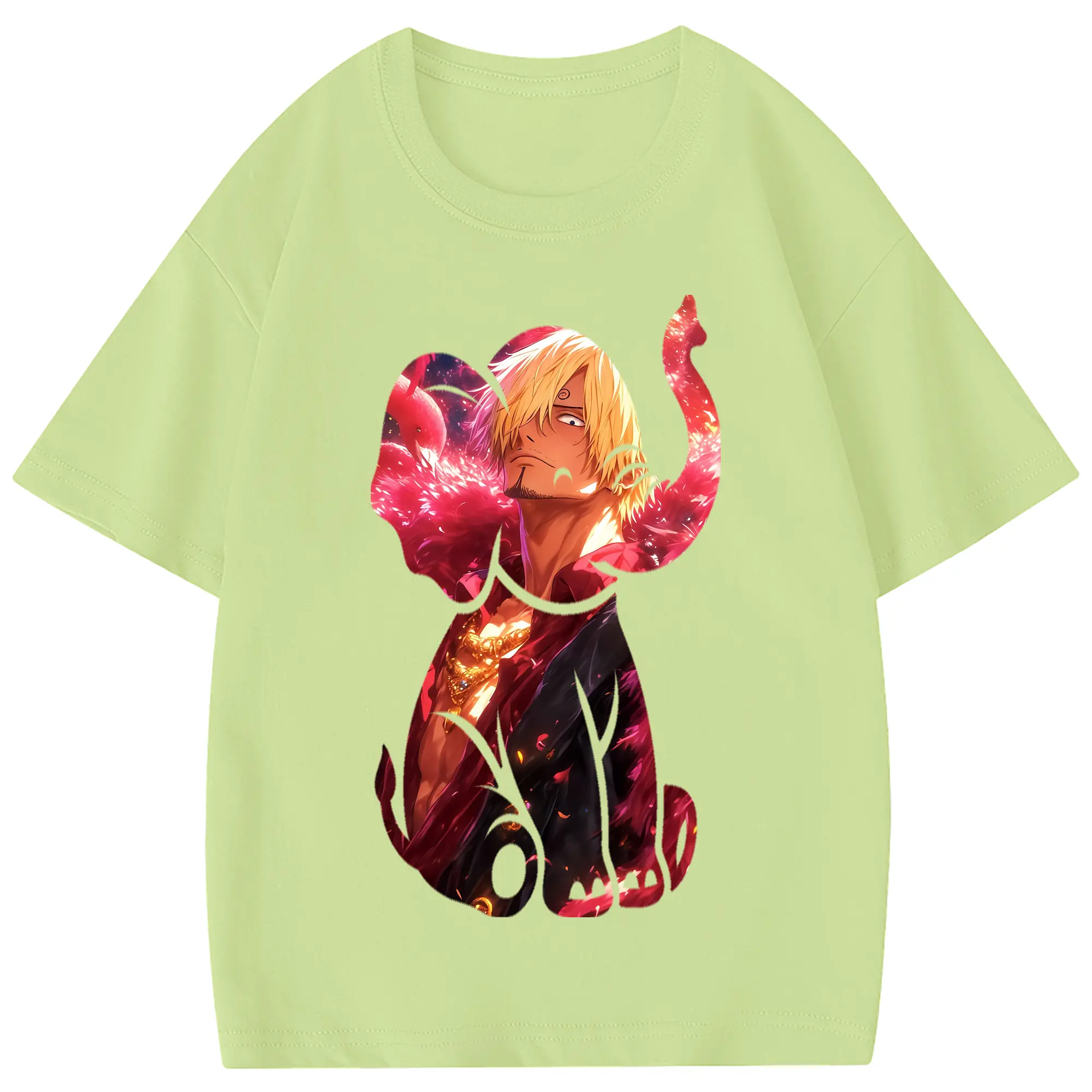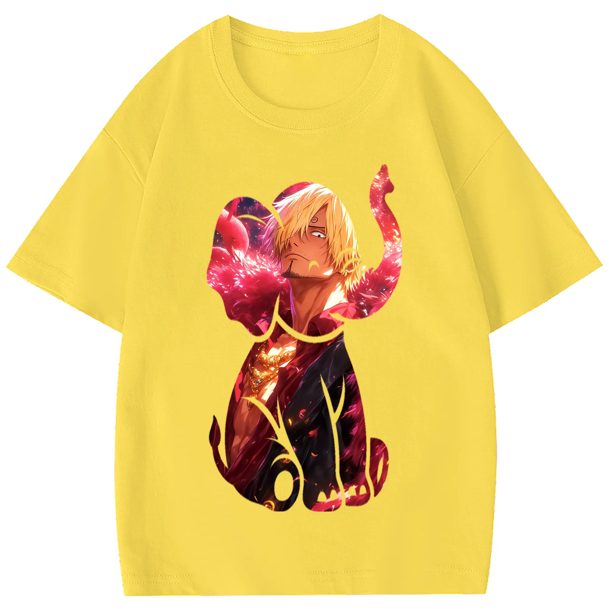 ワンピース グッズ ヴィンスモーク・サンジ - 綿100% 半袖Tシャツ ・ フロントプリント ・ 快適 通気性 ・ 日常使い 散歩 スポーツ用