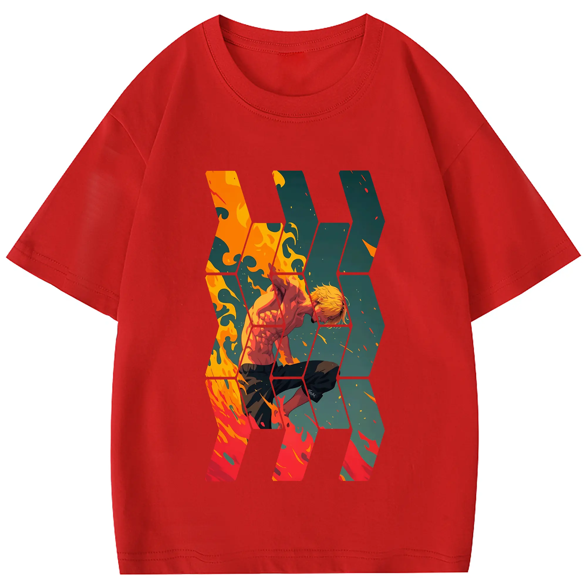 ワンピース グッズ ヴィンスモーク・サンジ - 綿100% 半袖Tシャツ ・ フロントプリント ・ 快適 通気性 ・ 日常使い 散歩 スポーツ用