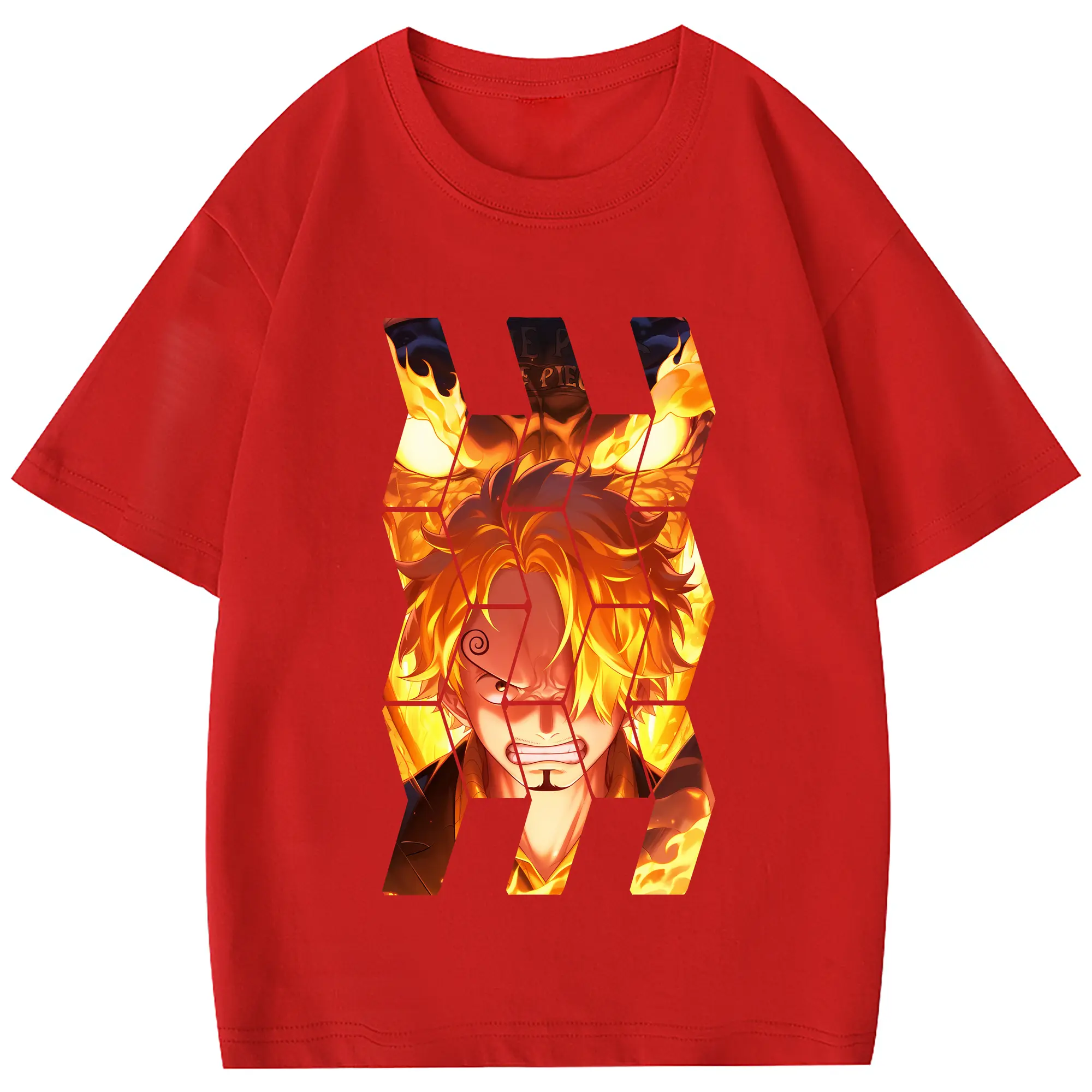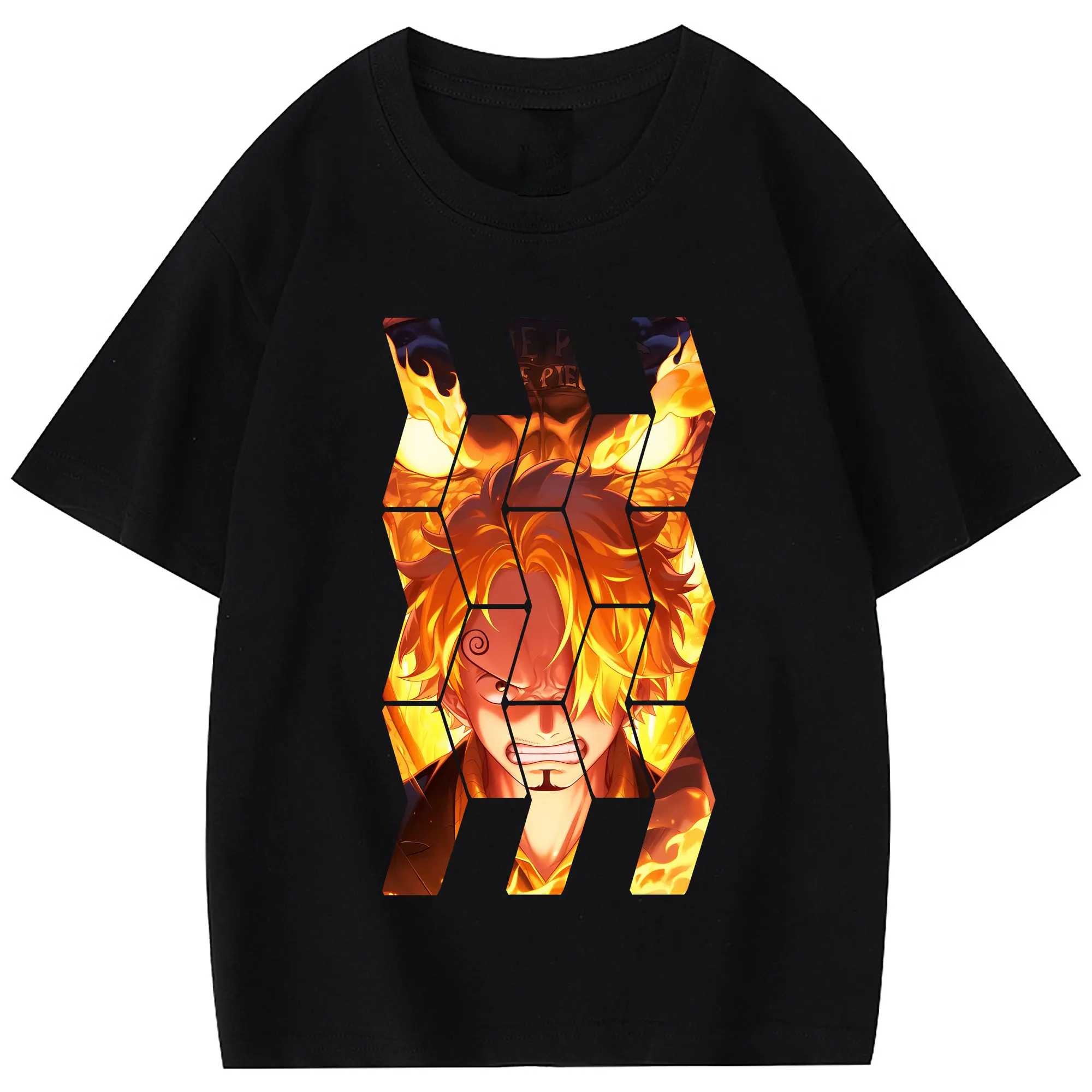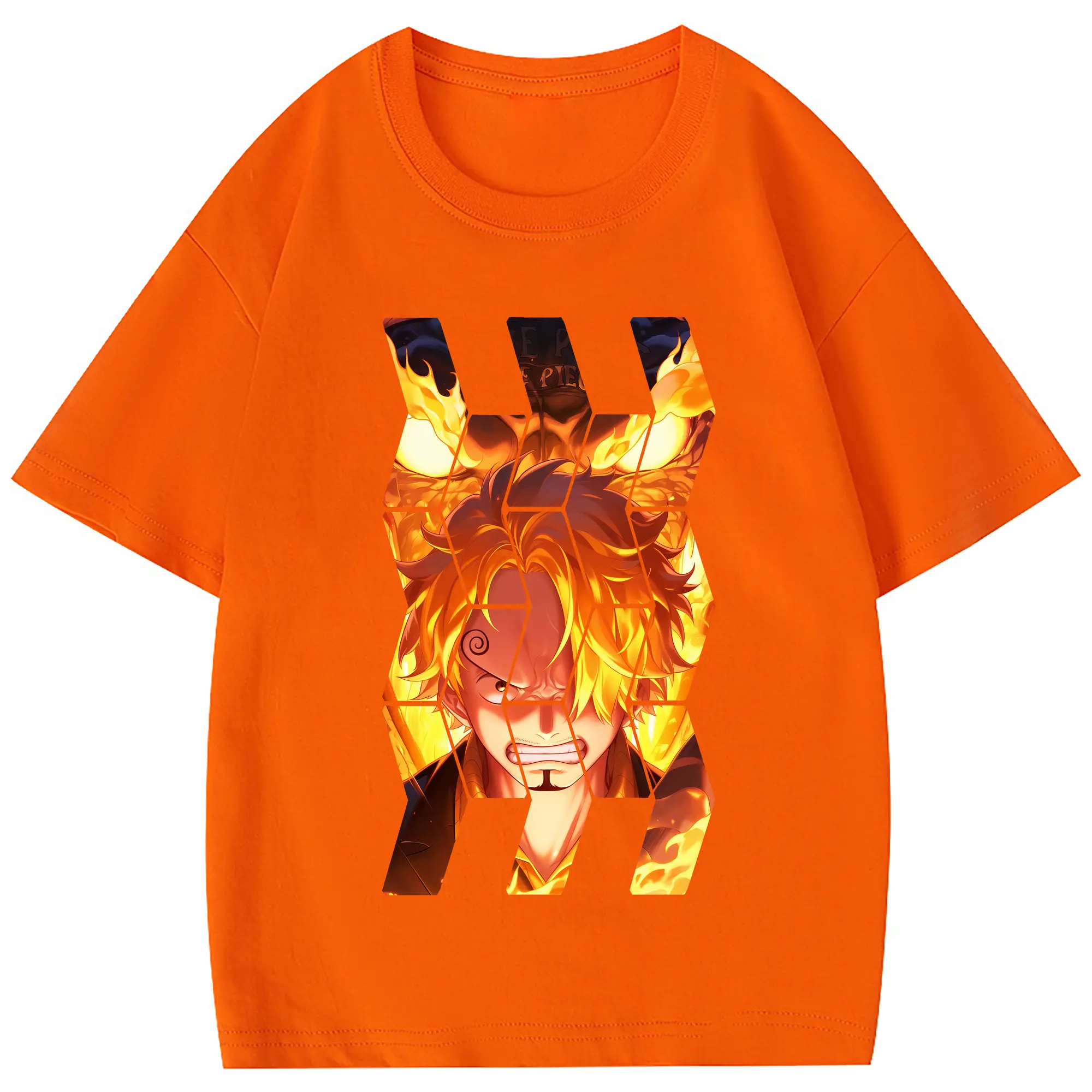 ワンピース グッズ ヴィンスモーク・サンジ - 綿100% 半袖Tシャツ ・ フロントプリント ・ 快適 通気性 ・ 日常使い 散歩 スポーツ用