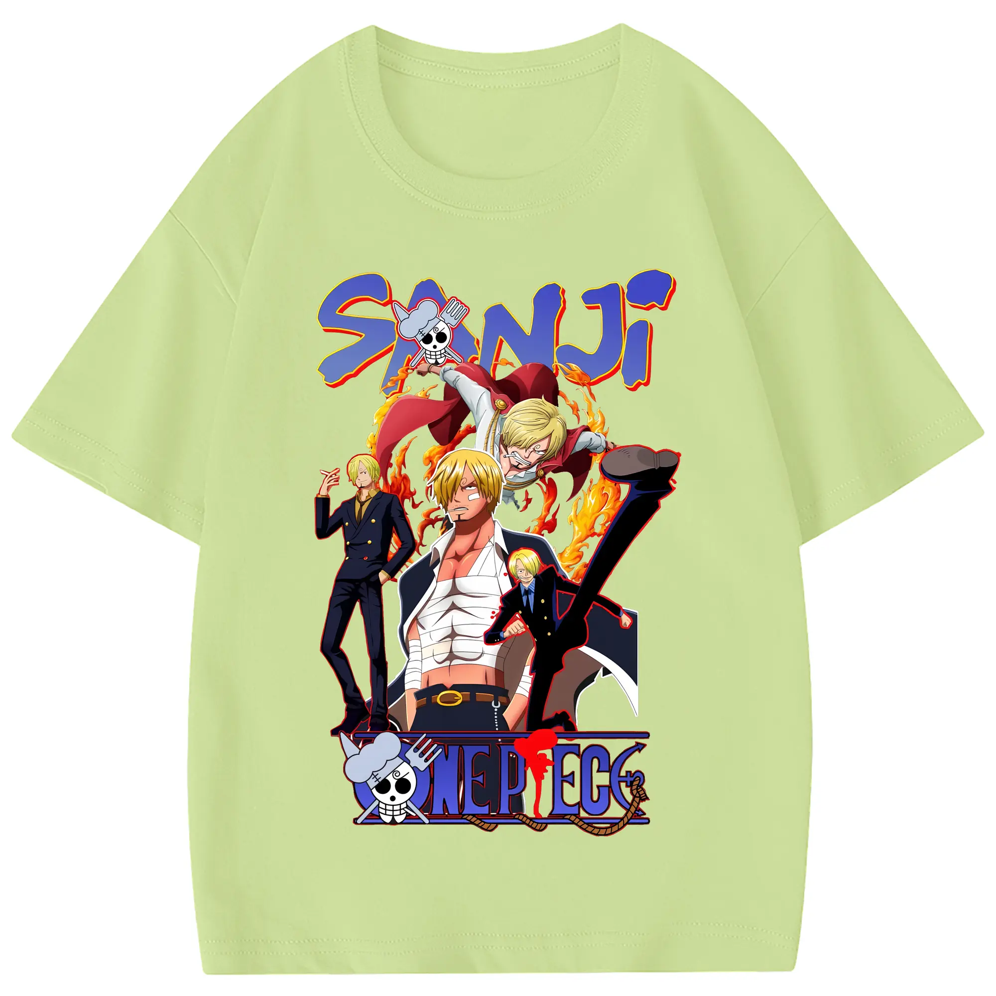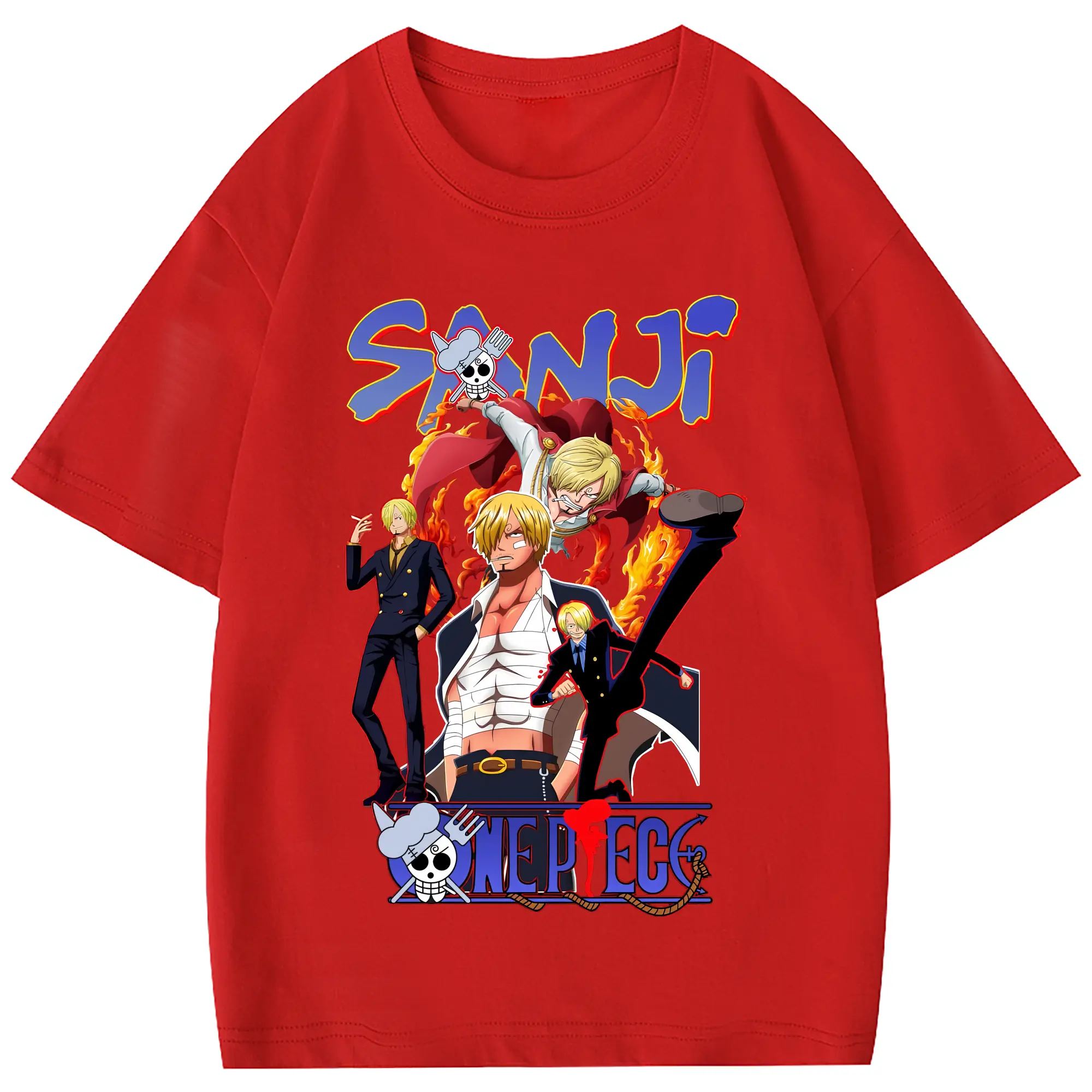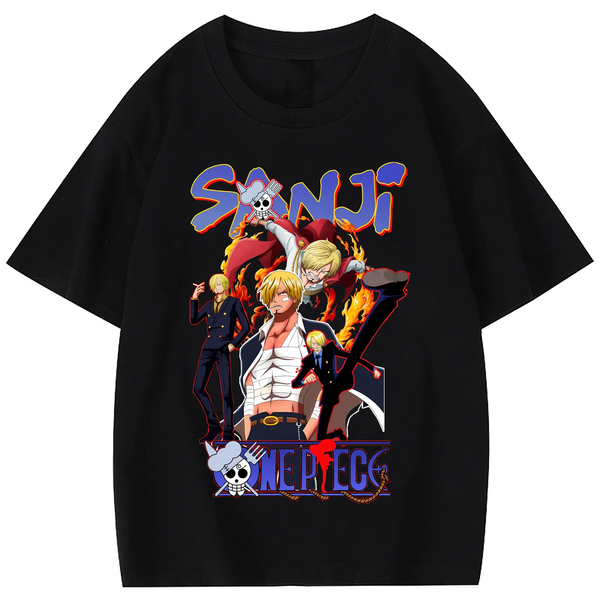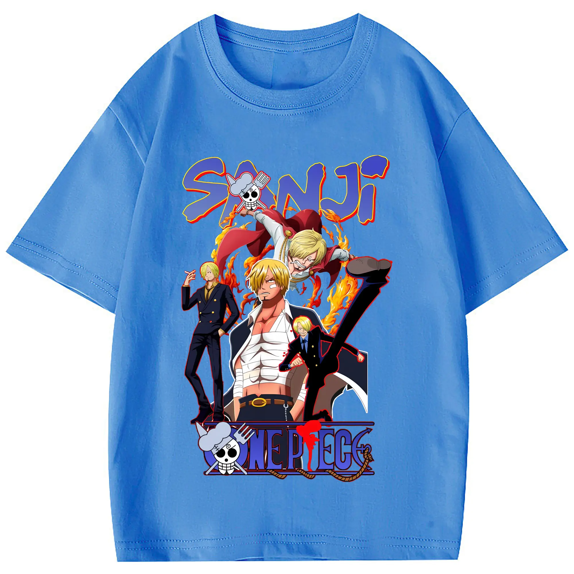 ワンピース グッズ ヴィンスモーク・サンジ - 綿100% 半袖Tシャツ ・ フロントプリント ・ 快適 通気性 ・ 日常使い 散歩 スポーツ用