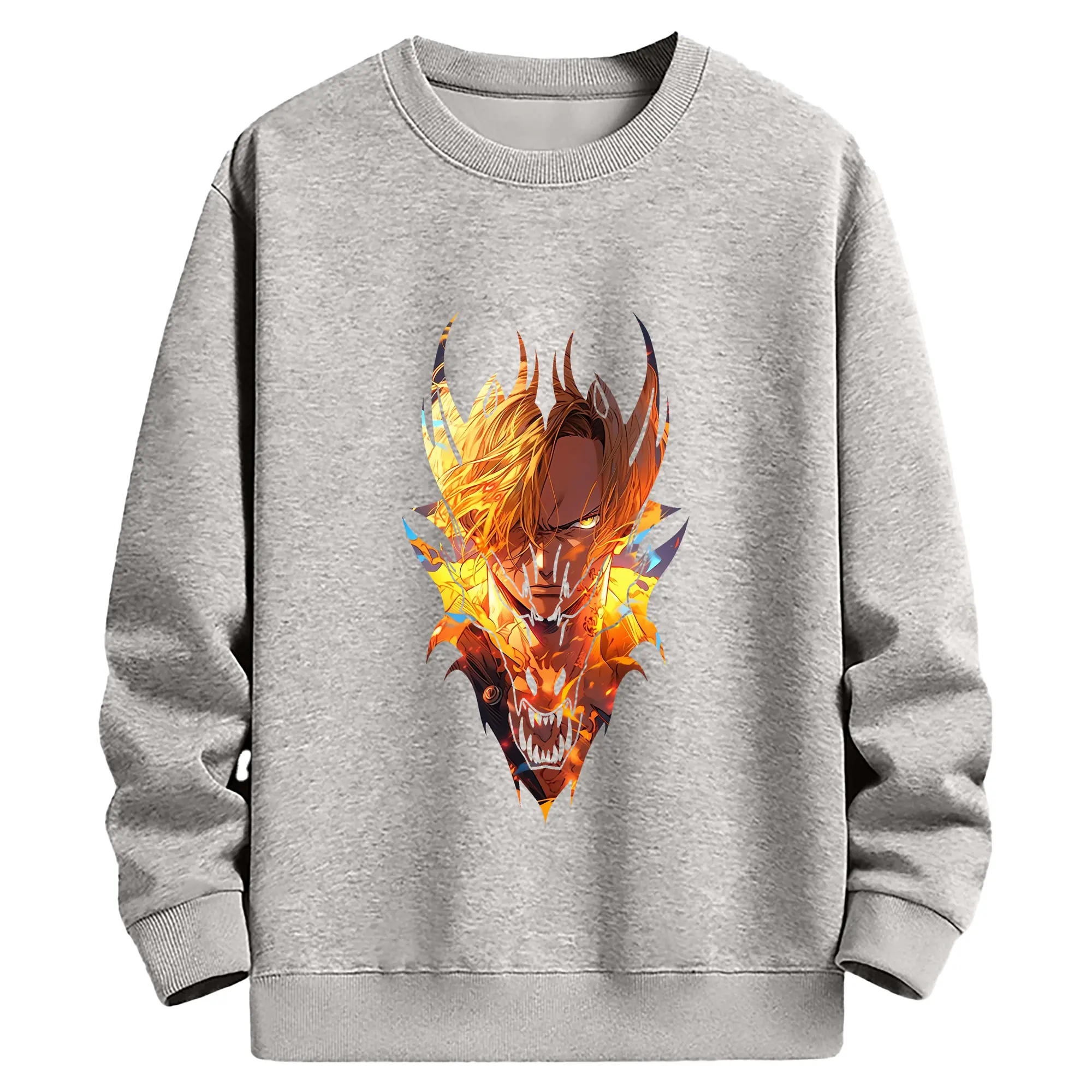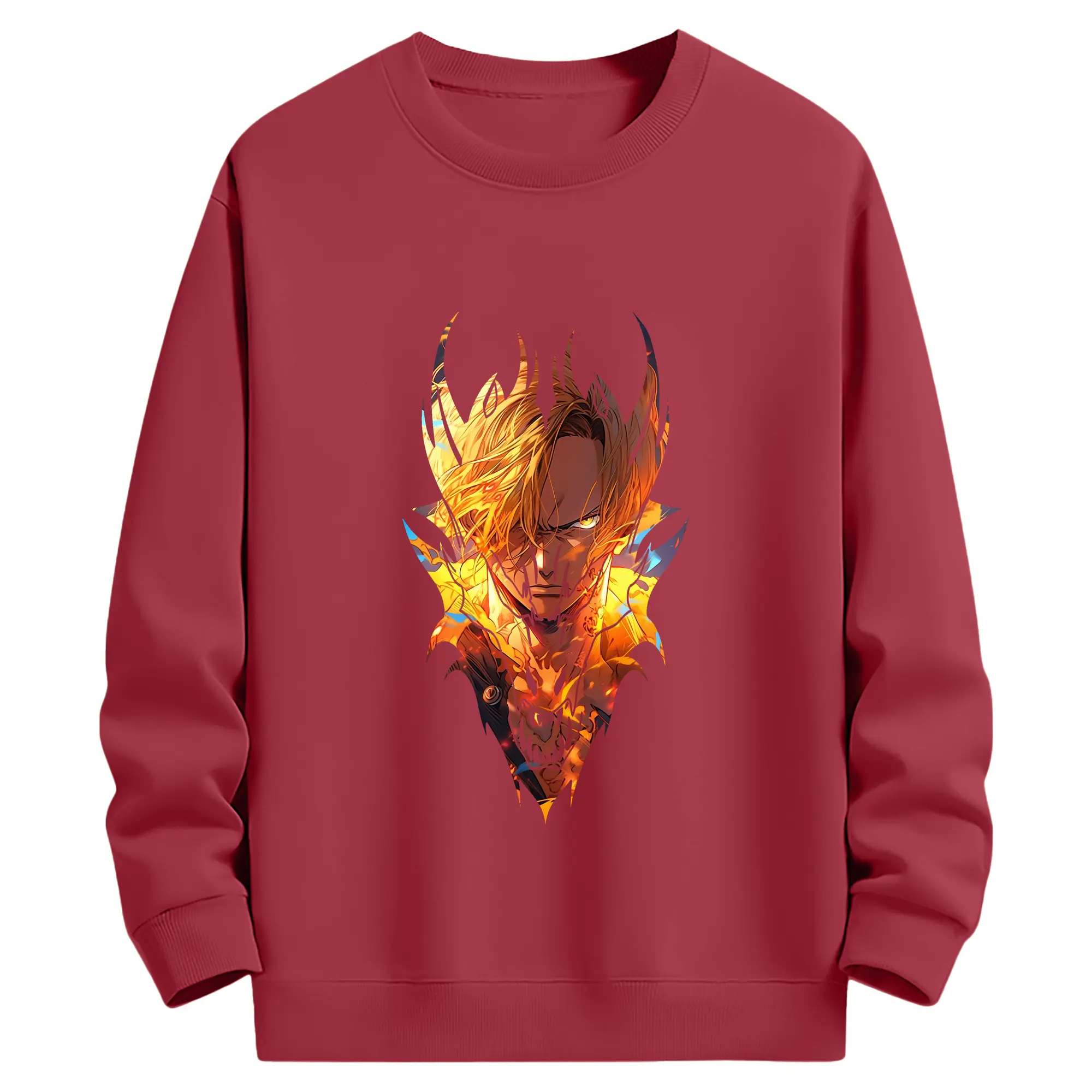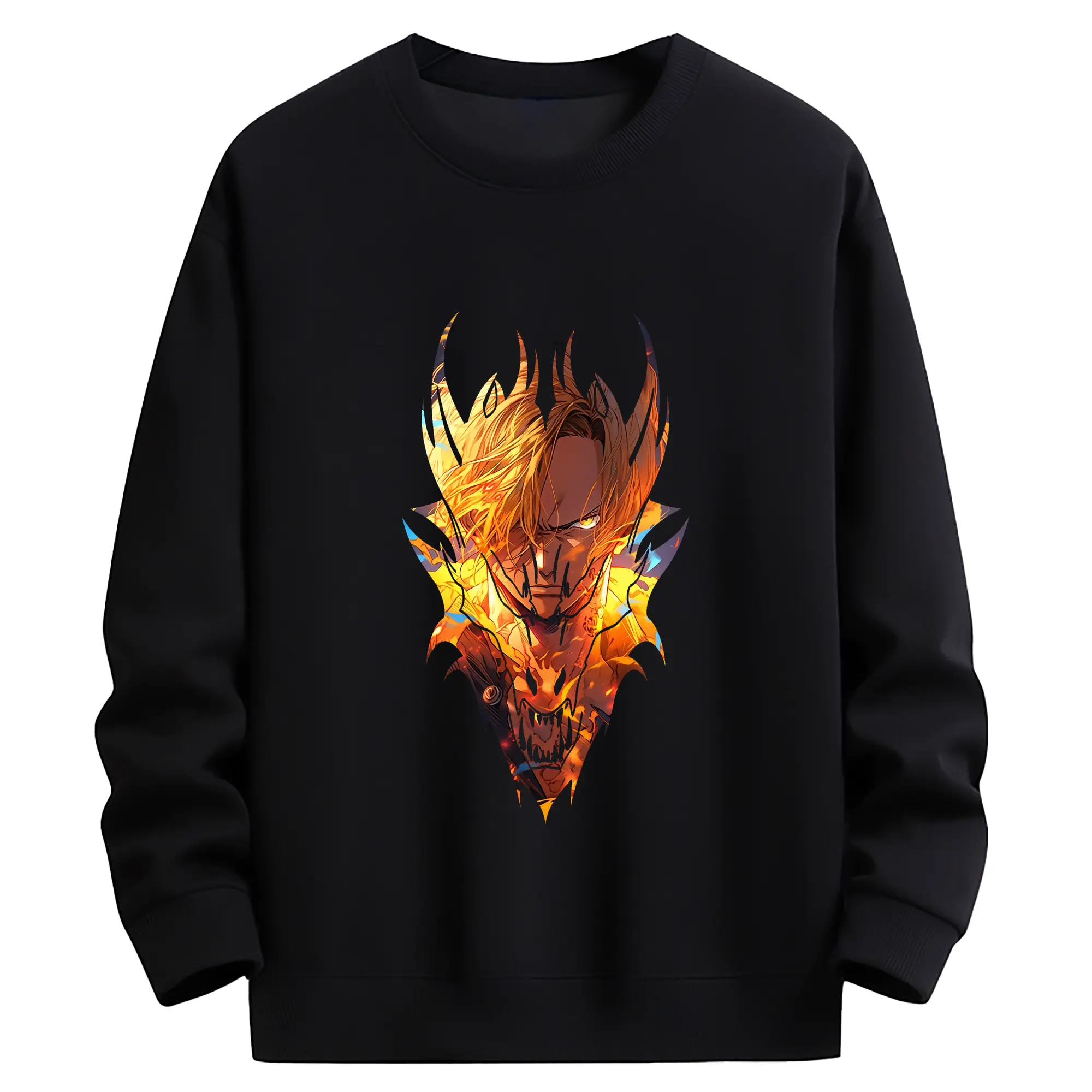 ワンピース グッズ ヴィンスモーク・サンジ - 薄手 クルーネック スウェット 裏毛260g · ポリエステル 春秋向け カジュアル 男女兼用 · トレーナー デイリー スポーツ 散歩に最適