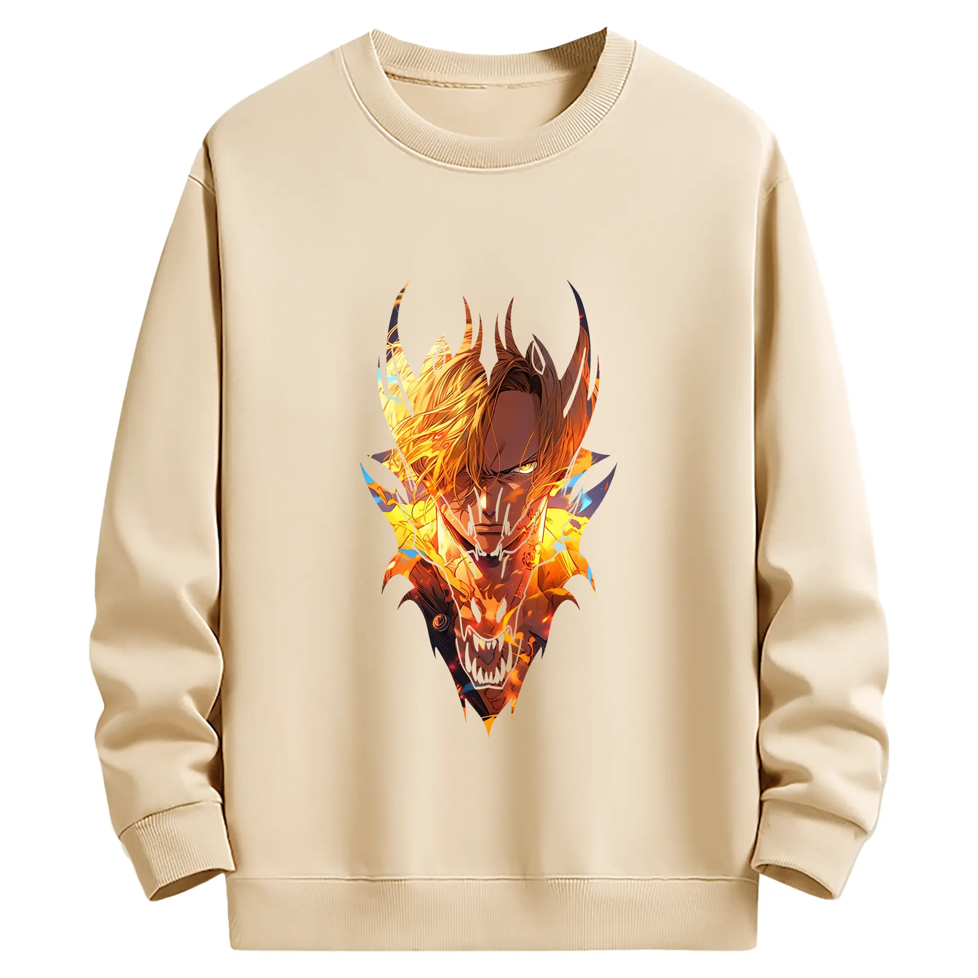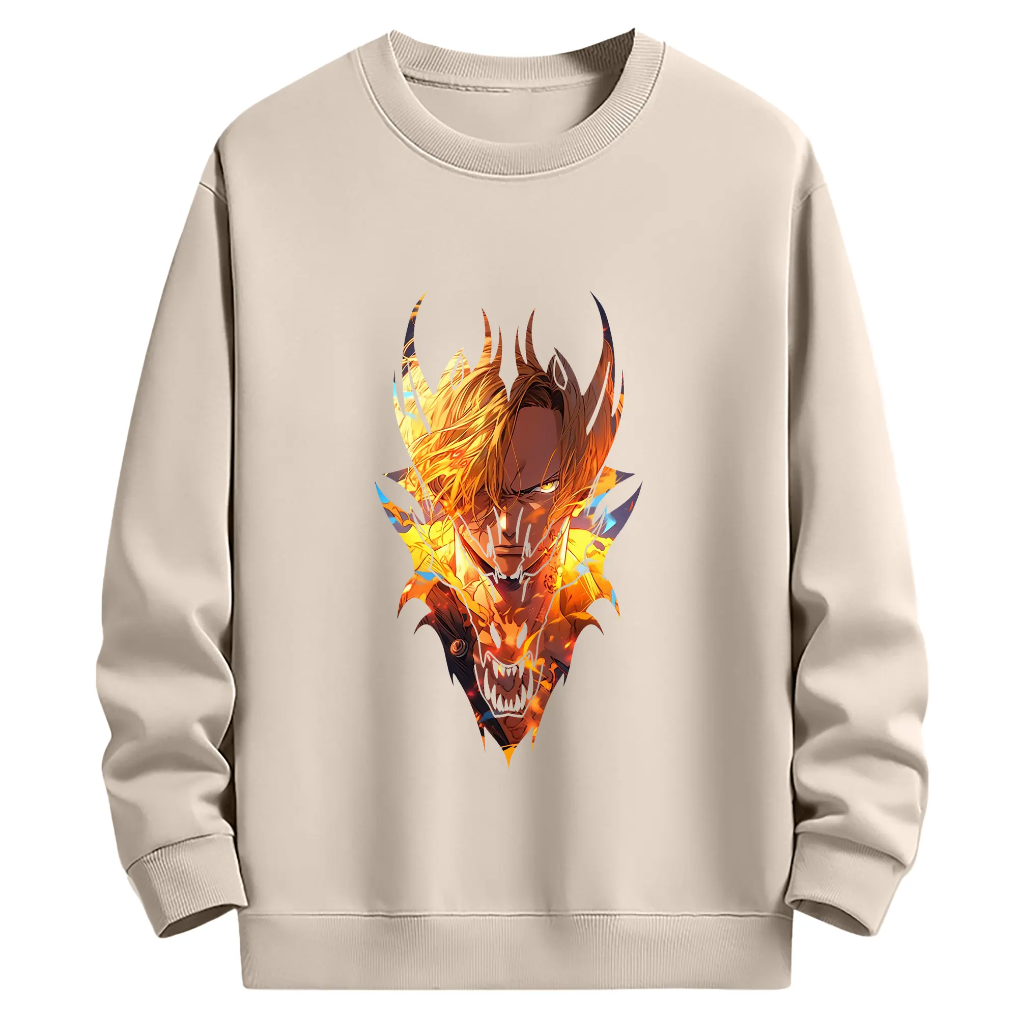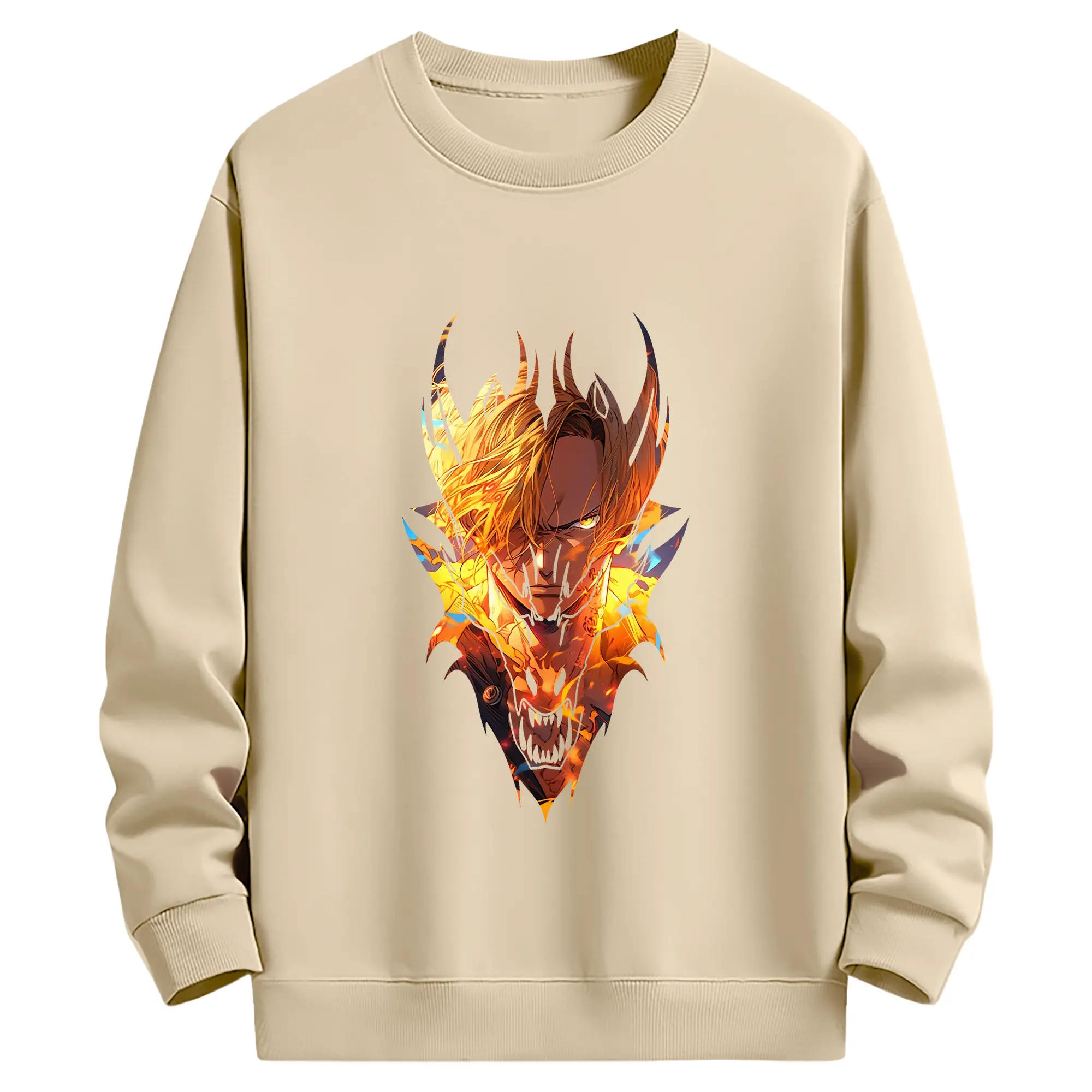 ワンピース グッズ ヴィンスモーク・サンジ - 薄手 クルーネック スウェット 裏毛260g · ポリエステル 春秋向け カジュアル 男女兼用 · トレーナー デイリー スポーツ 散歩に最適