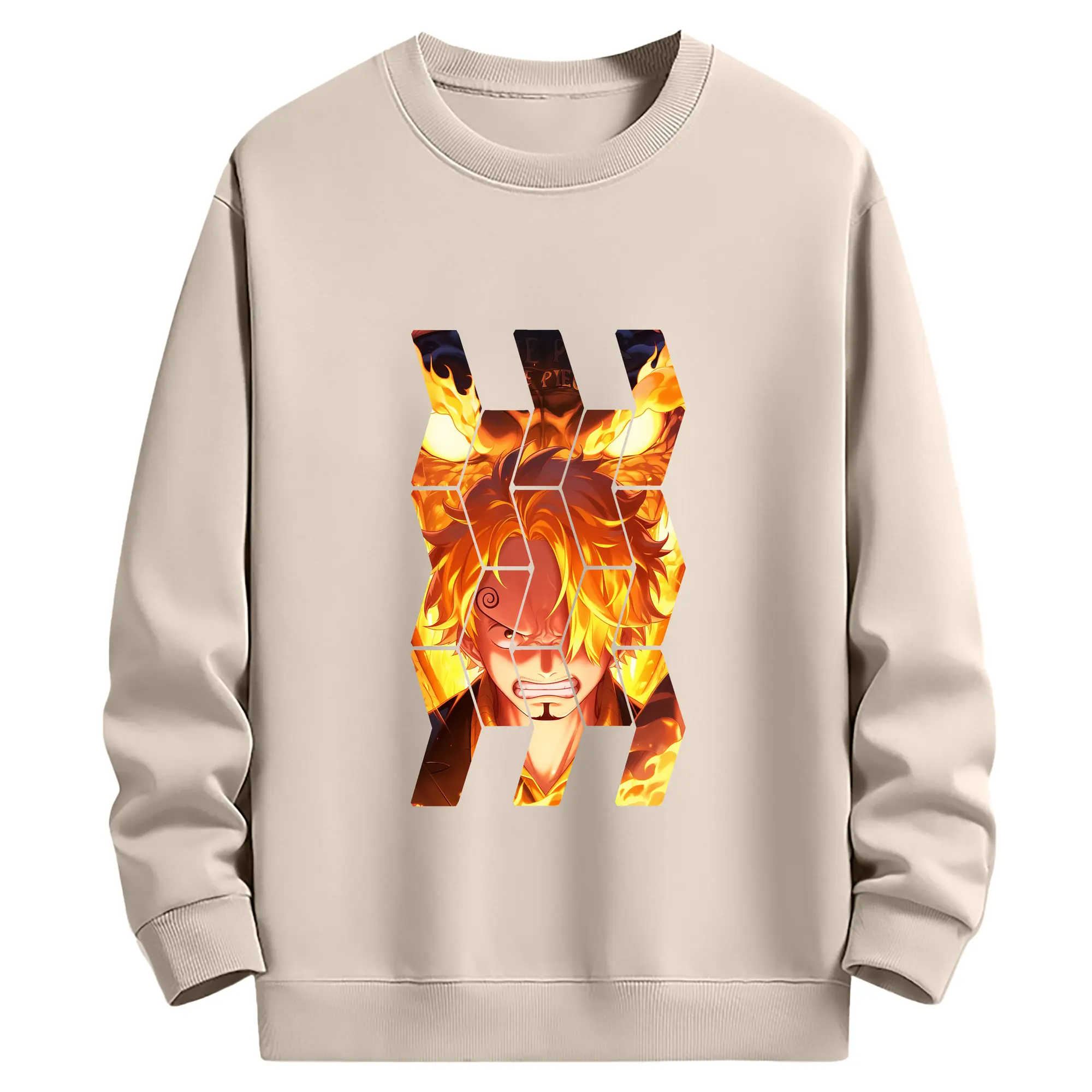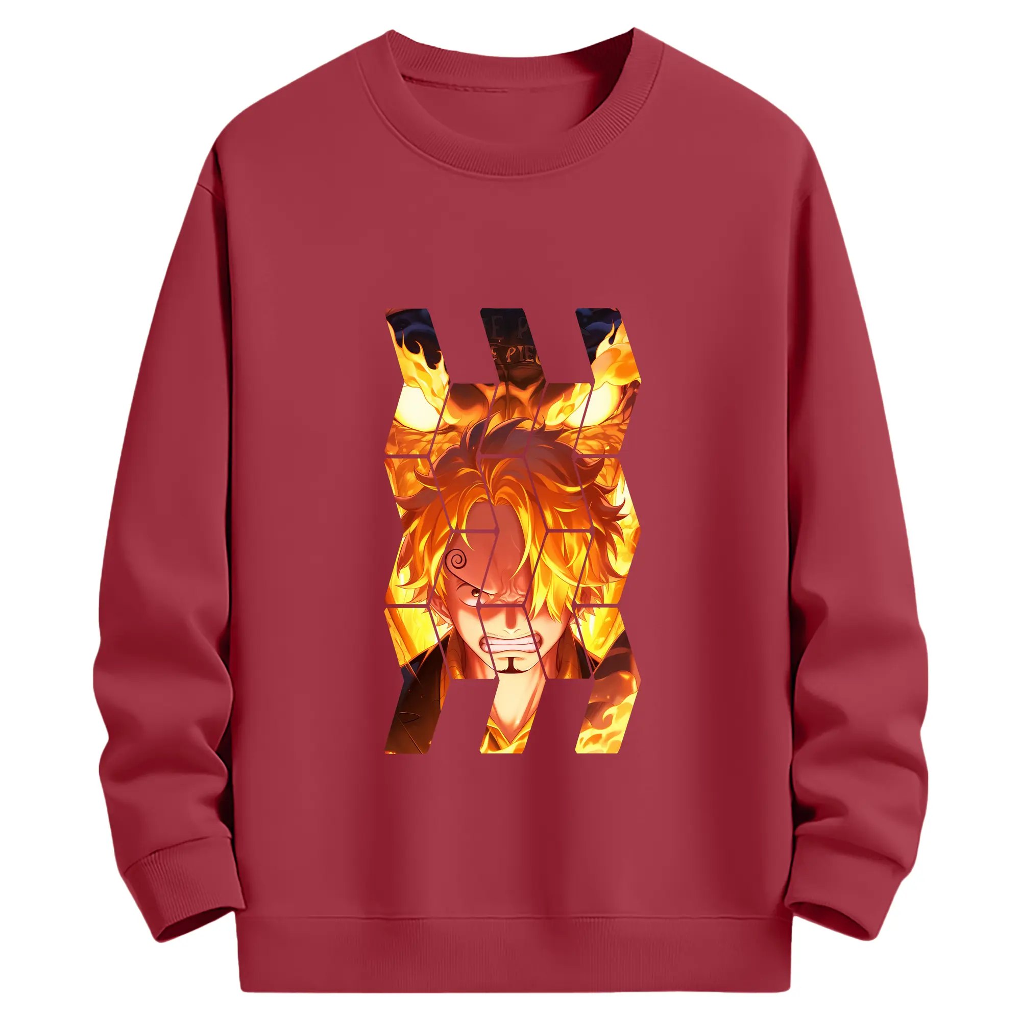 ワンピース グッズ ヴィンスモーク・サンジ - 薄手 クルーネック スウェット 裏毛260g · ポリエステル 春秋向け カジュアル 男女兼用 · トレーナー デイリー スポーツ 散歩に最適