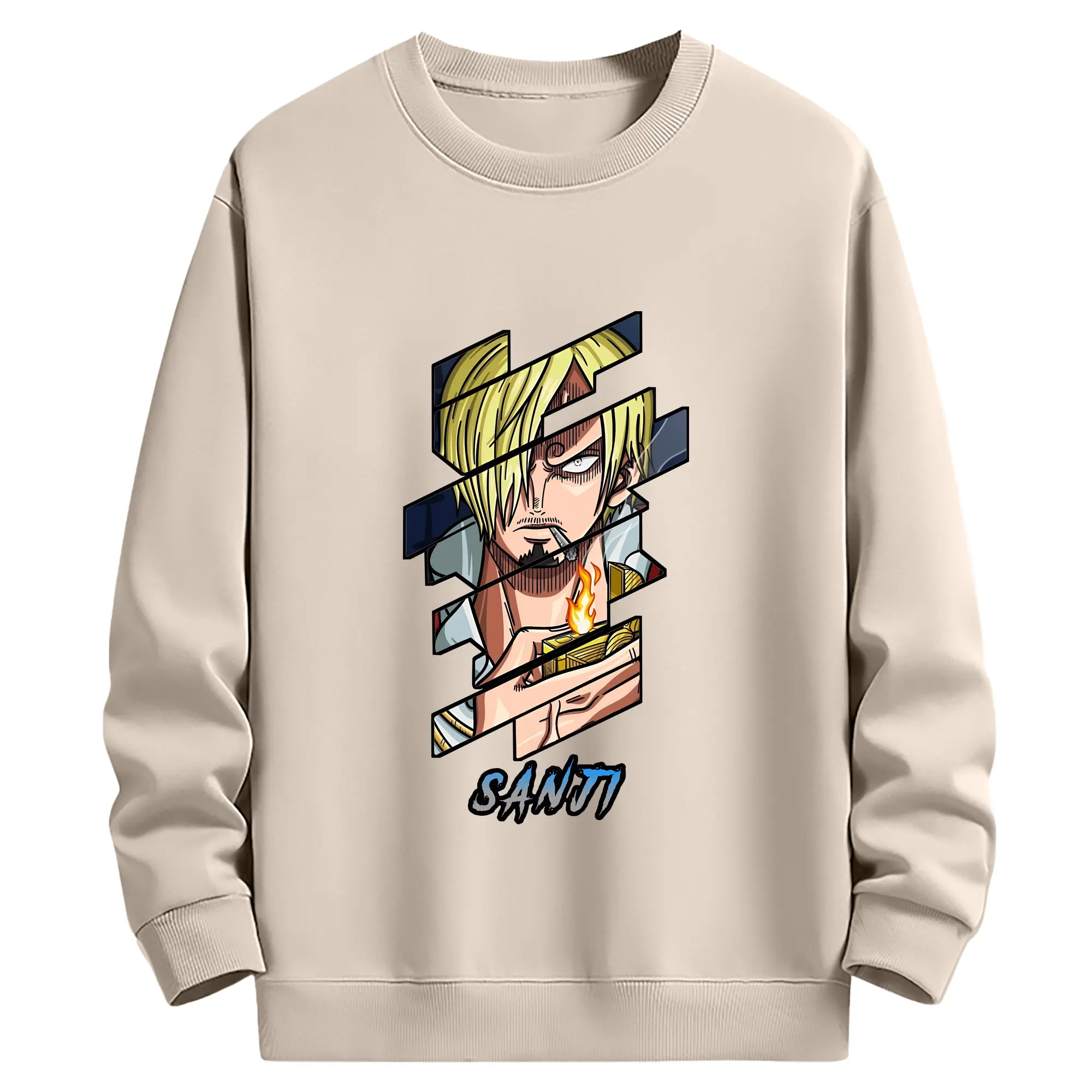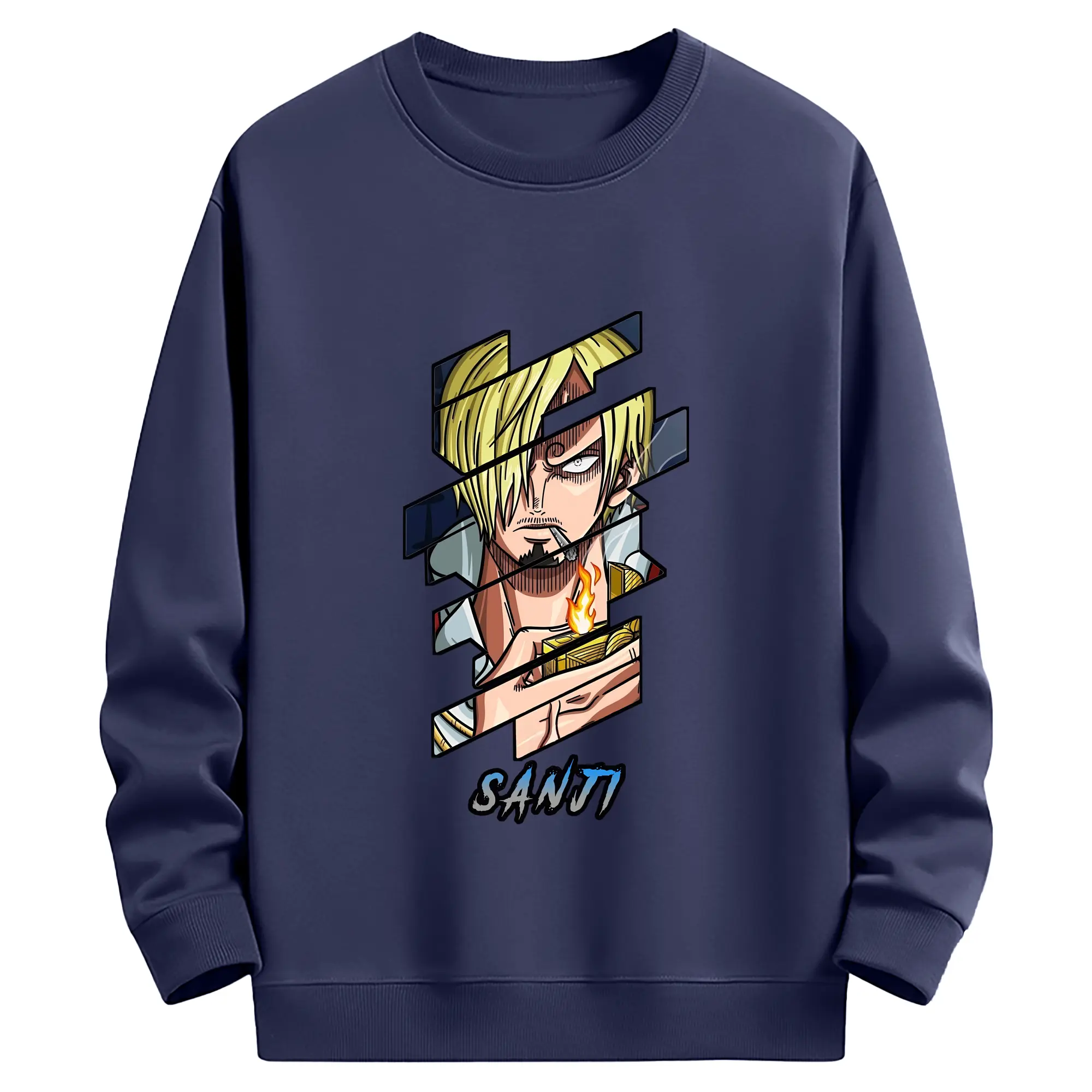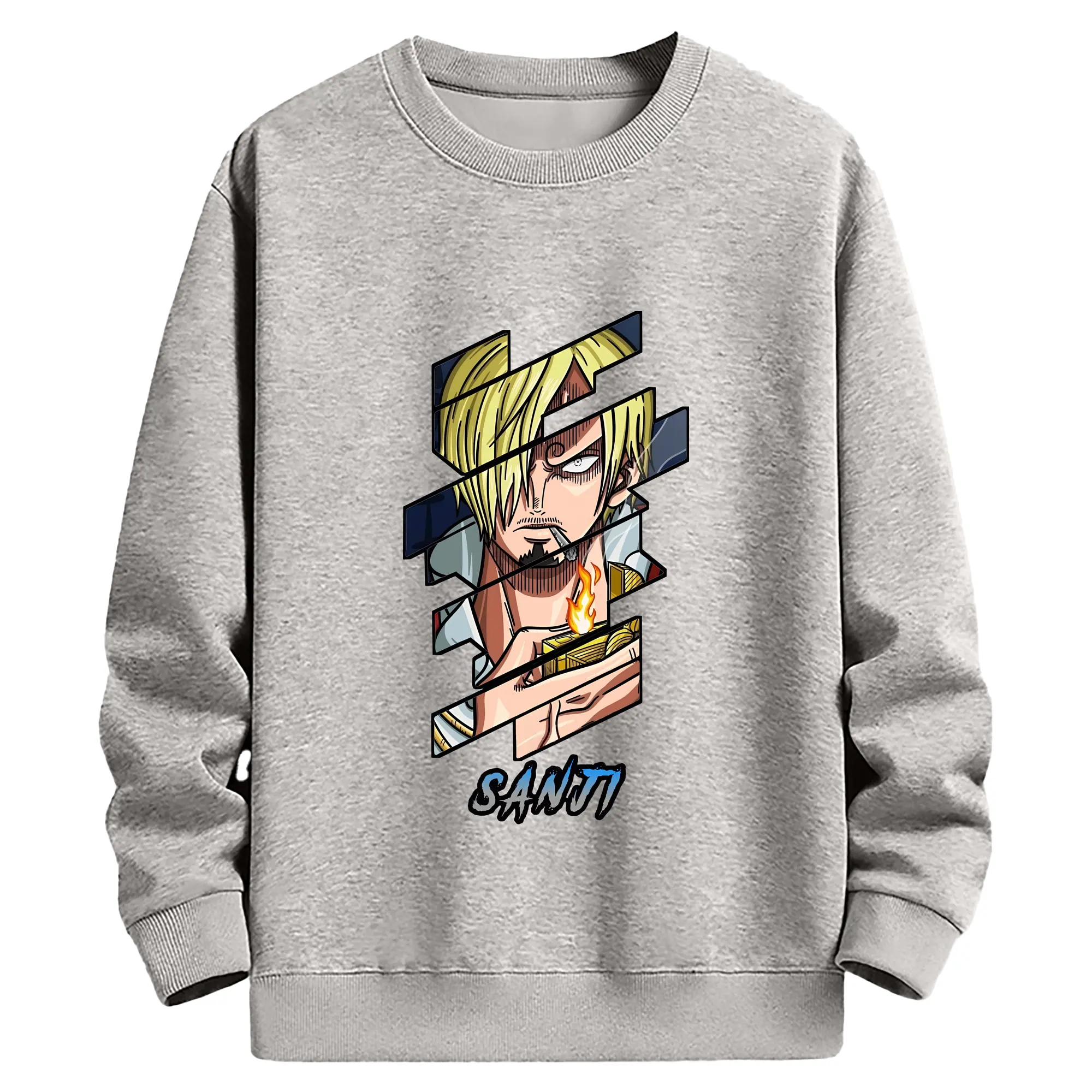 ワンピース グッズ ヴィンスモーク・サンジ - 薄手 クルーネック スウェット 裏毛260g · ポリエステル 春秋向け カジュアル 男女兼用 · トレーナー デイリー スポーツ 散歩に最適